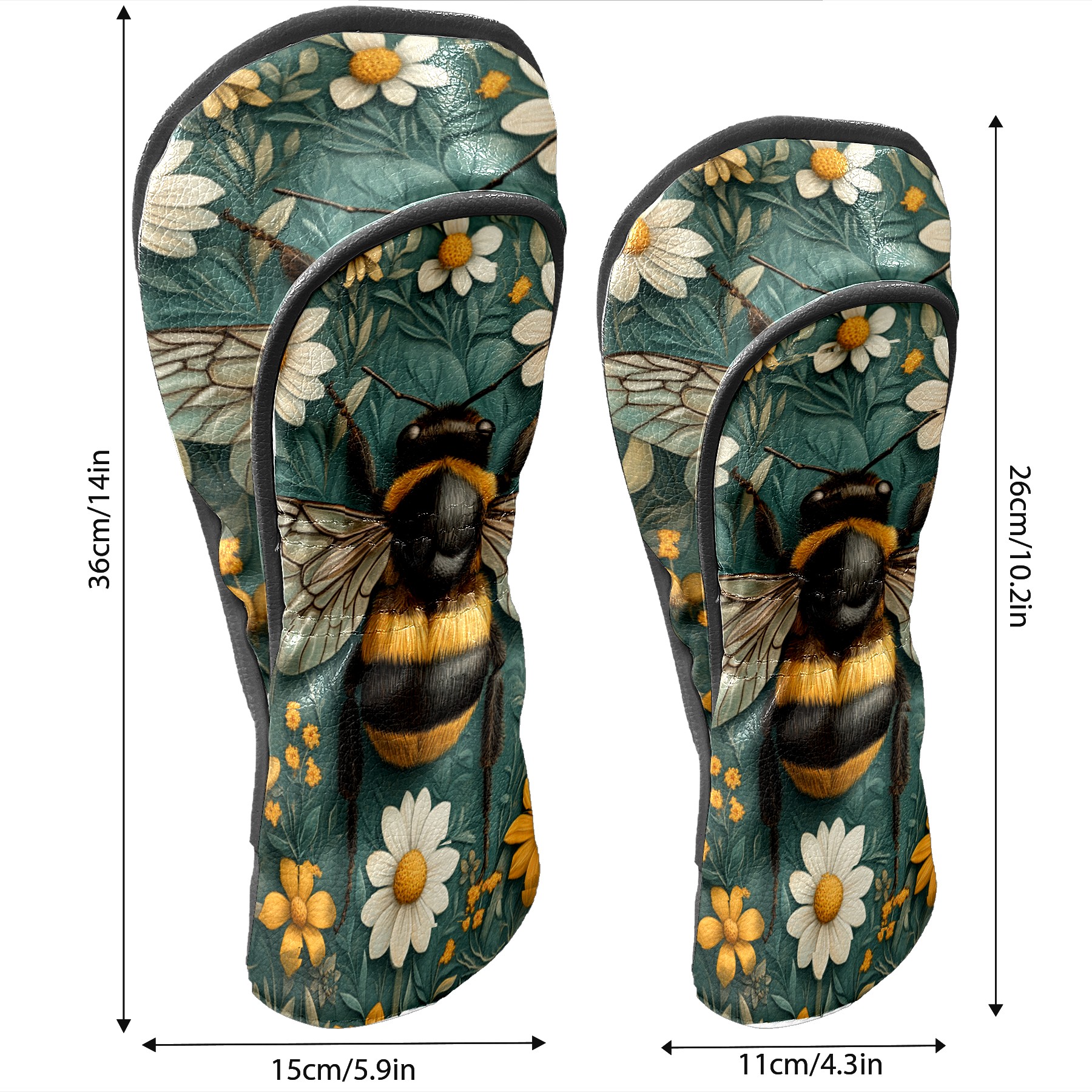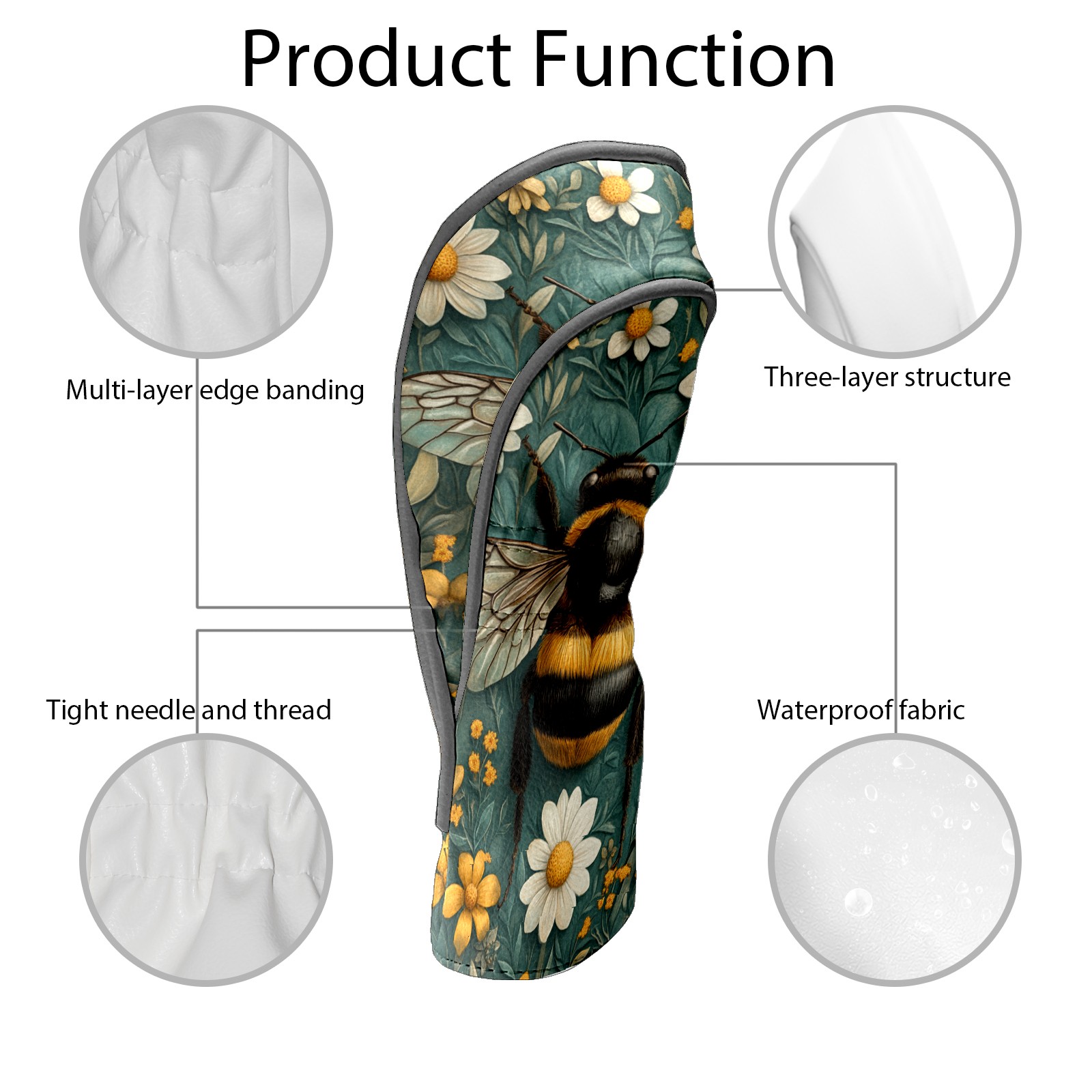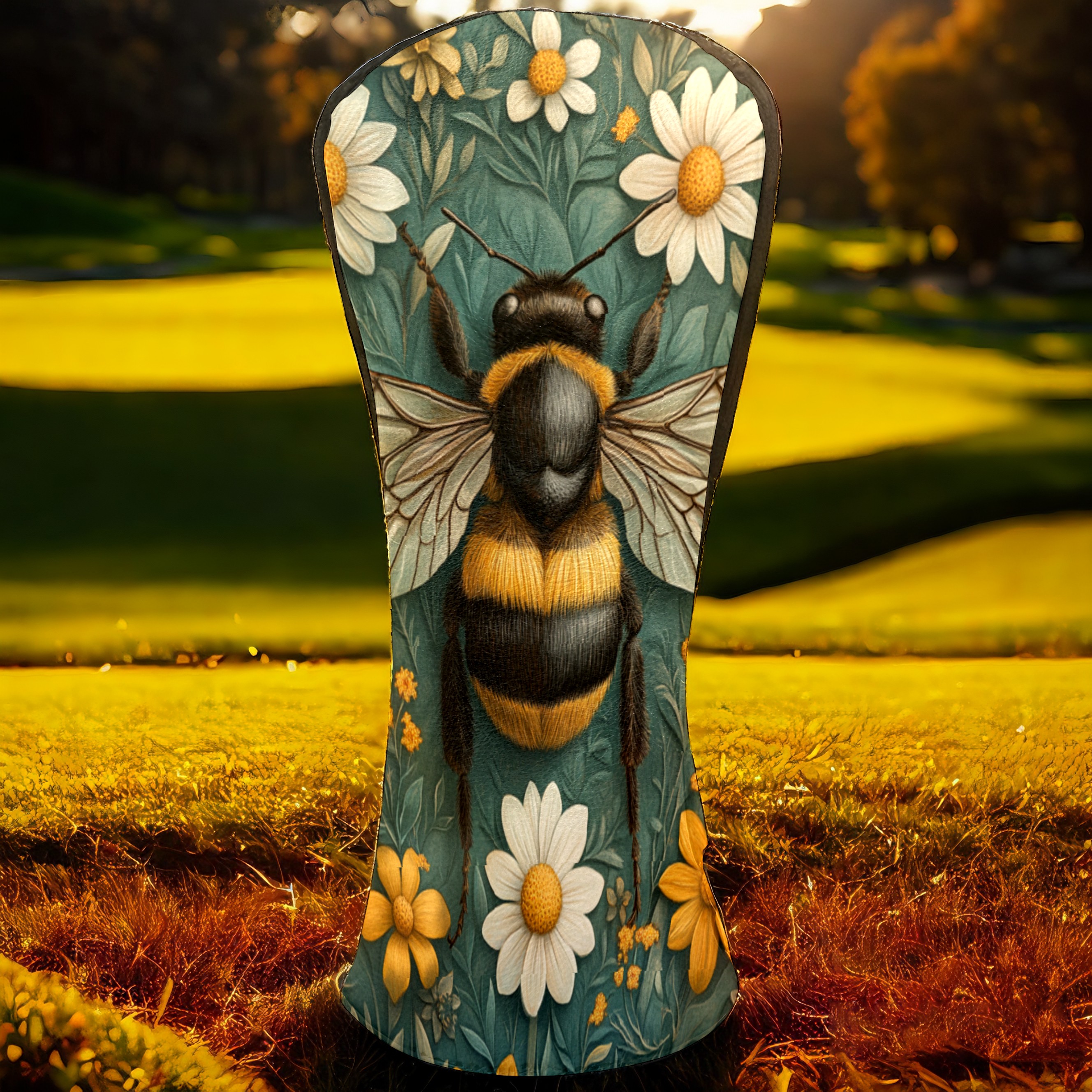 Golf Headcovers Fits Driver Hybrid Fairway 3/5 Wood, Waterproof PU Leather Golf Club Protector, Ideal Sports Accessories & Golfer Gift Big Bee Pattern