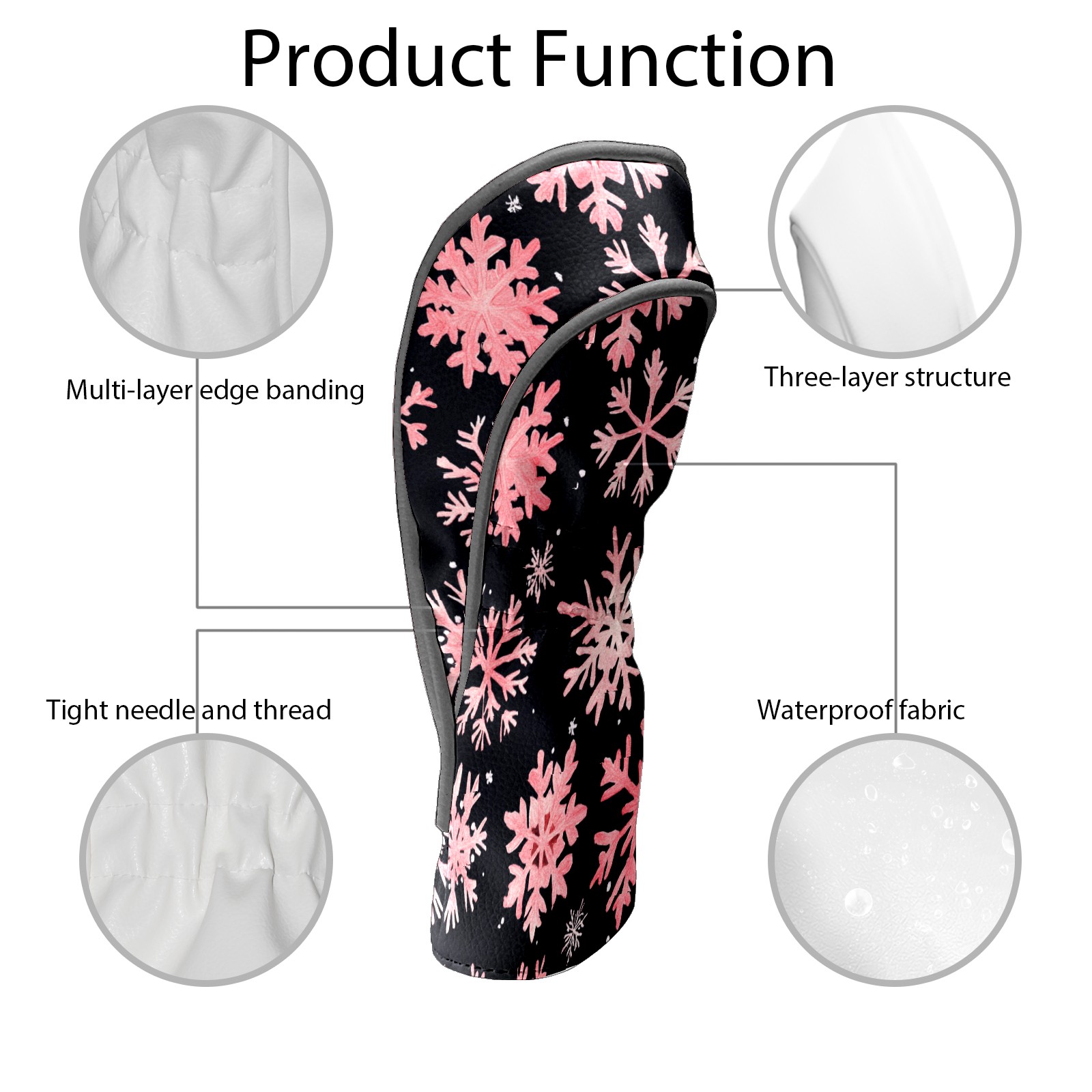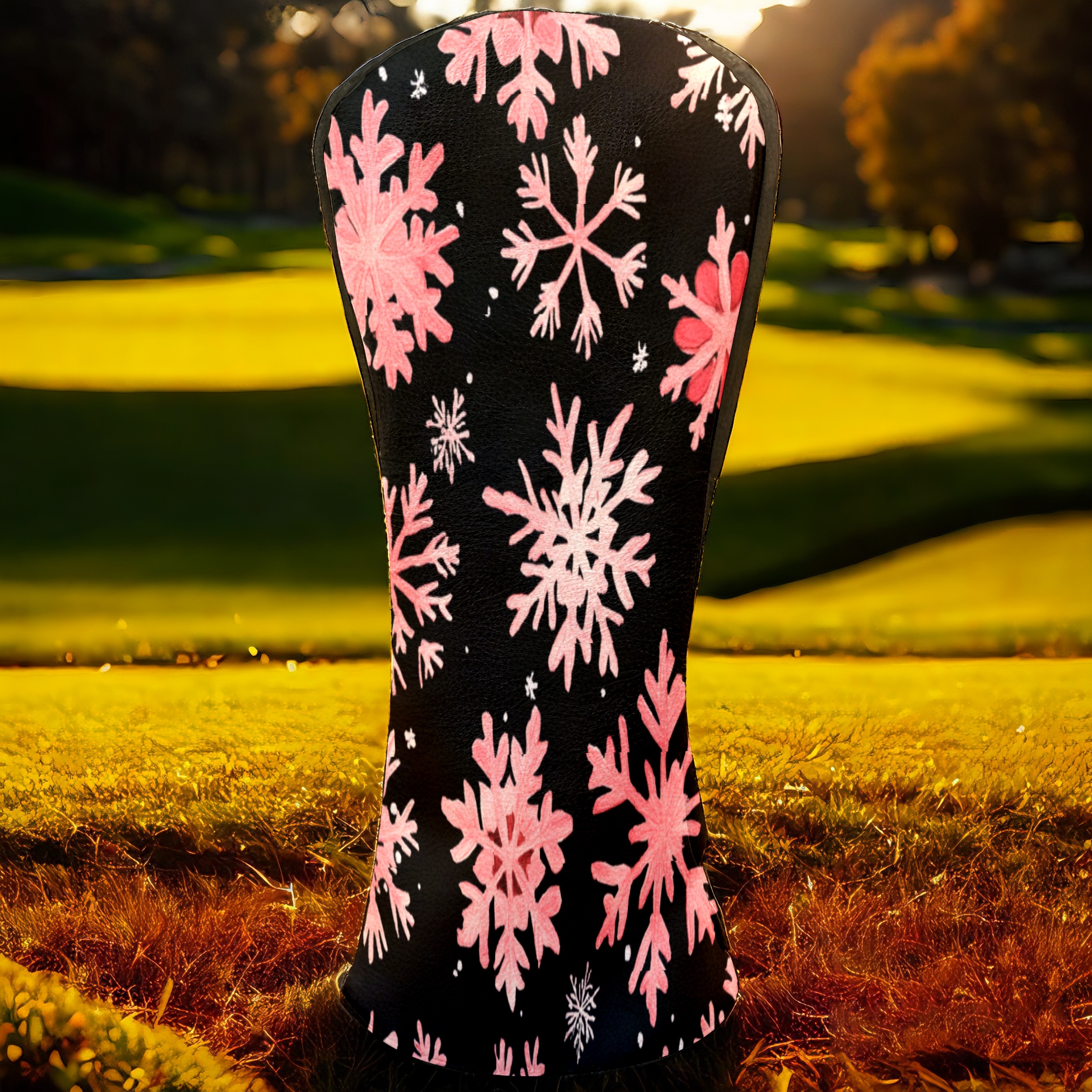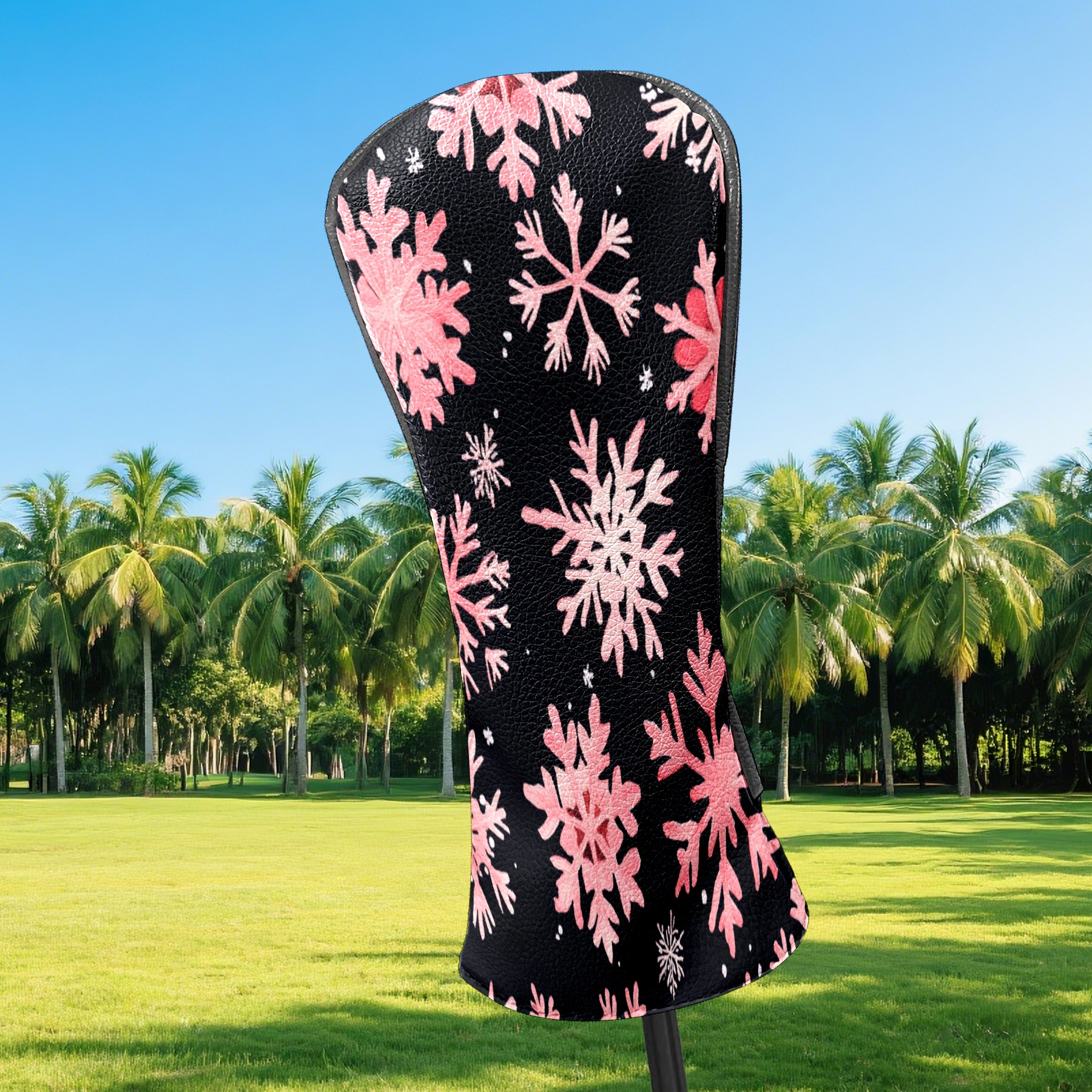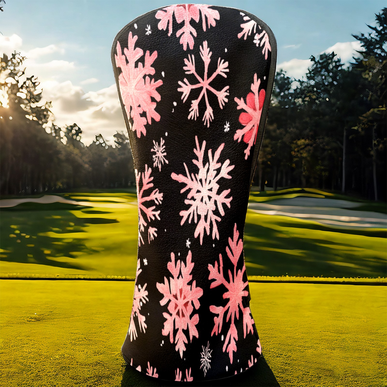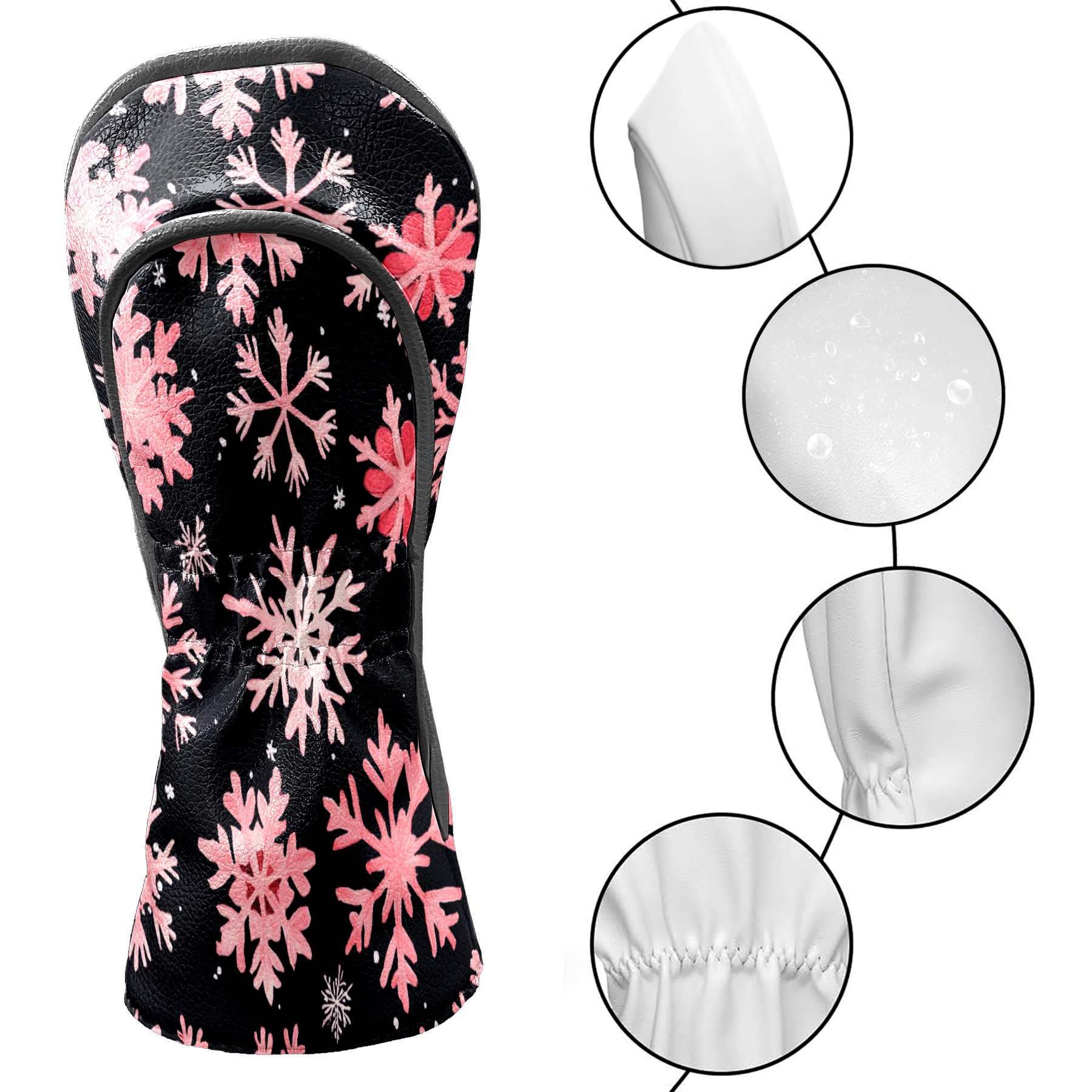 Golf Headcovers Fits Driver Hybrid Fairway 3/5 Wood, Waterproof PU Leather Golf Club Protector, Ideal Sports Accessories & Golfer Gift Pink Snowflake Pattern