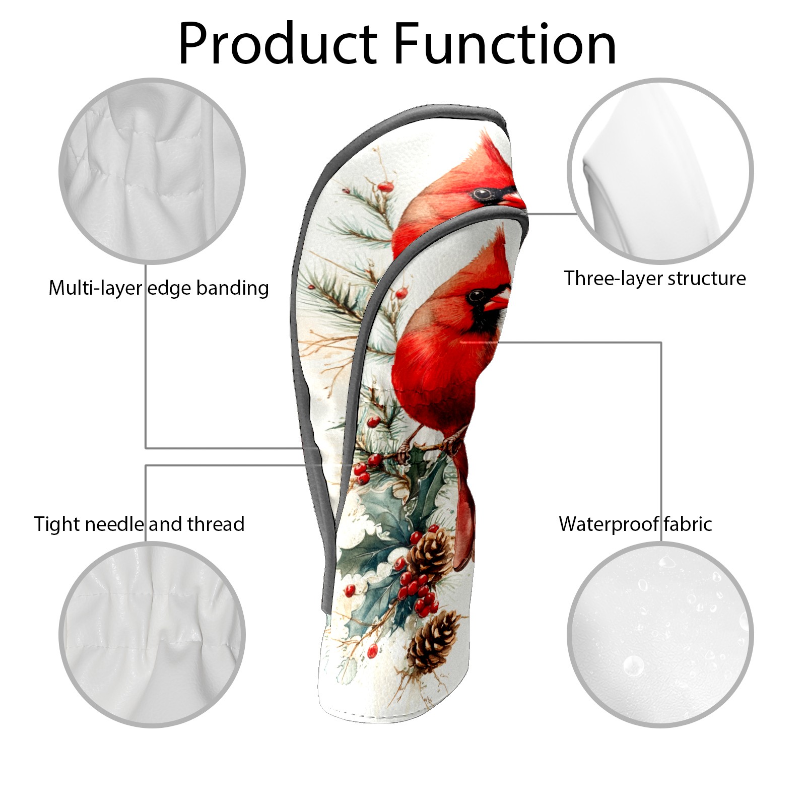 Golf Headcovers Fits Driver Hybrid Fairway 3/5 Wood, Waterproof PU Leather Golf Club Protector, Ideal Sports Accessories & Golfer Gift Red Parrot Pattern