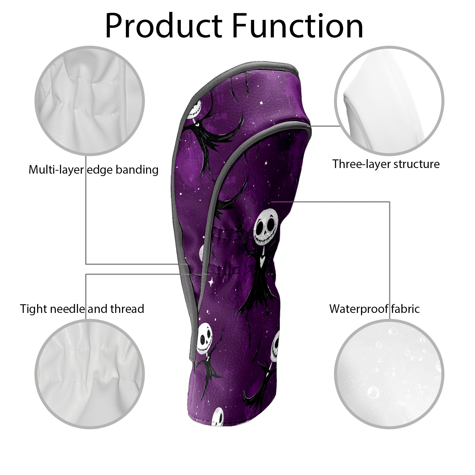 Golf Headcovers Fits Driver Hybrid Fairway 3/5 Wood, Waterproof PU Leather Golf Club Protector, Ideal Sports Accessories & Golfer Gift Skull Pattern3