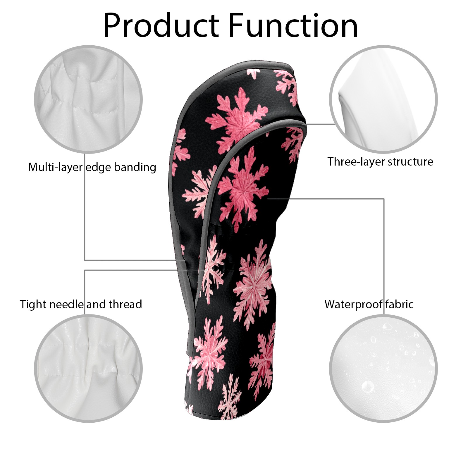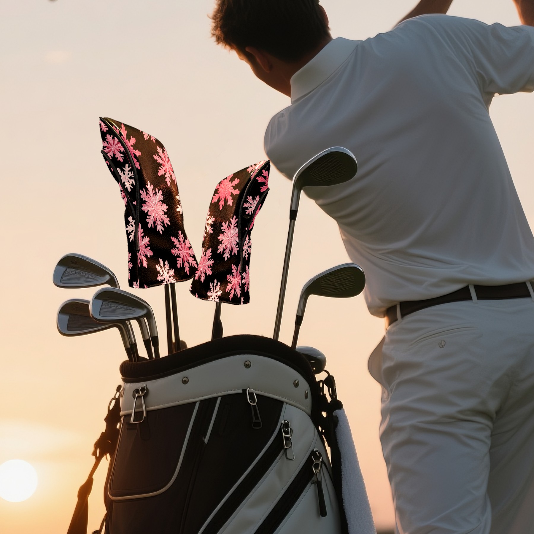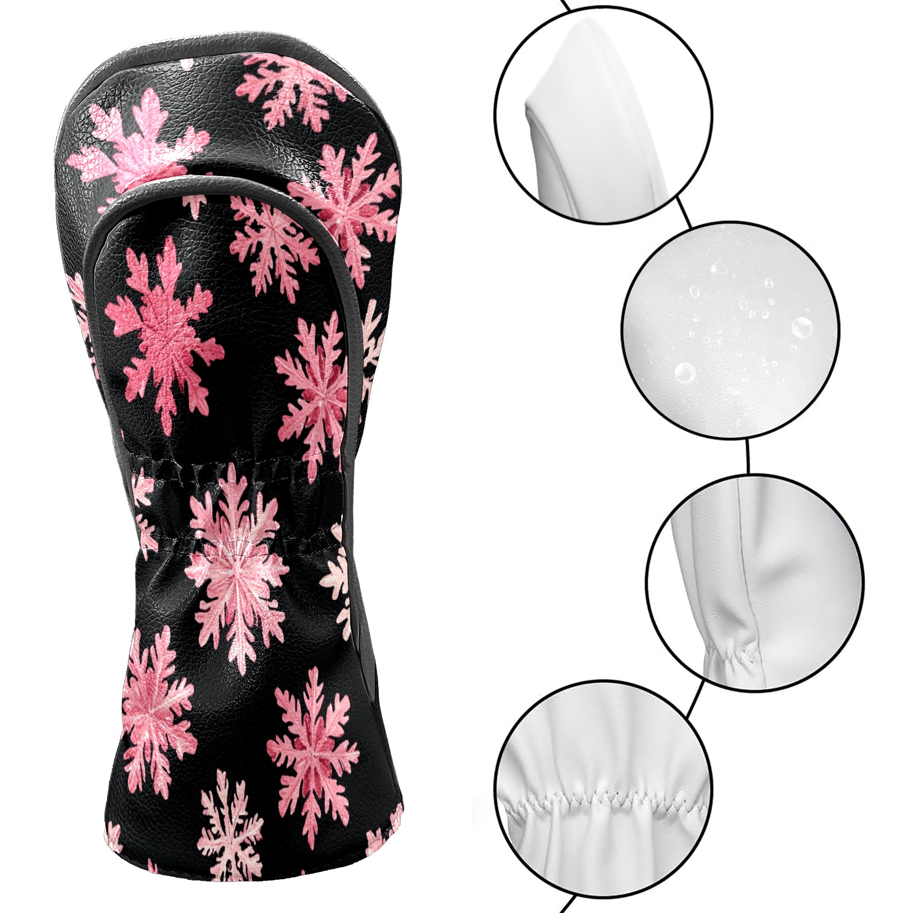 Golf Headcovers Fits Driver Hybrid Fairway 3/5 Wood, Waterproof PU Leather Golf Club Protector, Ideal Sports Accessories & Golfer Gift Pink Snowflake Pattern3