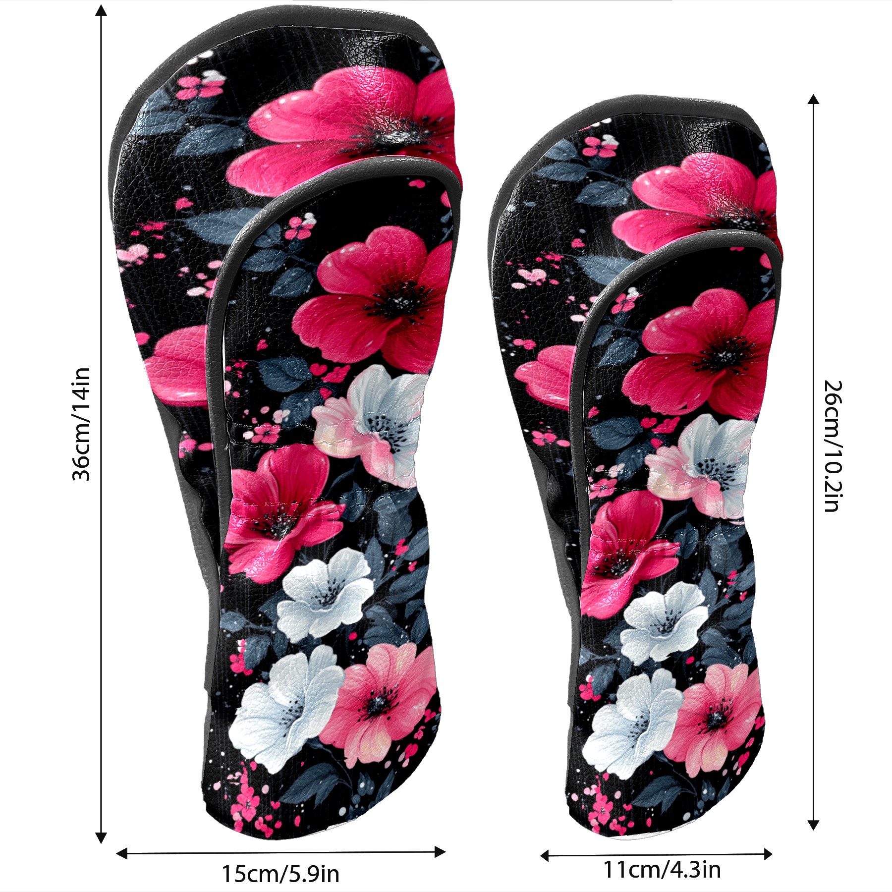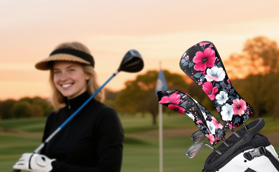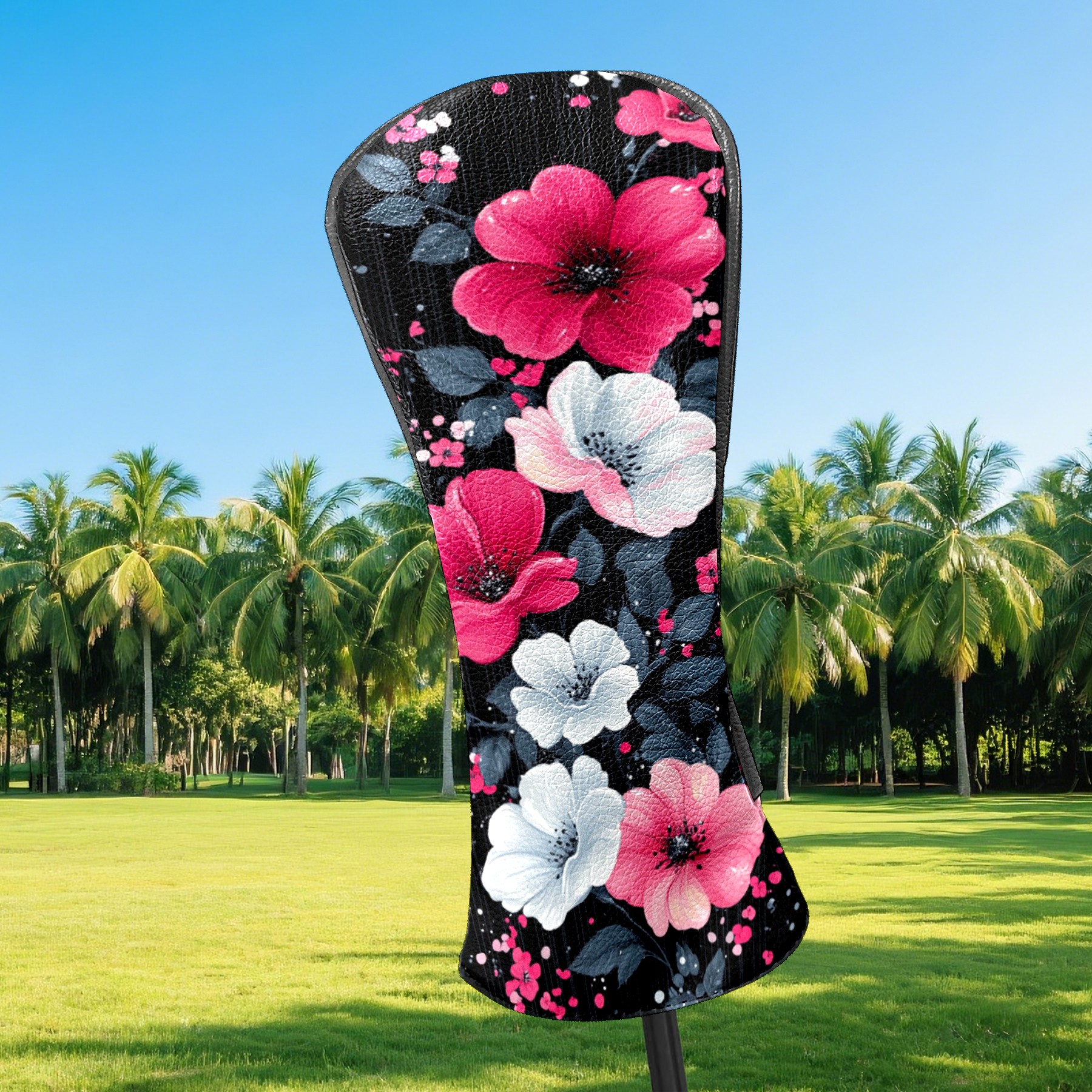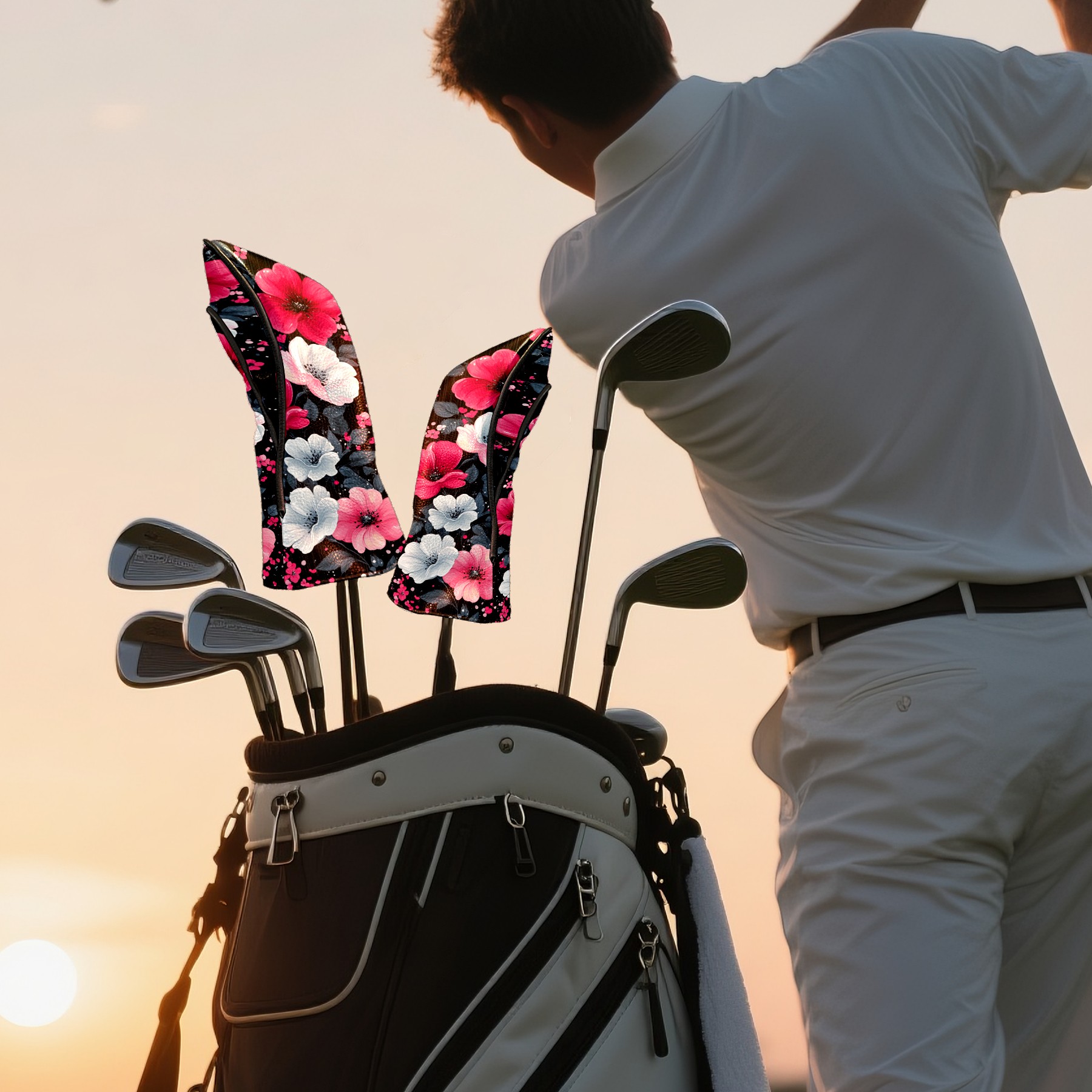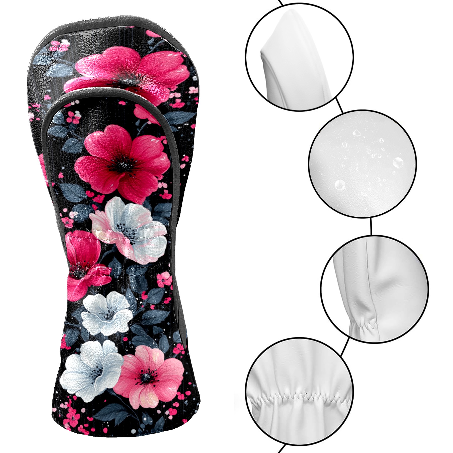 Golf Headcovers Fits Driver Hybrid Fairway 3/5 Wood, Waterproof PU Leather Golf Club Protector, Ideal Sports Accessories & Golfer Gift Pink Floral Pattern2