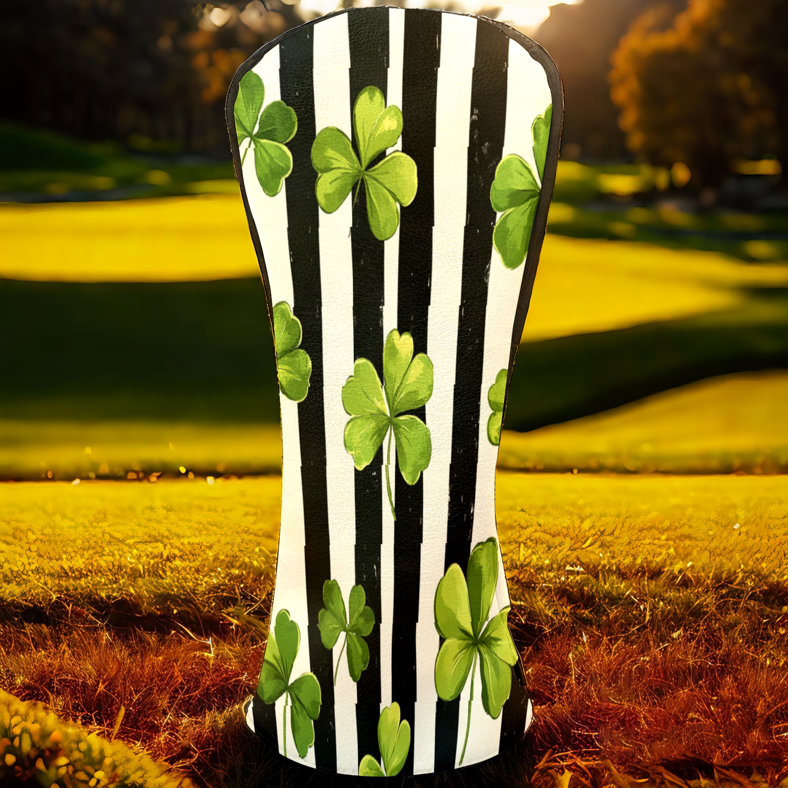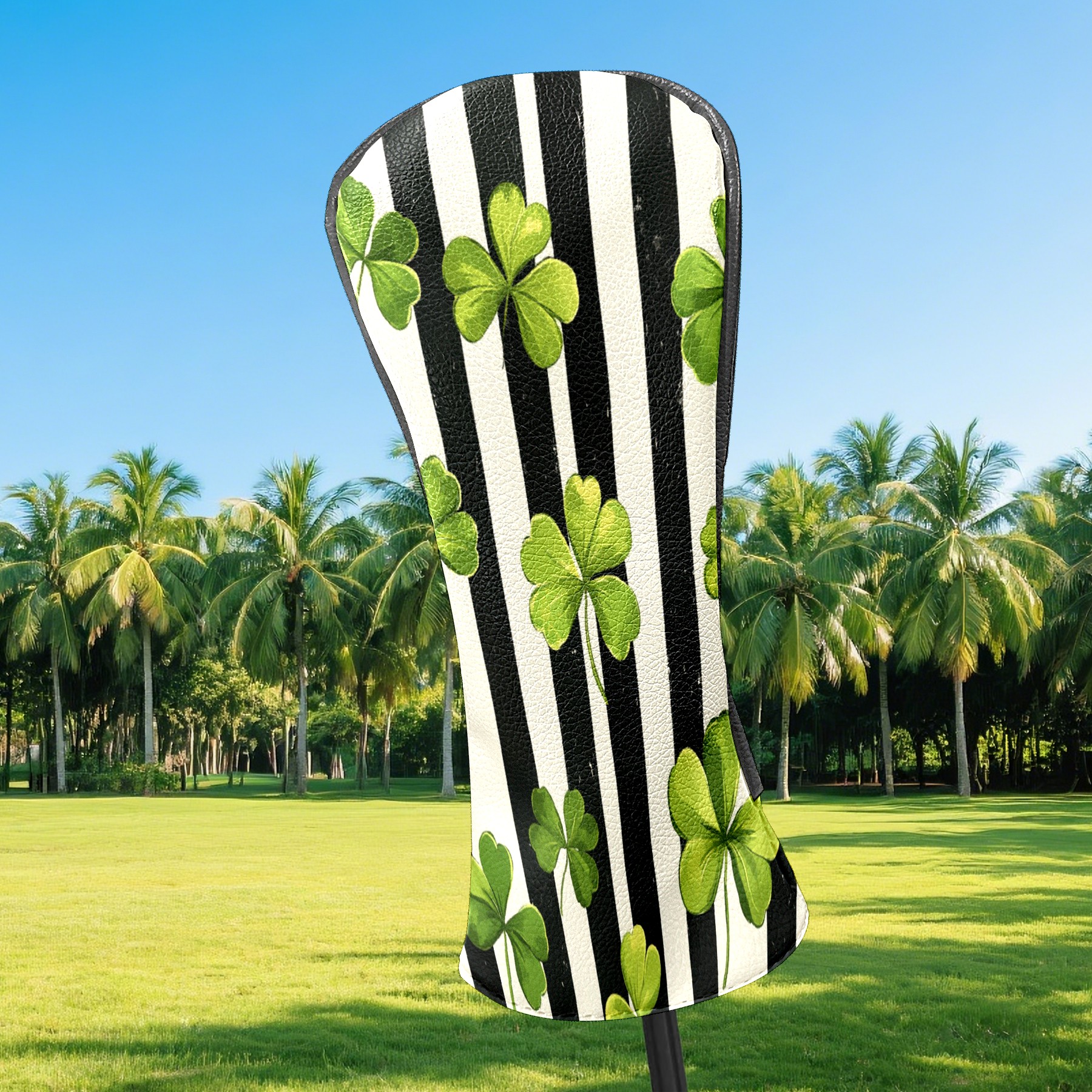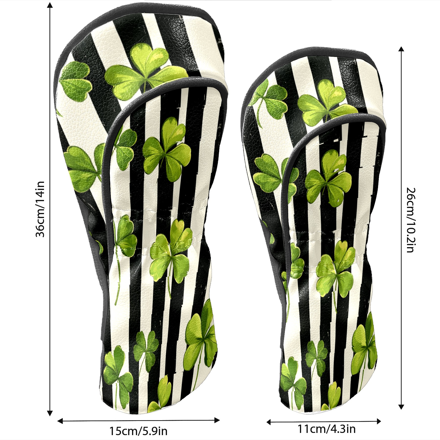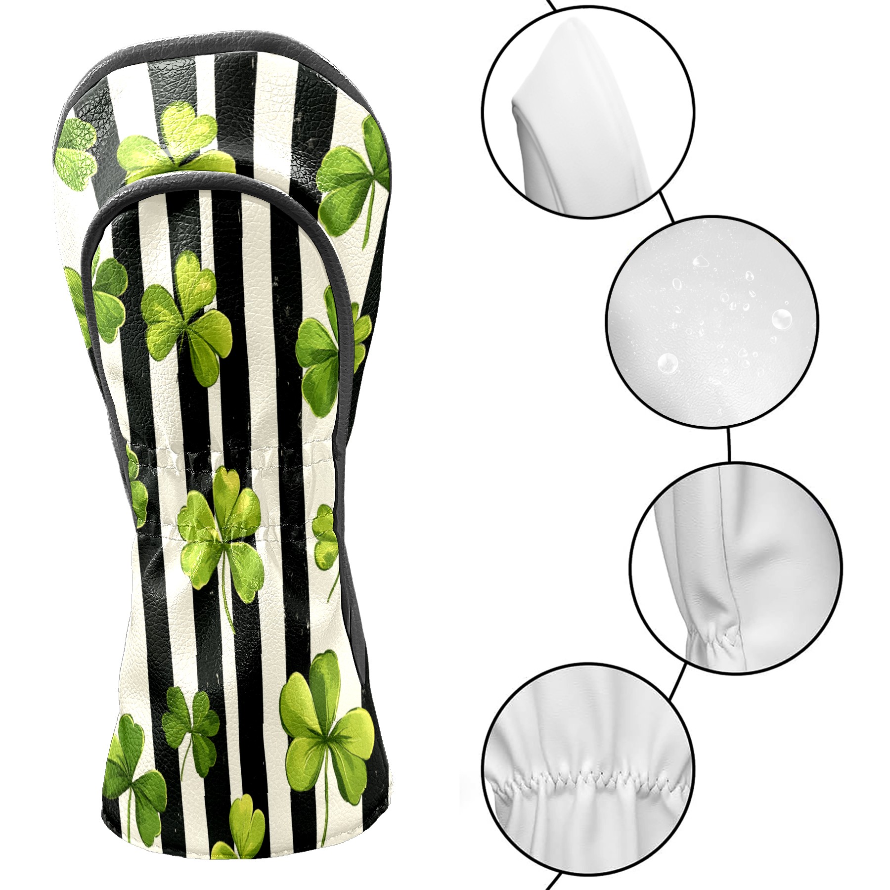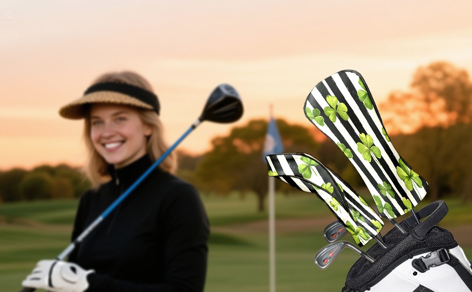 Golf Headcovers Fits Driver Hybrid Fairway 3/5 Wood, Waterproof PU Leather Golf Club Protector, Ideal Sports Accessories & Golfer Gift Striped Clover Pattern