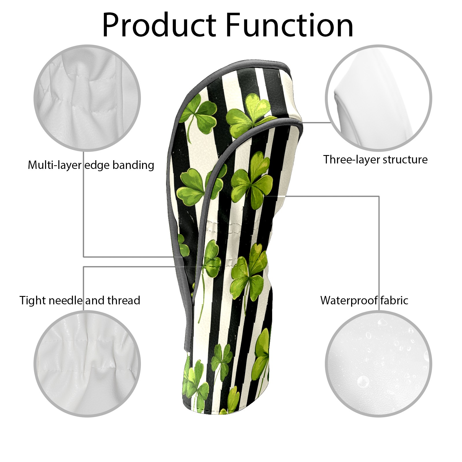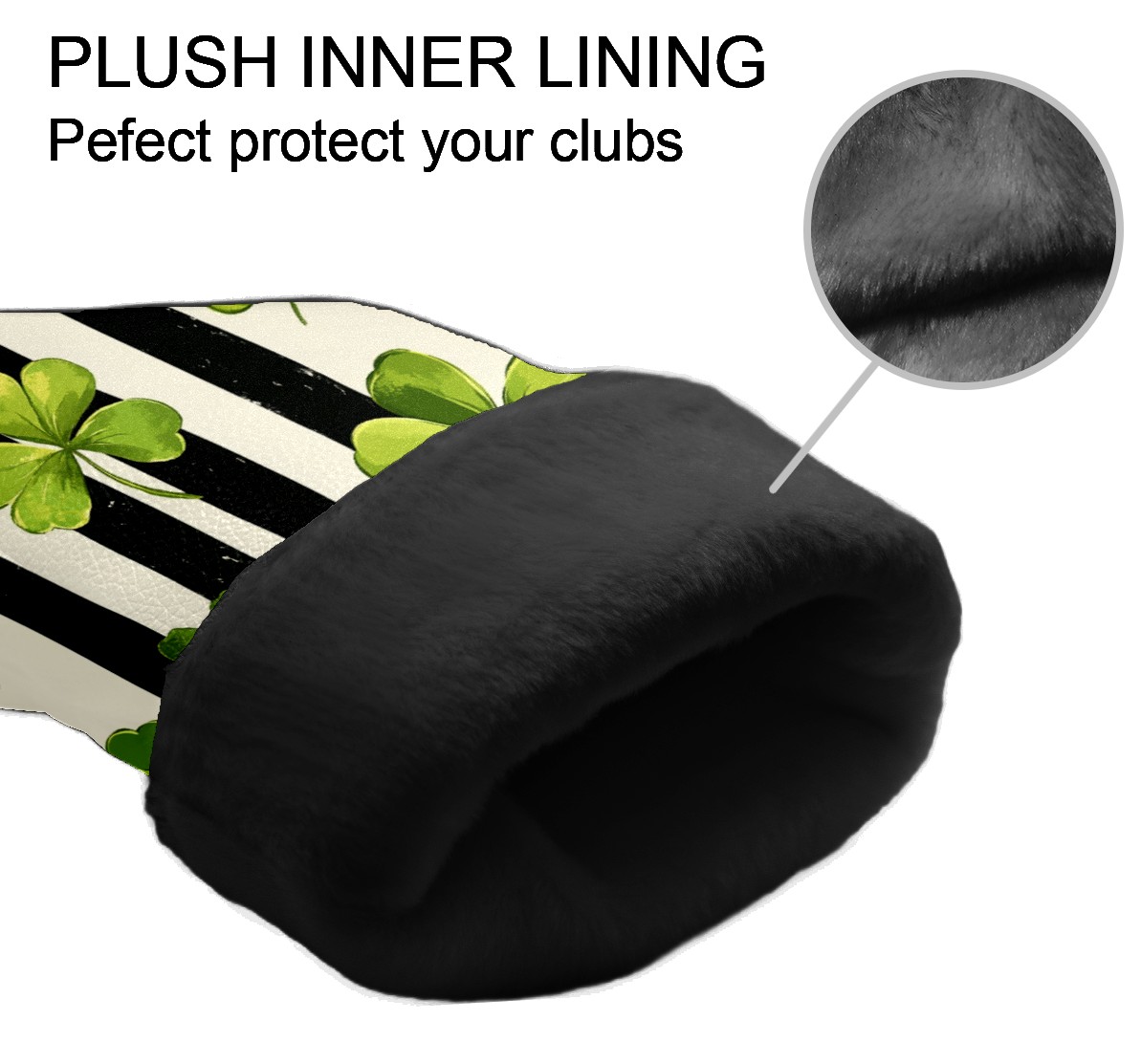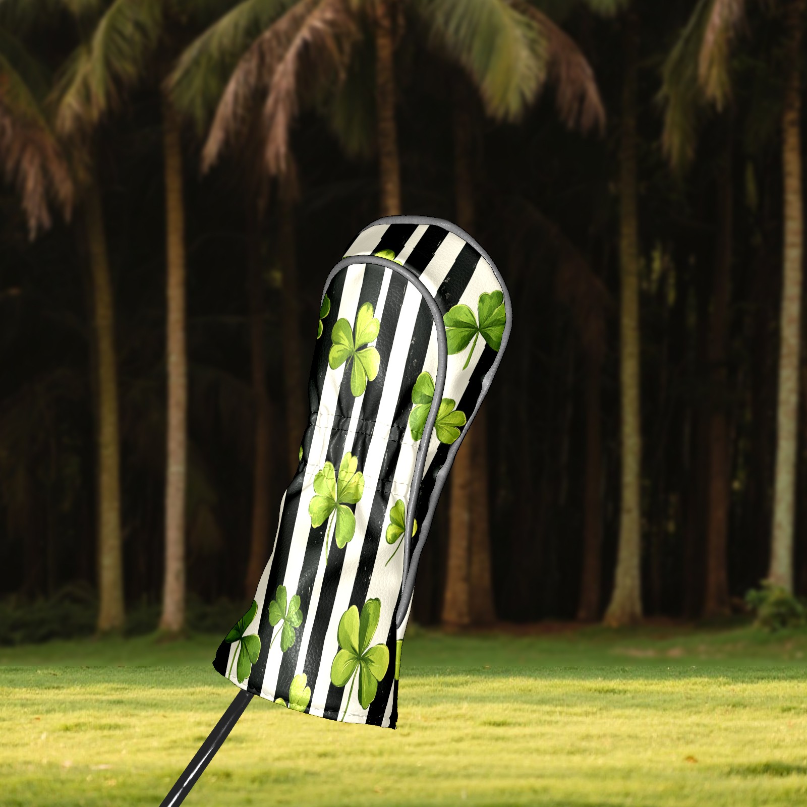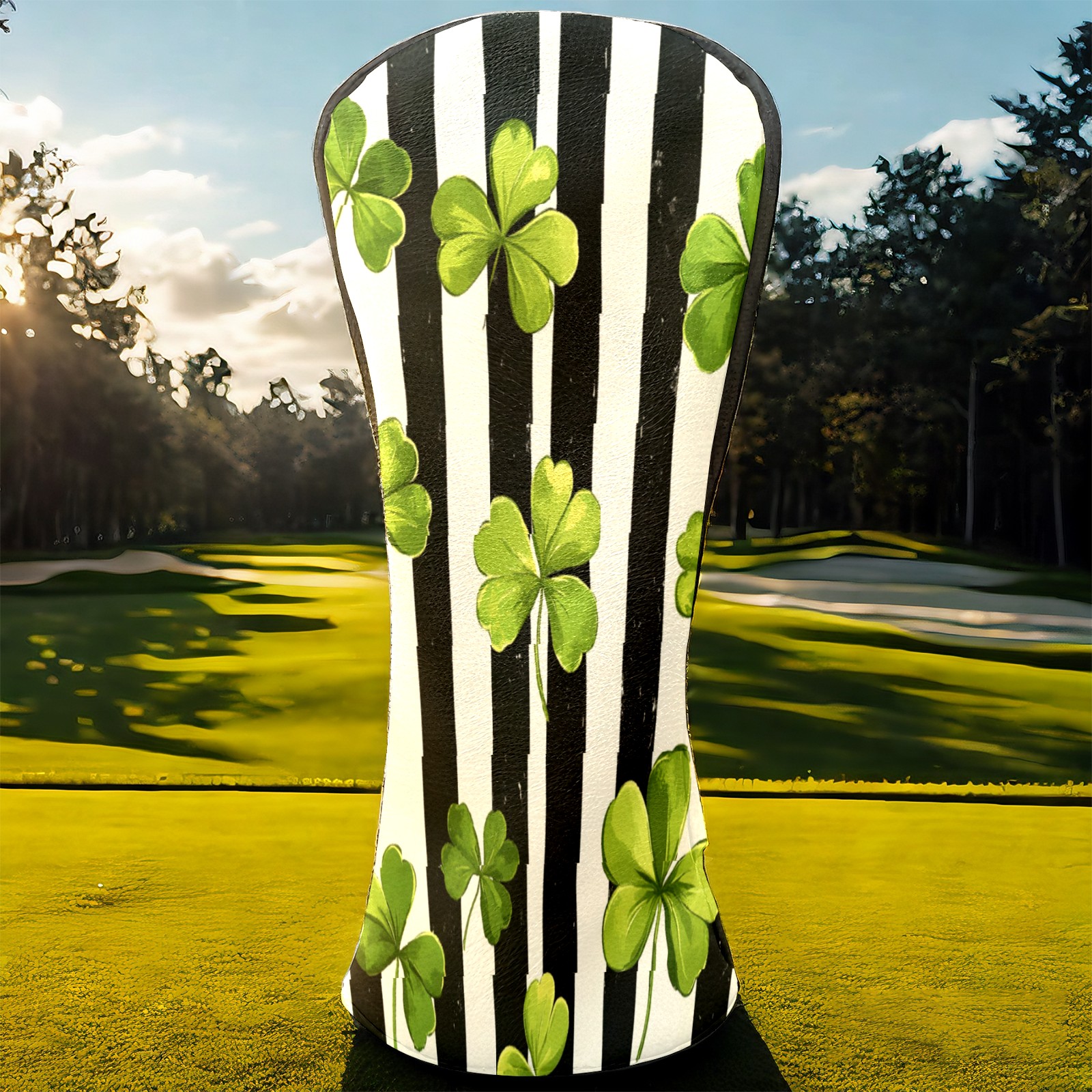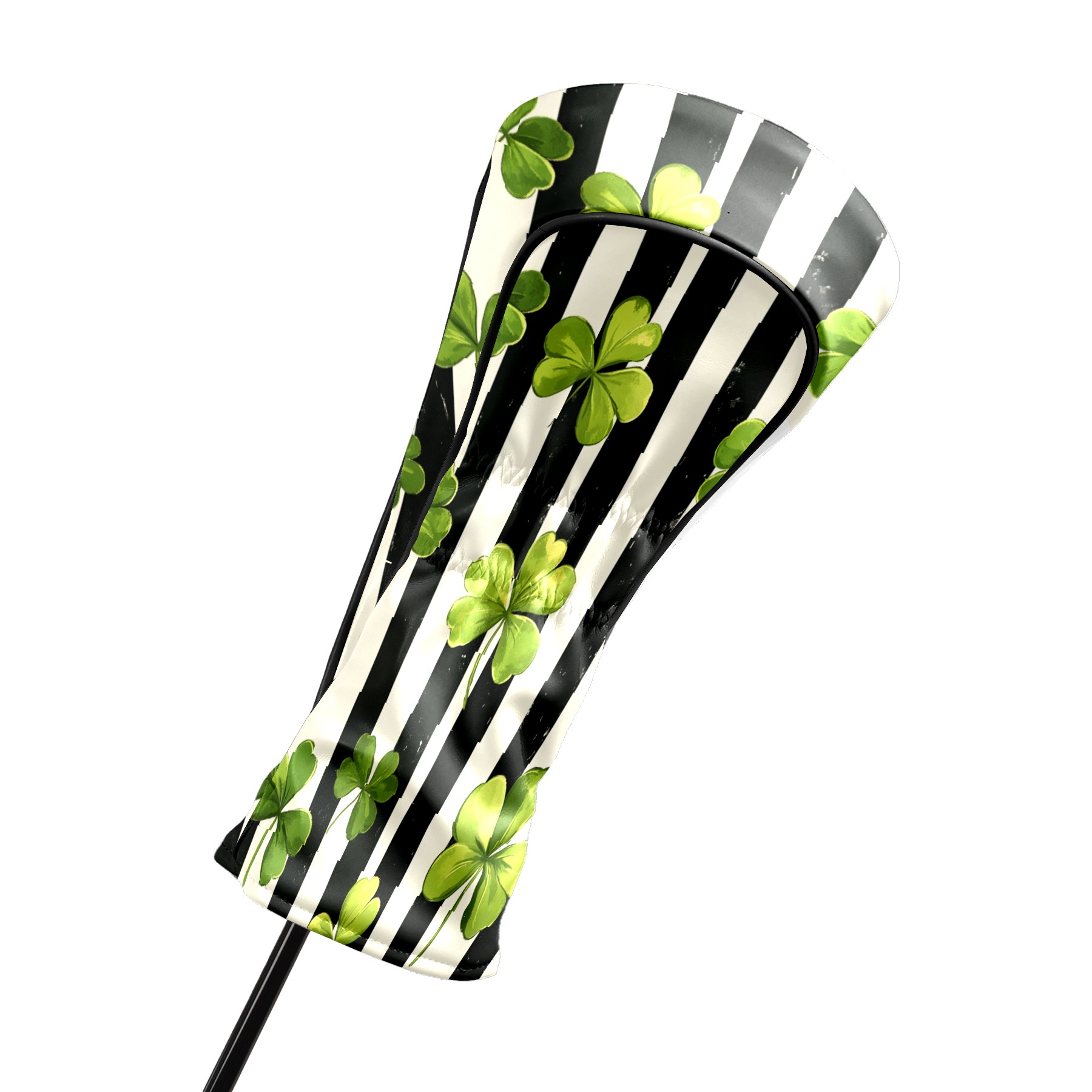 Golf Headcovers Fits Driver Hybrid Fairway 3/5 Wood, Waterproof PU Leather Golf Club Protector, Ideal Sports Accessories & Golfer Gift Striped Clover Pattern