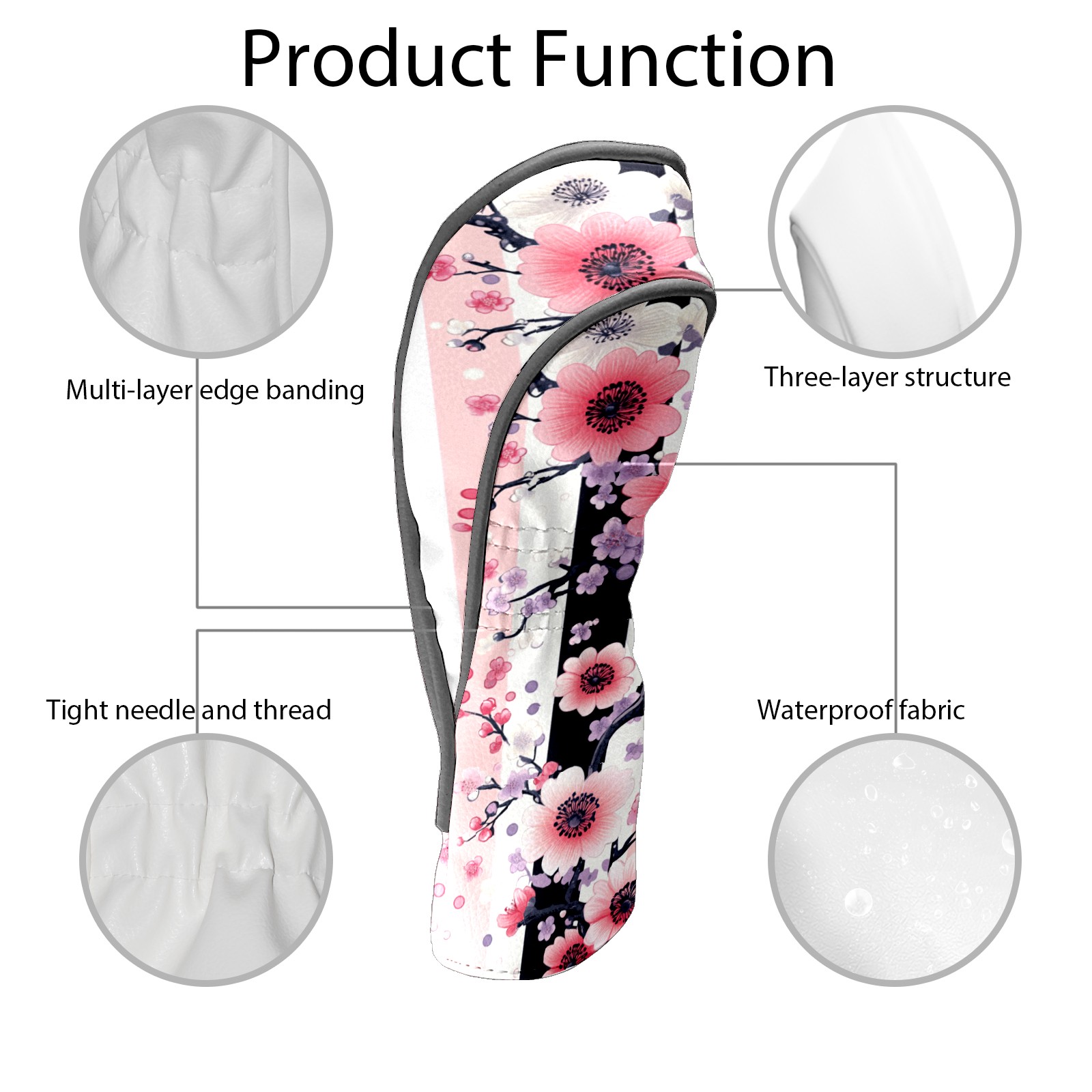 Golf Headcovers Fits Driver Hybrid Fairway 3/5 Wood, Waterproof PU Leather Golf Club Protector, Ideal Sports Accessories & Golfer Gift Pink Floral Pattern1