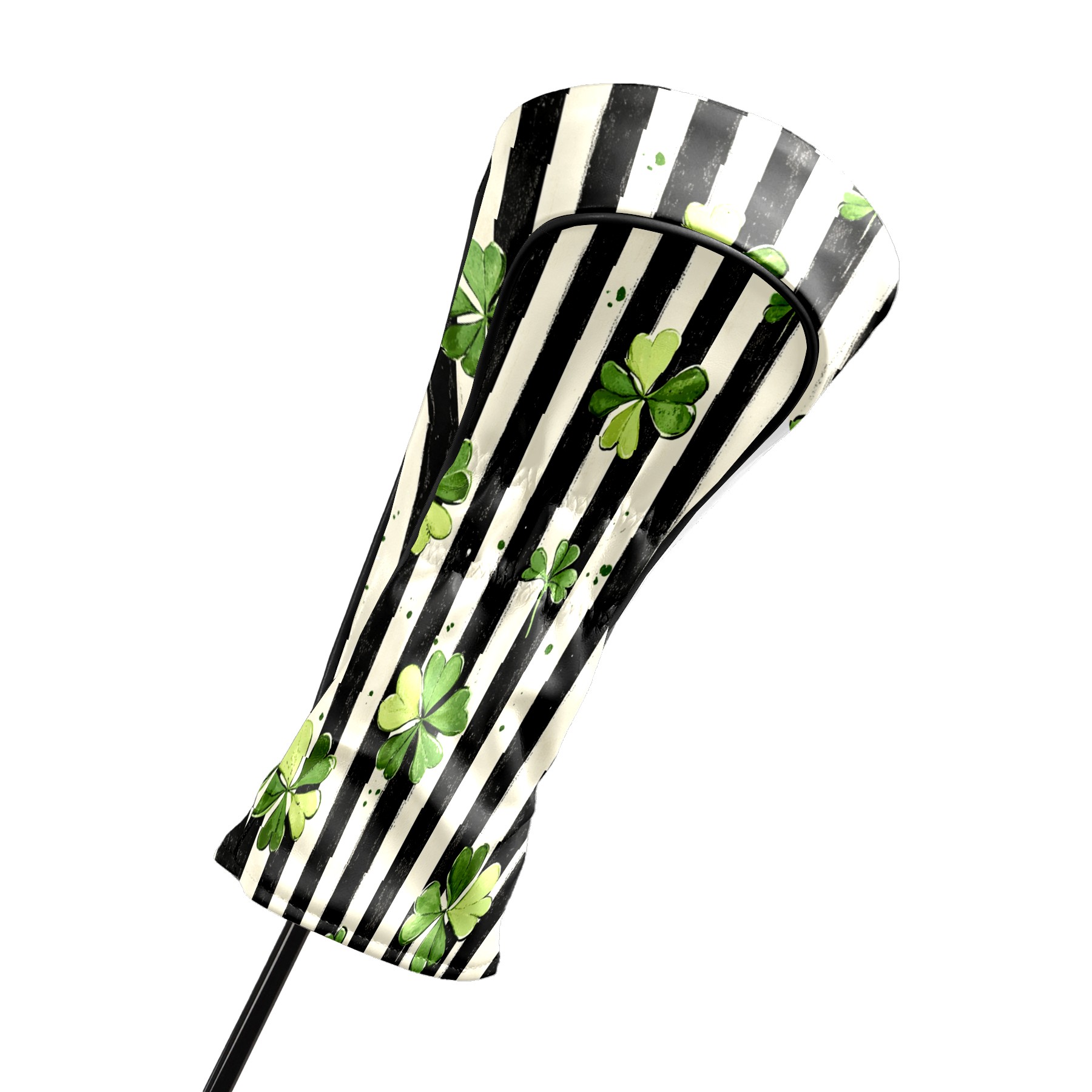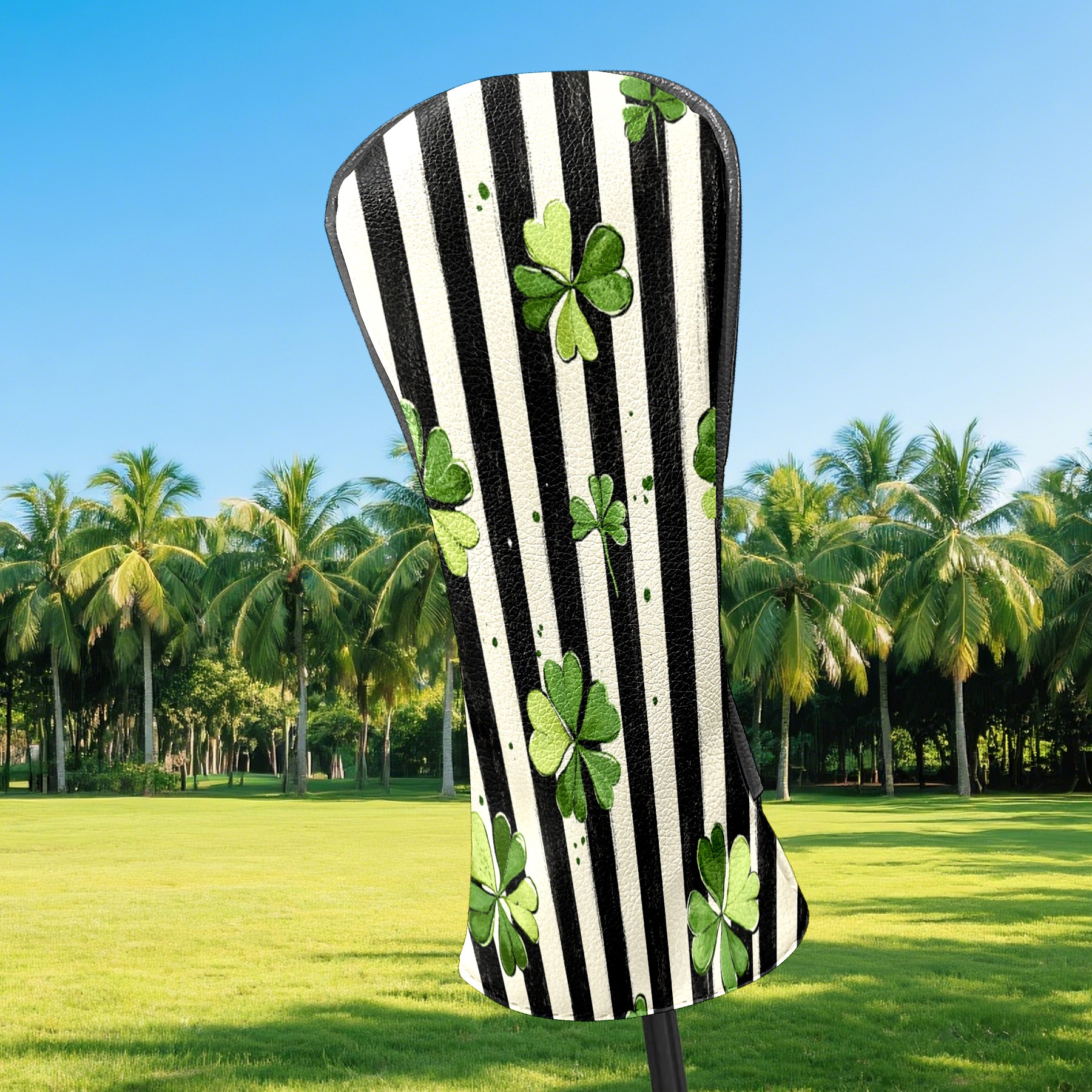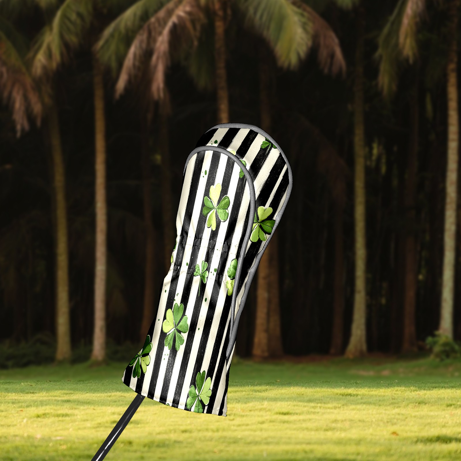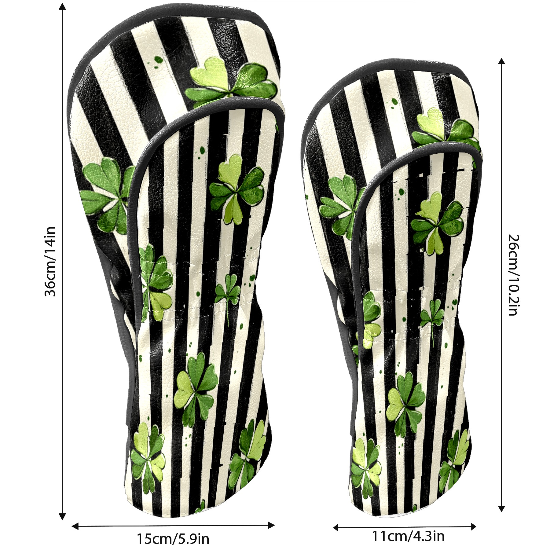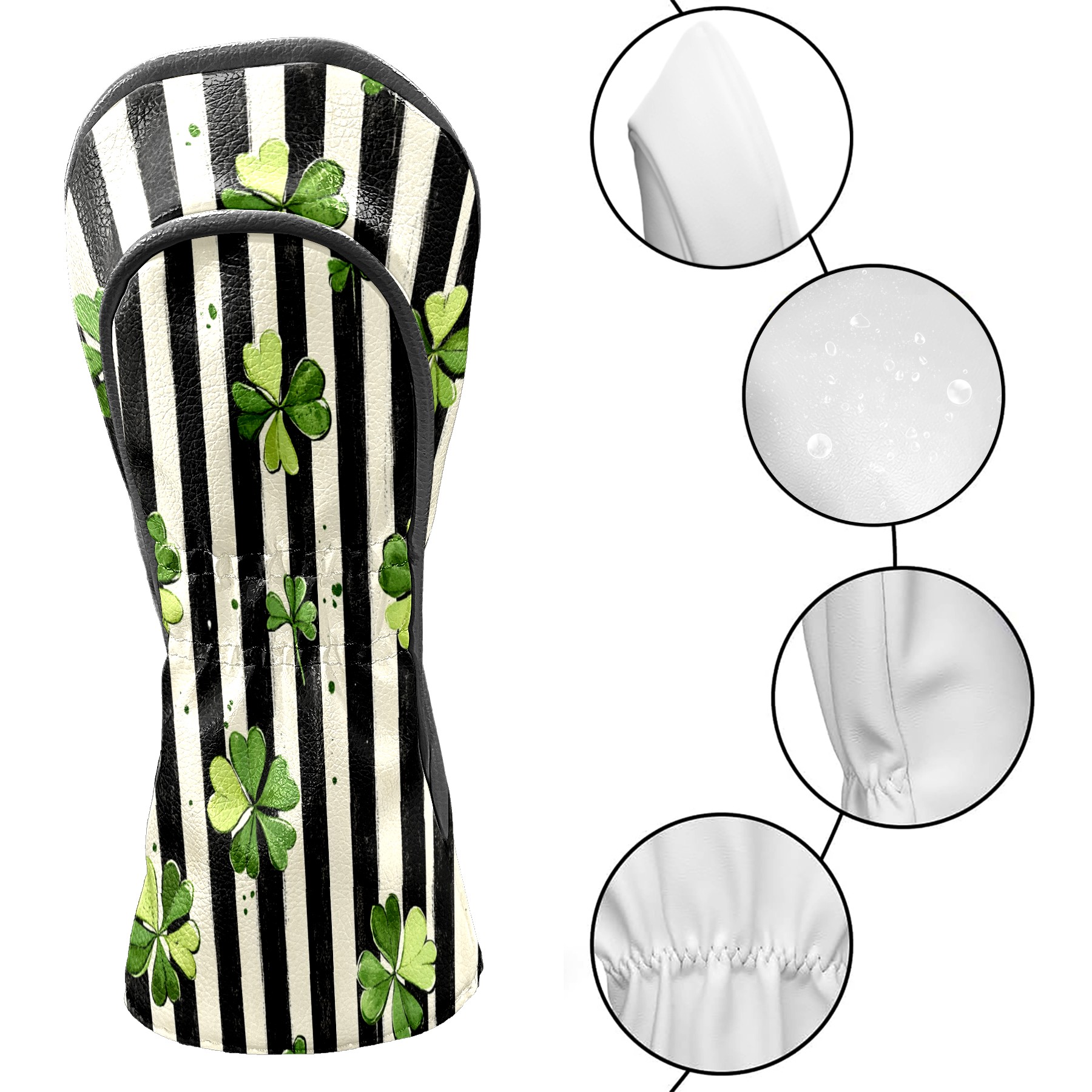 Golf Headcovers Fits Driver Hybrid Fairway 3/5 Wood, Waterproof PU Leather Golf Club Protector, Ideal Sports Accessories & Golfer Gift Striped Clover Pattern3