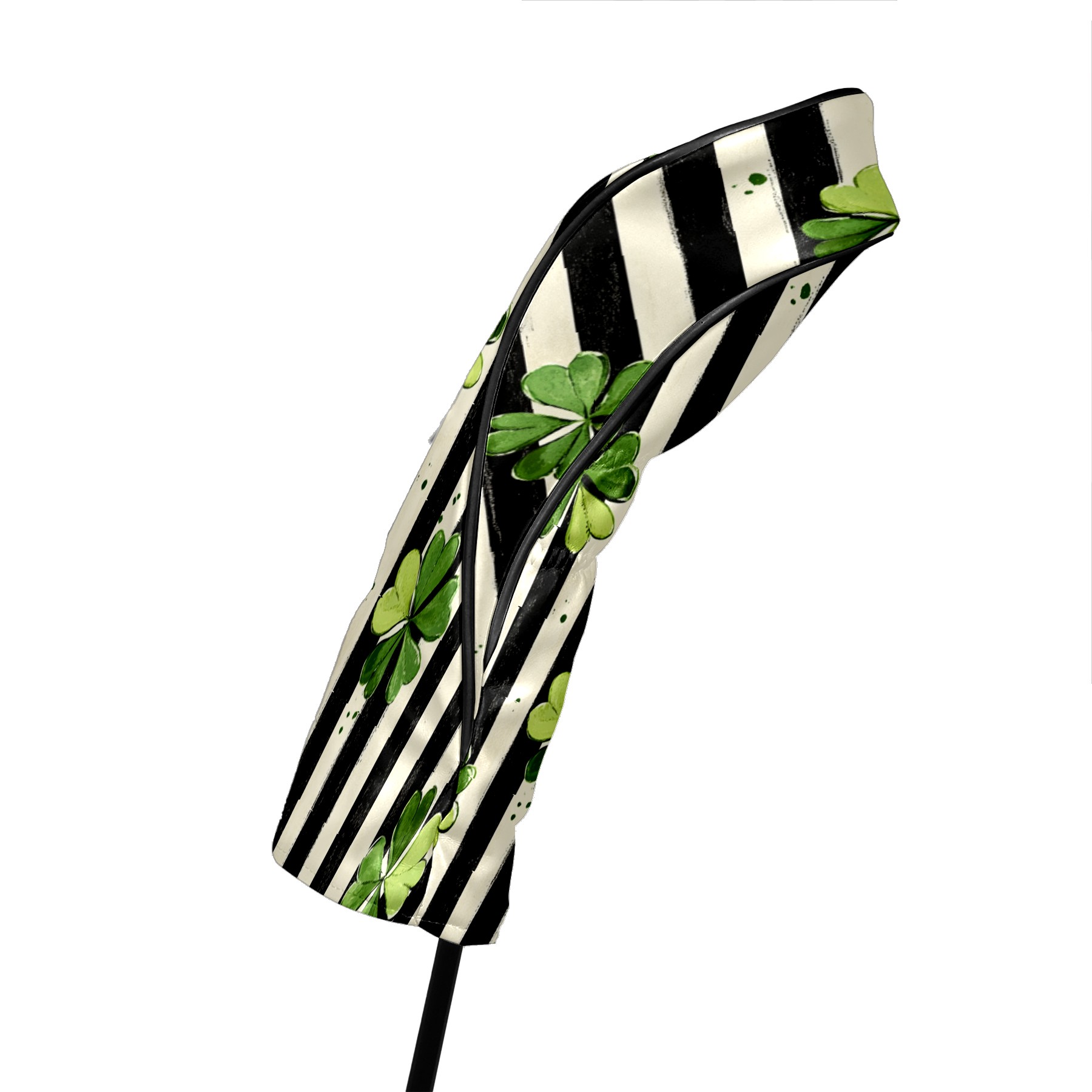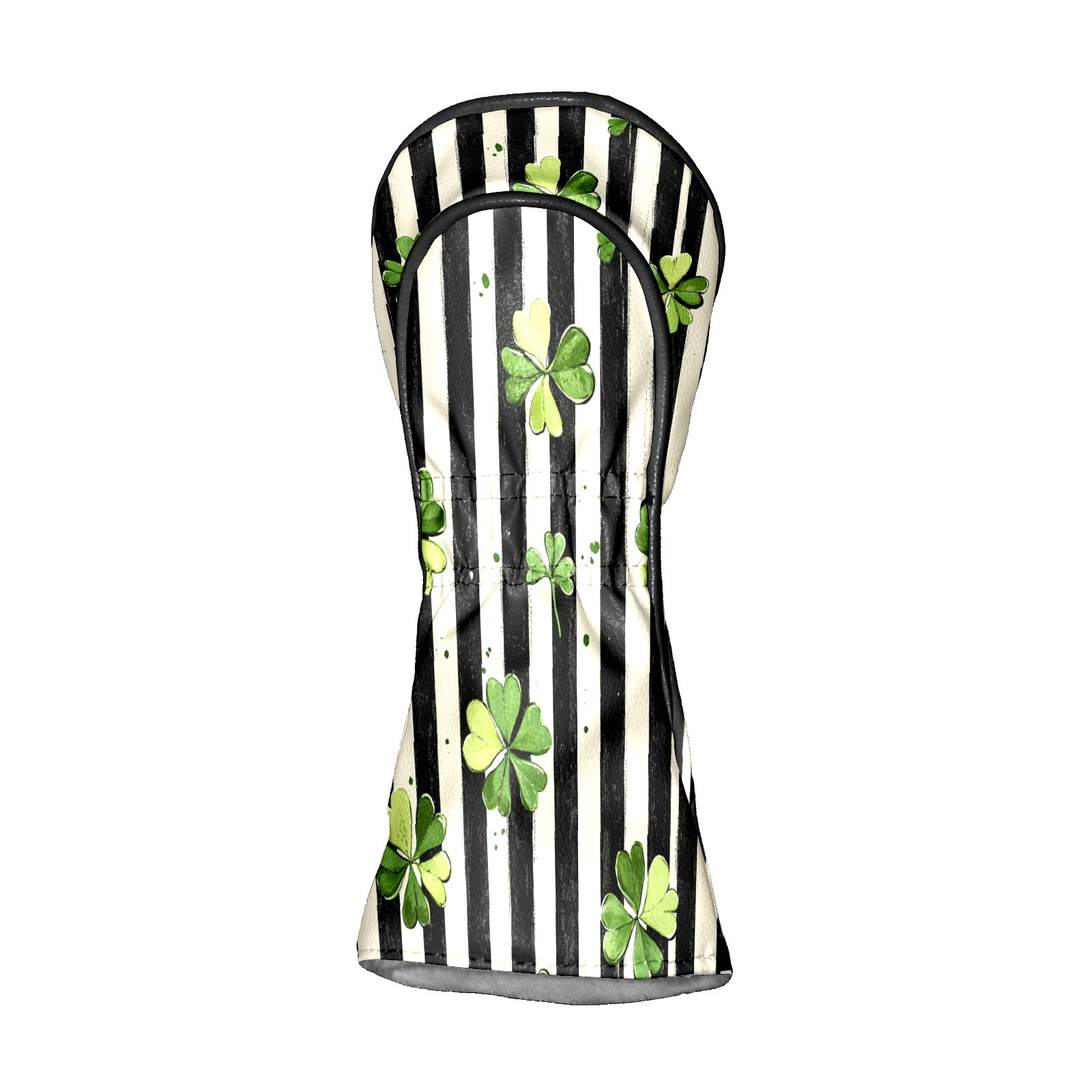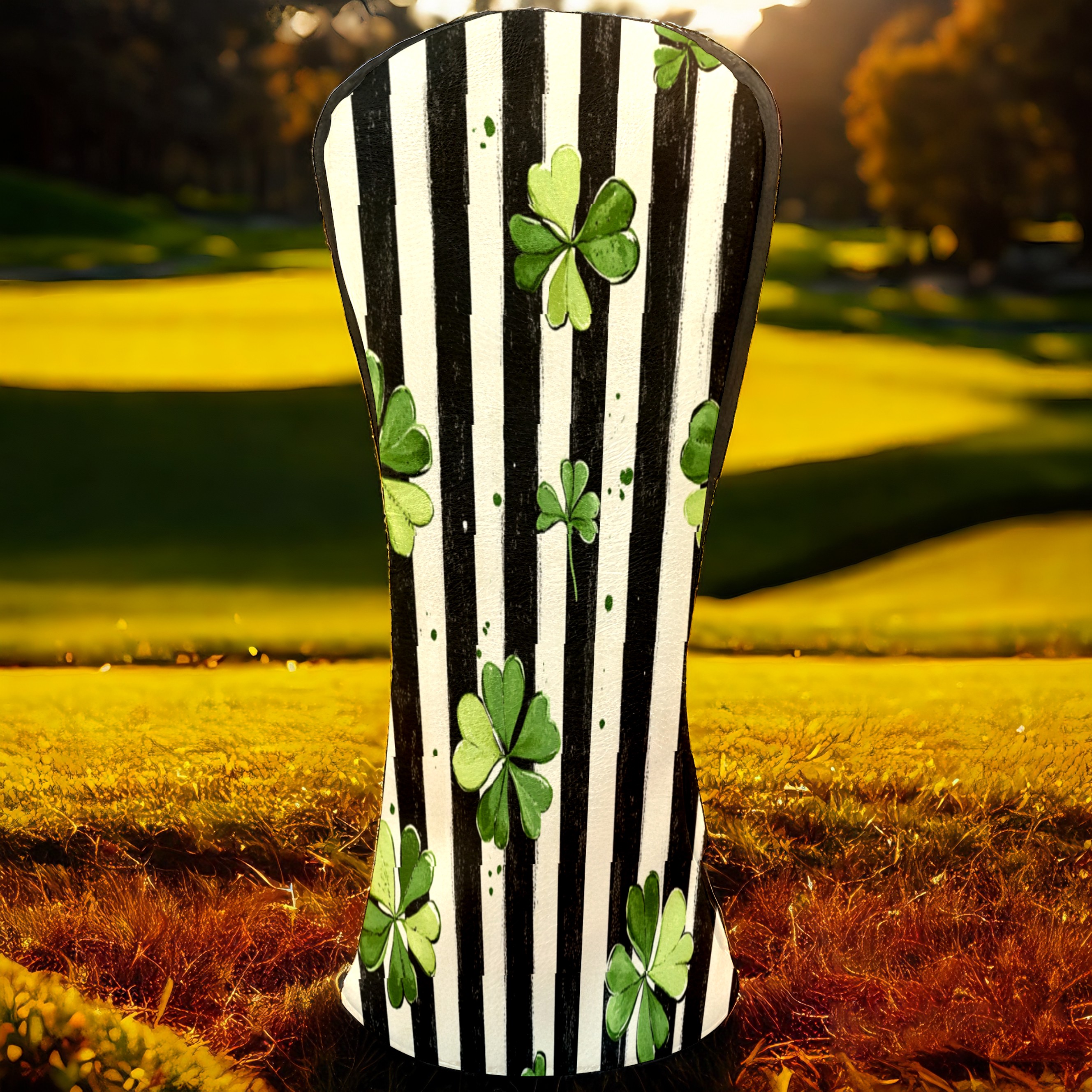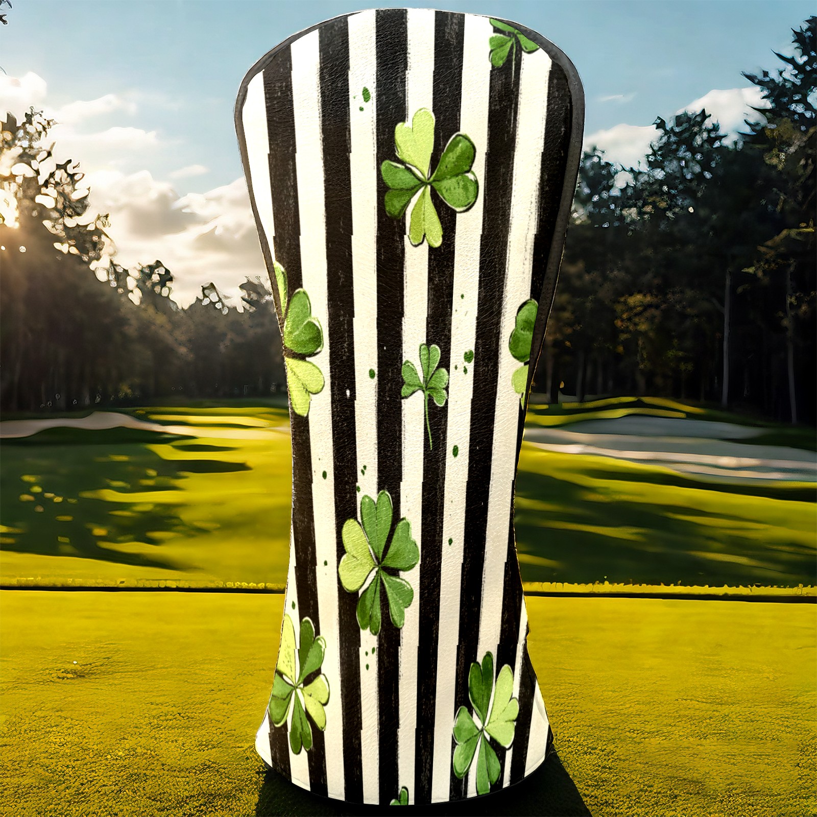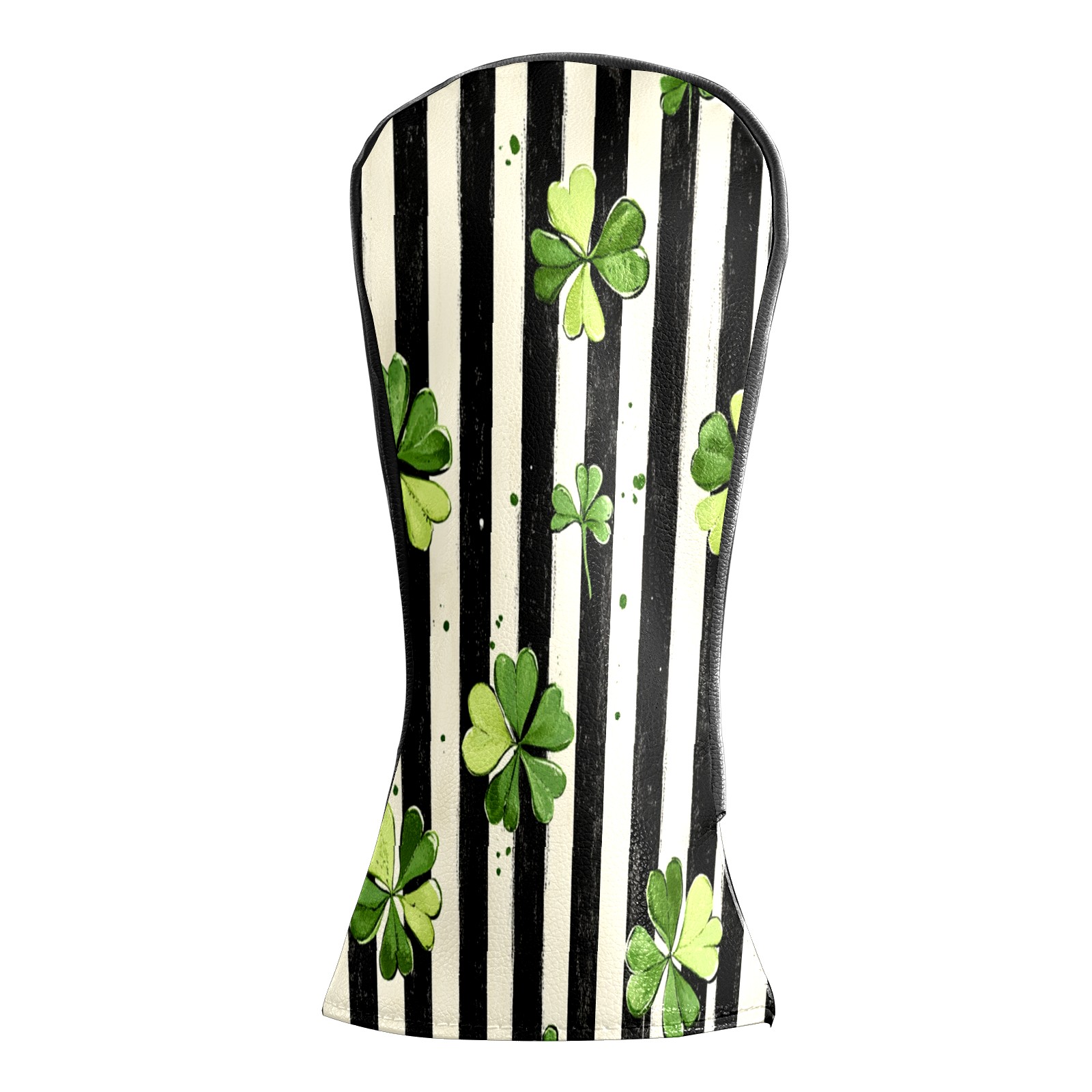 Golf Headcovers Fits Driver Hybrid Fairway 3/5 Wood, Waterproof PU Leather Golf Club Protector, Ideal Sports Accessories & Golfer Gift Striped Clover Pattern3