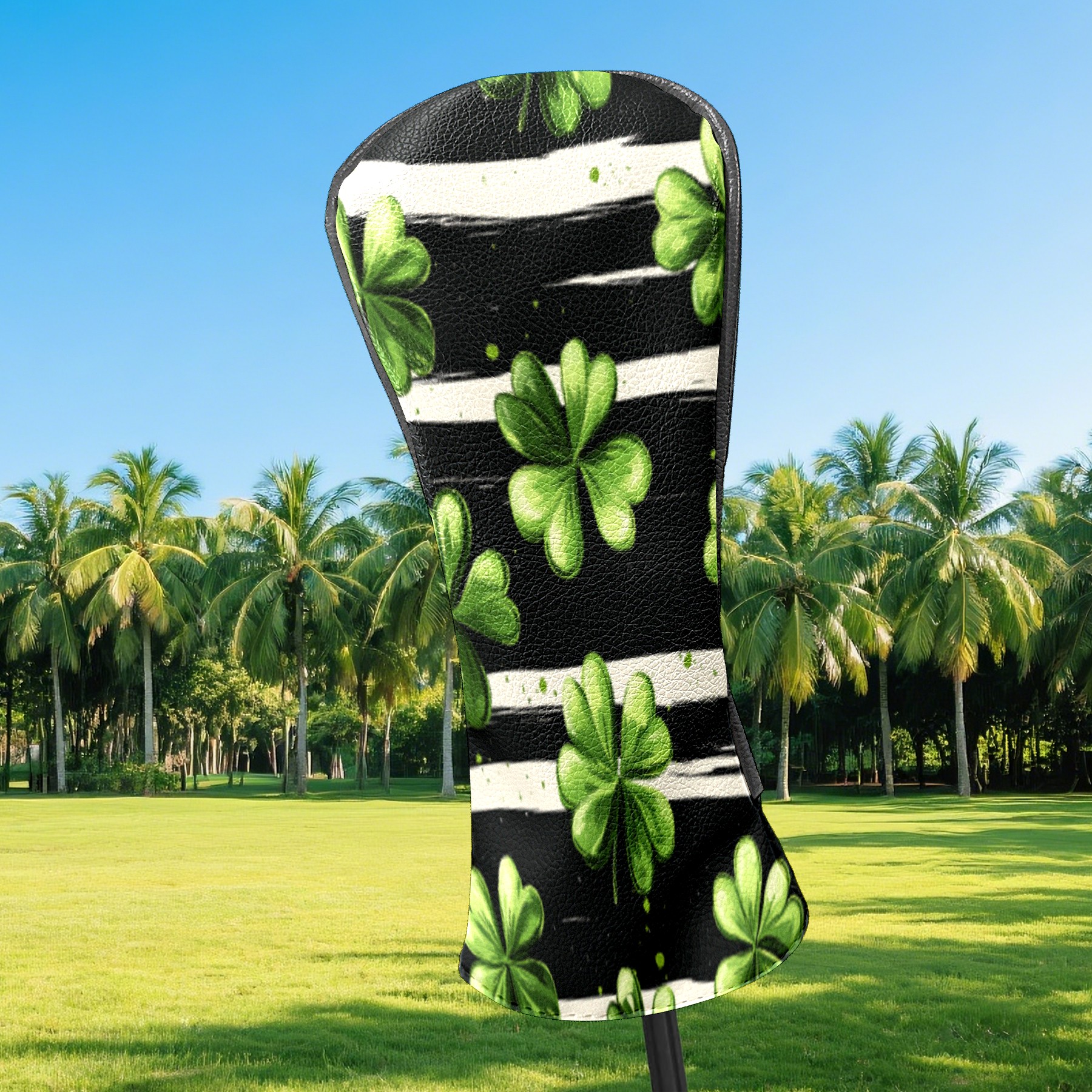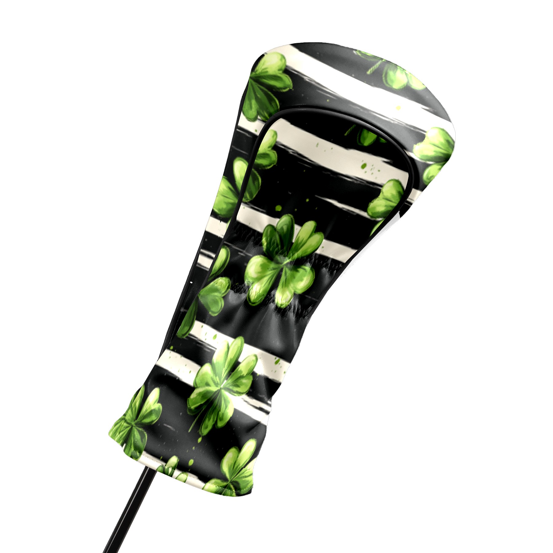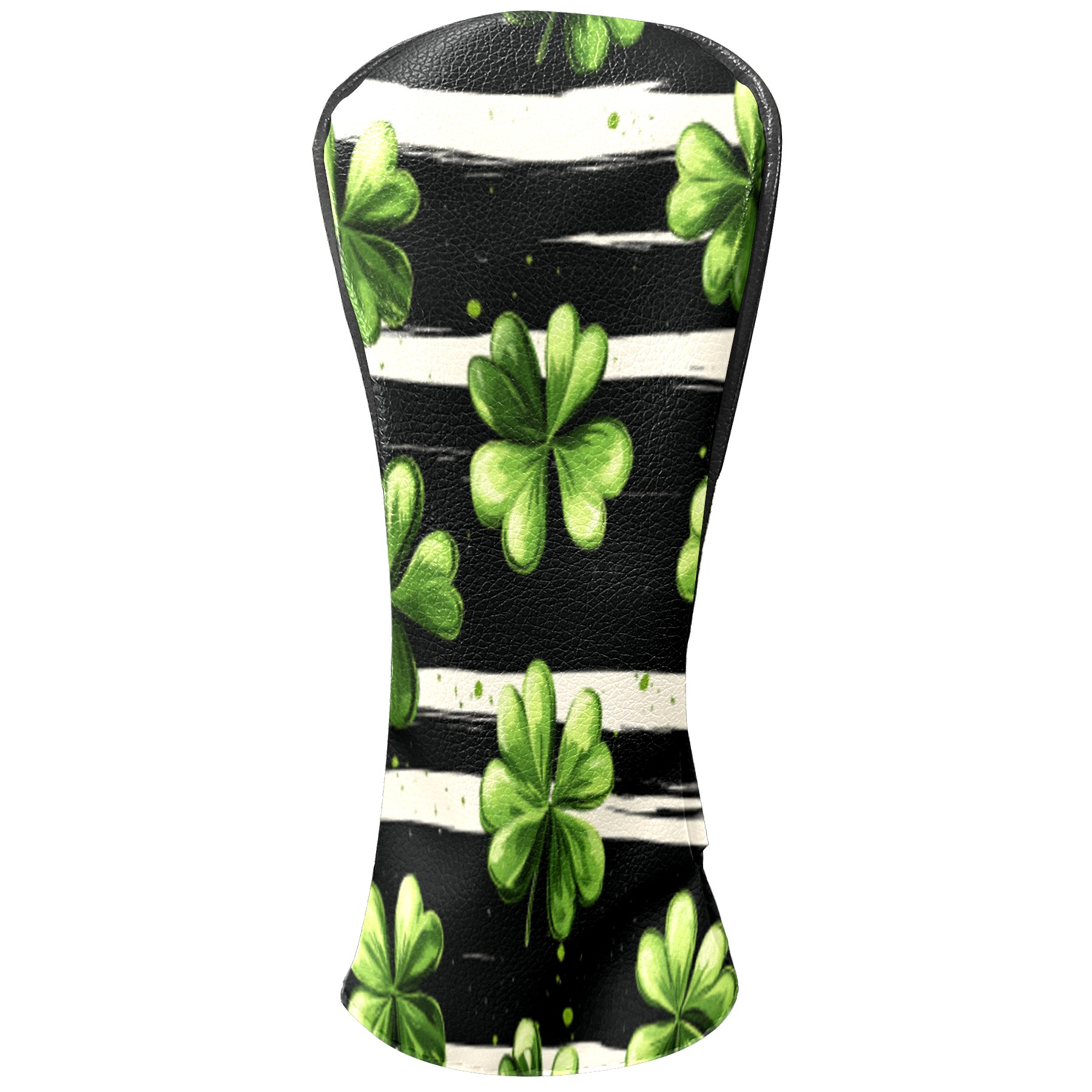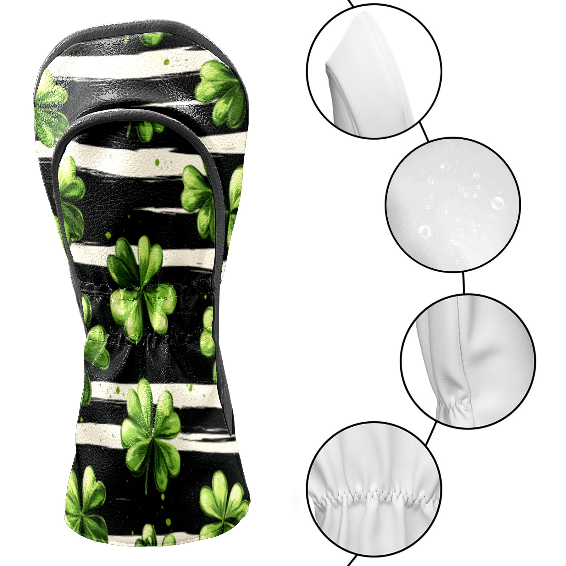 Golf Headcovers Fits Driver Hybrid Fairway 3/5 Wood, Waterproof PU Leather Golf Club Protector, Ideal Sports Accessories & Golfer Gift Striped Clover Pattern5