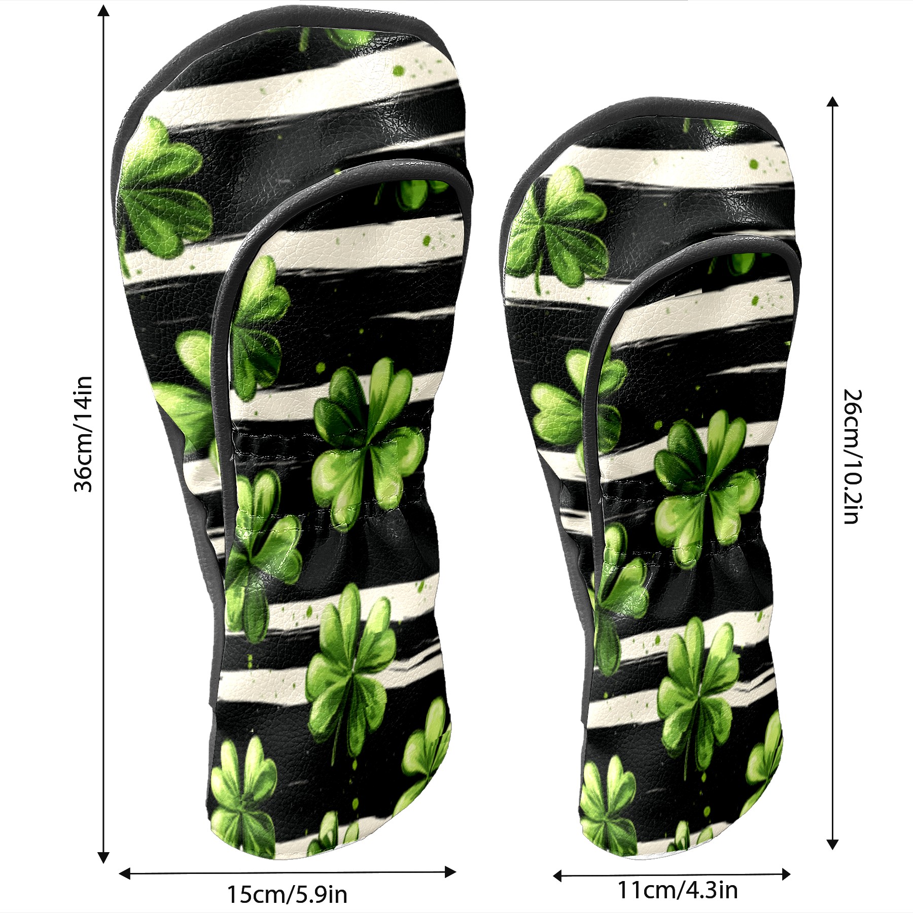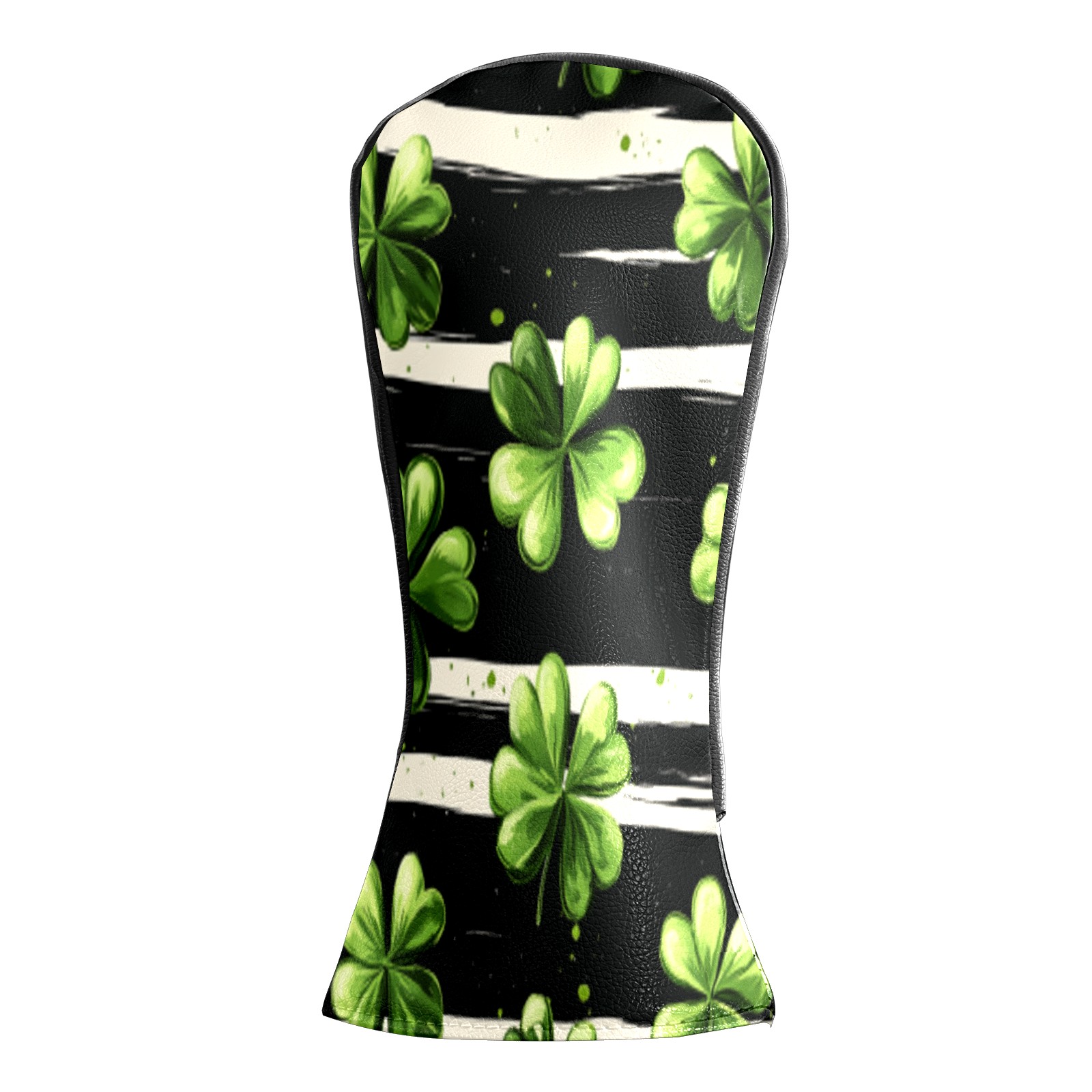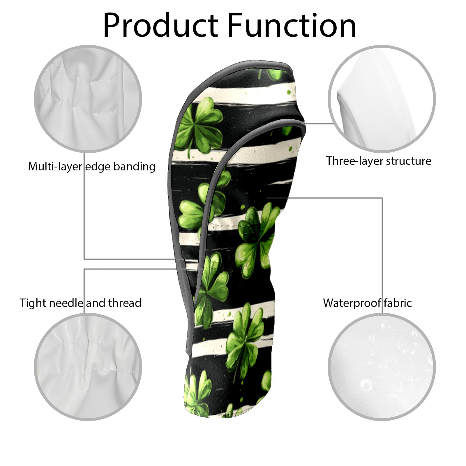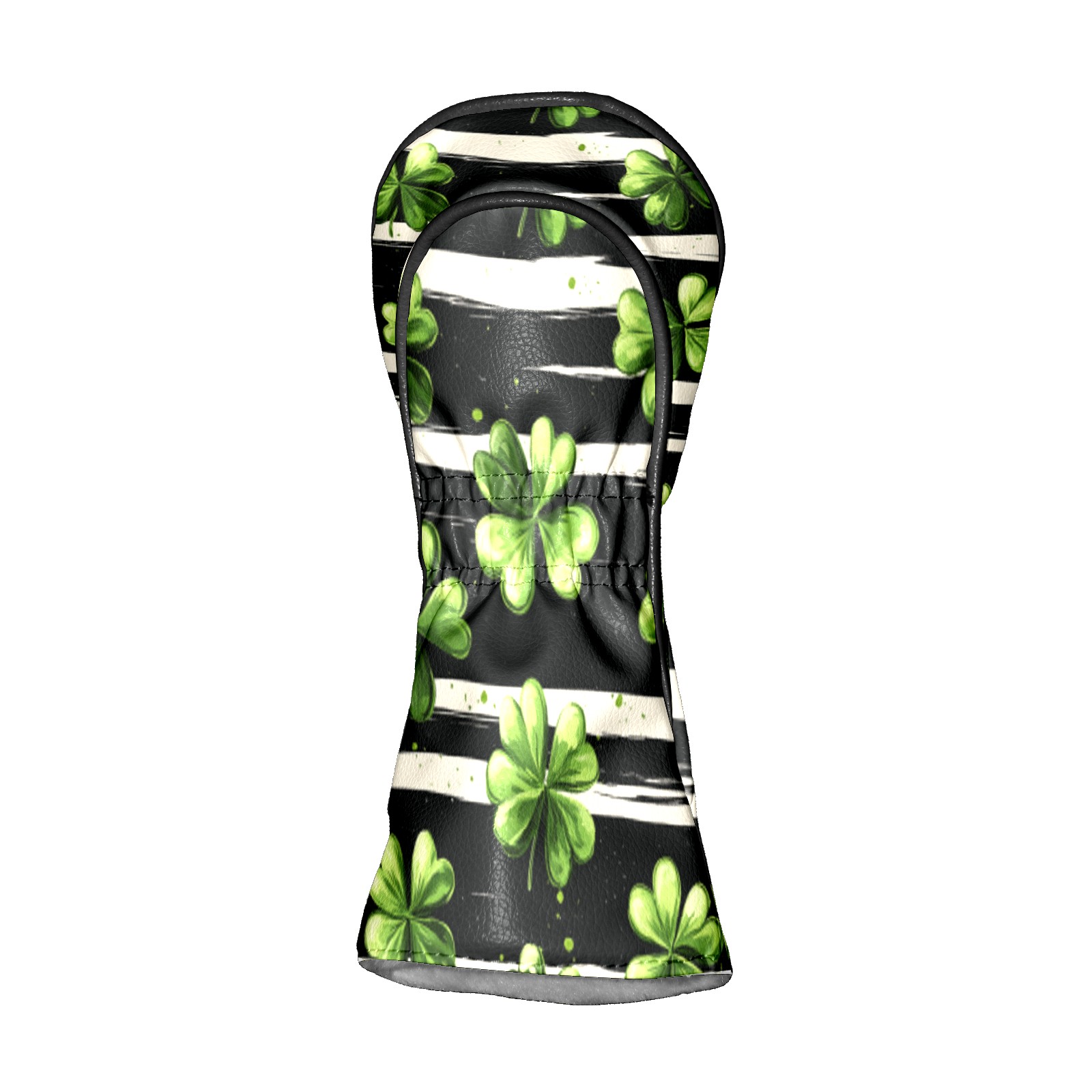 Golf Headcovers Fits Driver Hybrid Fairway 3/5 Wood, Waterproof PU Leather Golf Club Protector, Ideal Sports Accessories & Golfer Gift Striped Clover Pattern5