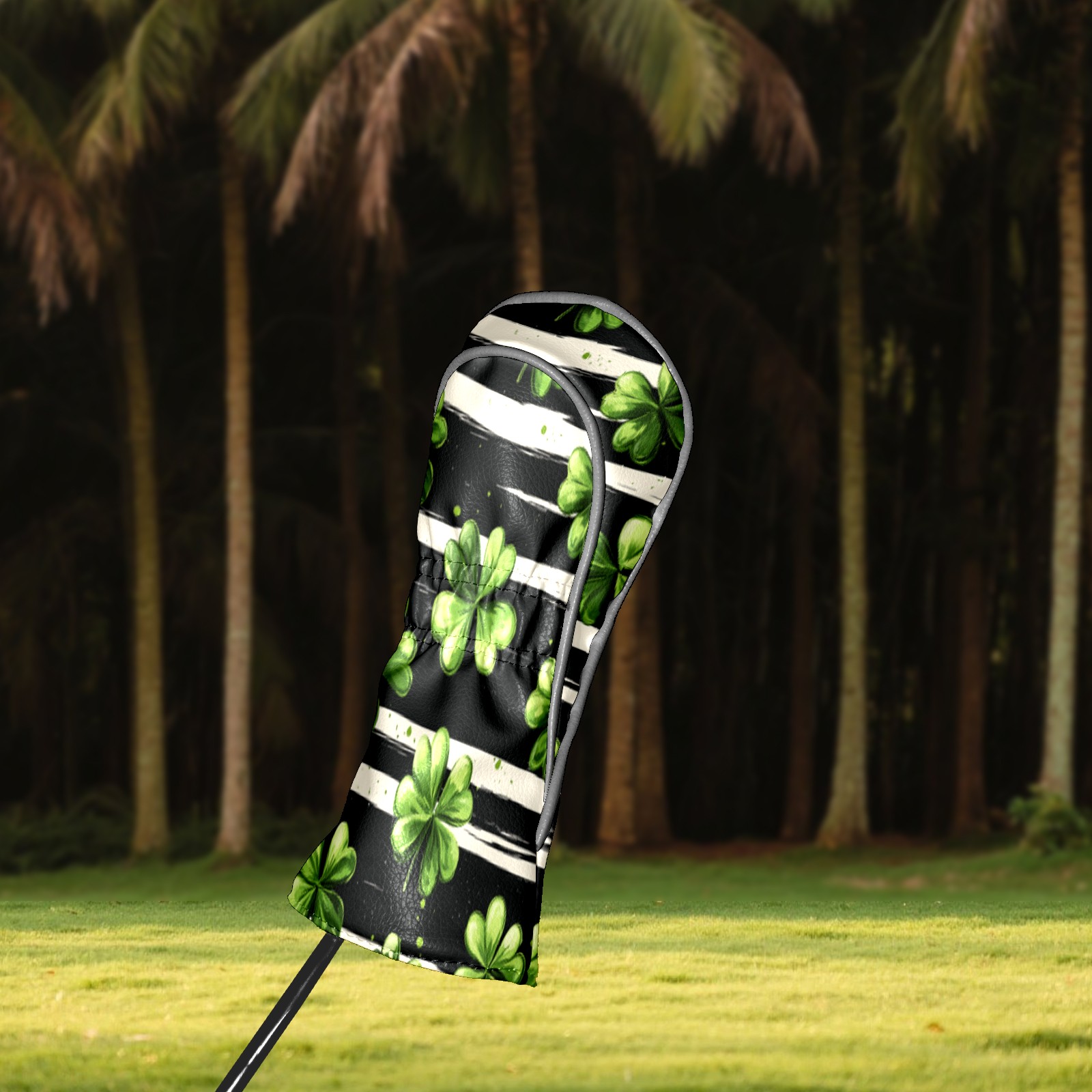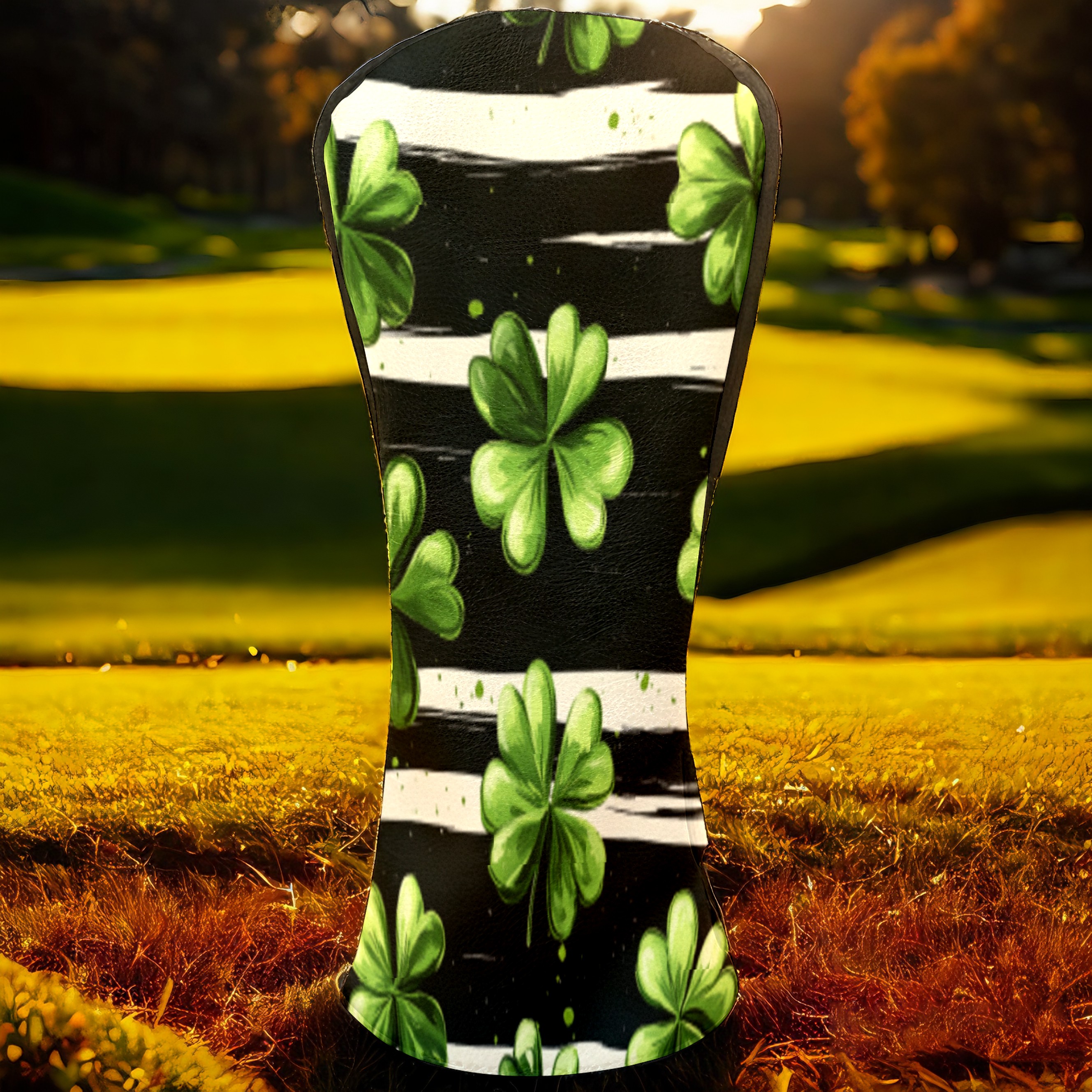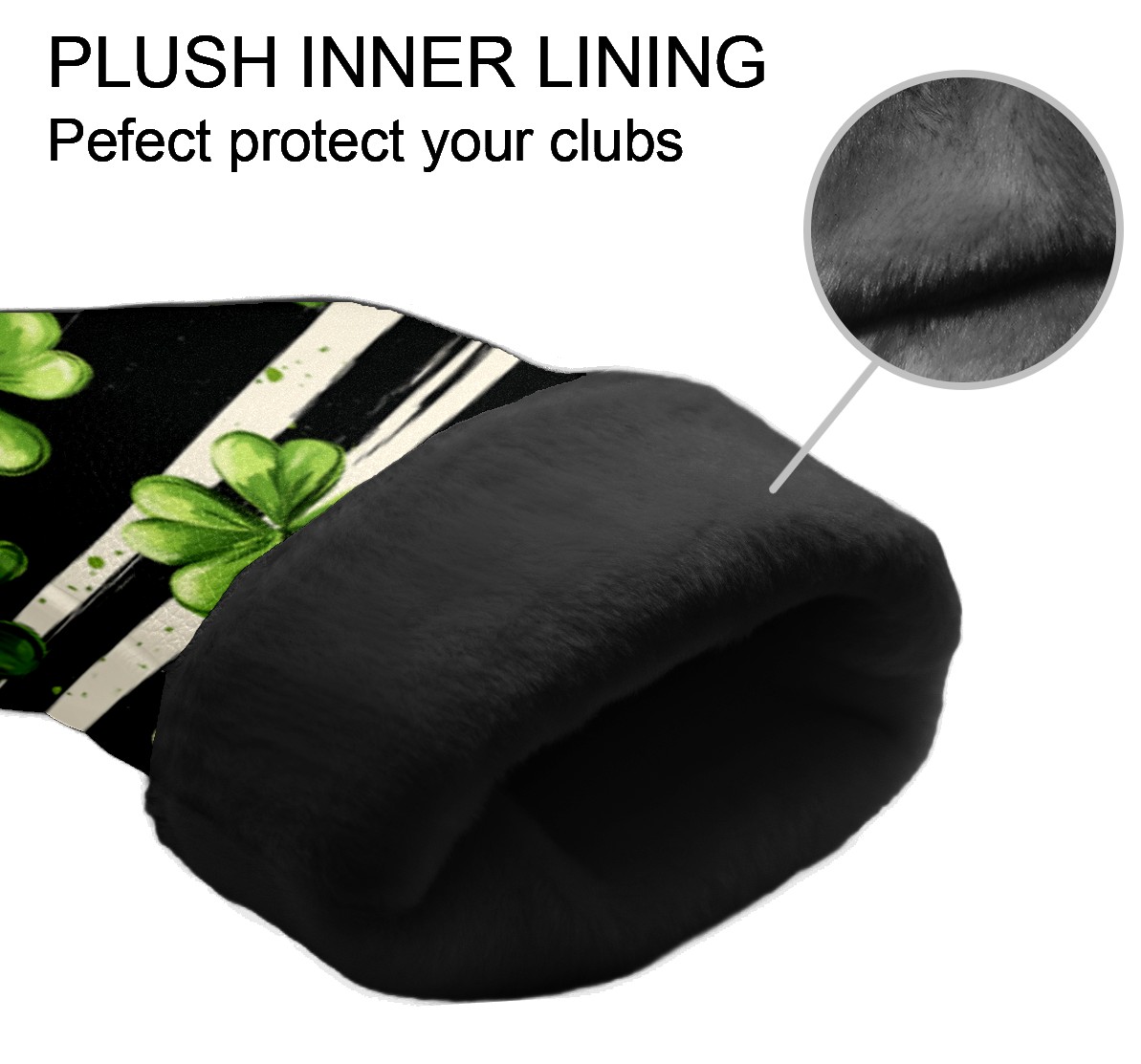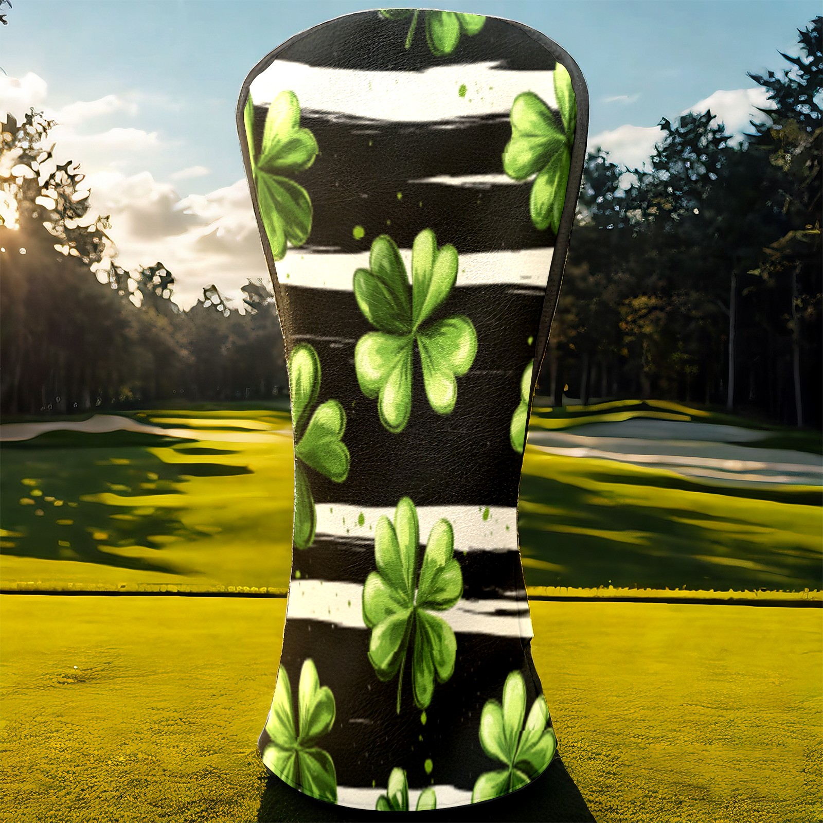 Golf Headcovers Fits Driver Hybrid Fairway 3/5 Wood, Waterproof PU Leather Golf Club Protector, Ideal Sports Accessories & Golfer Gift Striped Clover Pattern5