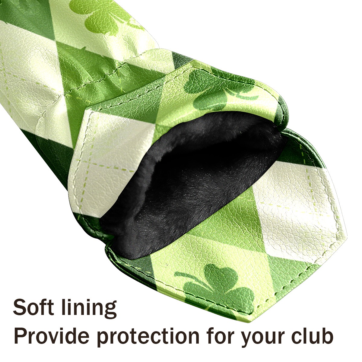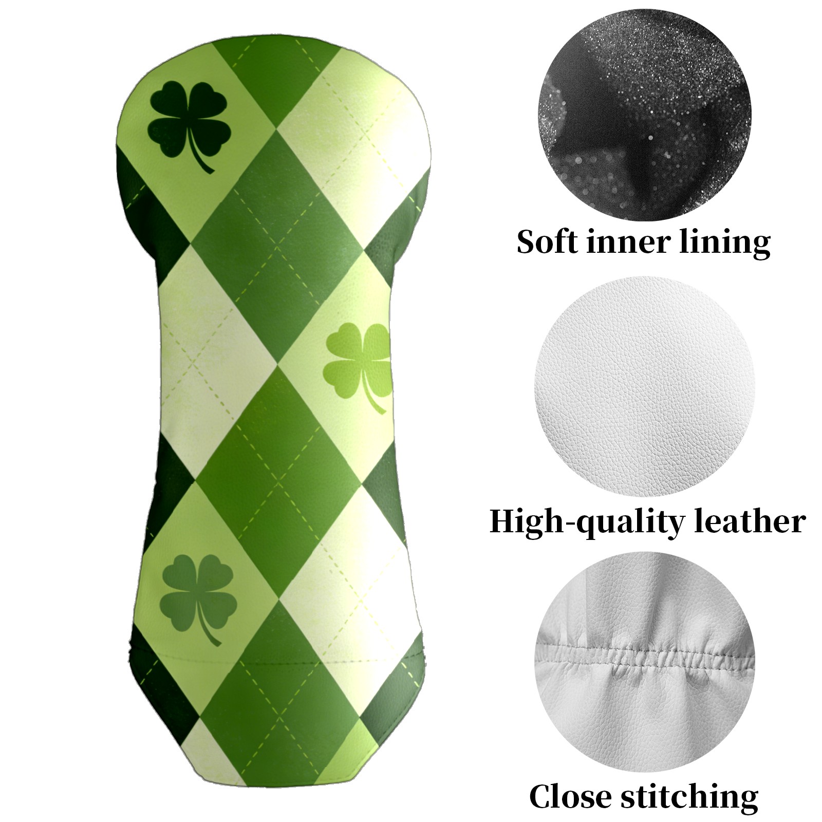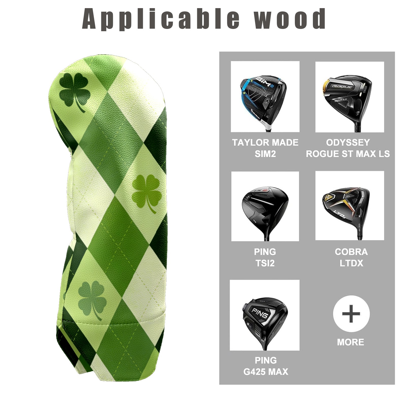 Golf Club Covers for Woods and Driver Hybrid Velvet Cover Leather Golf Headcover for Most Brand Club Men Women Four-leaf Clover 1