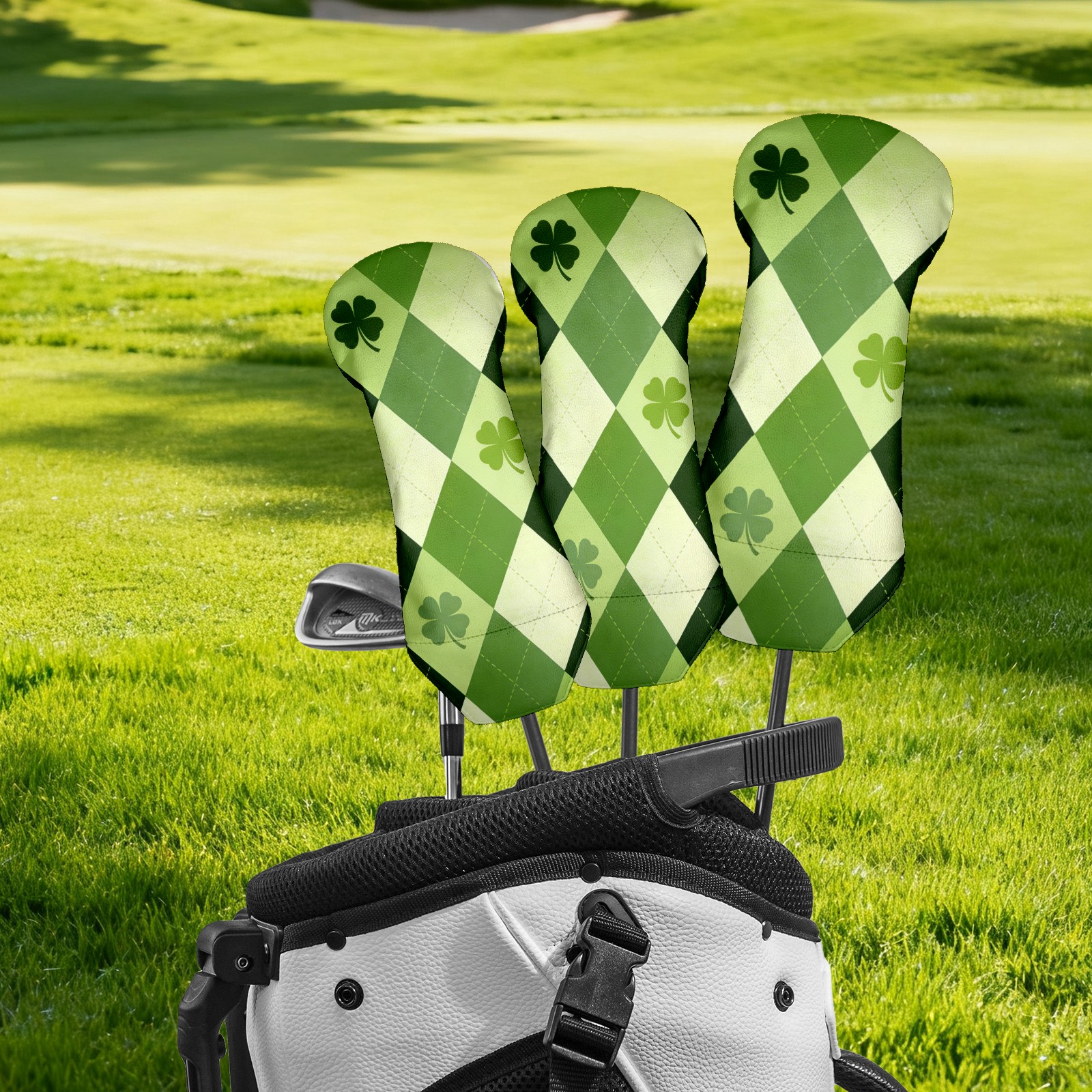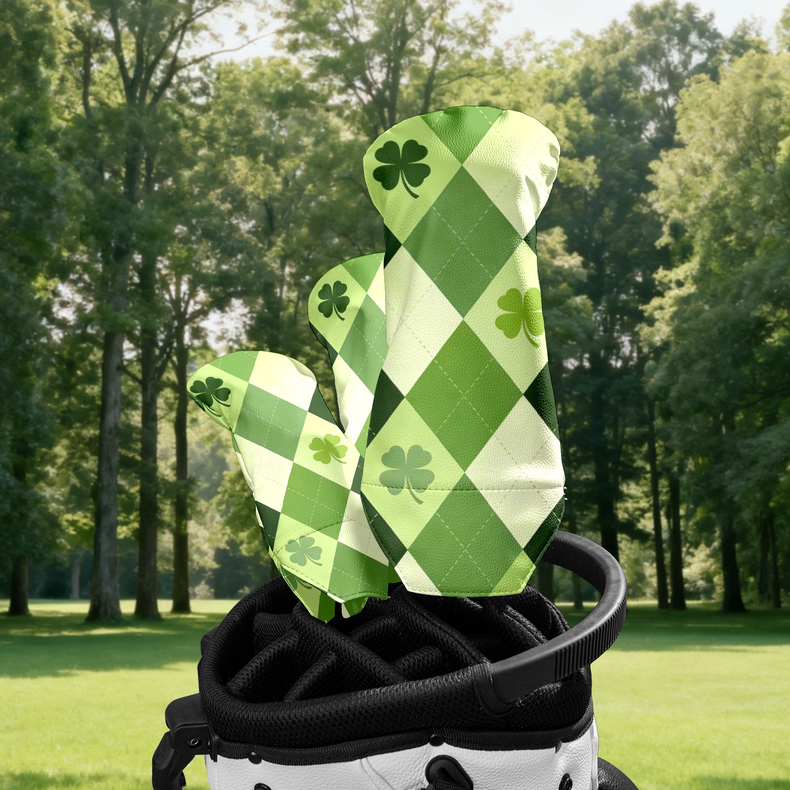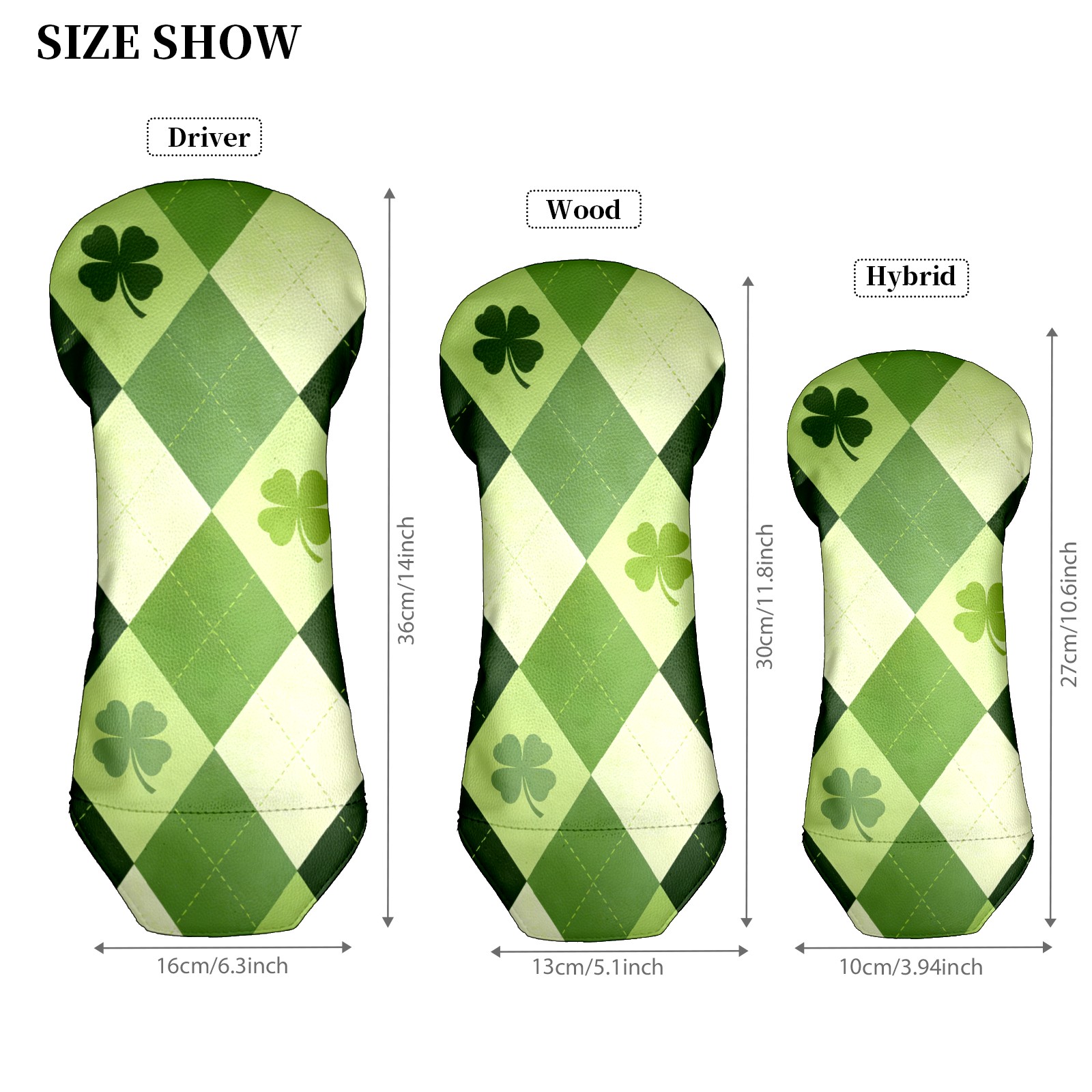 Golf Club Covers for Woods and Driver Hybrid Velvet Cover Leather Golf Headcover for Most Brand Club Men Women Four-leaf Clover 1