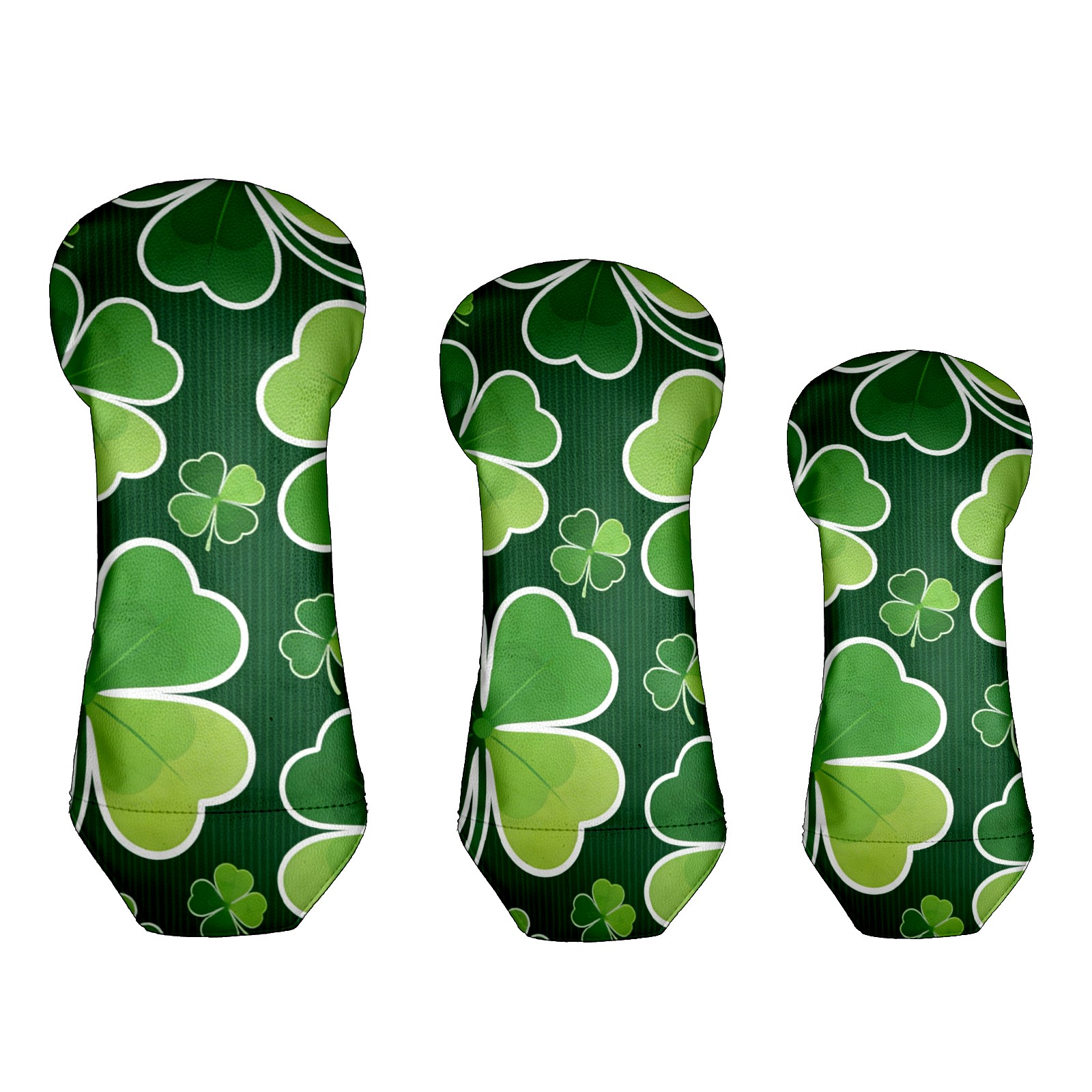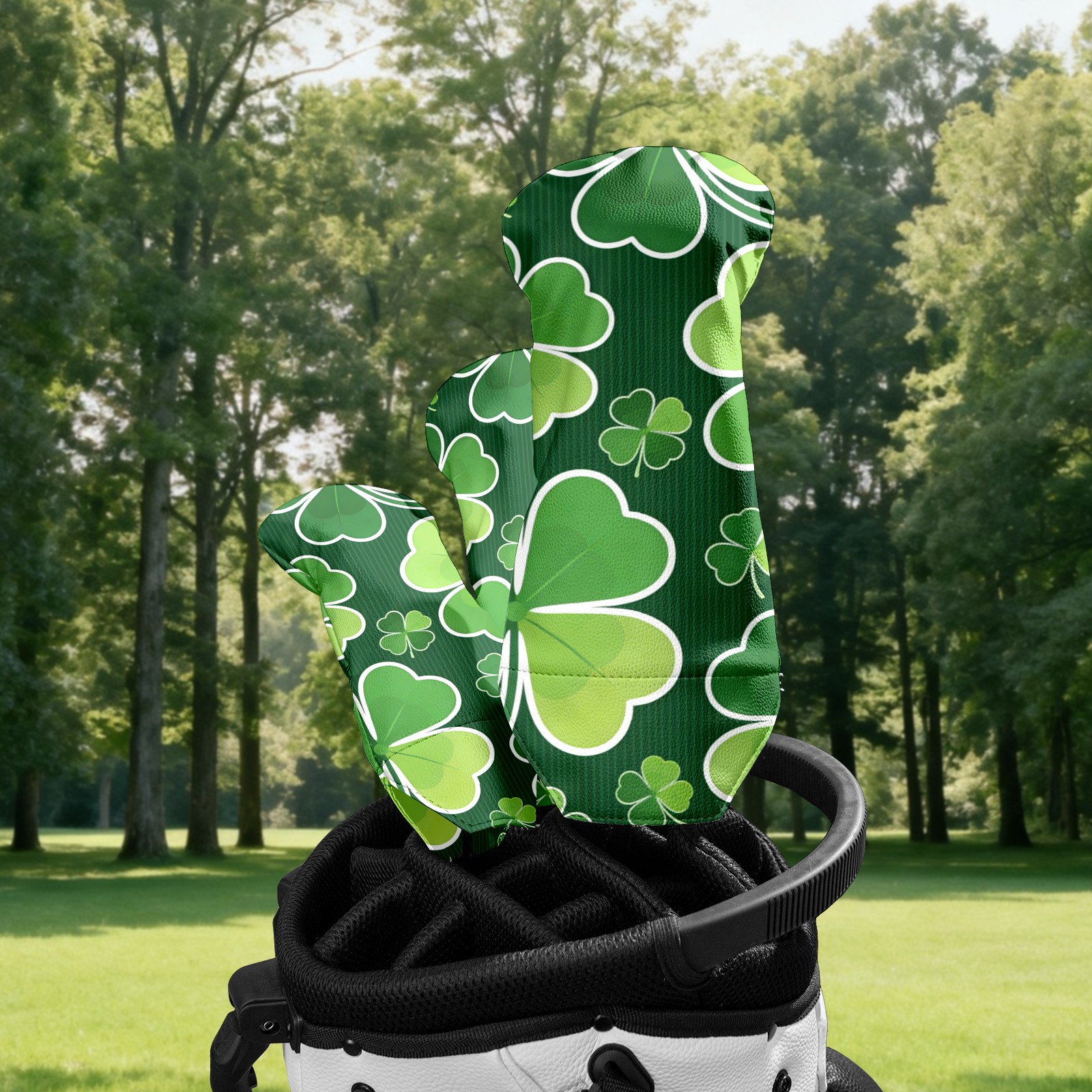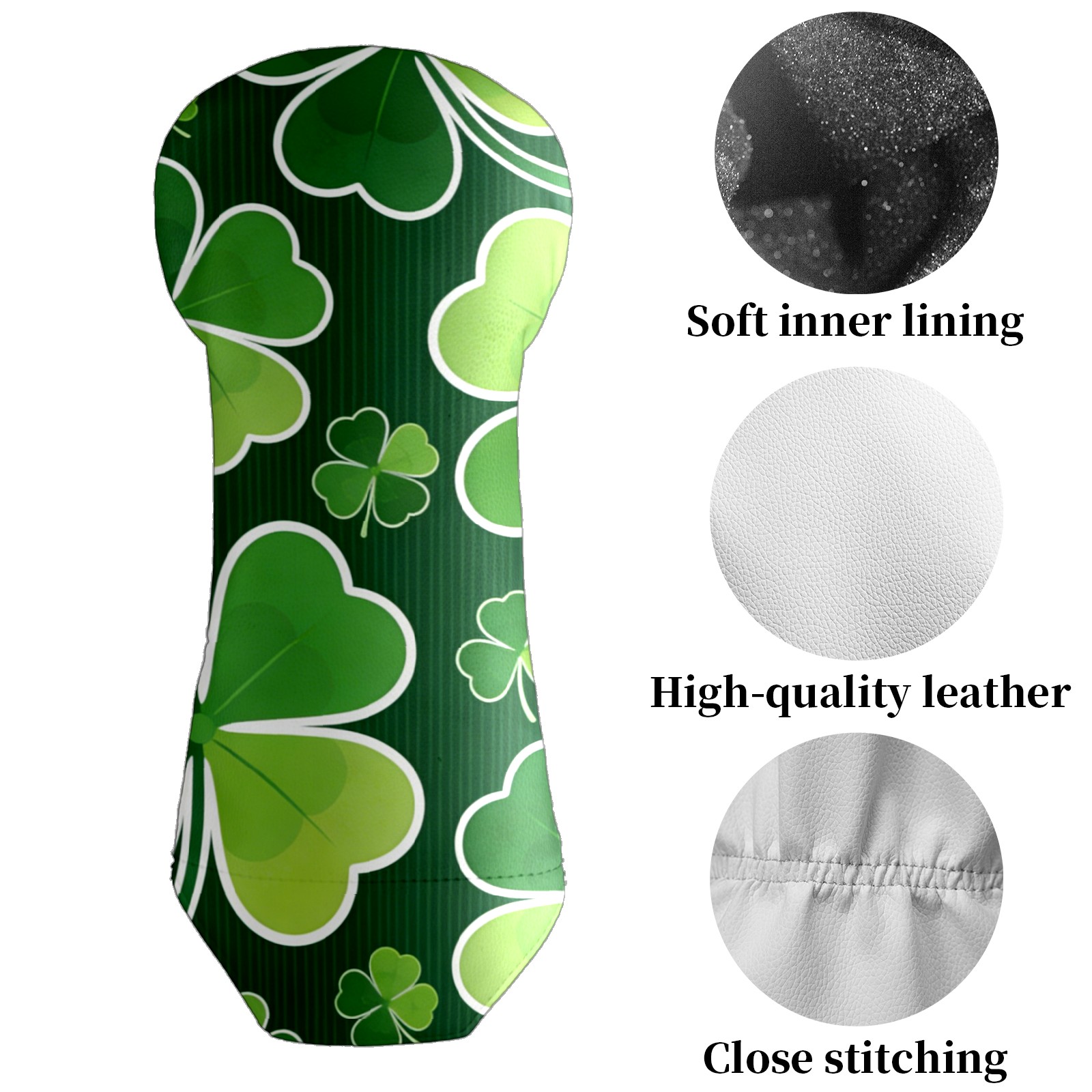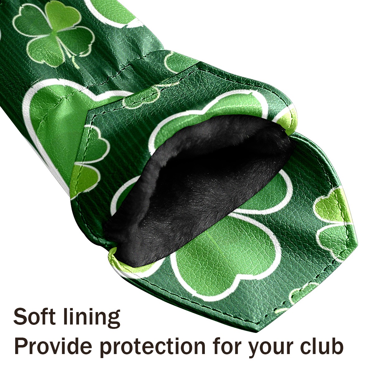 Golf Club Covers for Woods and Driver Hybrid Velvet Cover Leather Golf Headcover for Most Brand Club Men Women Dark Green Four-leaf Clover