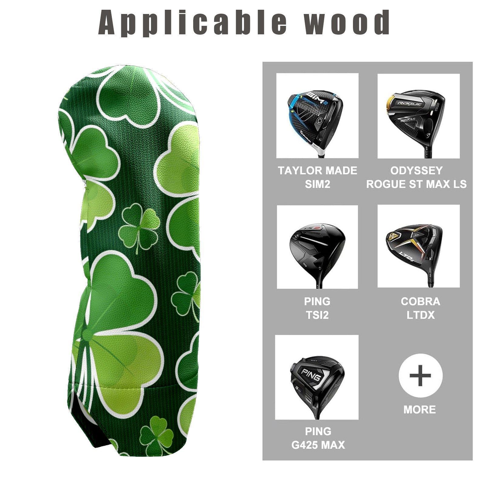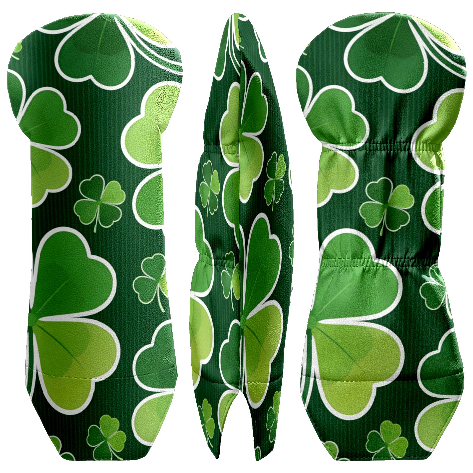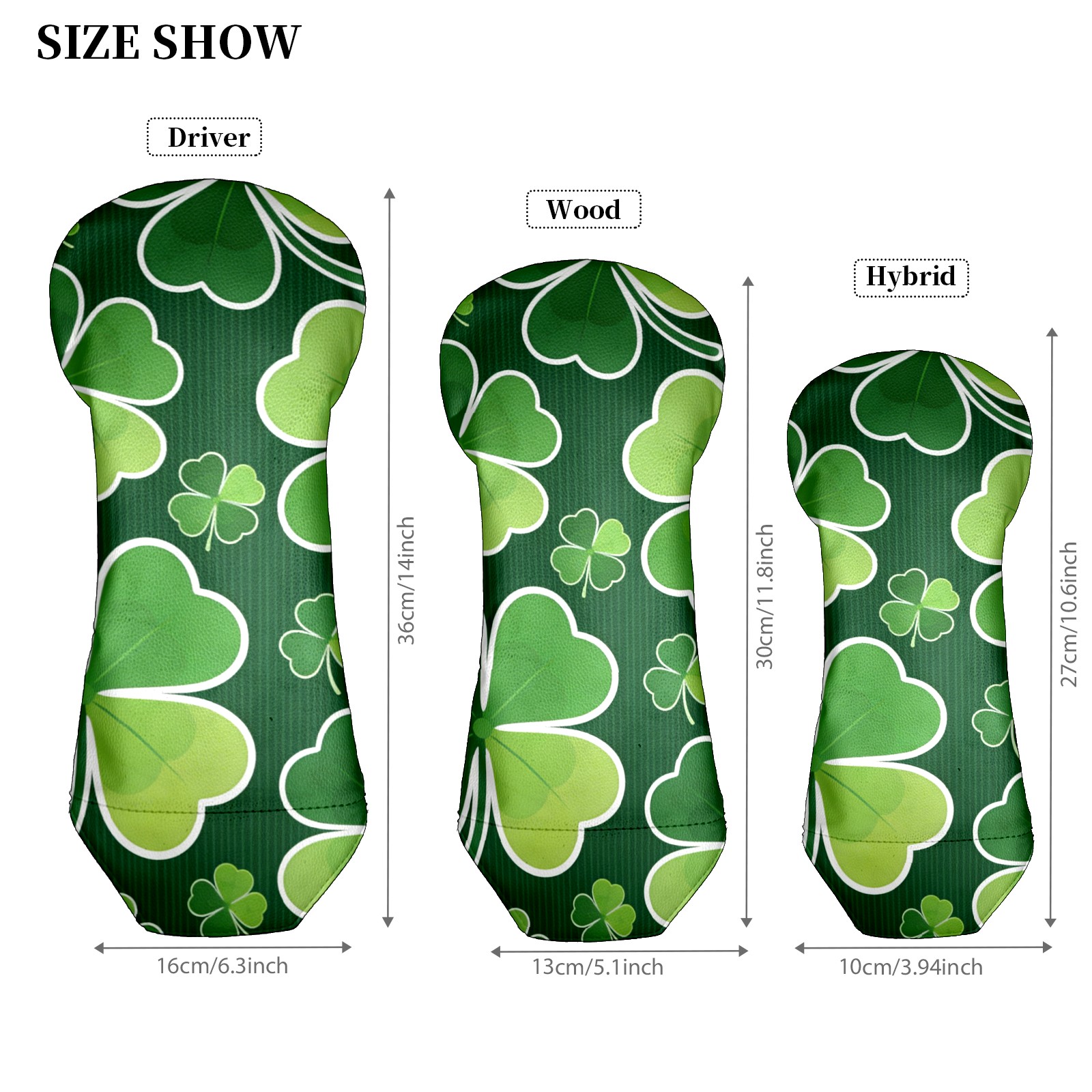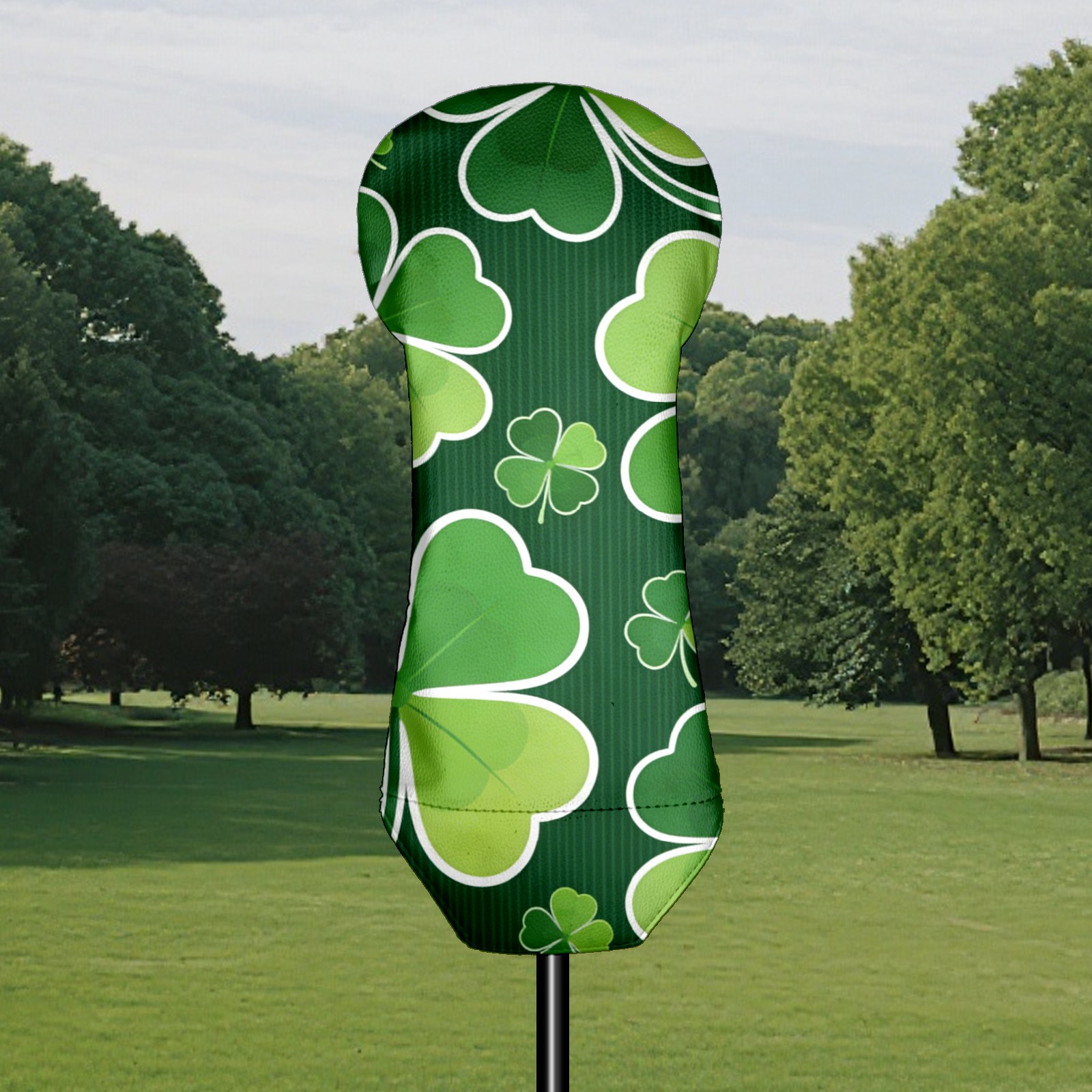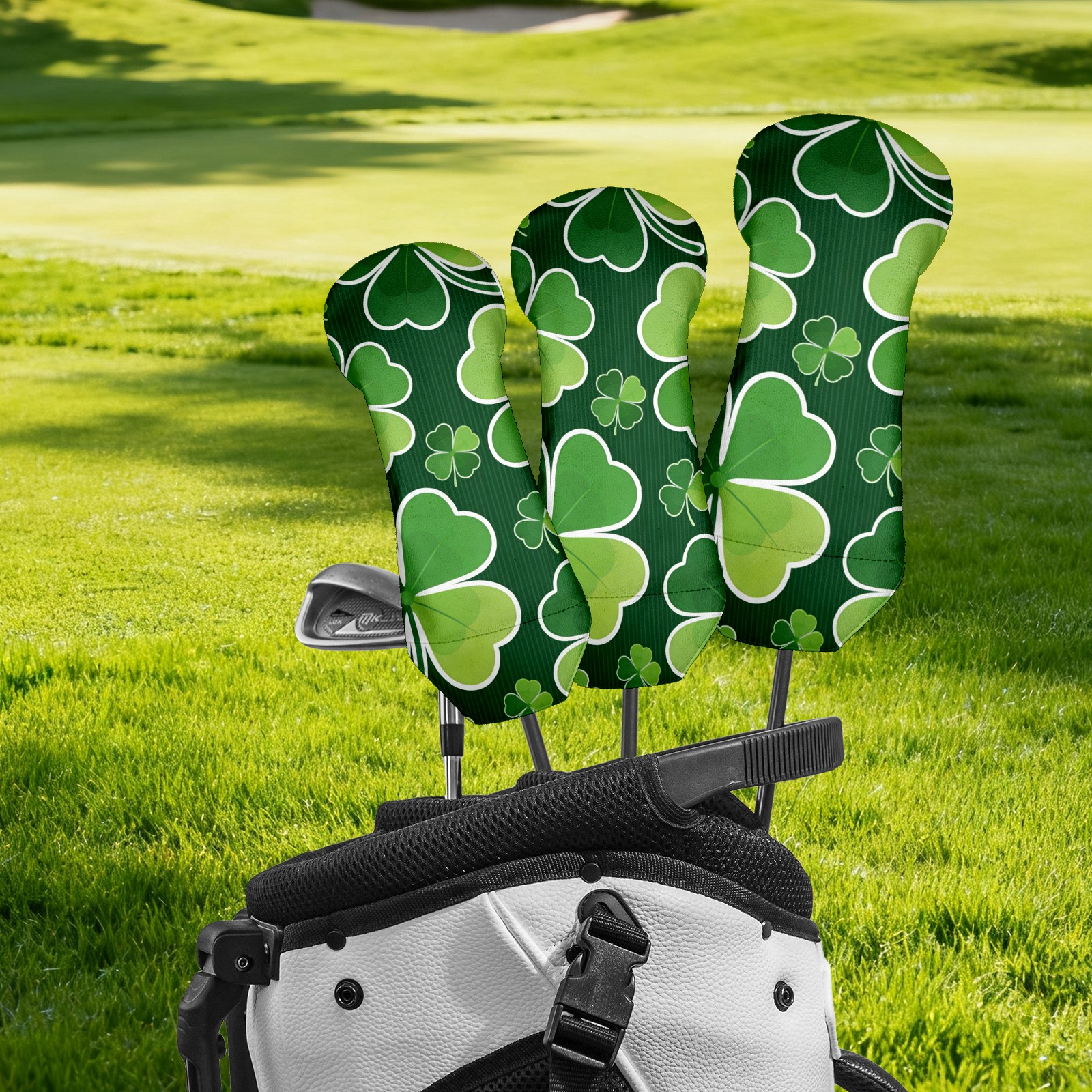 Golf Club Covers for Woods and Driver Hybrid Velvet Cover Leather Golf Headcover for Most Brand Club Men Women Dark Green Four-leaf Clover