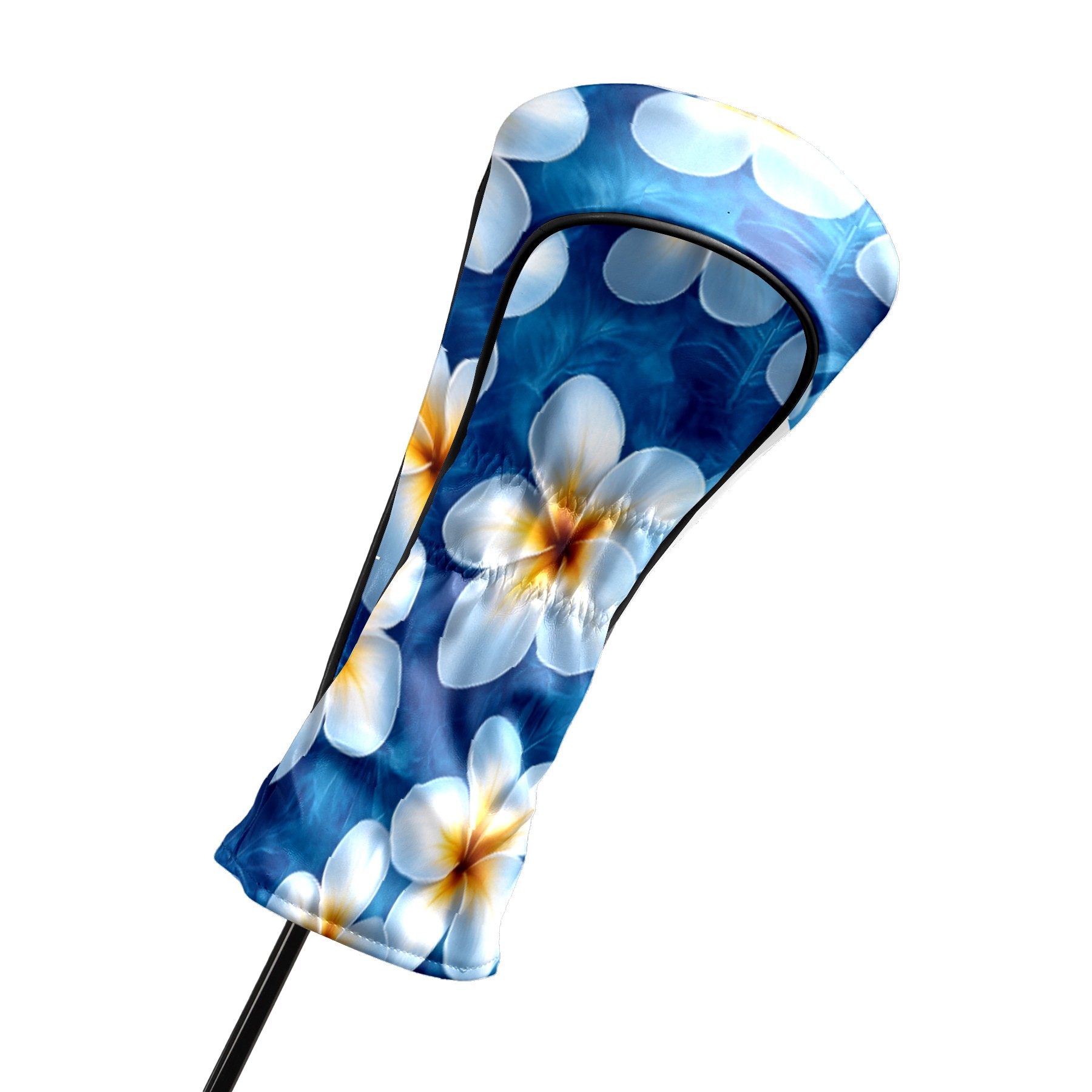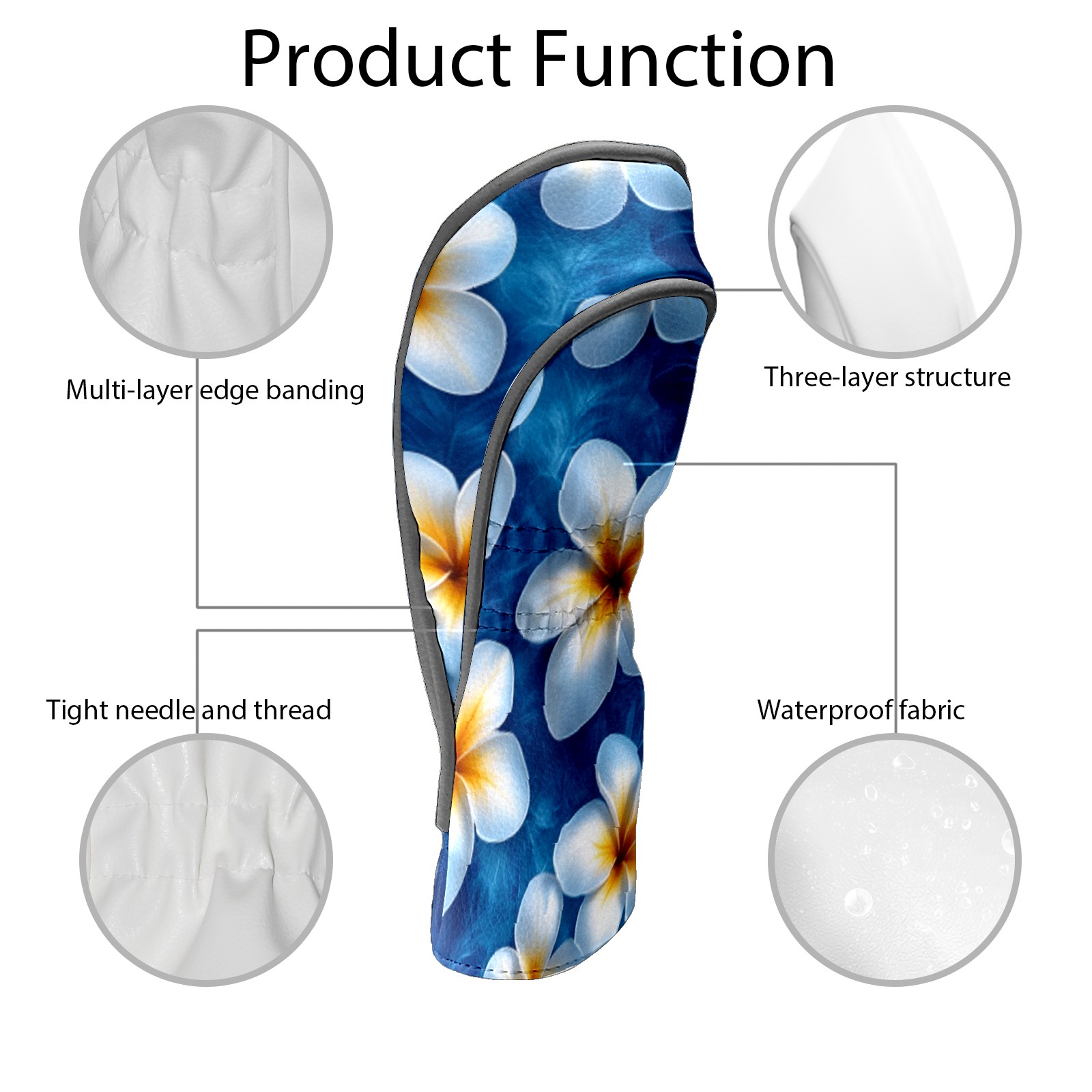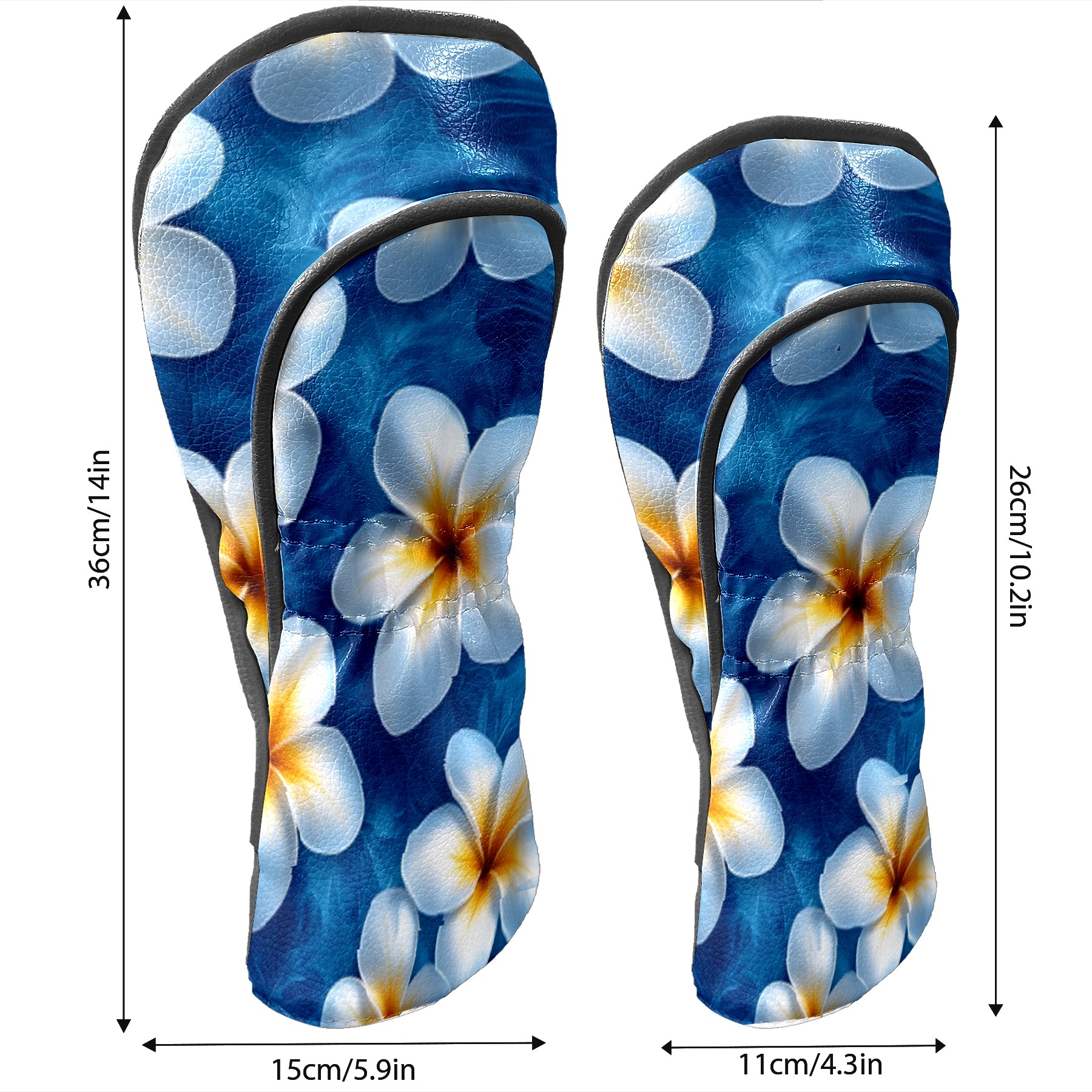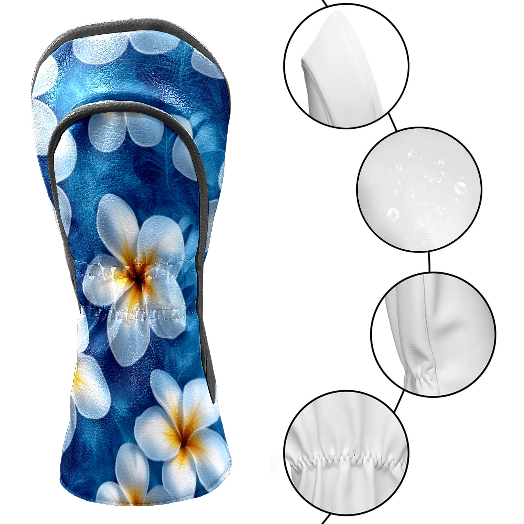 Golf Headcovers Fits Driver Hybrid Fairway 3/5 Wood, Waterproof PU Leather Golf Club Protector, Ideal Sports Accessories & Golfer Gift White Flower Pattern1