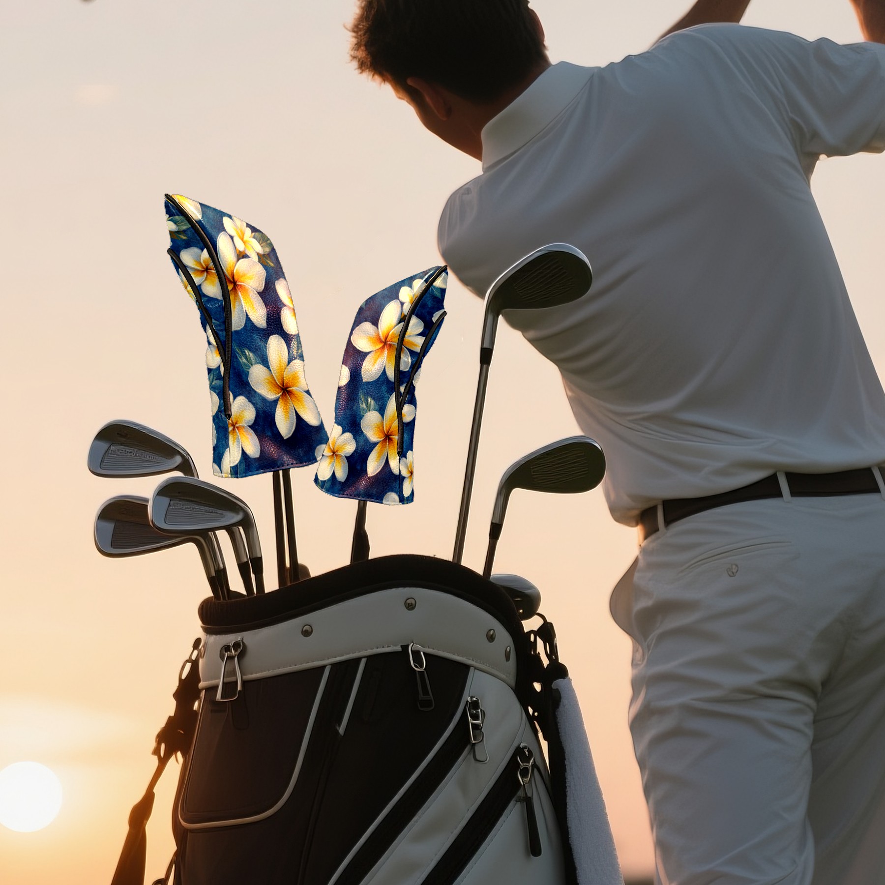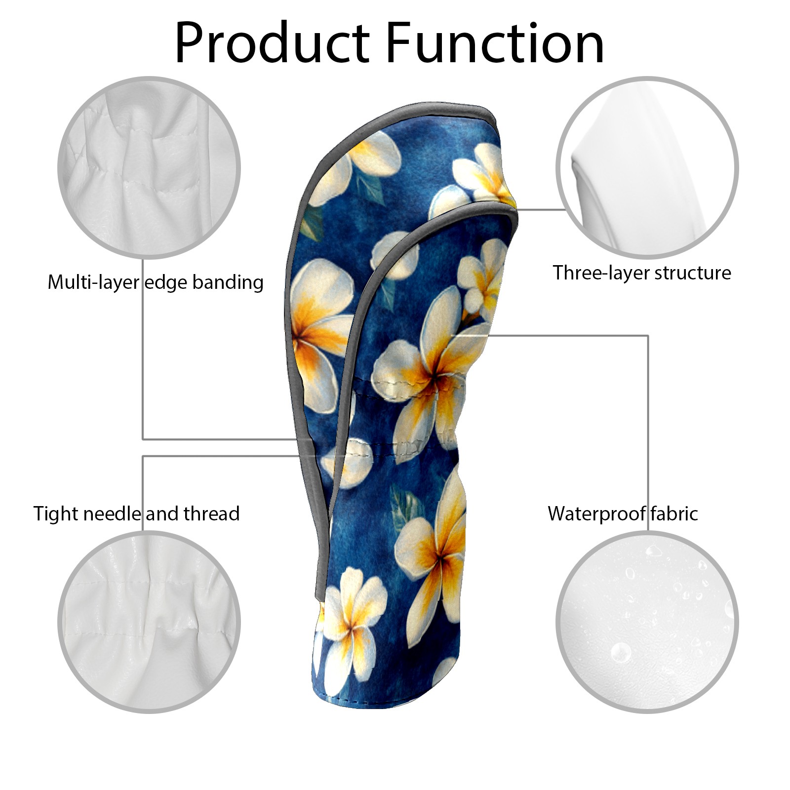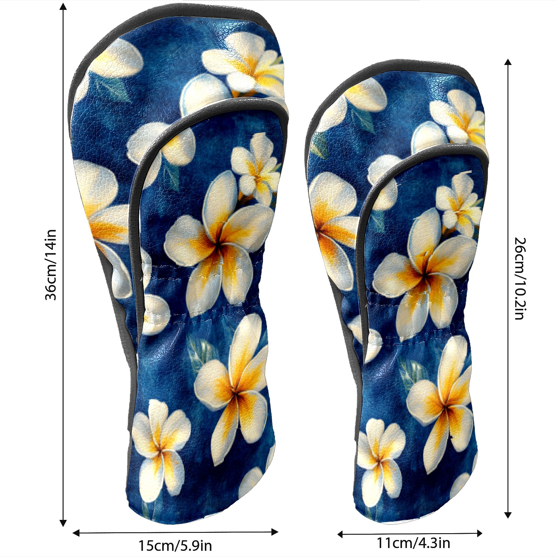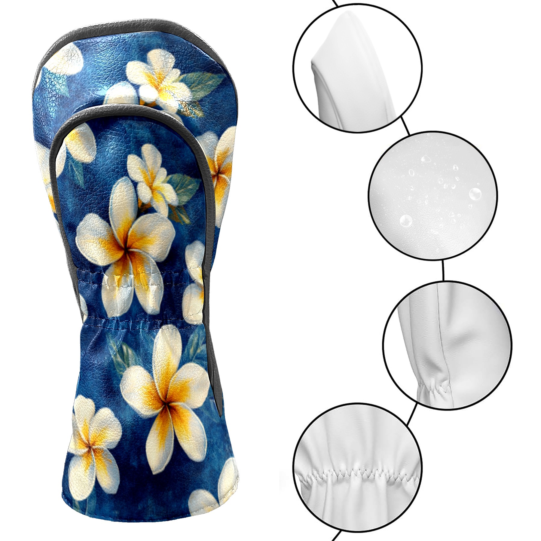 Golf Headcovers Fits Driver Hybrid Fairway 3/5 Wood, Waterproof PU Leather Golf Club Protector, Ideal Sports Accessories & Golfer Gift White Flower Pattern2