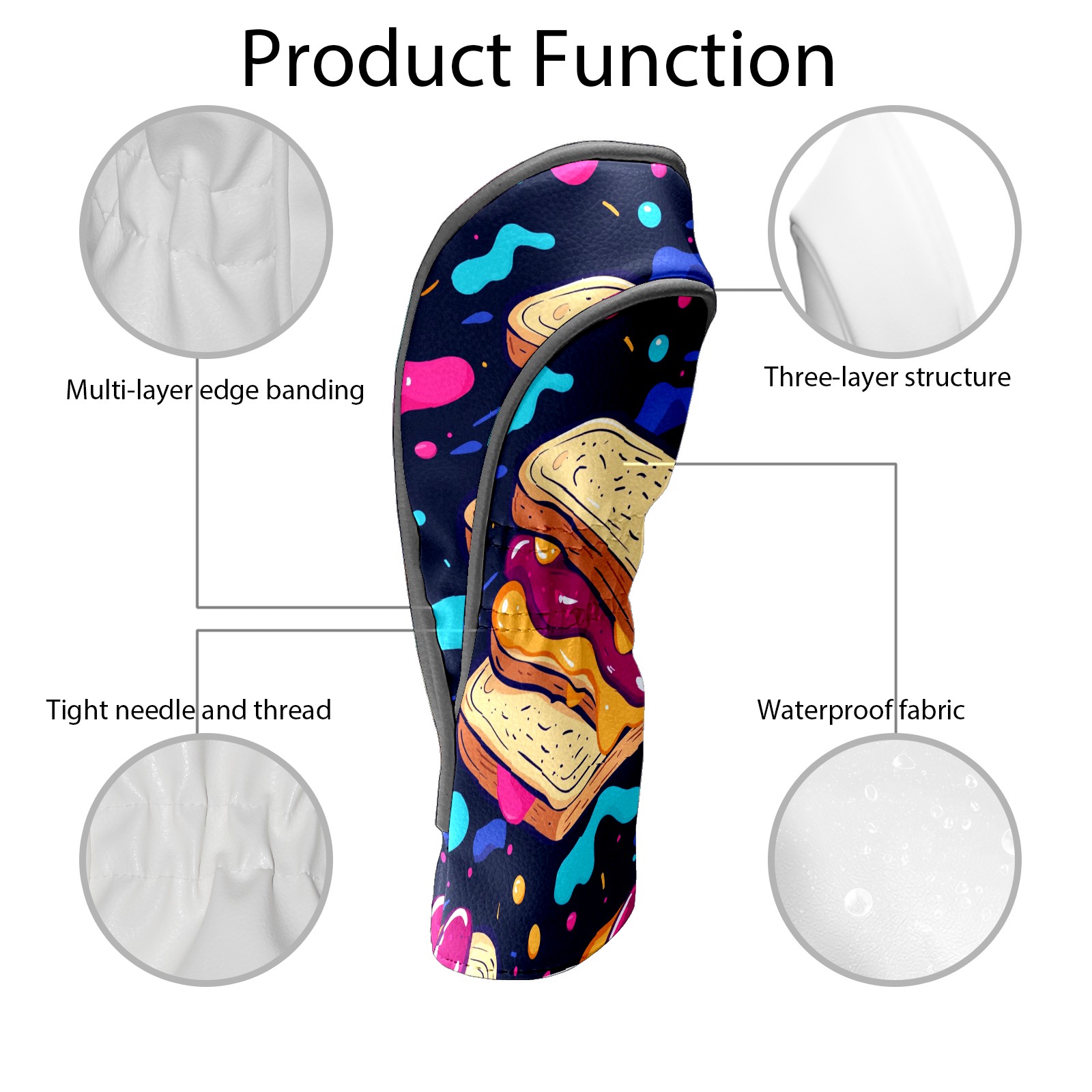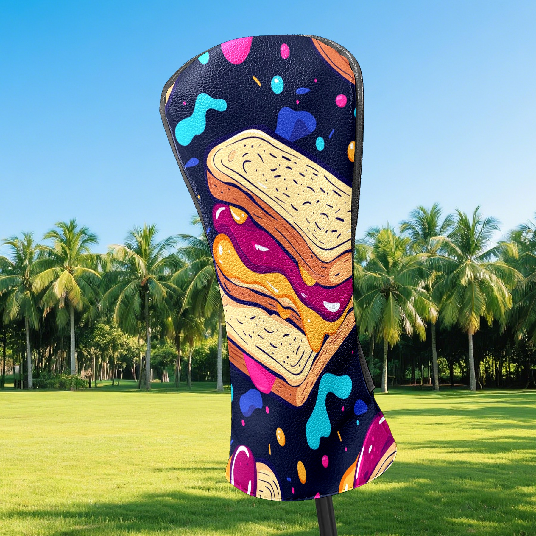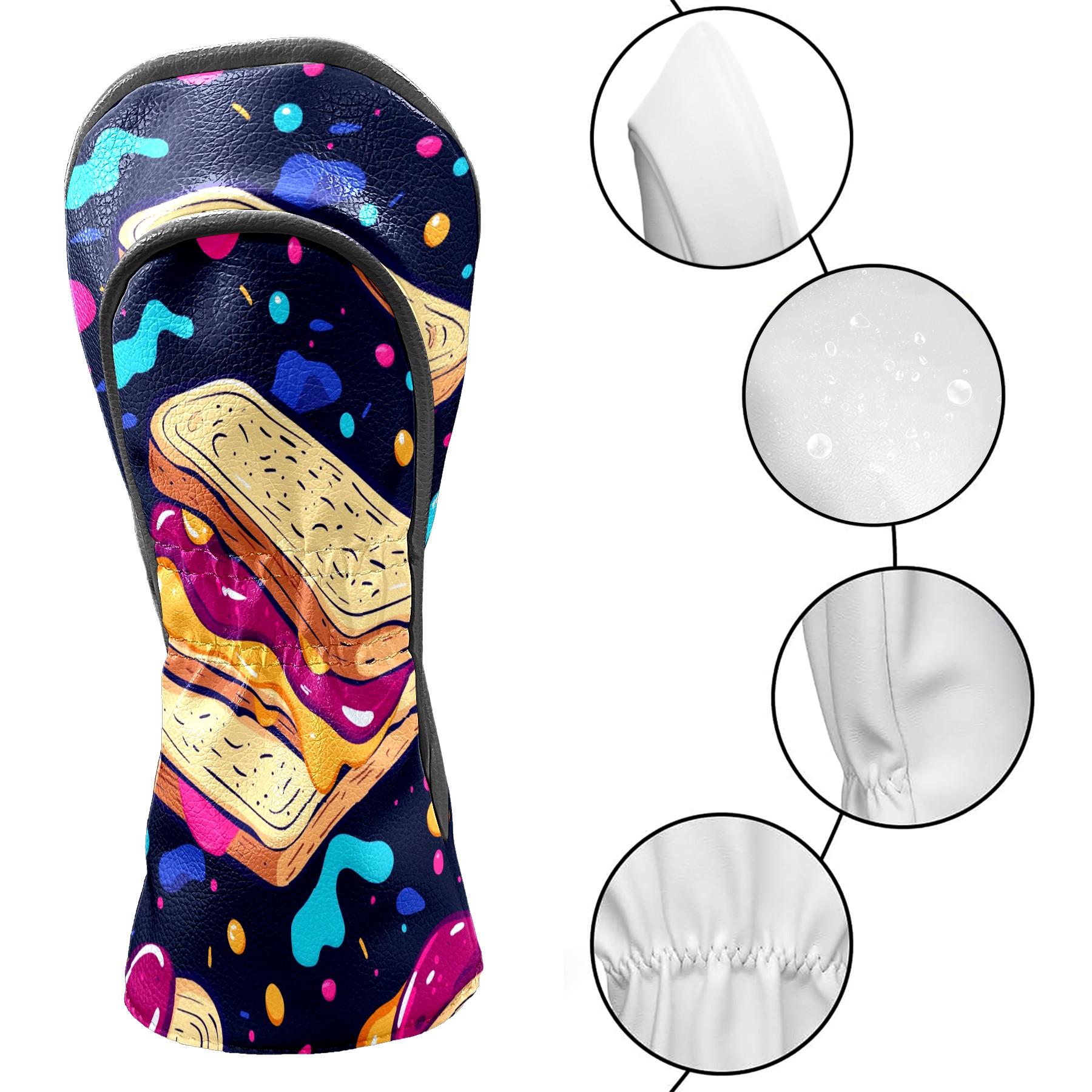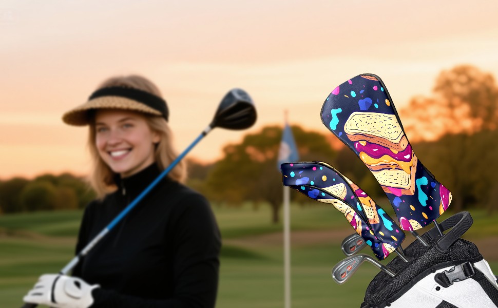 Golf Headcovers Fits Driver Hybrid Fairway 3/5 Wood, Waterproof PU Leather Golf Club Protector, Ideal Sports Accessories & Golfer Gift Delicious Bread Pattern3