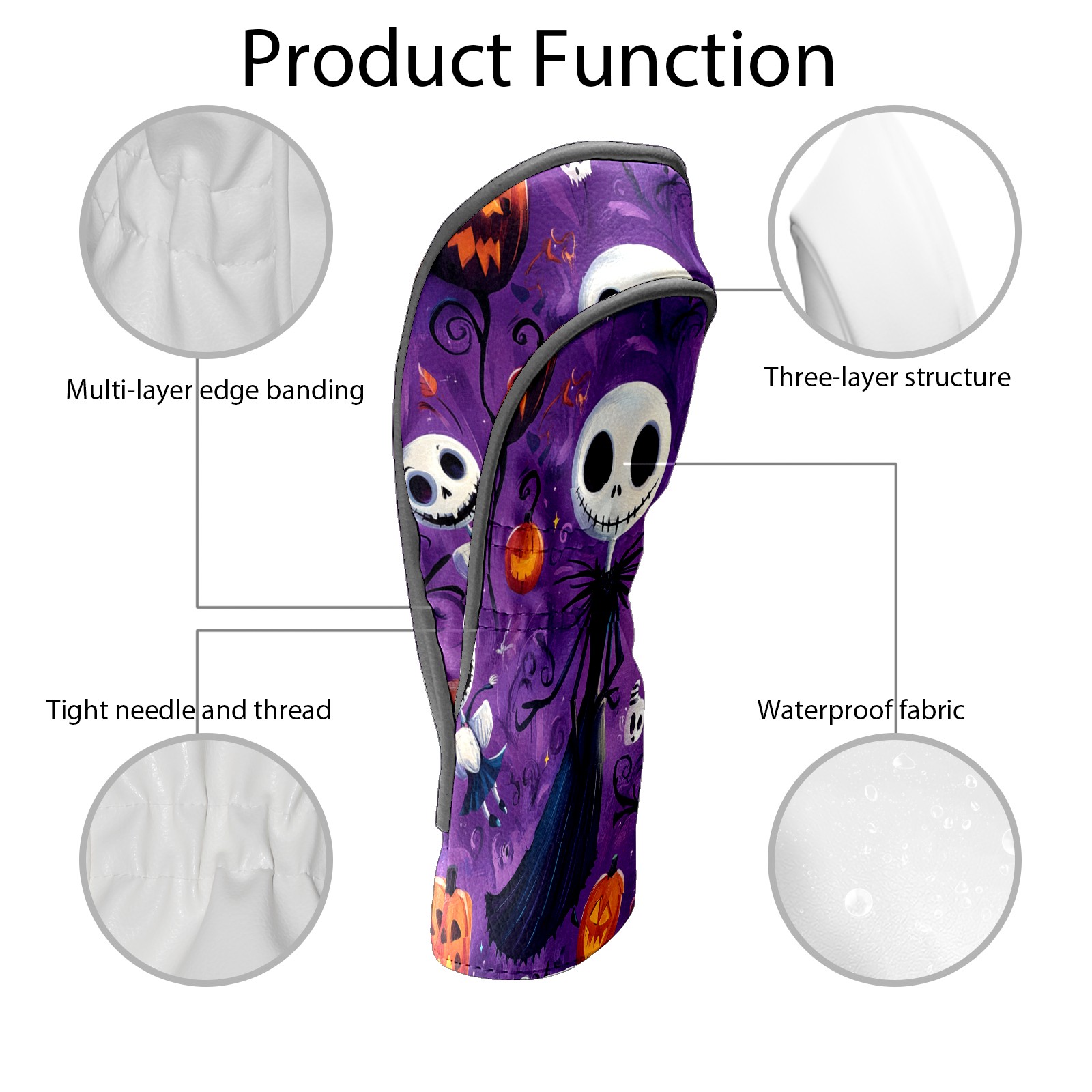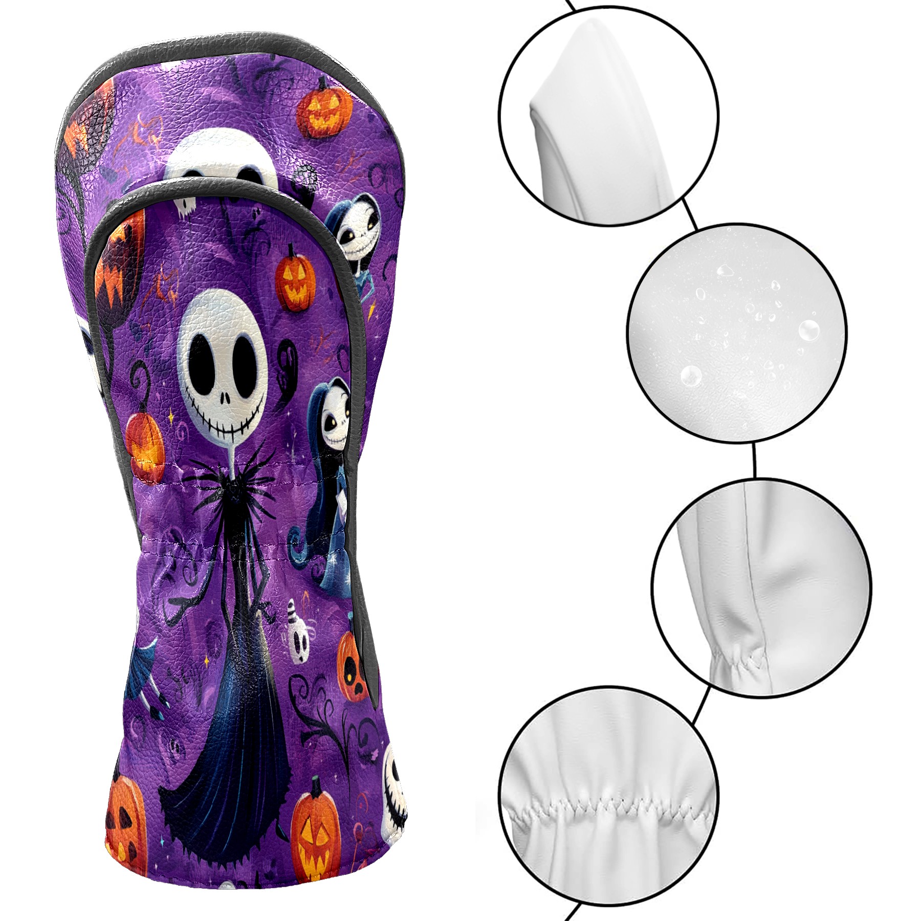 Golf Headcovers Fits Driver Hybrid Fairway 3/5 Wood, Waterproof PU Leather Golf Club Protector, Ideal Sports Accessories & Golfer Gift Skull Pattern5