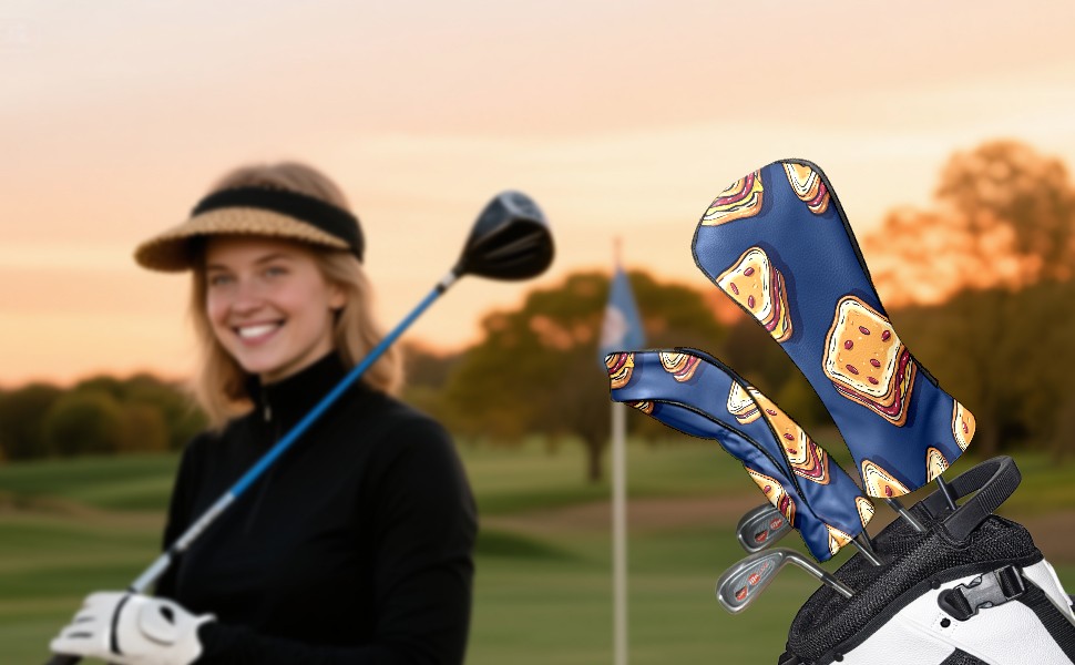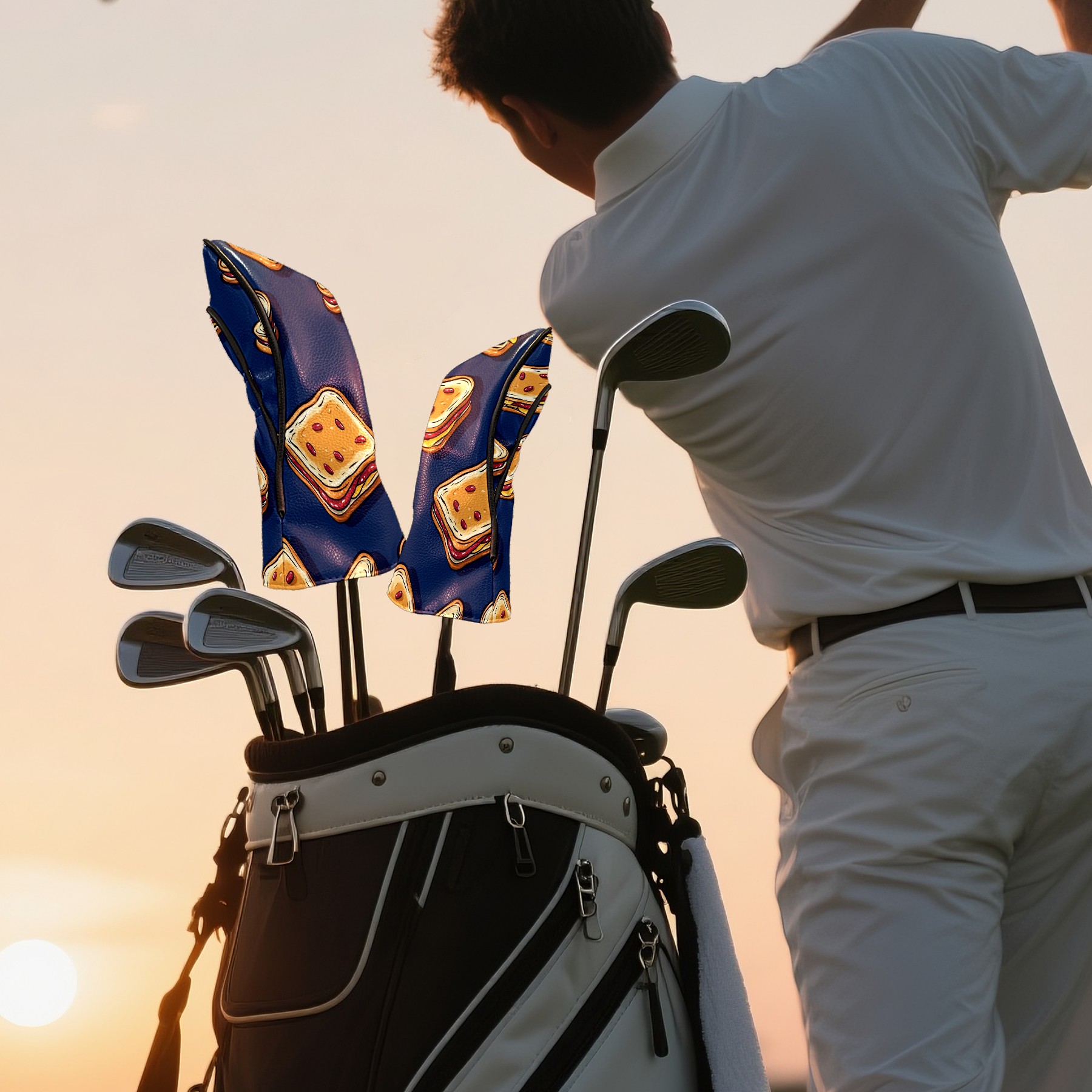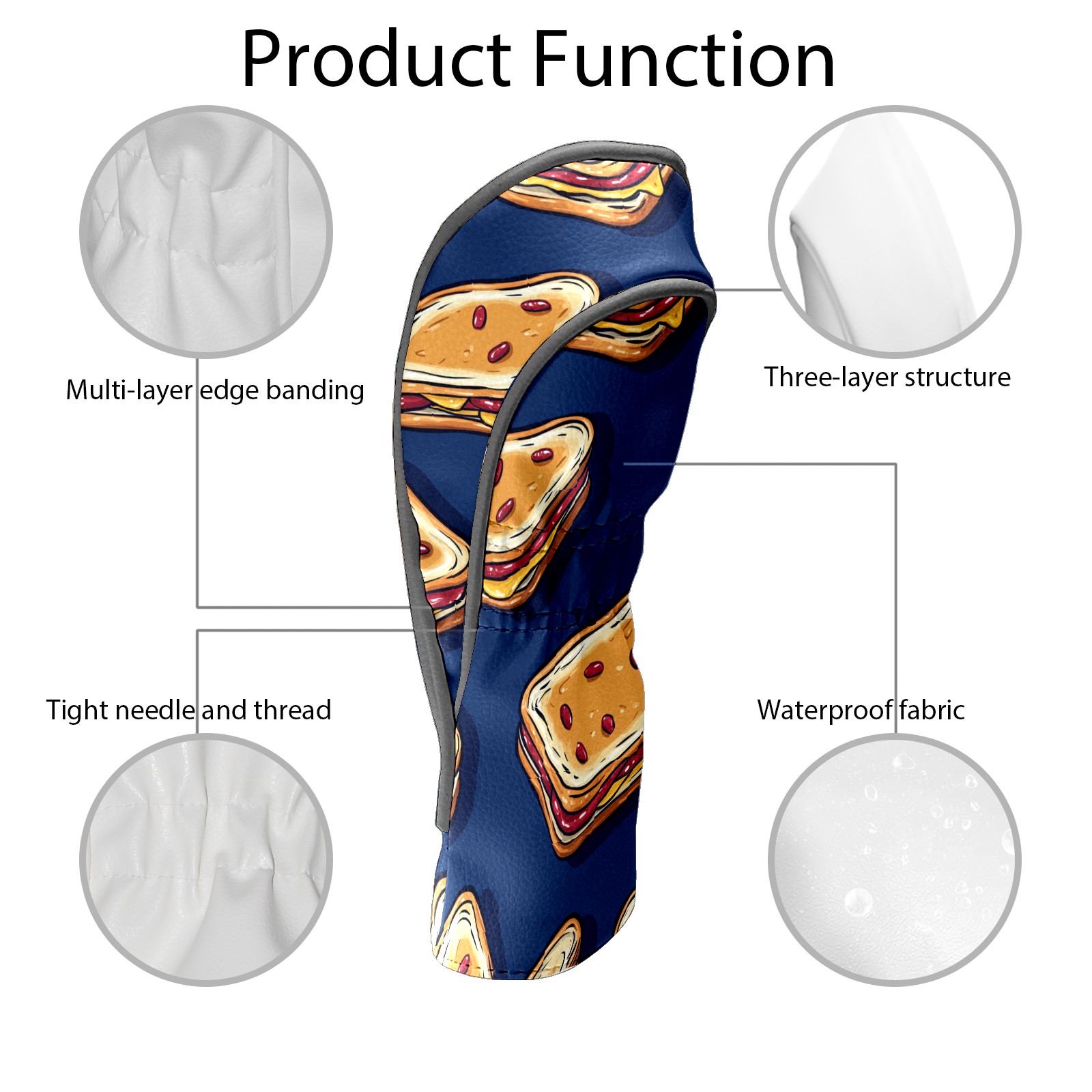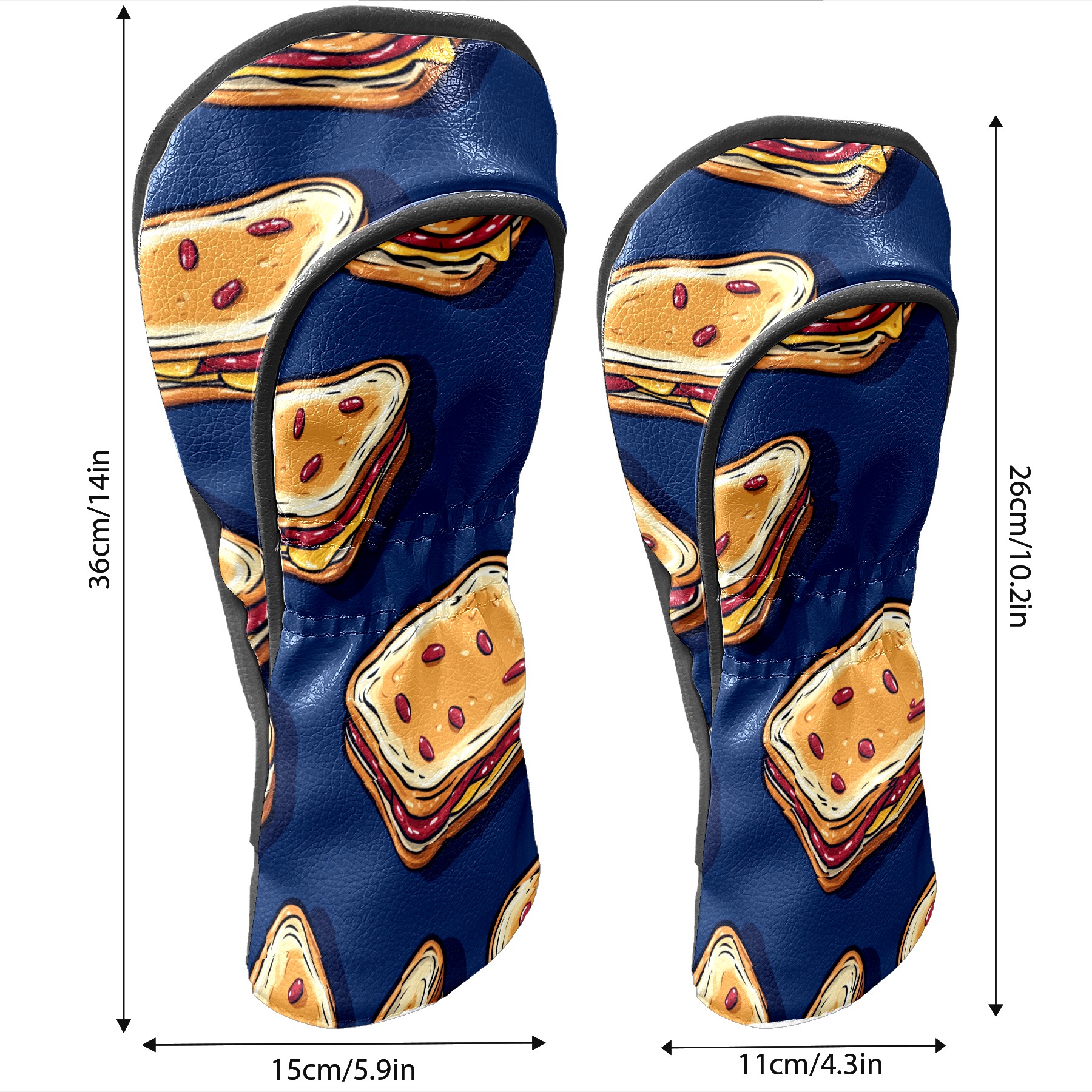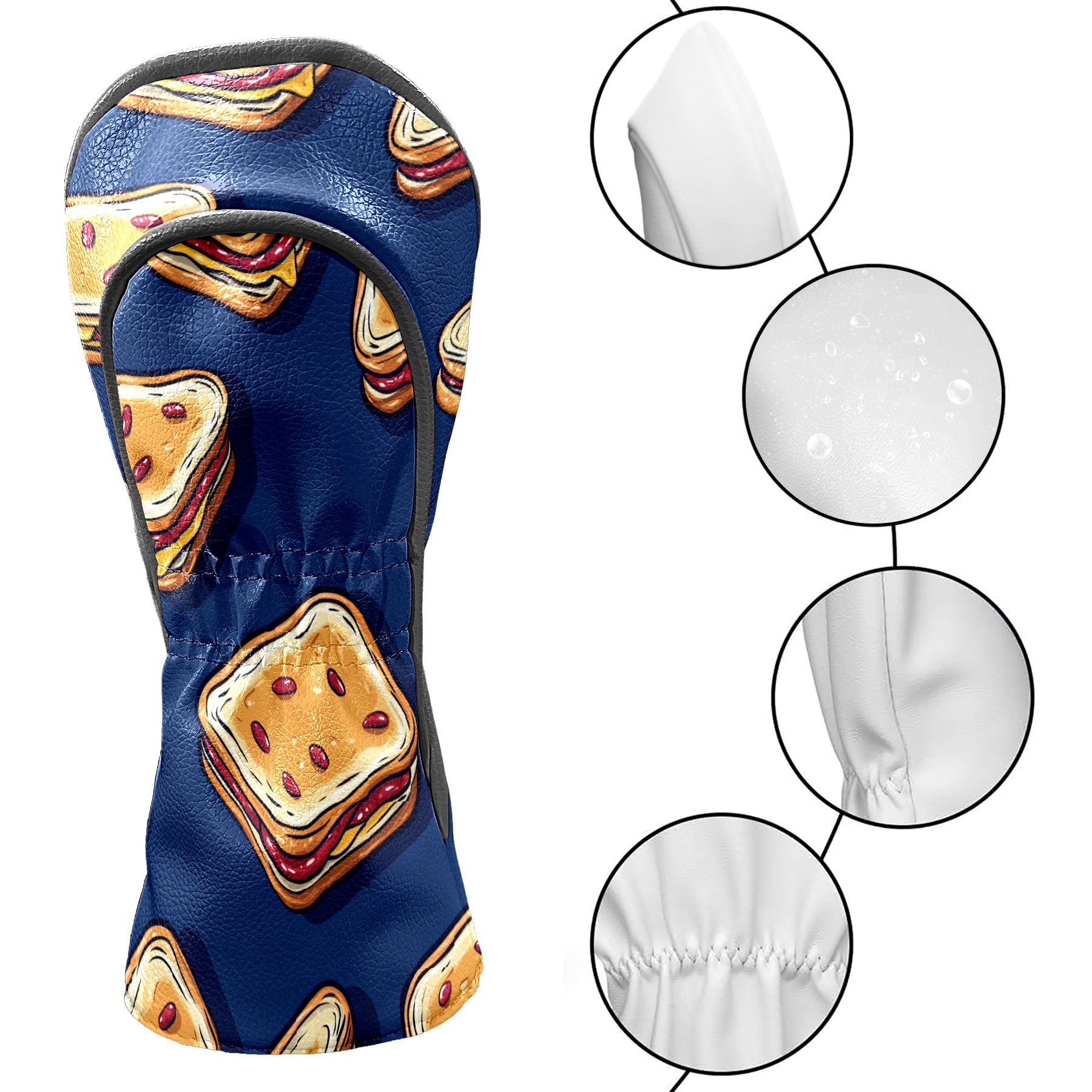Golf Headcovers Fits Driver Hybrid Fairway 3/5 Wood, Waterproof PU Leather Golf Club Protector, Ideal Sports Accessories & Golfer Gift Delicious Bread Pattern1