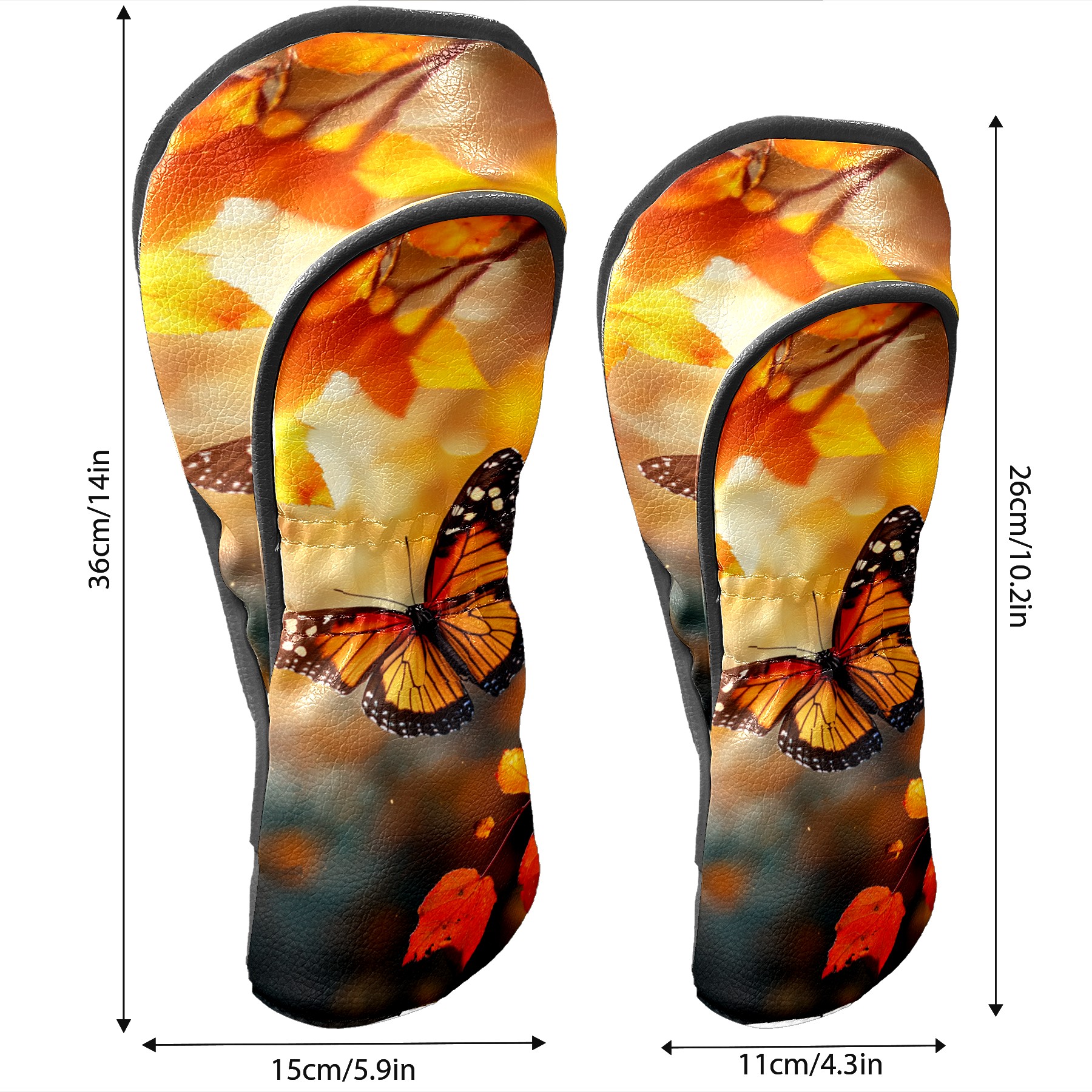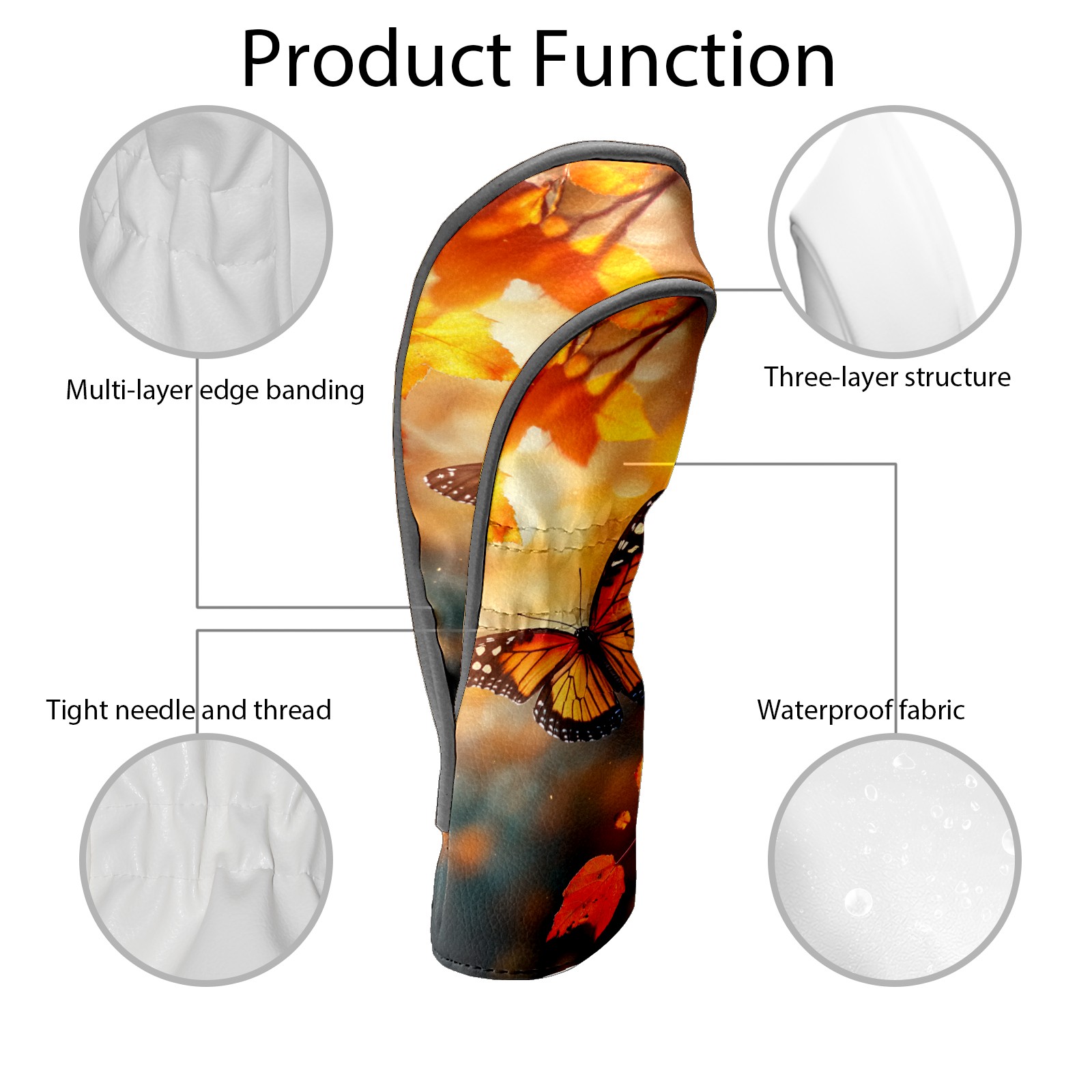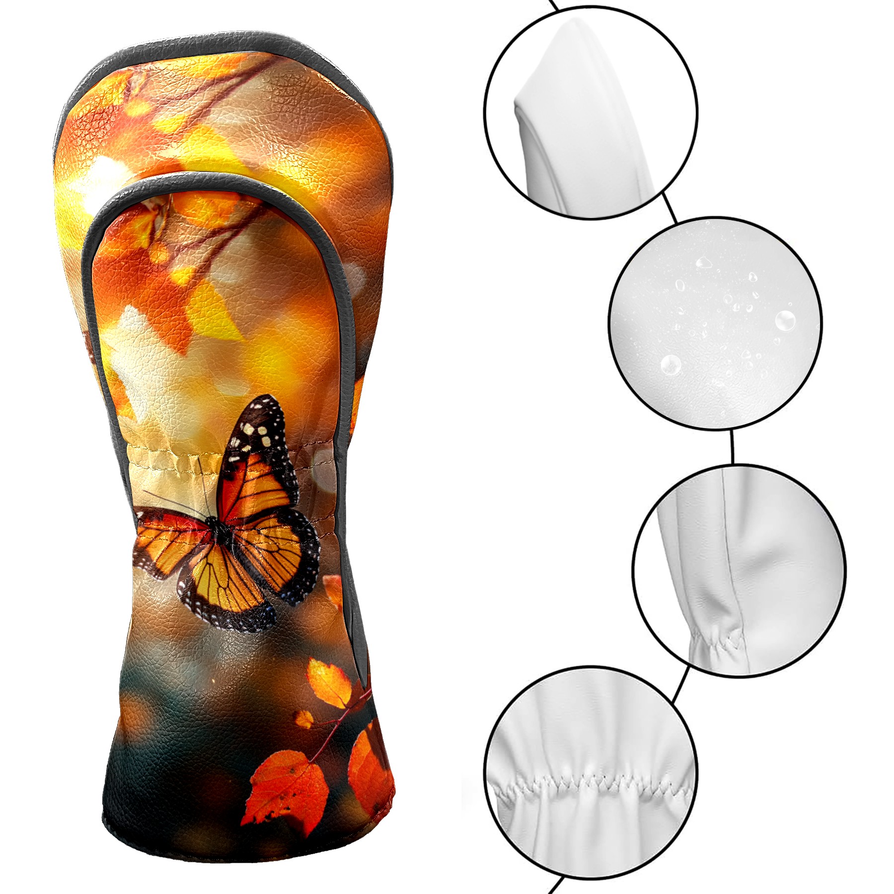 Golf Headcovers Fits Driver Hybrid Fairway 3/5 Wood, Waterproof PU Leather Golf Club Protector, Ideal Sports Accessories & Golfer Gift Maple Leaf Butterfly Pattern1