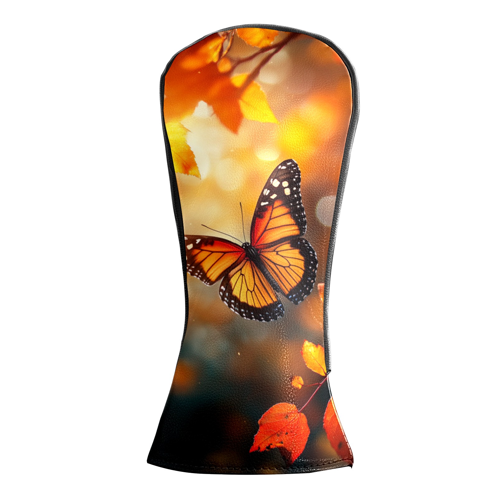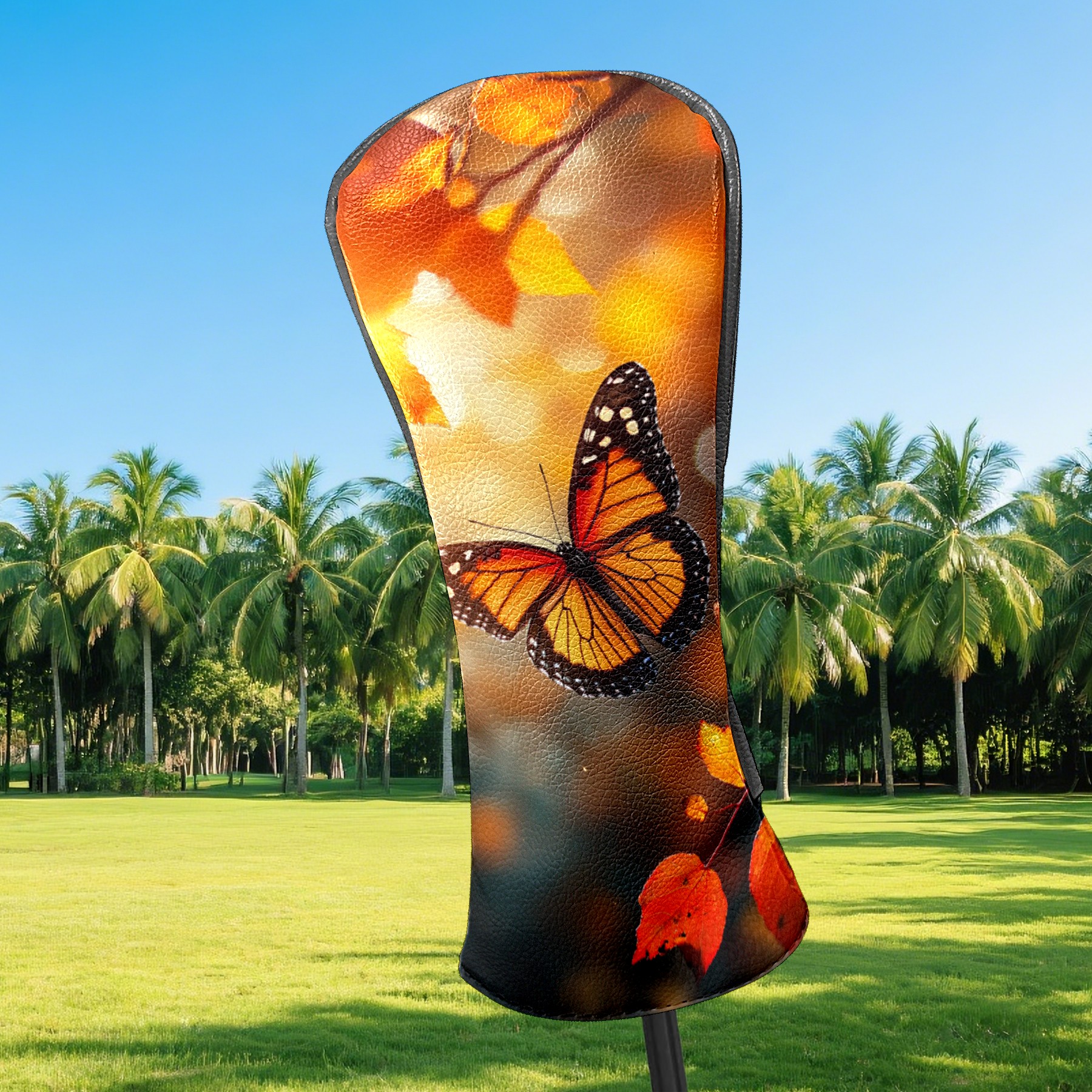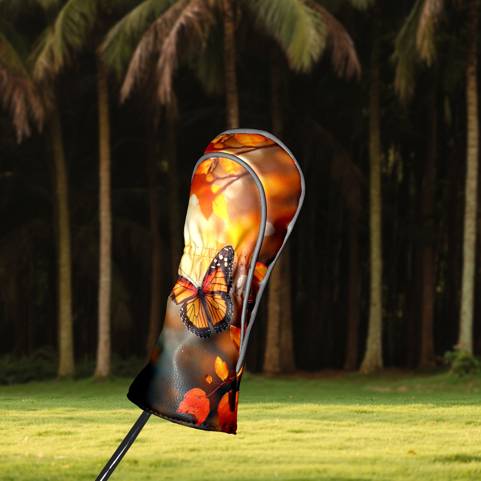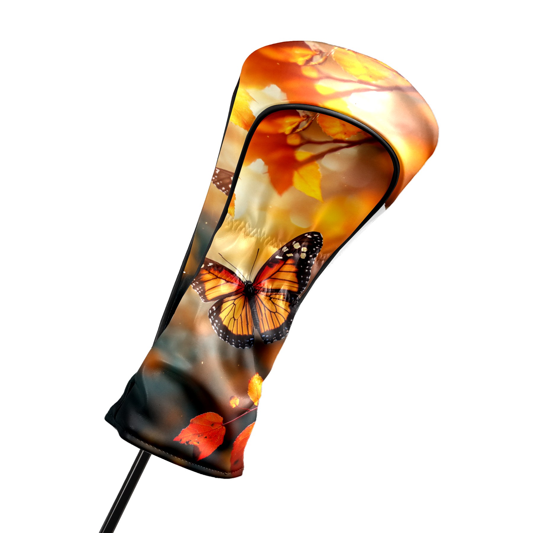 Golf Headcovers Fits Driver Hybrid Fairway 3/5 Wood, Waterproof PU Leather Golf Club Protector, Ideal Sports Accessories & Golfer Gift Maple Leaf Butterfly Pattern1
