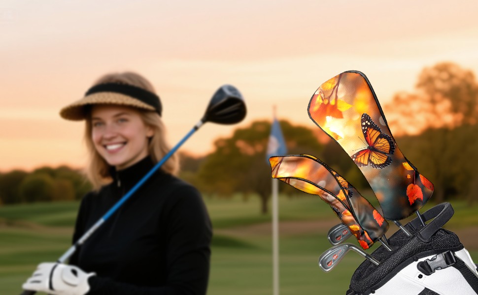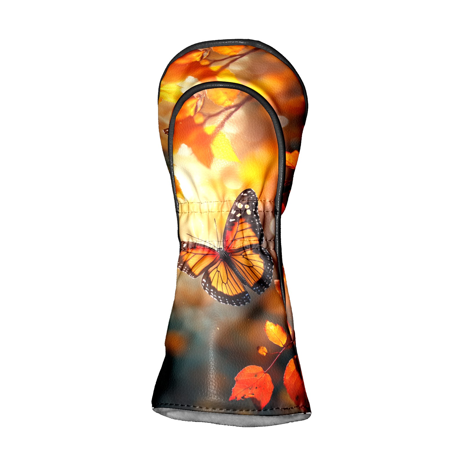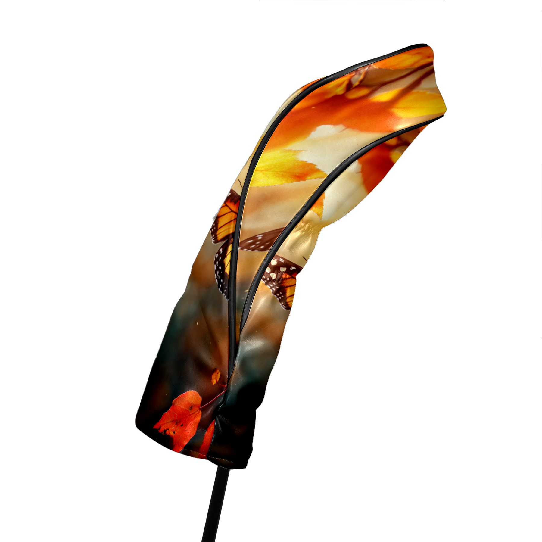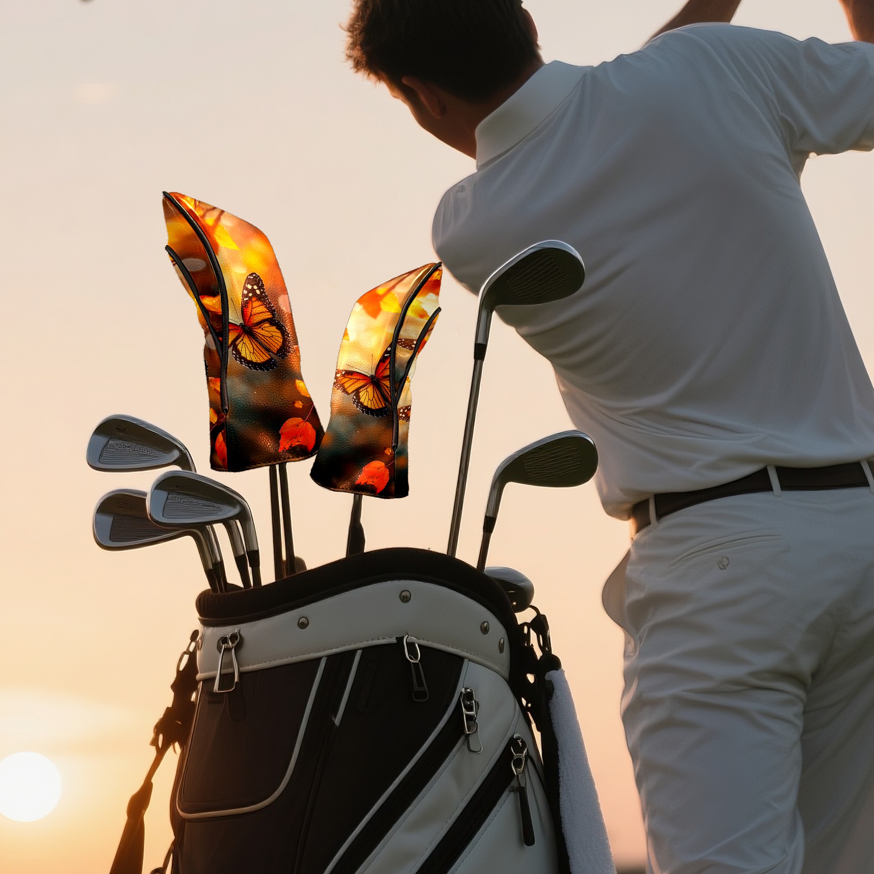 Golf Headcovers Fits Driver Hybrid Fairway 3/5 Wood, Waterproof PU Leather Golf Club Protector, Ideal Sports Accessories & Golfer Gift Maple Leaf Butterfly Pattern1