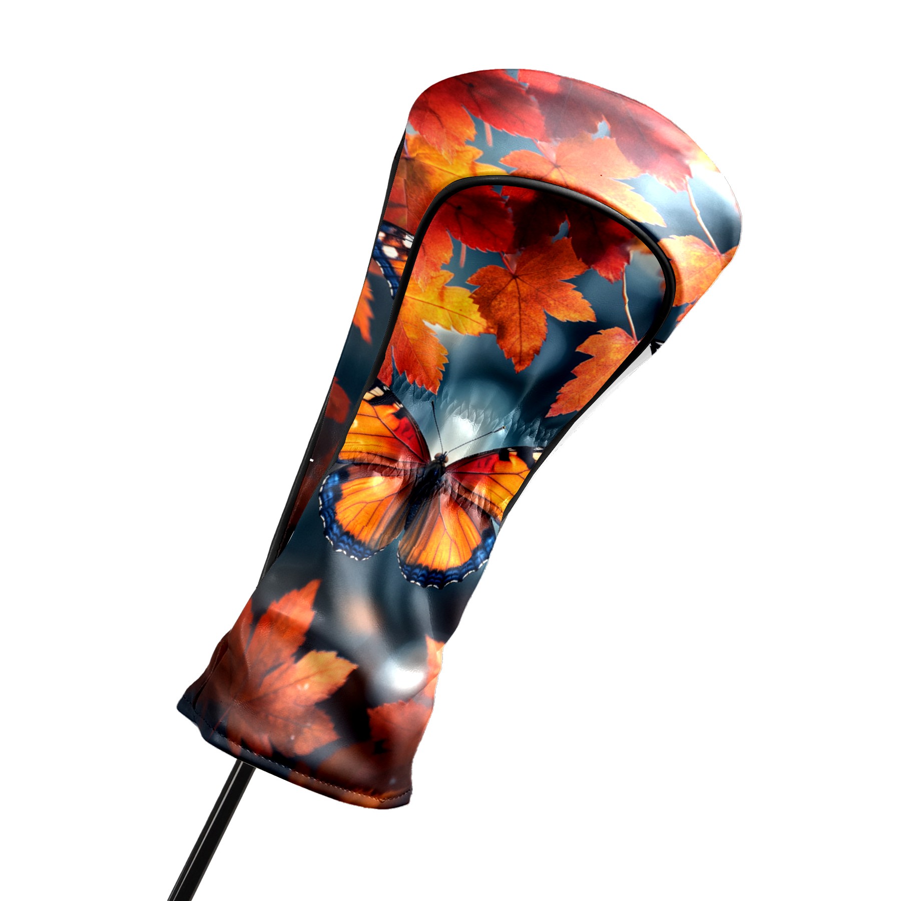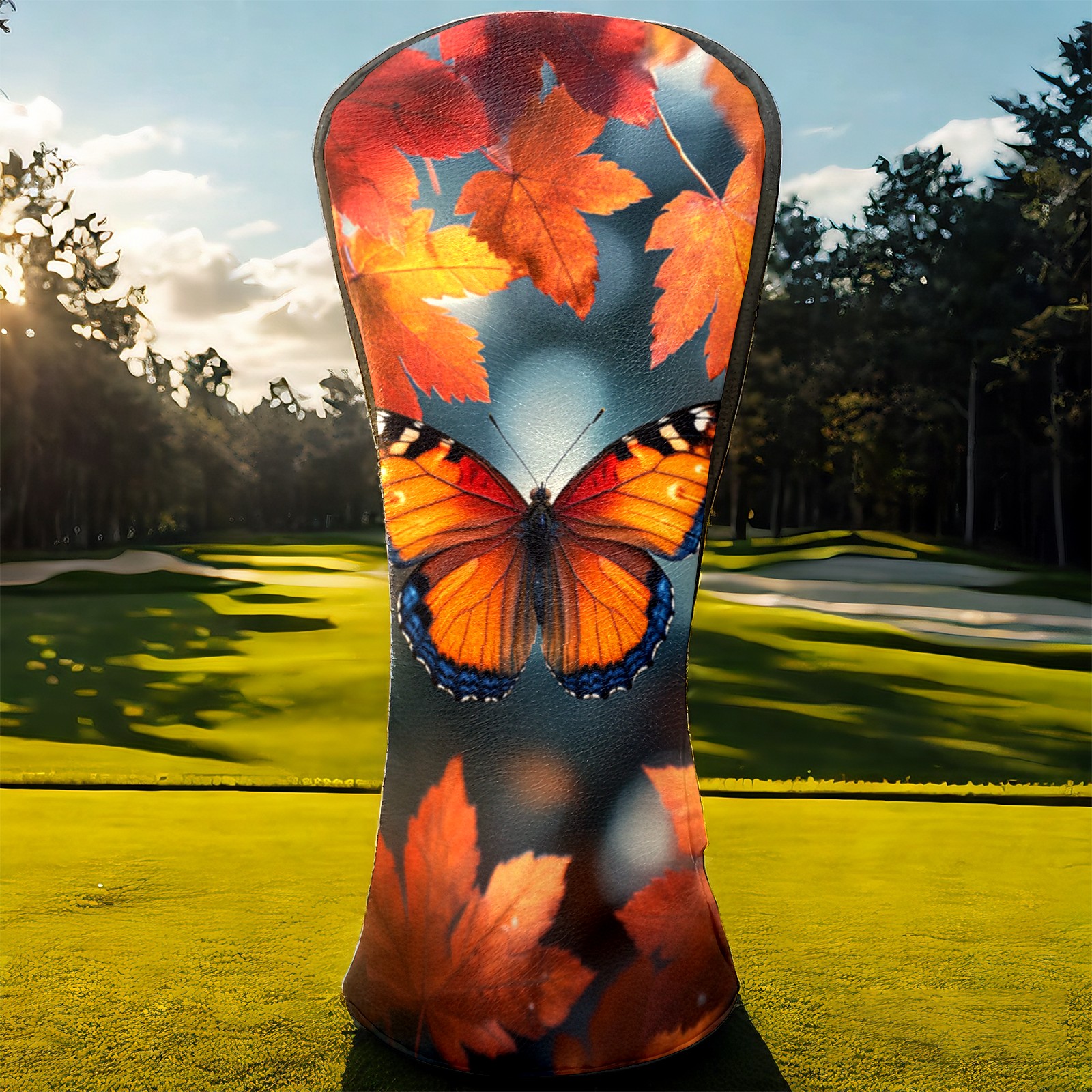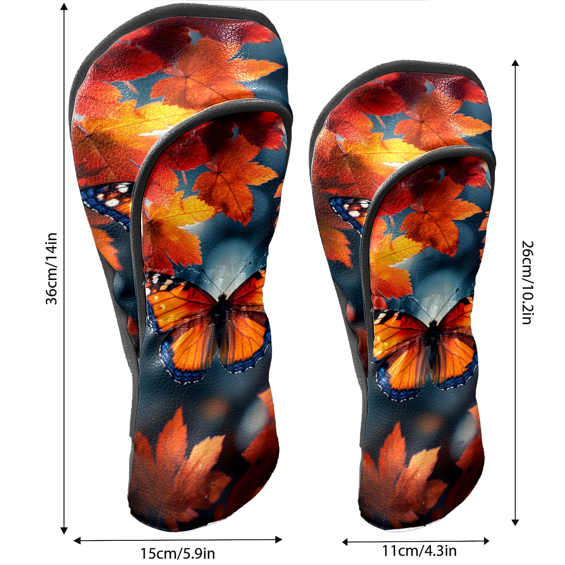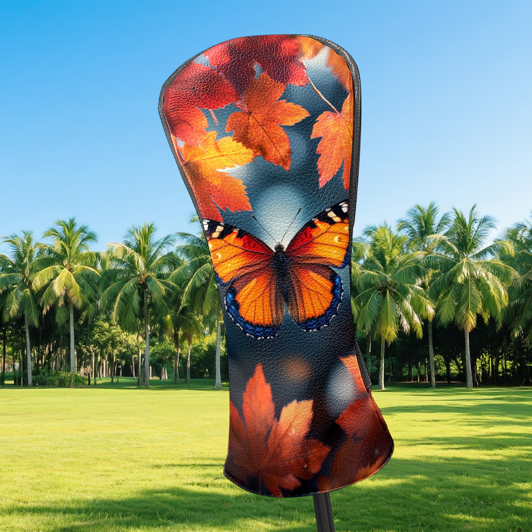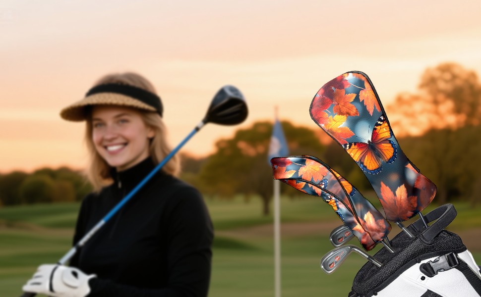 Golf Headcovers Fits Driver Hybrid Fairway 3/5 Wood, Waterproof PU Leather Golf Club Protector, Ideal Sports Accessories & Golfer Gift Maple Leaf Butterfly Pattern