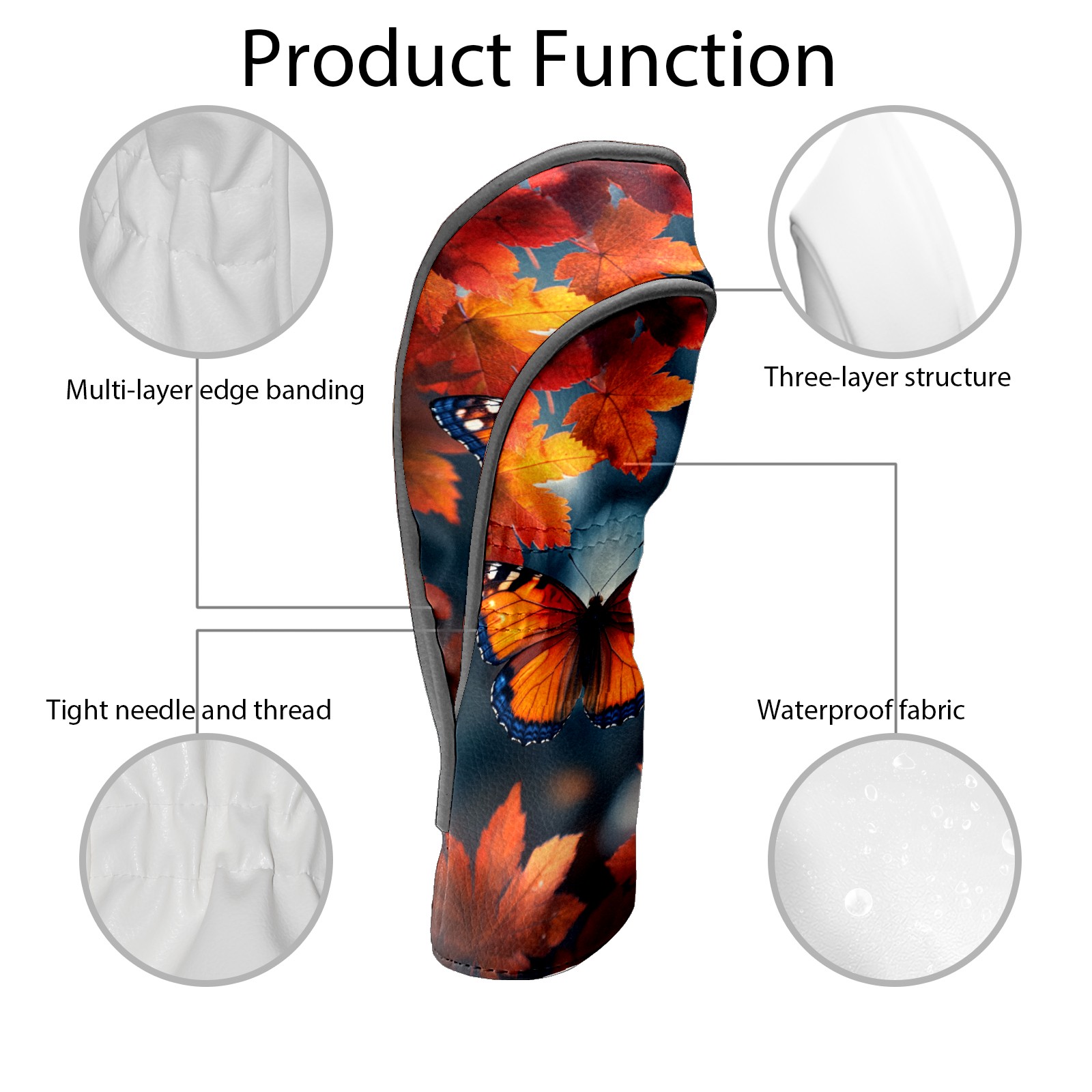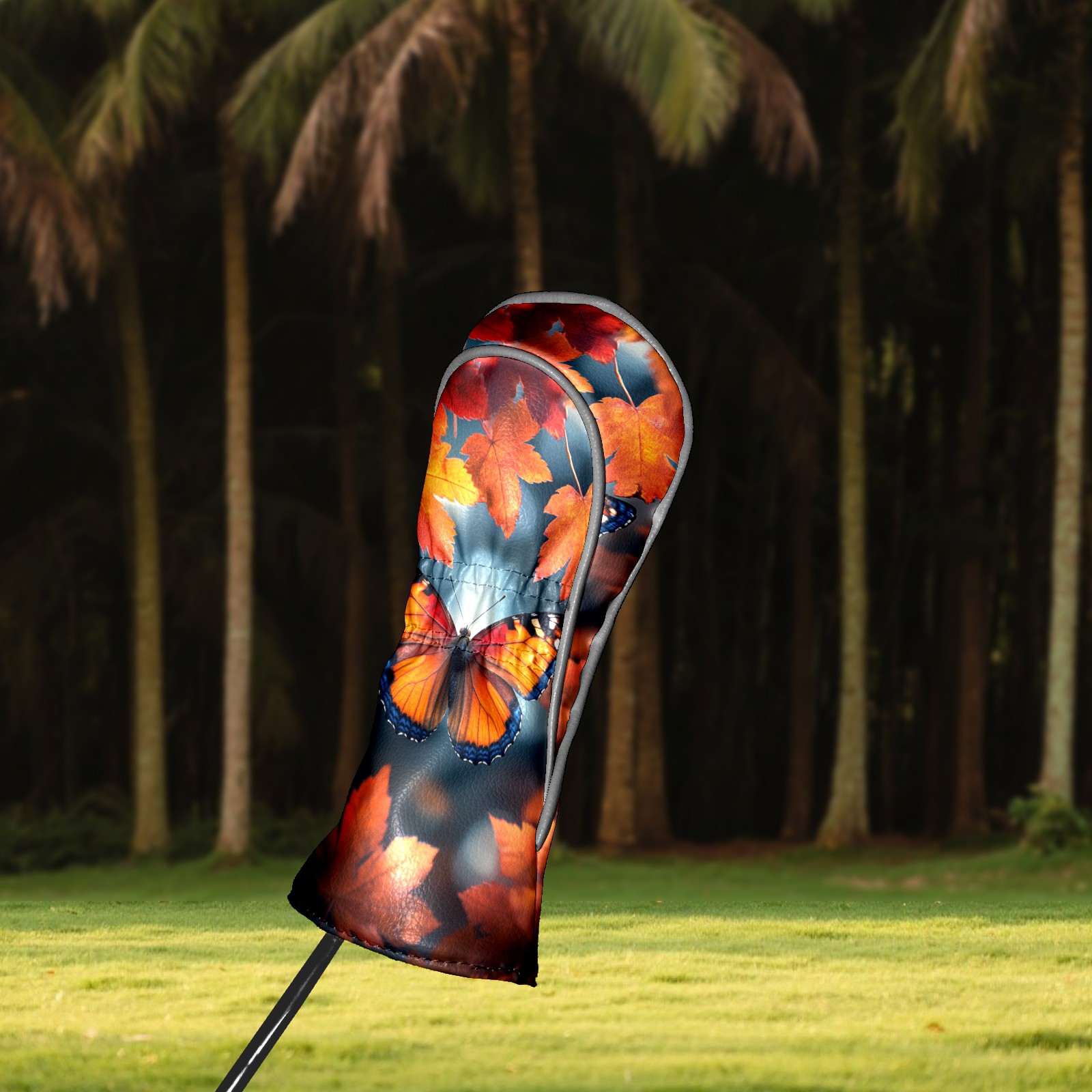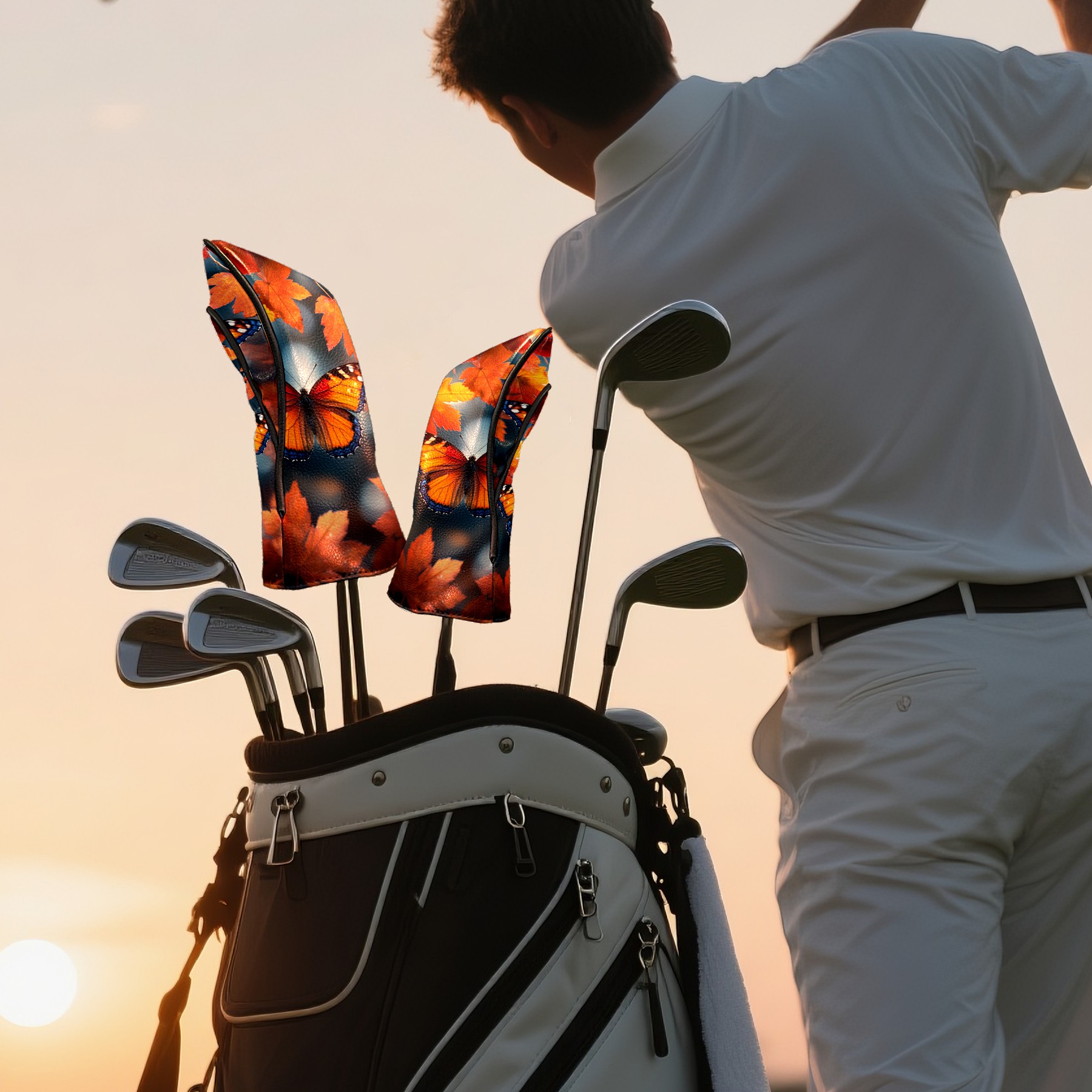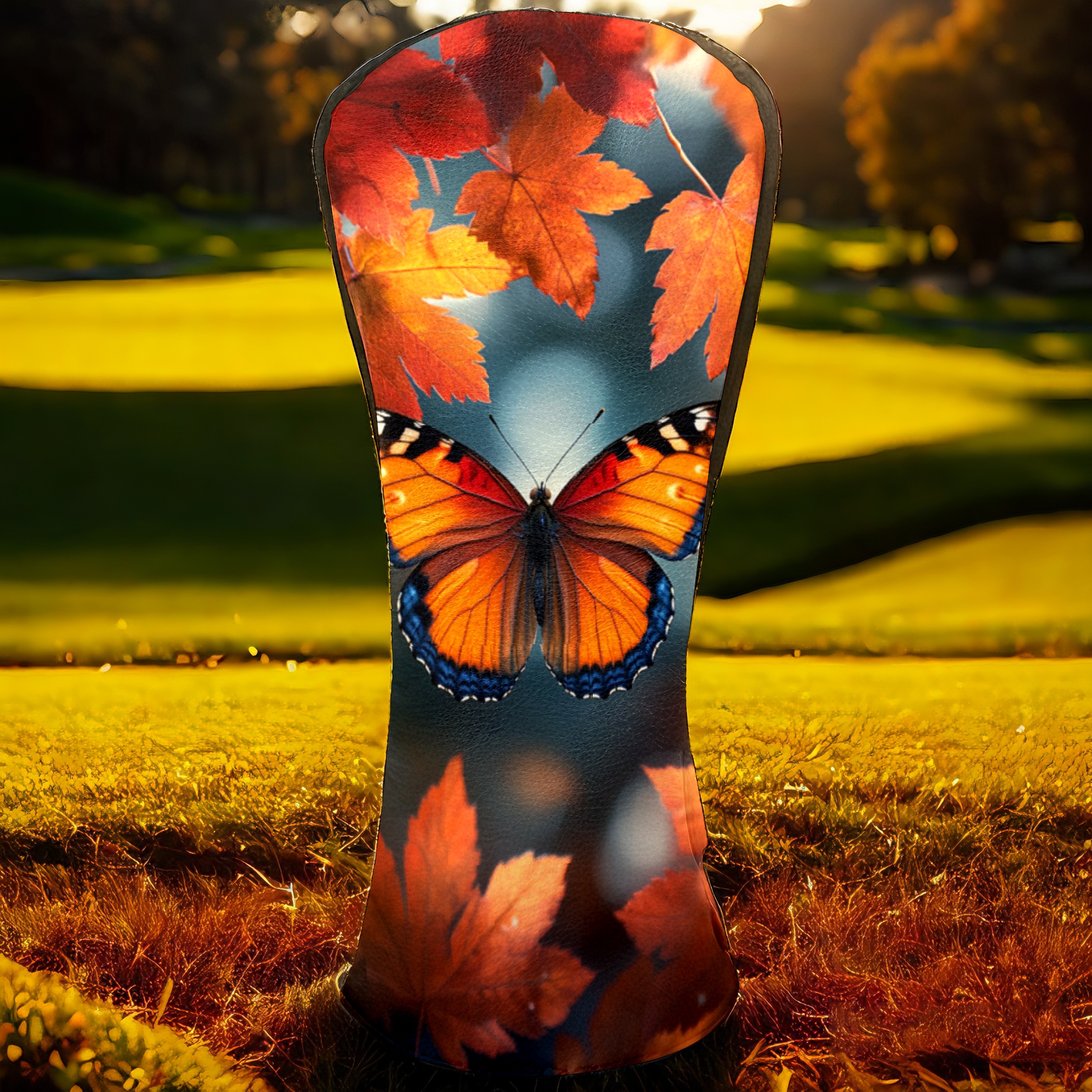 Golf Headcovers Fits Driver Hybrid Fairway 3/5 Wood, Waterproof PU Leather Golf Club Protector, Ideal Sports Accessories & Golfer Gift Maple Leaf Butterfly Pattern