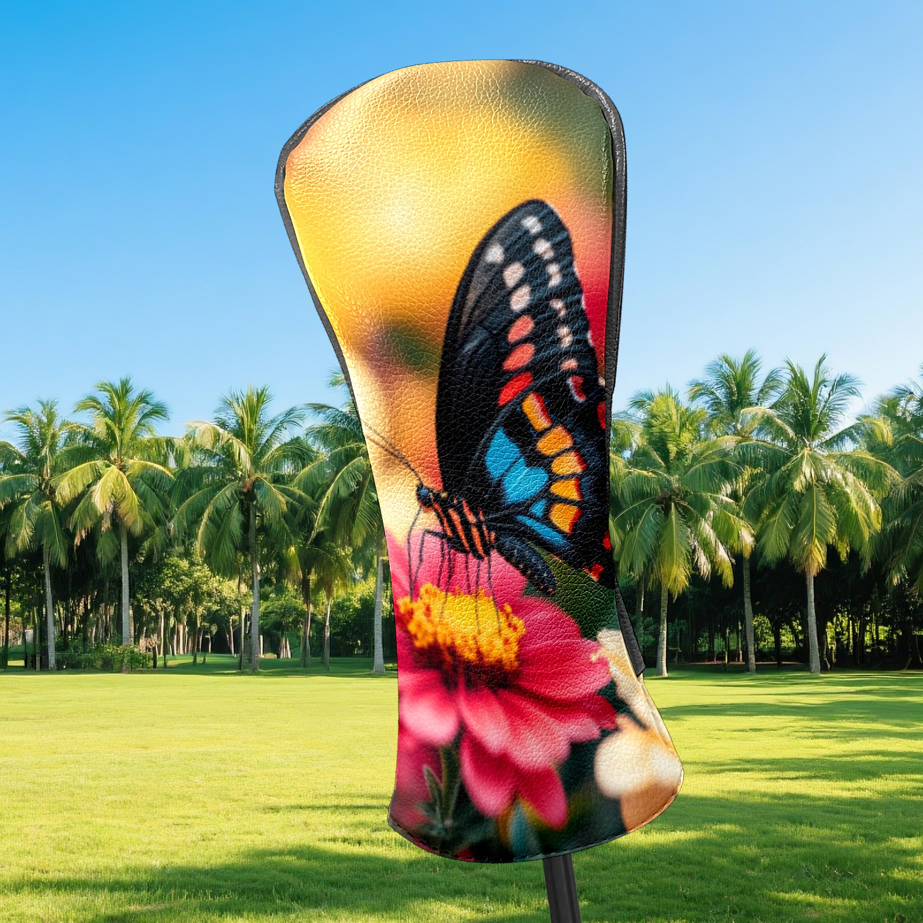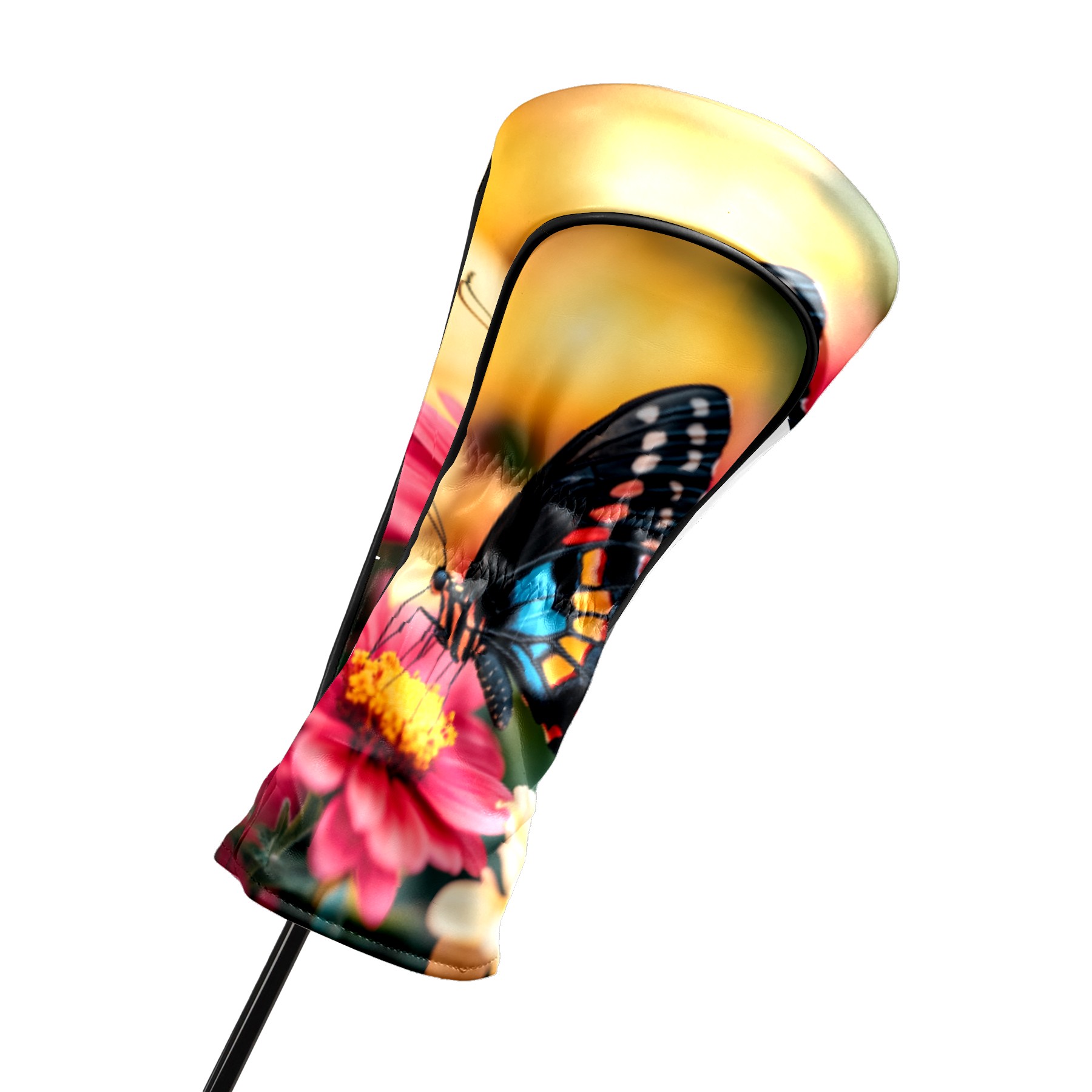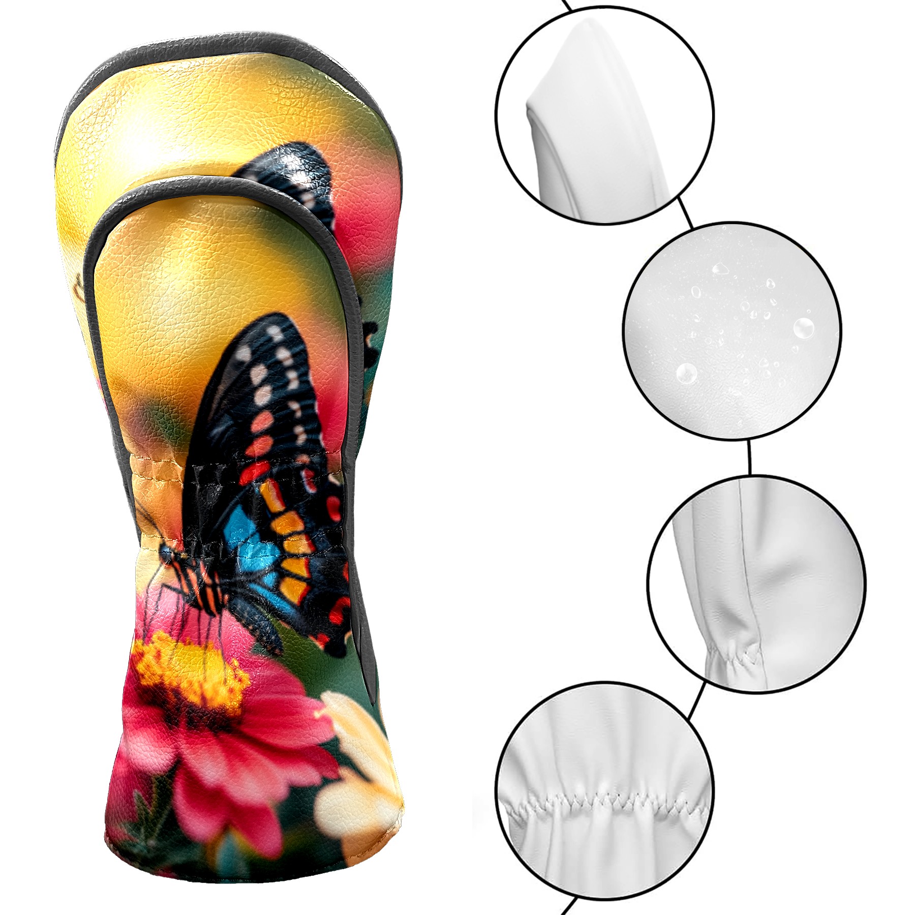 Golf Headcovers Fits Driver Hybrid Fairway 3/5 Wood, Waterproof PU Leather Golf Club Protector, Ideal Sports Accessories & Golfer Gift Flower Butterfly Pattern2