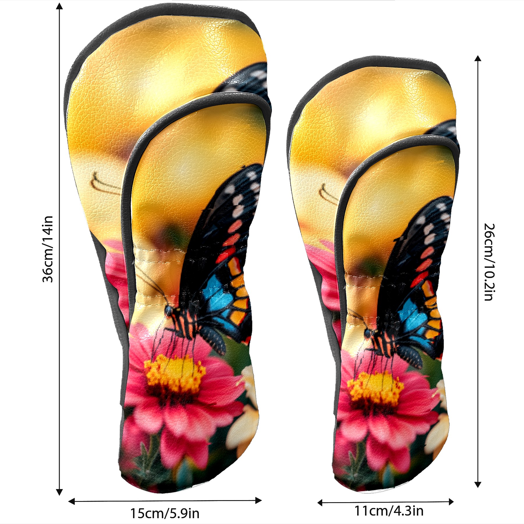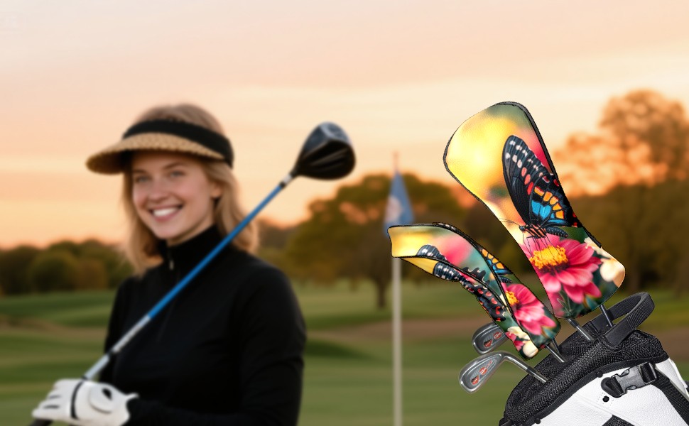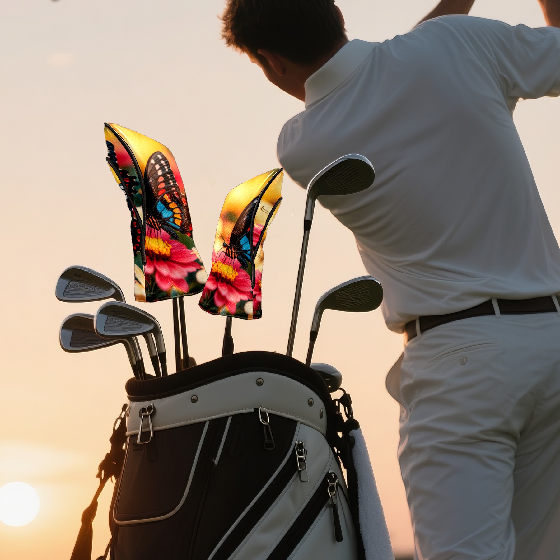 Golf Headcovers Fits Driver Hybrid Fairway 3/5 Wood, Waterproof PU Leather Golf Club Protector, Ideal Sports Accessories & Golfer Gift Flower Butterfly Pattern2