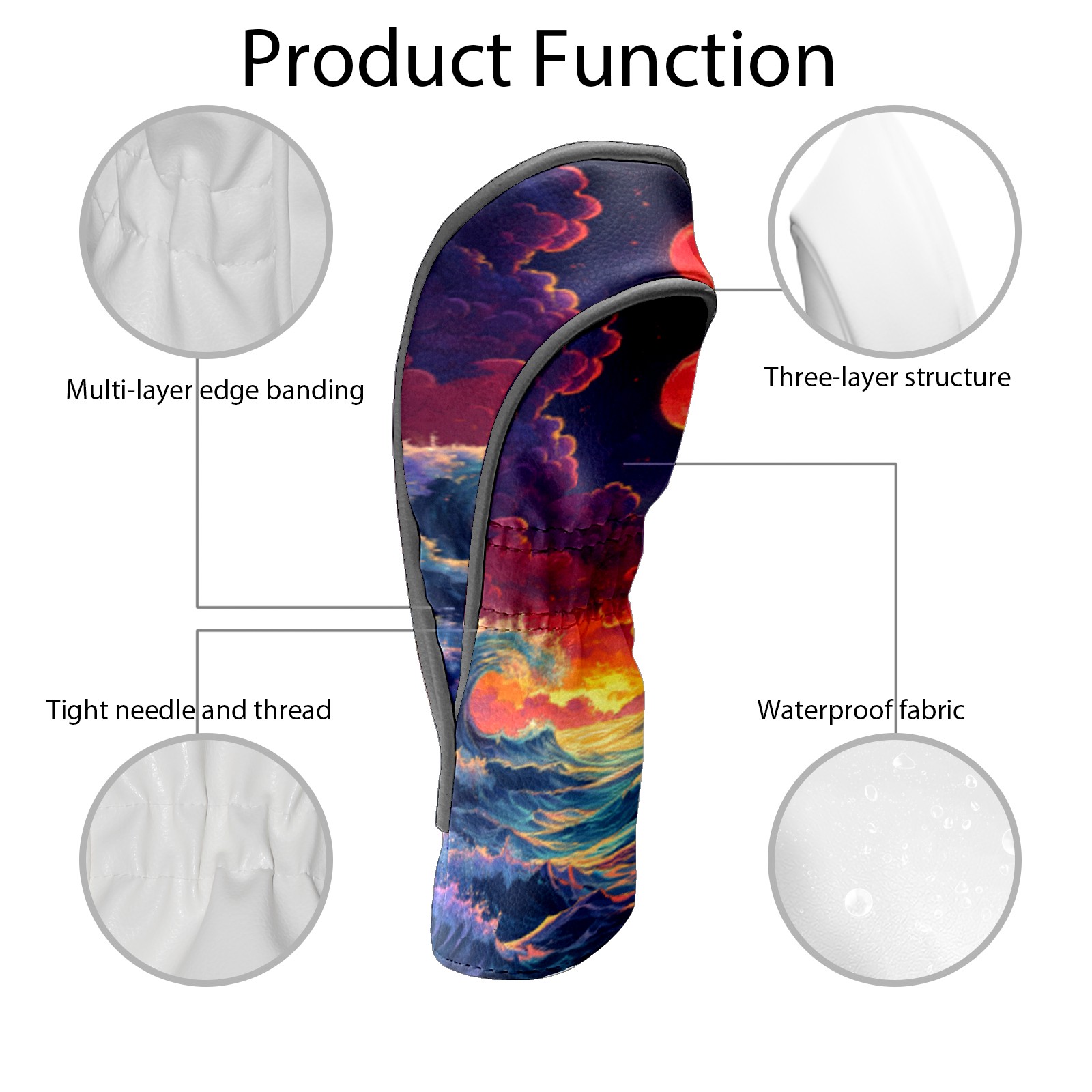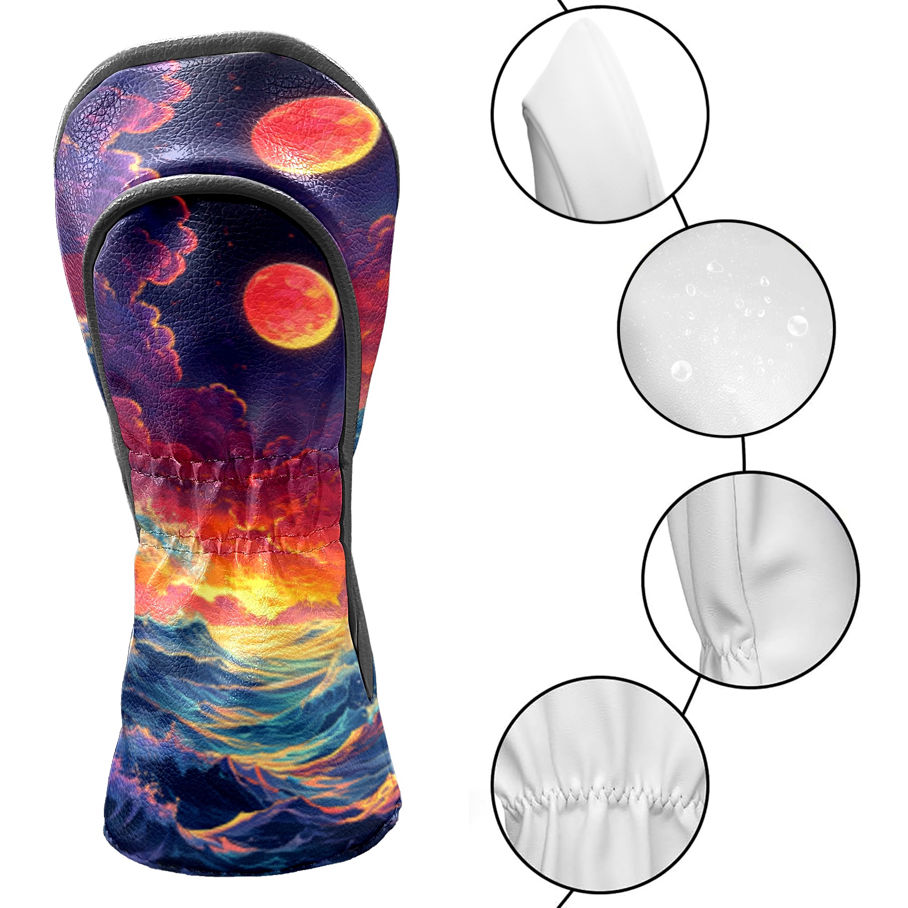 Golf Headcovers Fits Driver Hybrid Fairway 3/5 Wood, Waterproof PU Leather Golf Club Protector, Ideal Sports Accessories & Golfer Gift Wave Pattern1