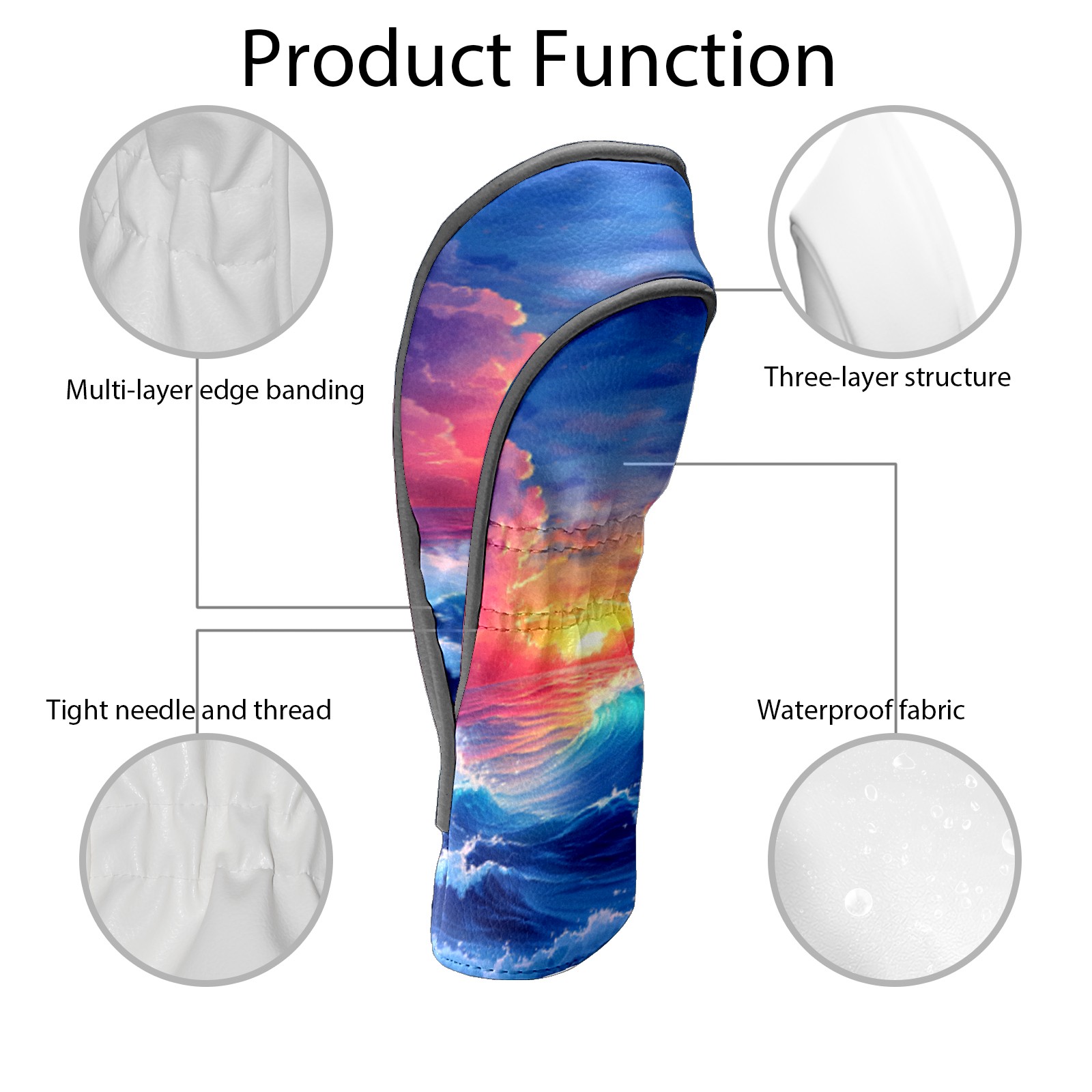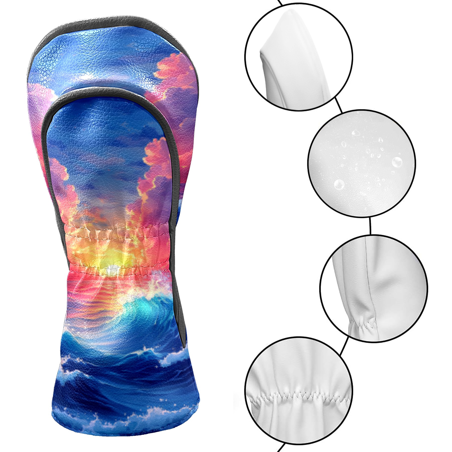 Golf Headcovers Fits Driver Hybrid Fairway 3/5 Wood, Waterproof PU Leather Golf Club Protector, Ideal Sports Accessories & Golfer Gift Wave Pattern