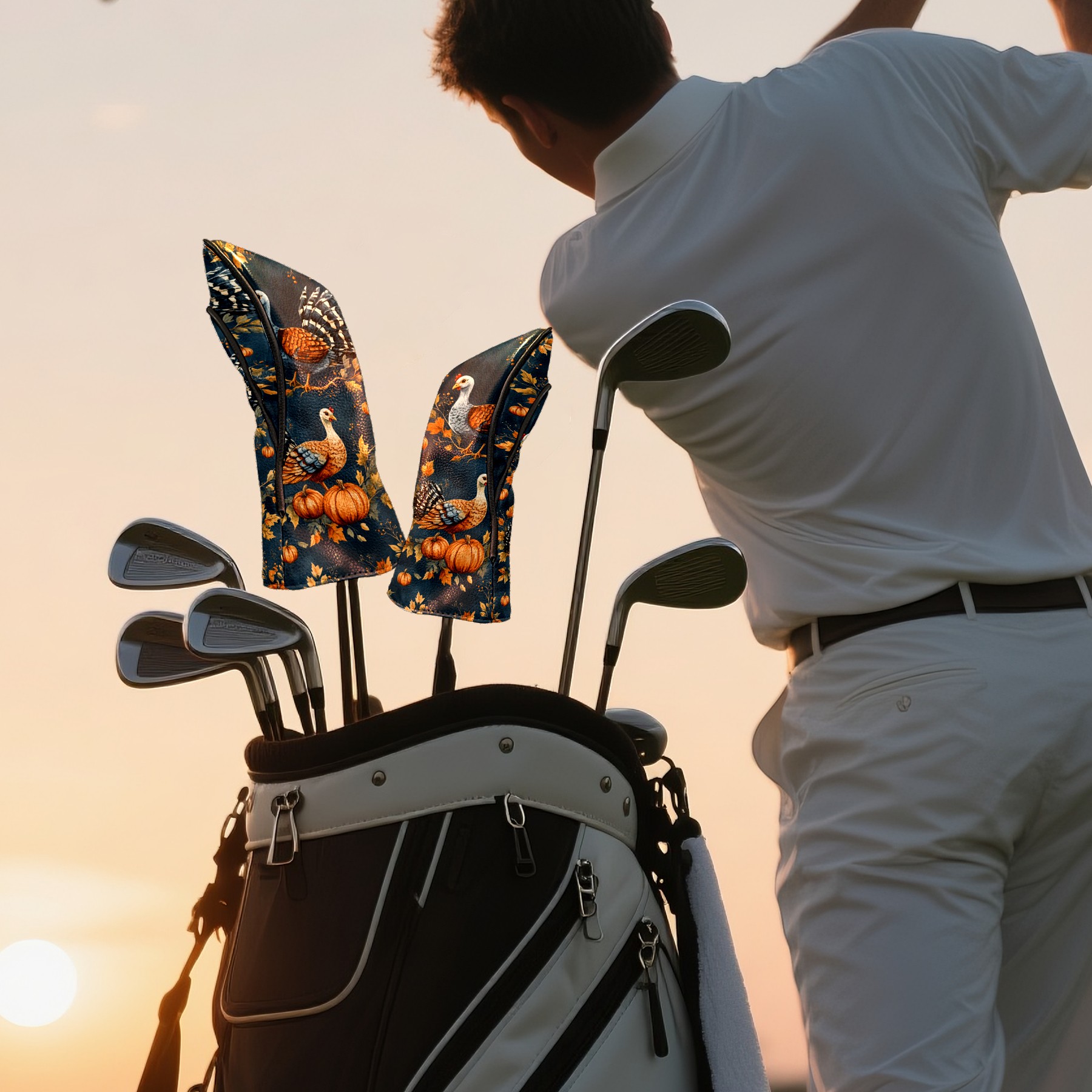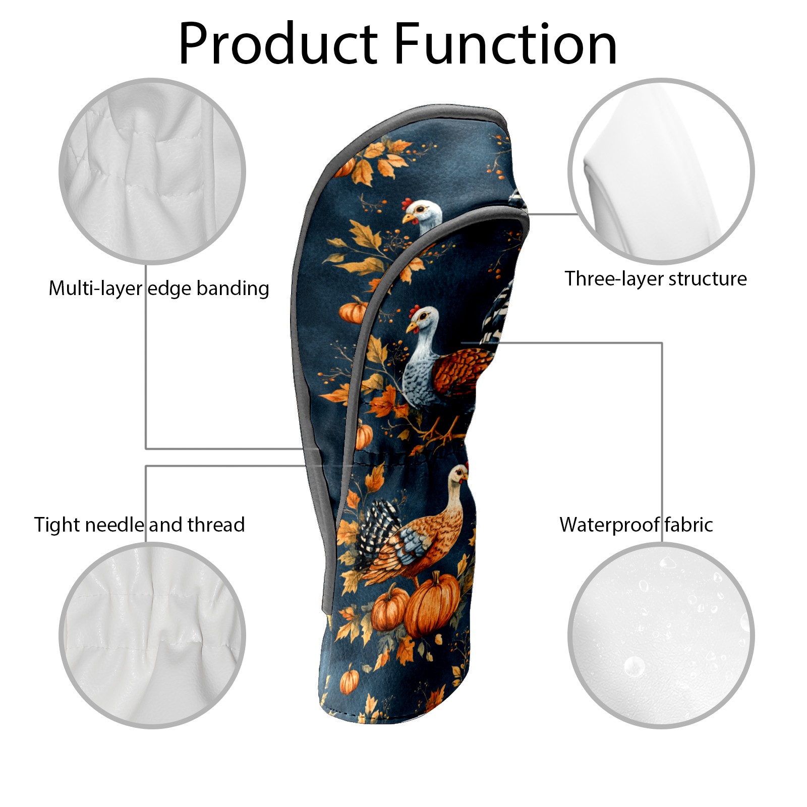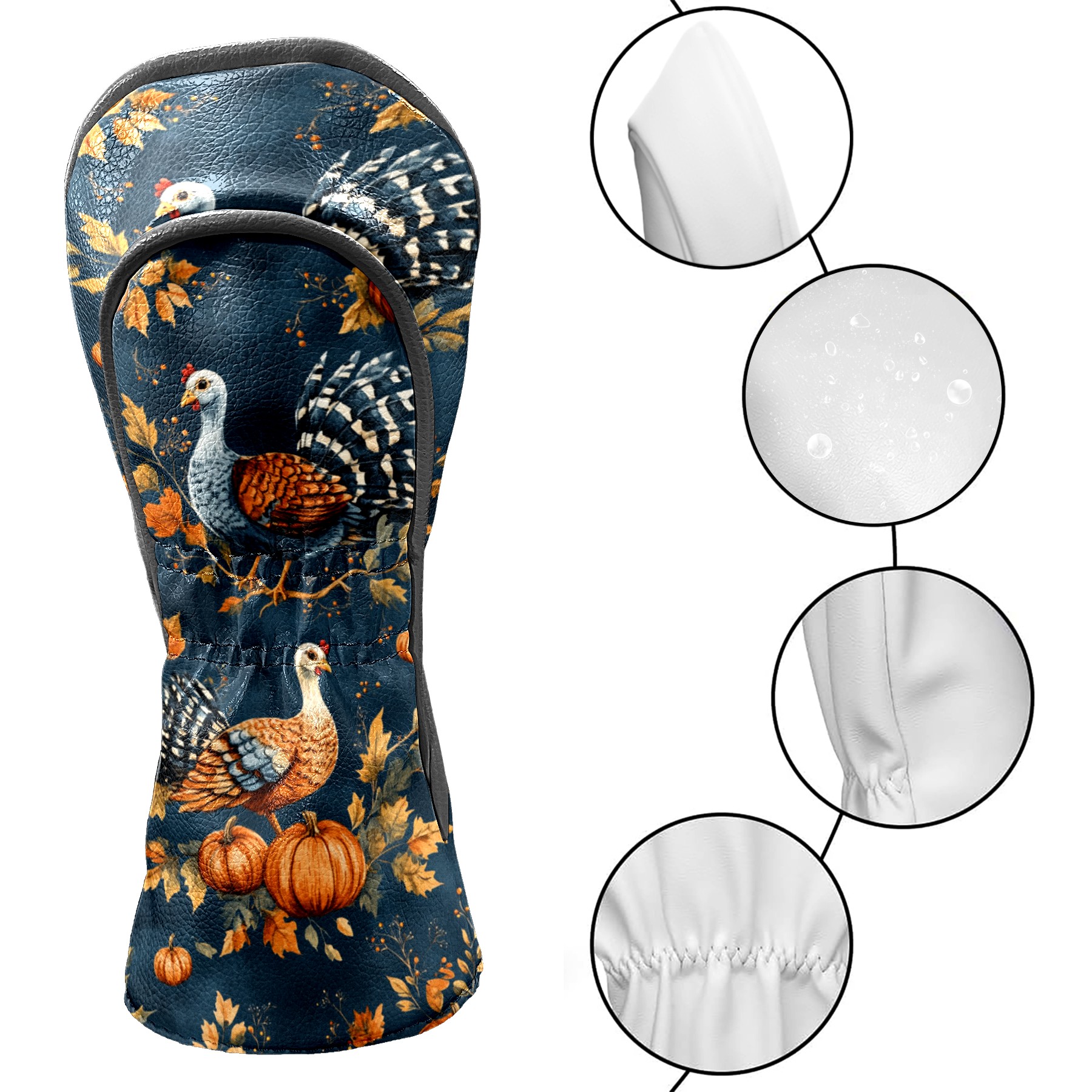 Golf Headcovers Fits Driver Hybrid Fairway 3/5 Wood, Waterproof PU Leather Golf Club Protector, Ideal Sports Accessories & Golfer Gift Pumpkin Chick Pattern1