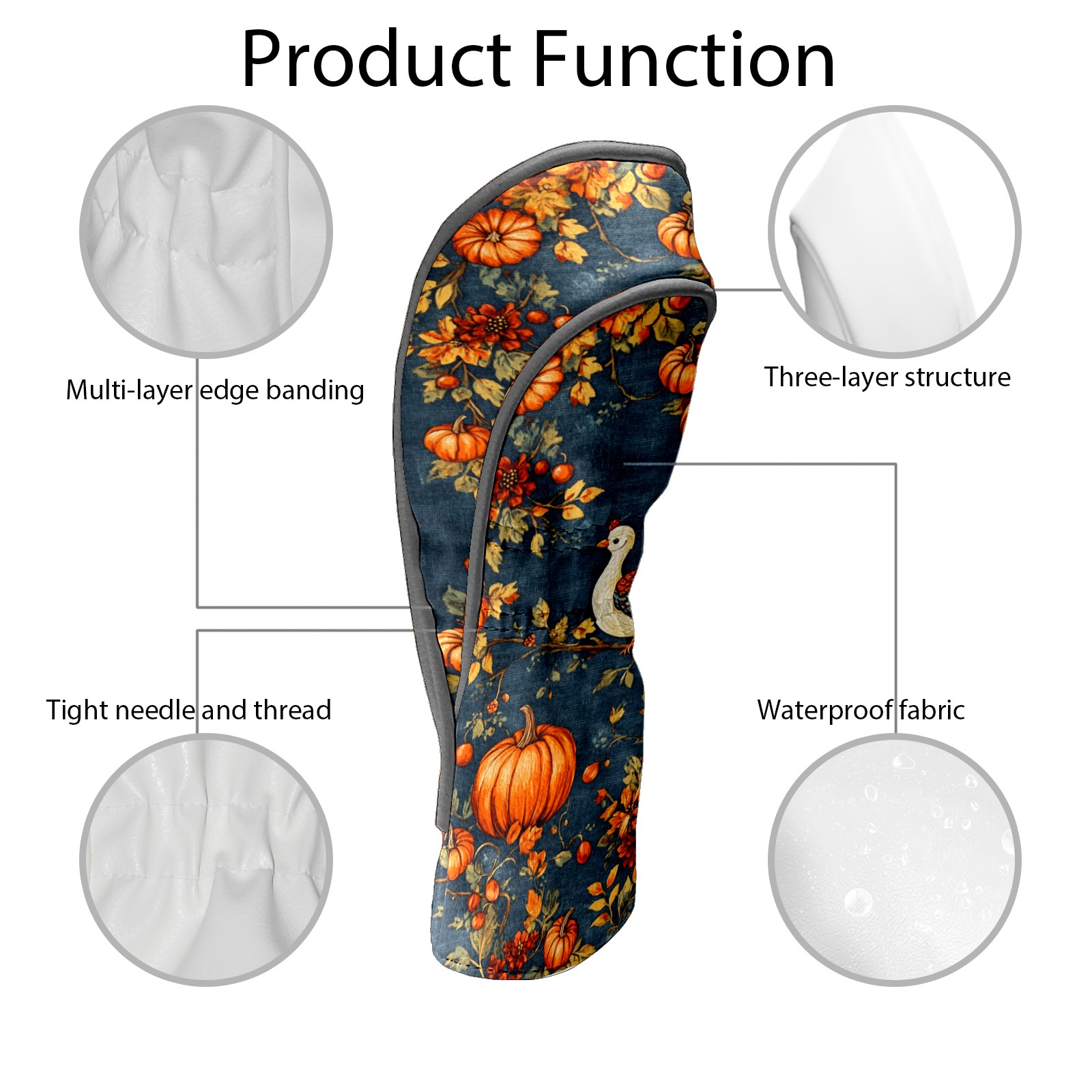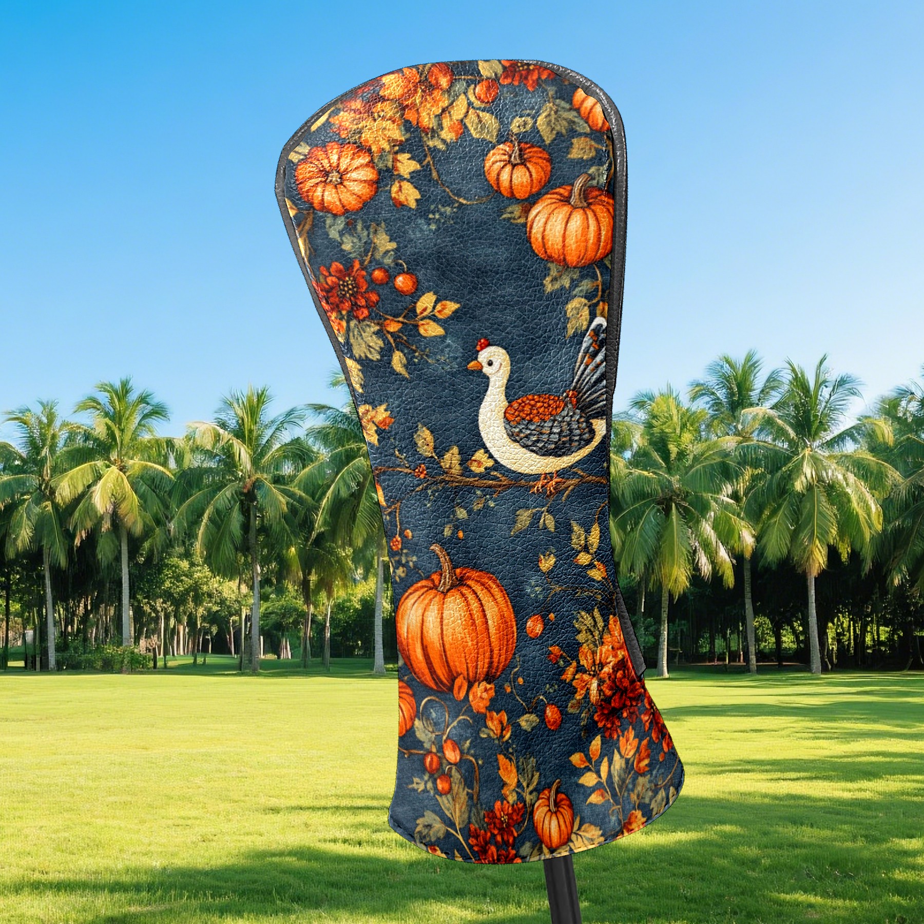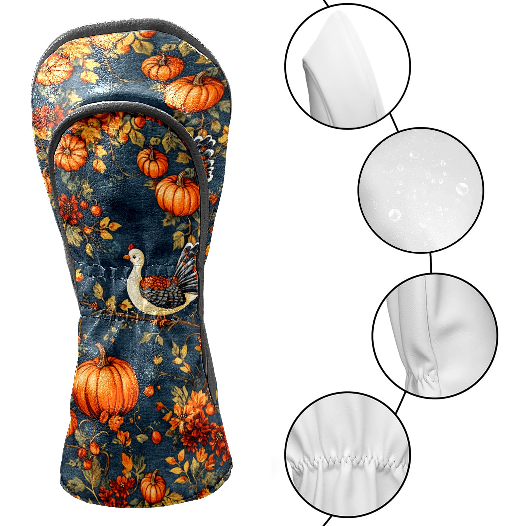 Golf Headcovers Fits Driver Hybrid Fairway 3/5 Wood, Waterproof PU Leather Golf Club Protector, Ideal Sports Accessories & Golfer Gift Pumpkin Chick Pattern