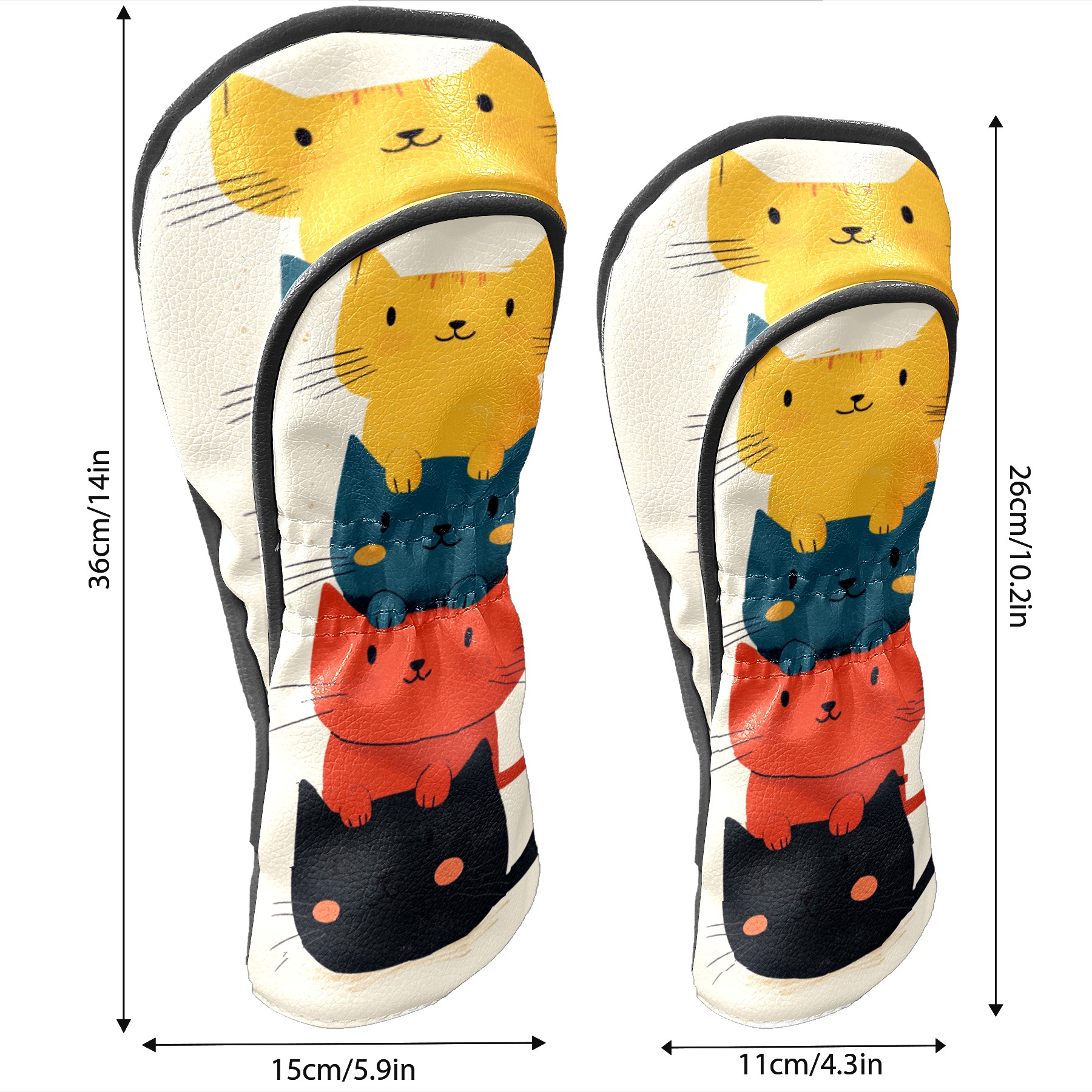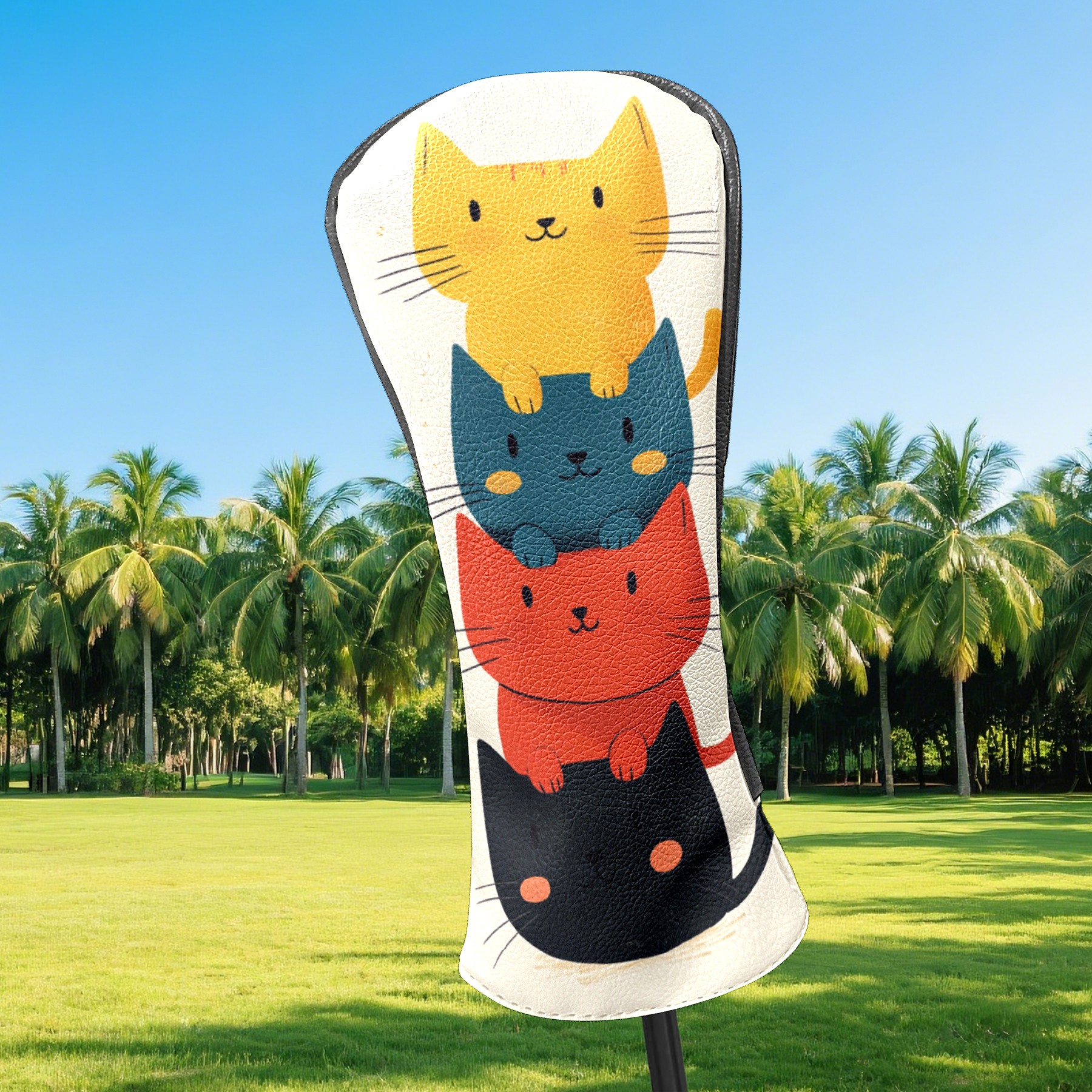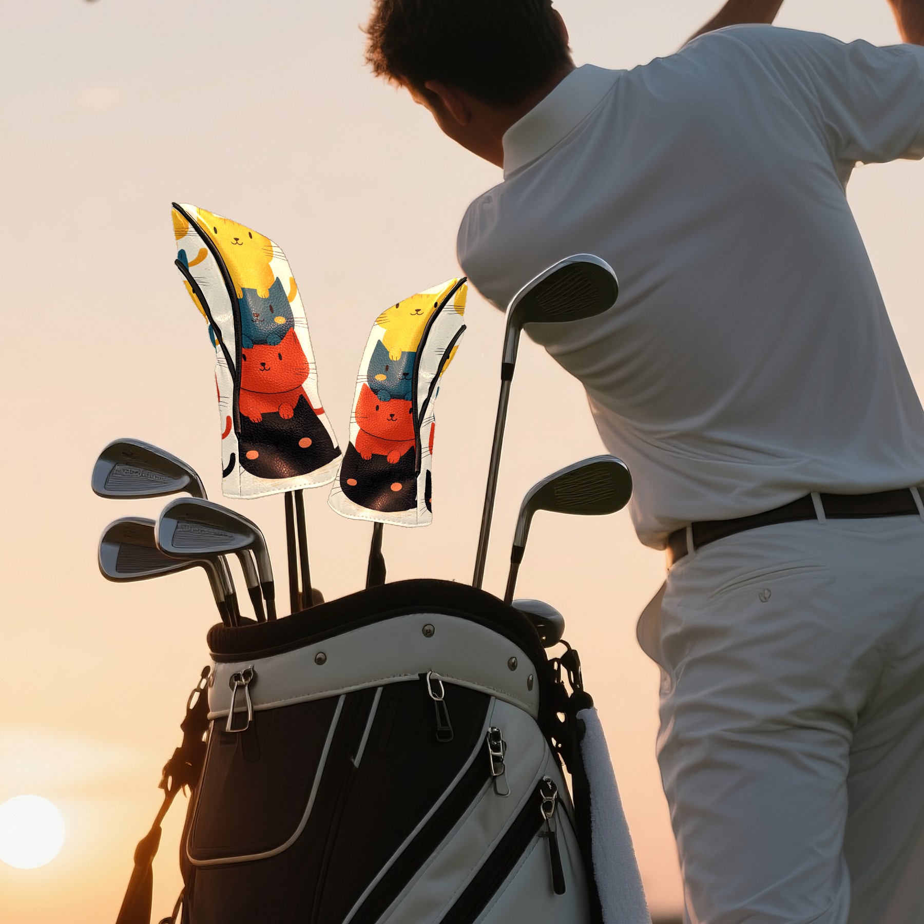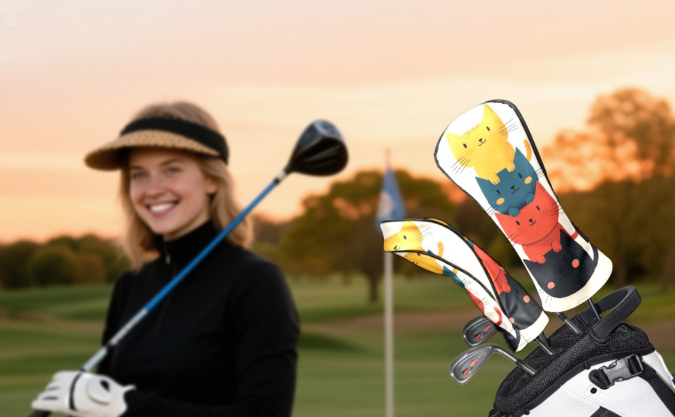 Golf Headcovers Fits Driver Hybrid Fairway 3/5 Wood, Waterproof PU Leather Golf Club Protector, Ideal Sports Accessories & Golfer Gift Cartoon Cat Pattern