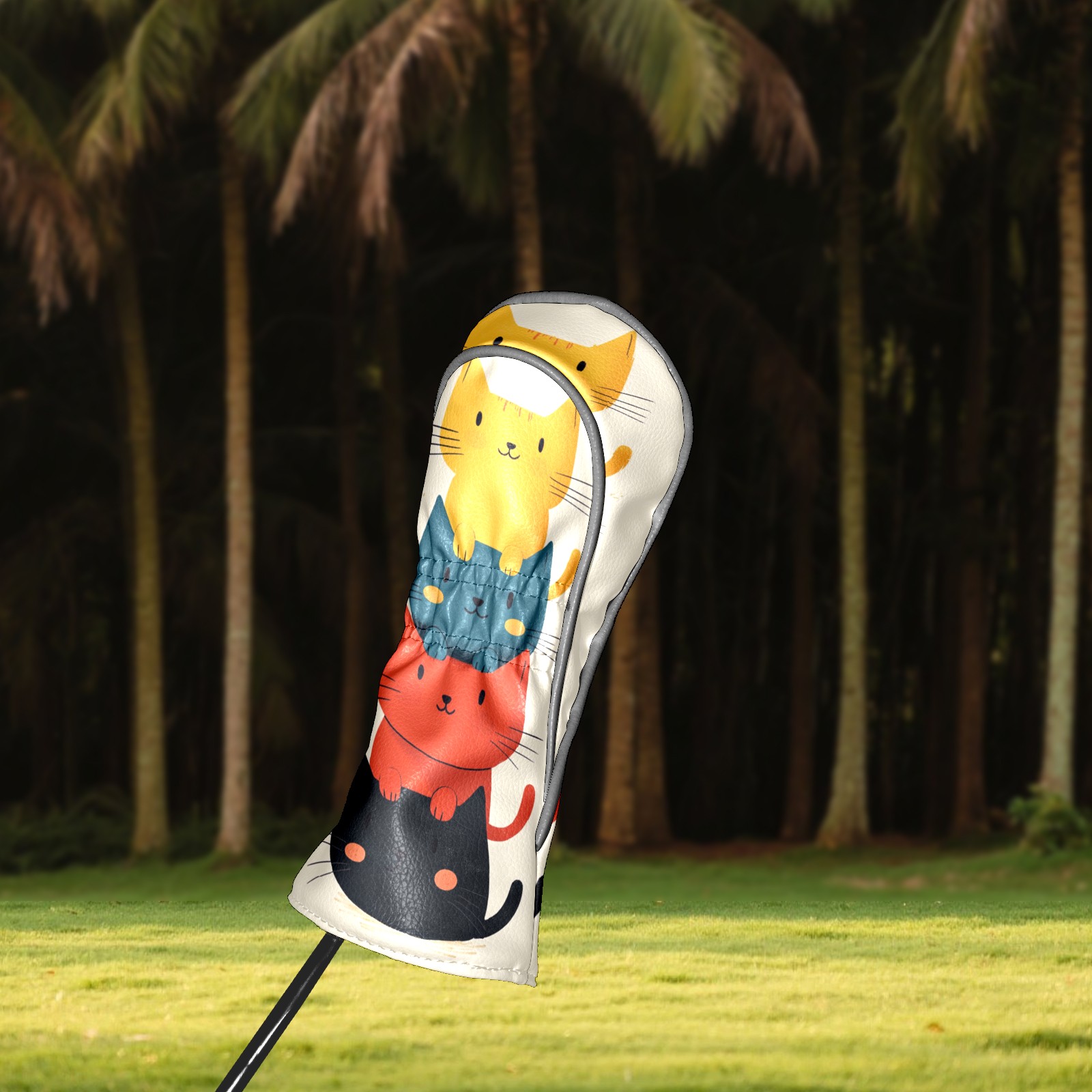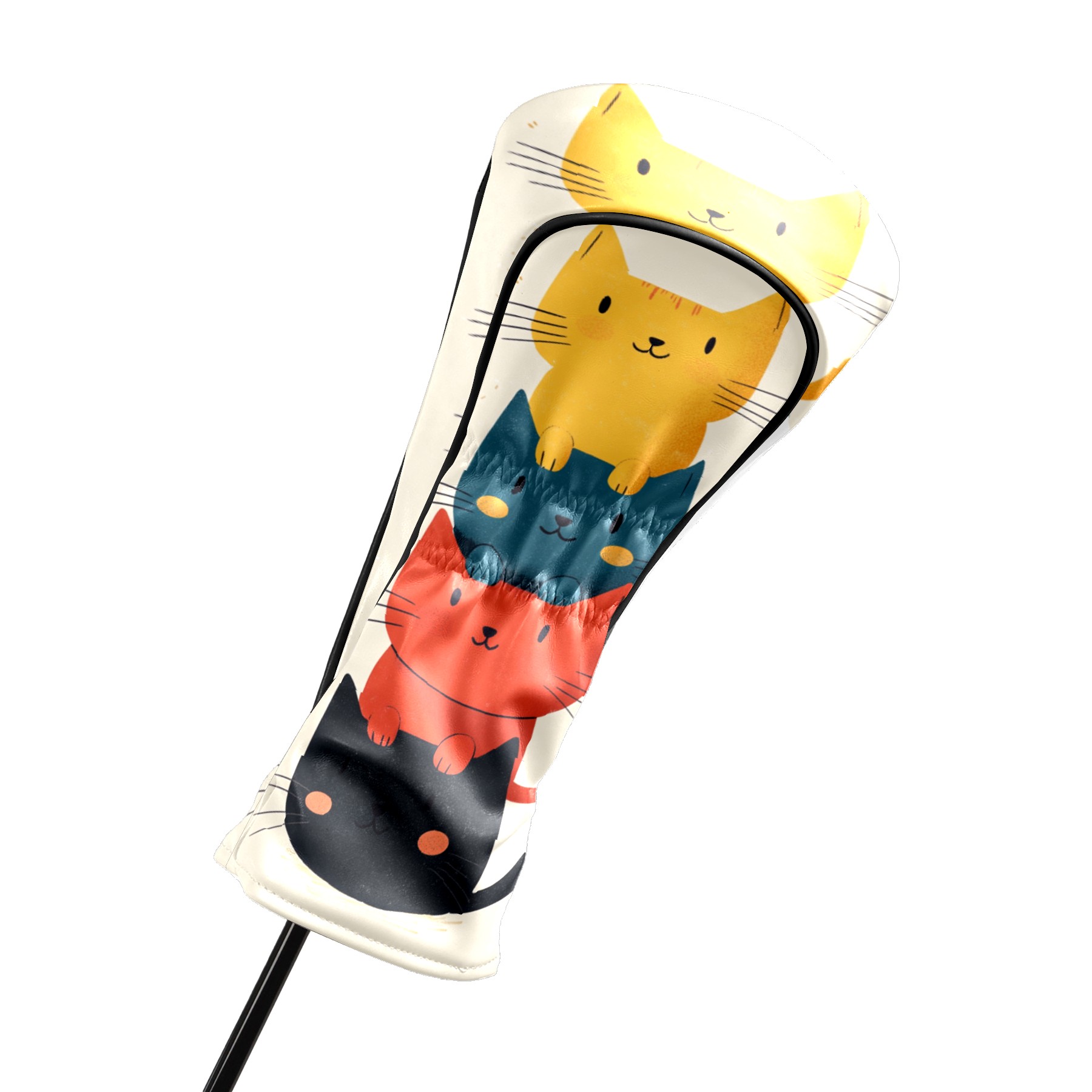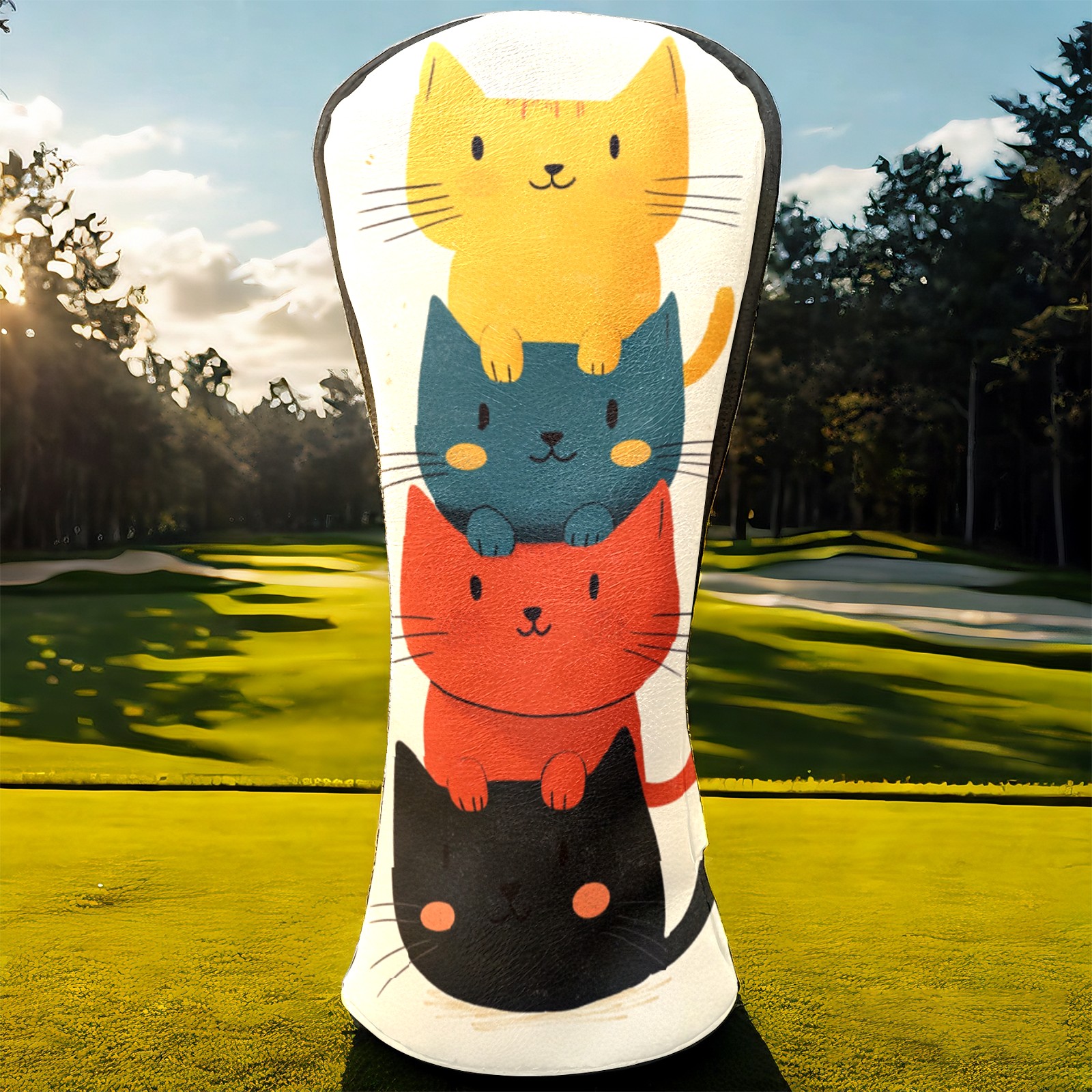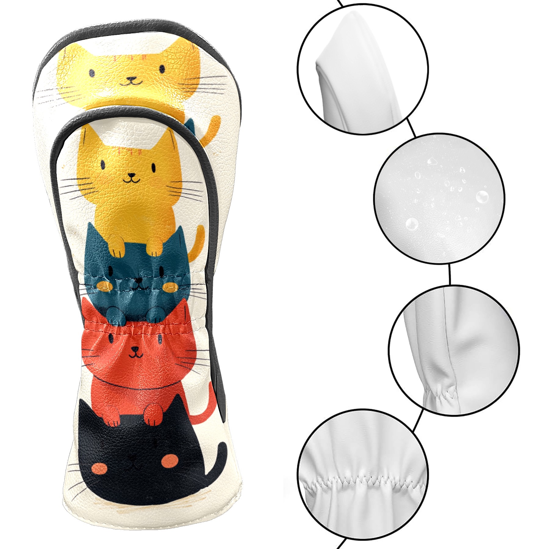 Golf Headcovers Fits Driver Hybrid Fairway 3/5 Wood, Waterproof PU Leather Golf Club Protector, Ideal Sports Accessories & Golfer Gift Cartoon Cat Pattern