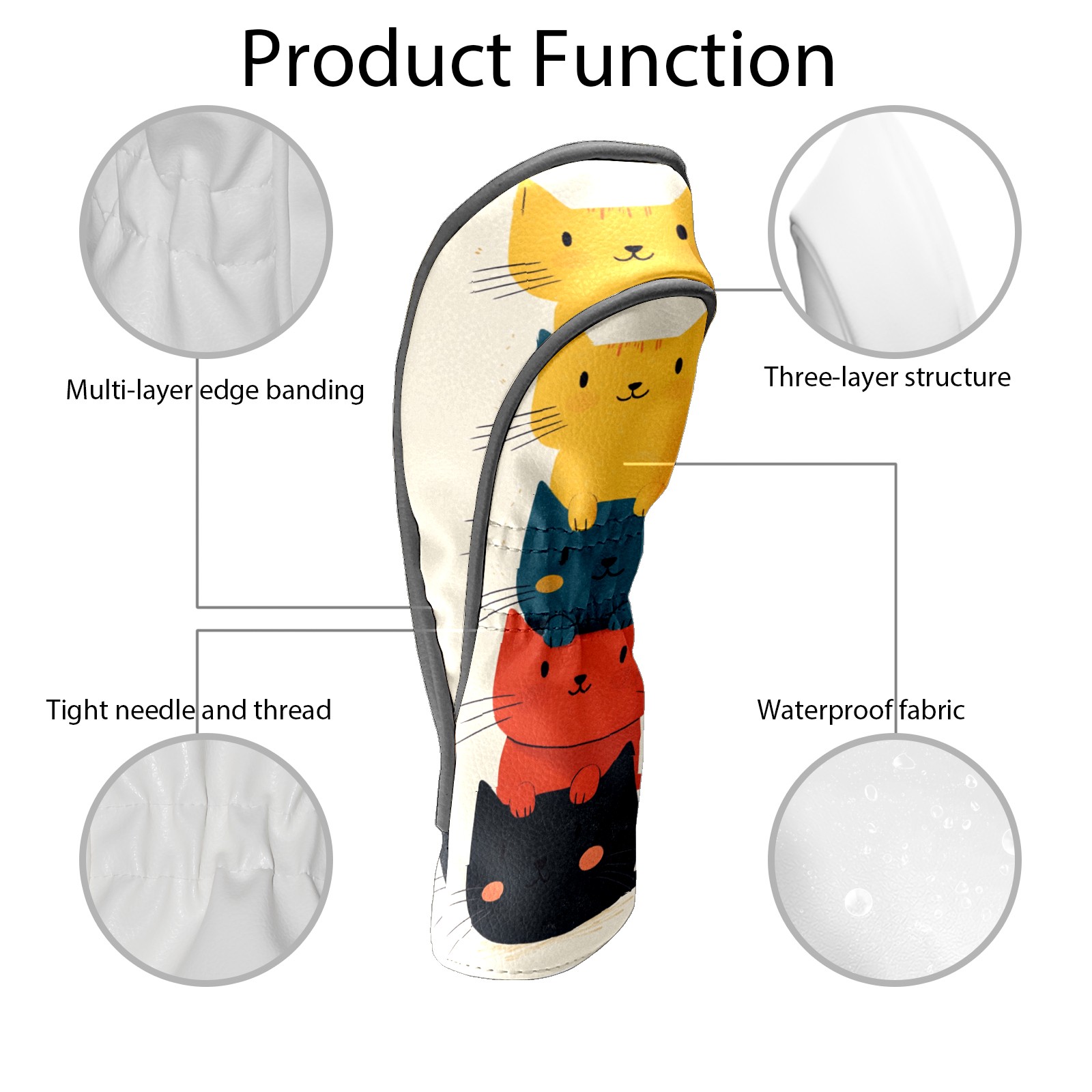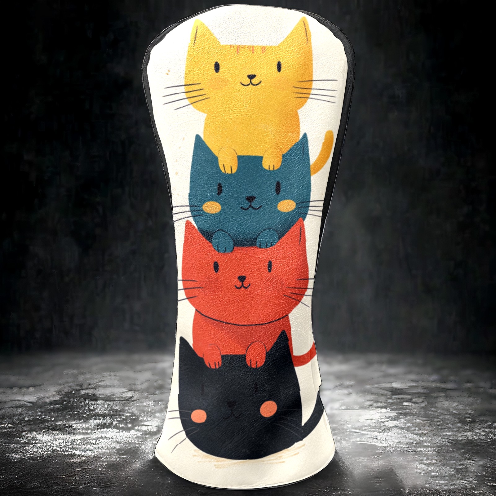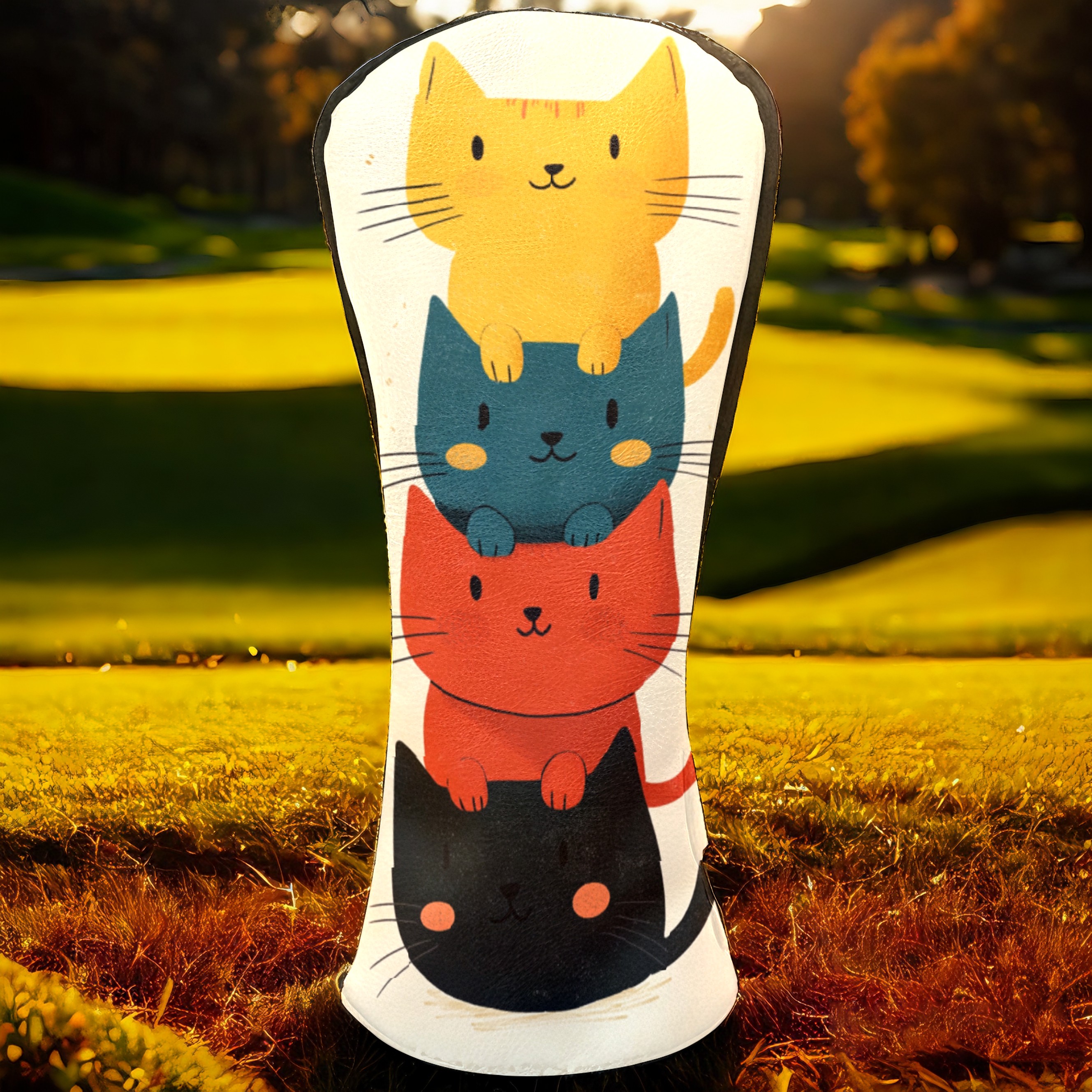 Golf Headcovers Fits Driver Hybrid Fairway 3/5 Wood, Waterproof PU Leather Golf Club Protector, Ideal Sports Accessories & Golfer Gift Cartoon Cat Pattern