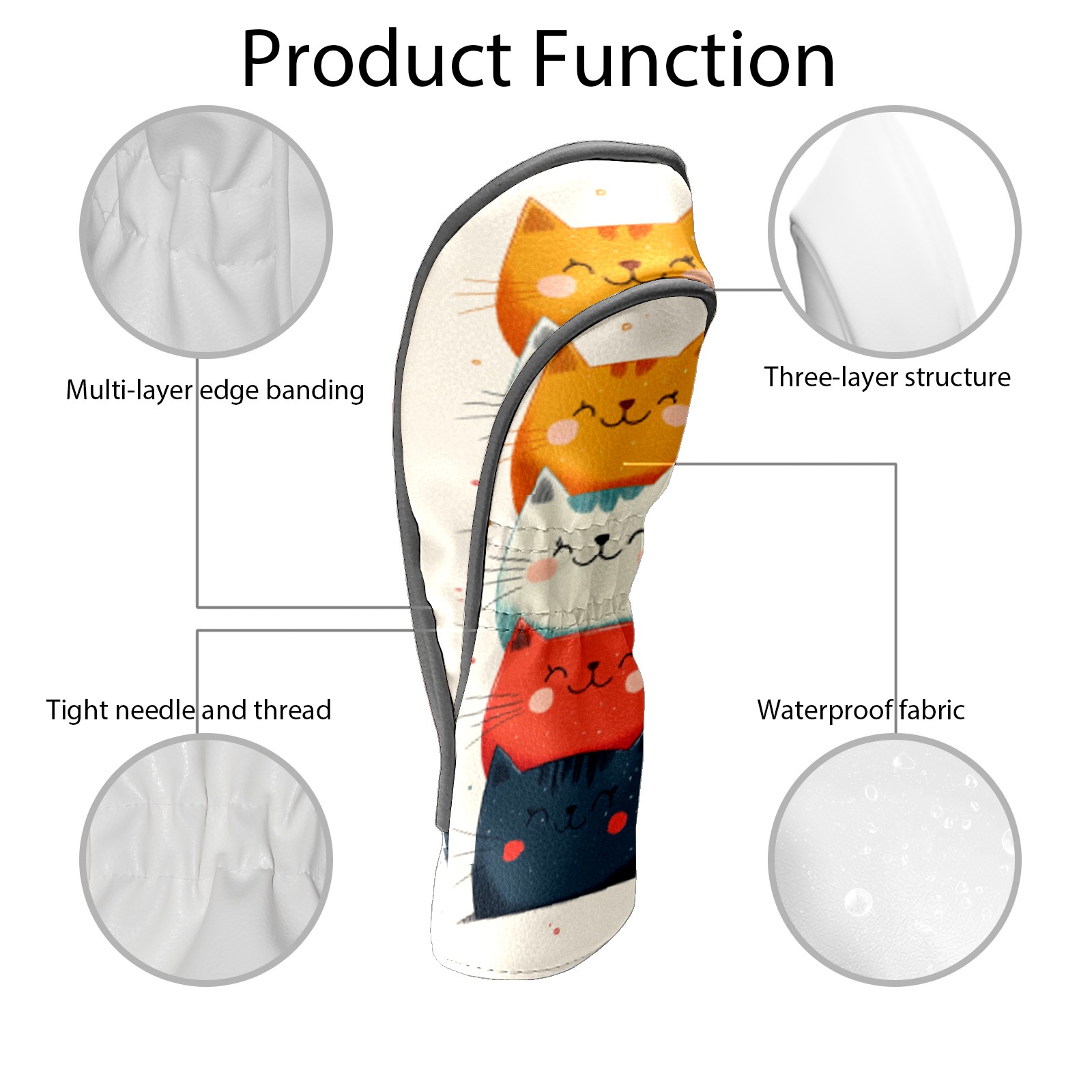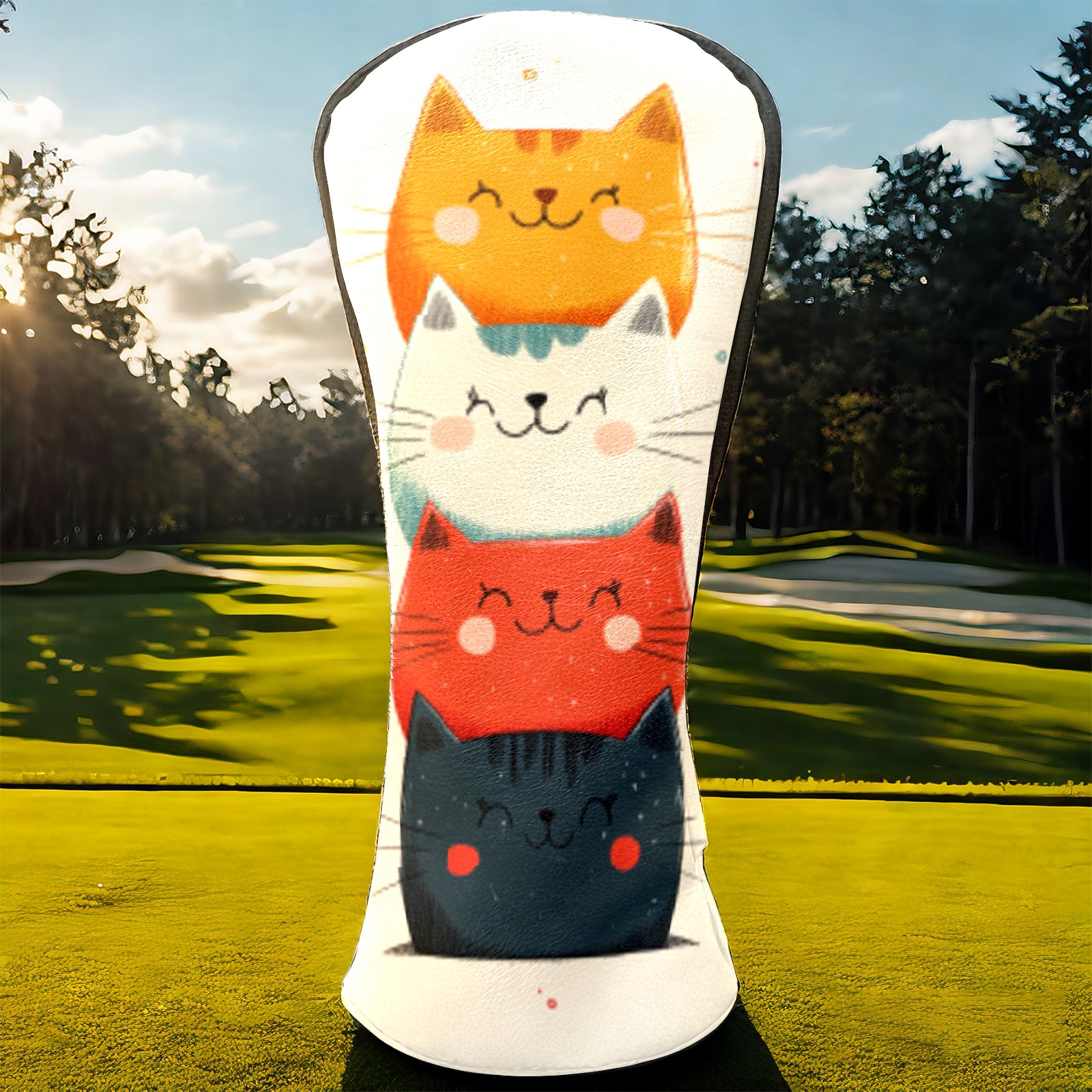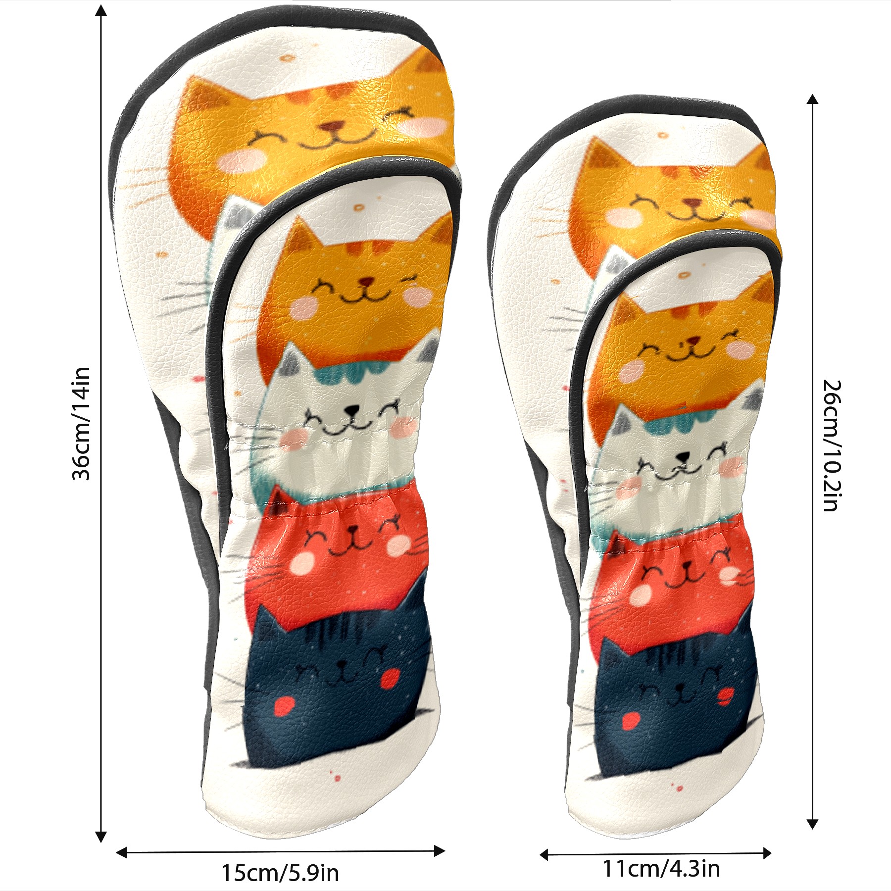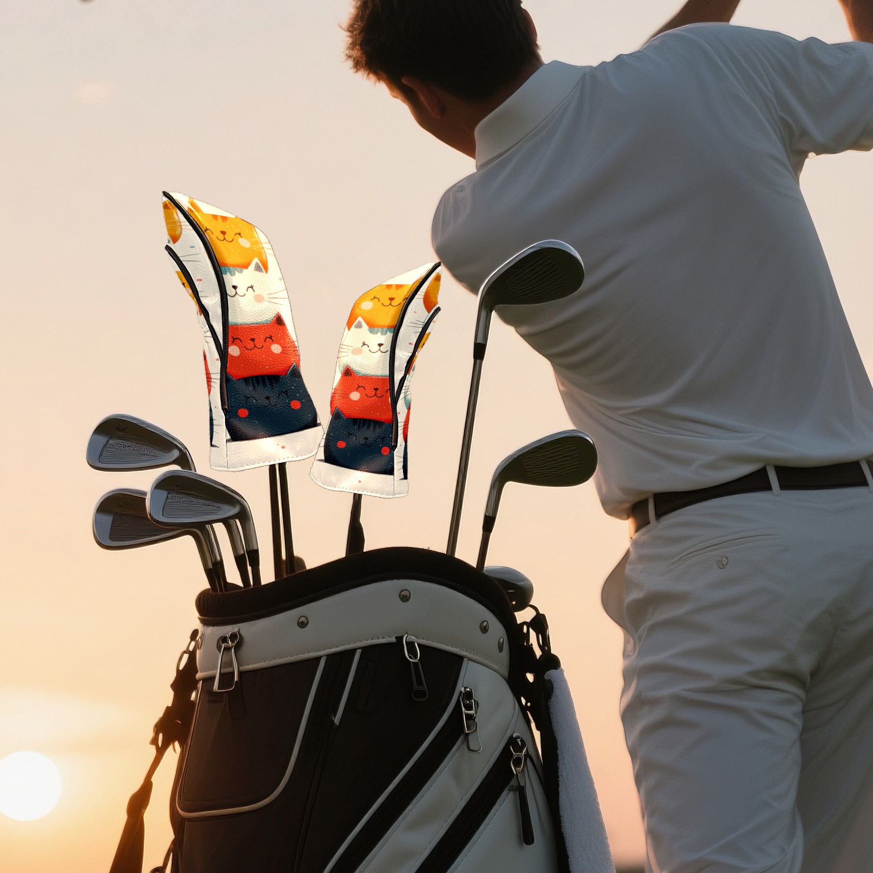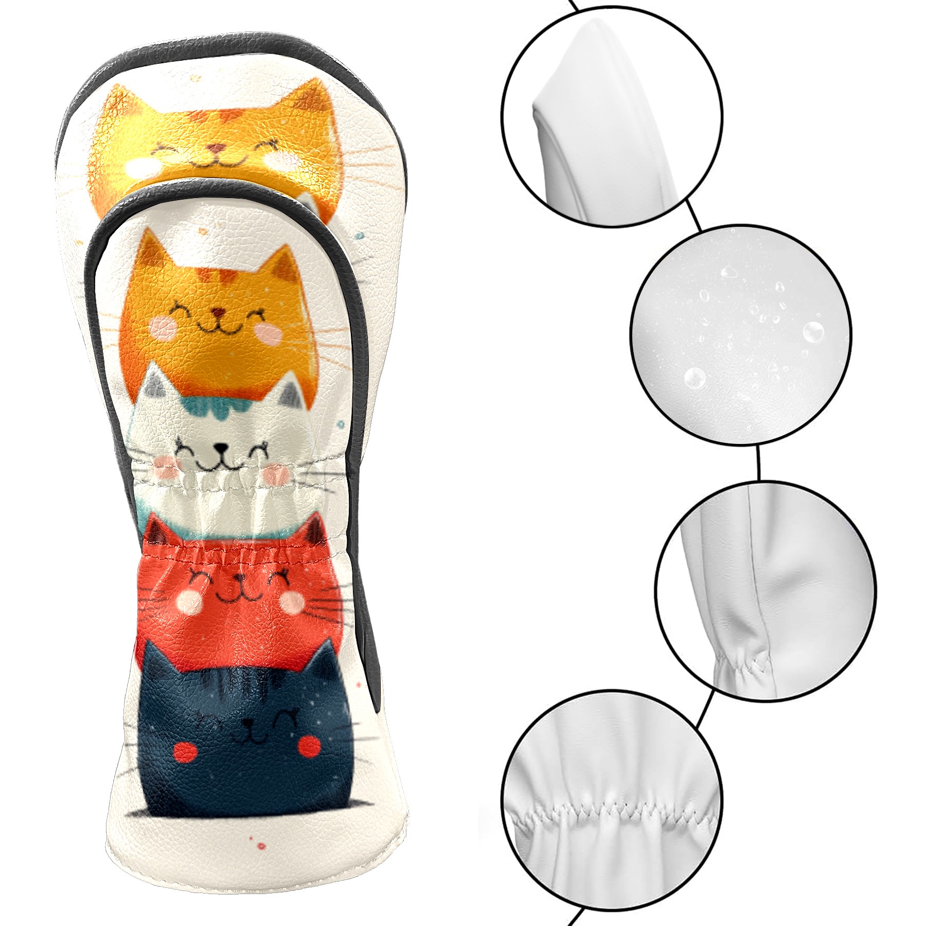 Golf Headcovers Fits Driver Hybrid Fairway 3/5 Wood, Waterproof PU Leather Golf Club Protector, Ideal Sports Accessories & Golfer Gift Cartoon Cat Pattern2