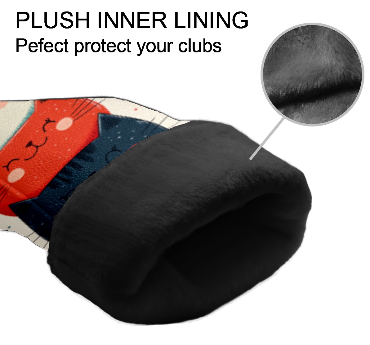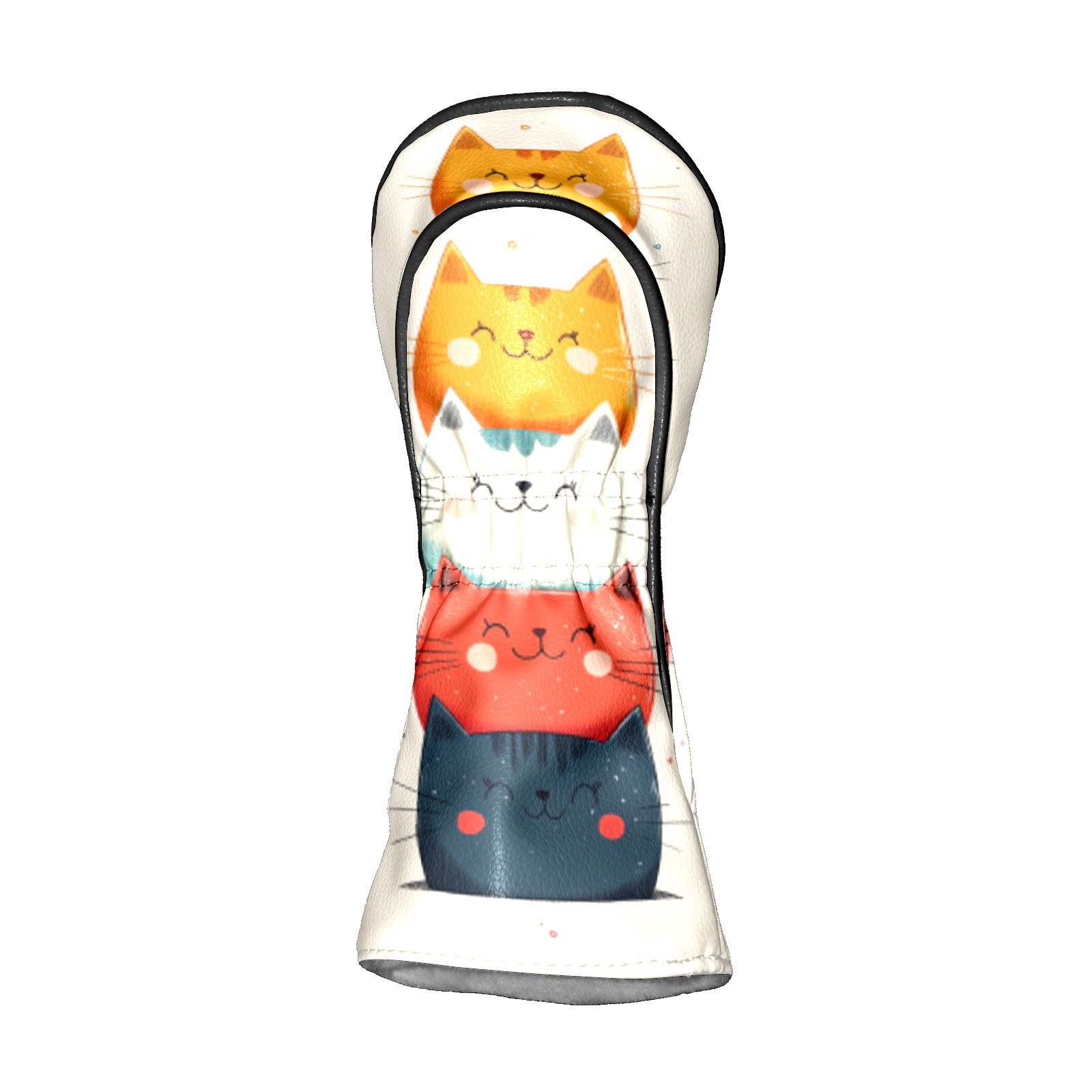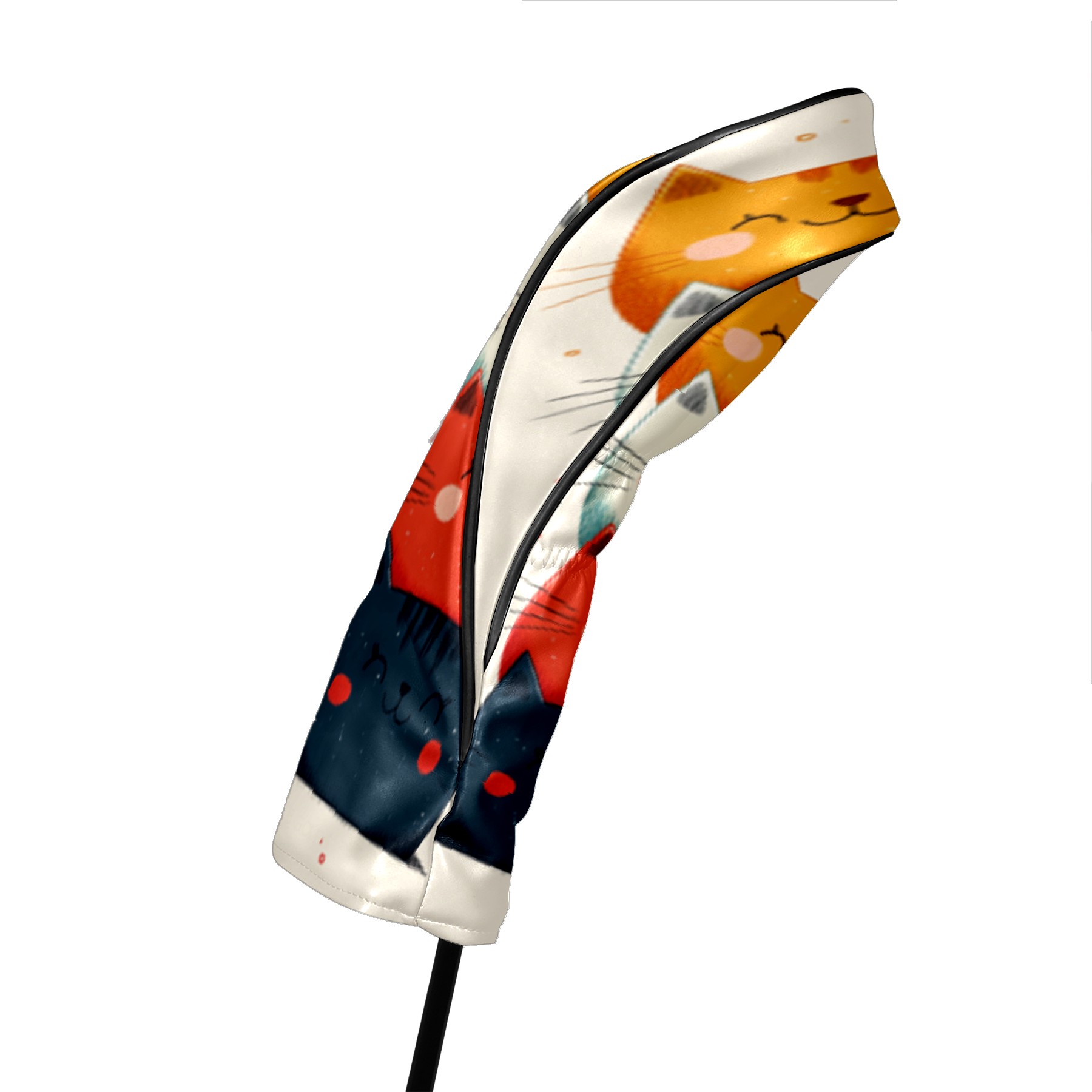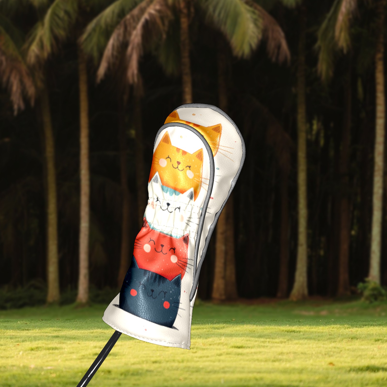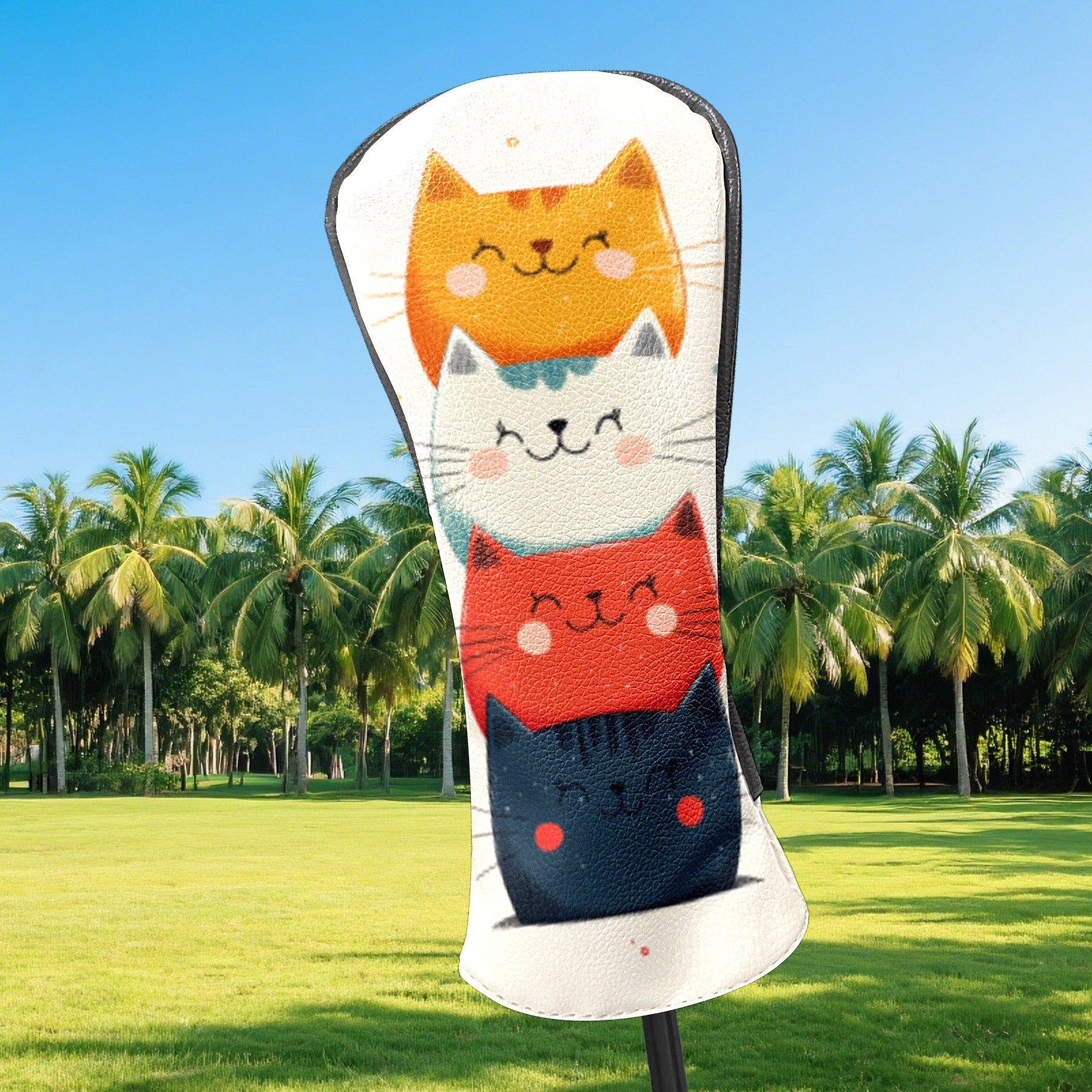 Golf Headcovers Fits Driver Hybrid Fairway 3/5 Wood, Waterproof PU Leather Golf Club Protector, Ideal Sports Accessories & Golfer Gift Cartoon Cat Pattern2