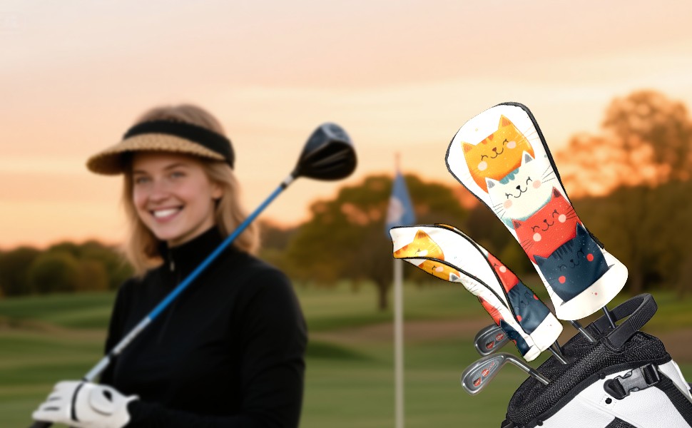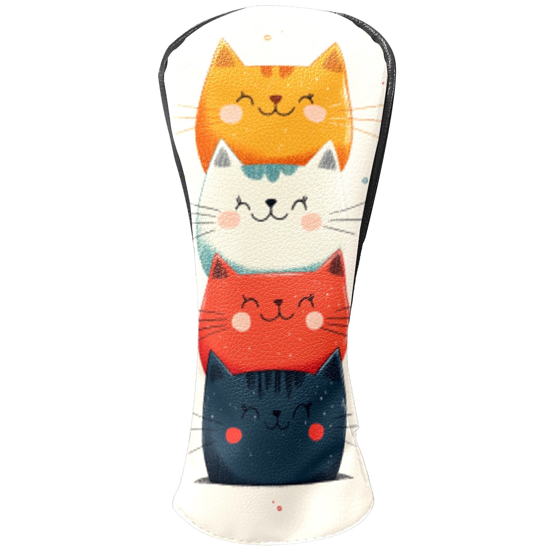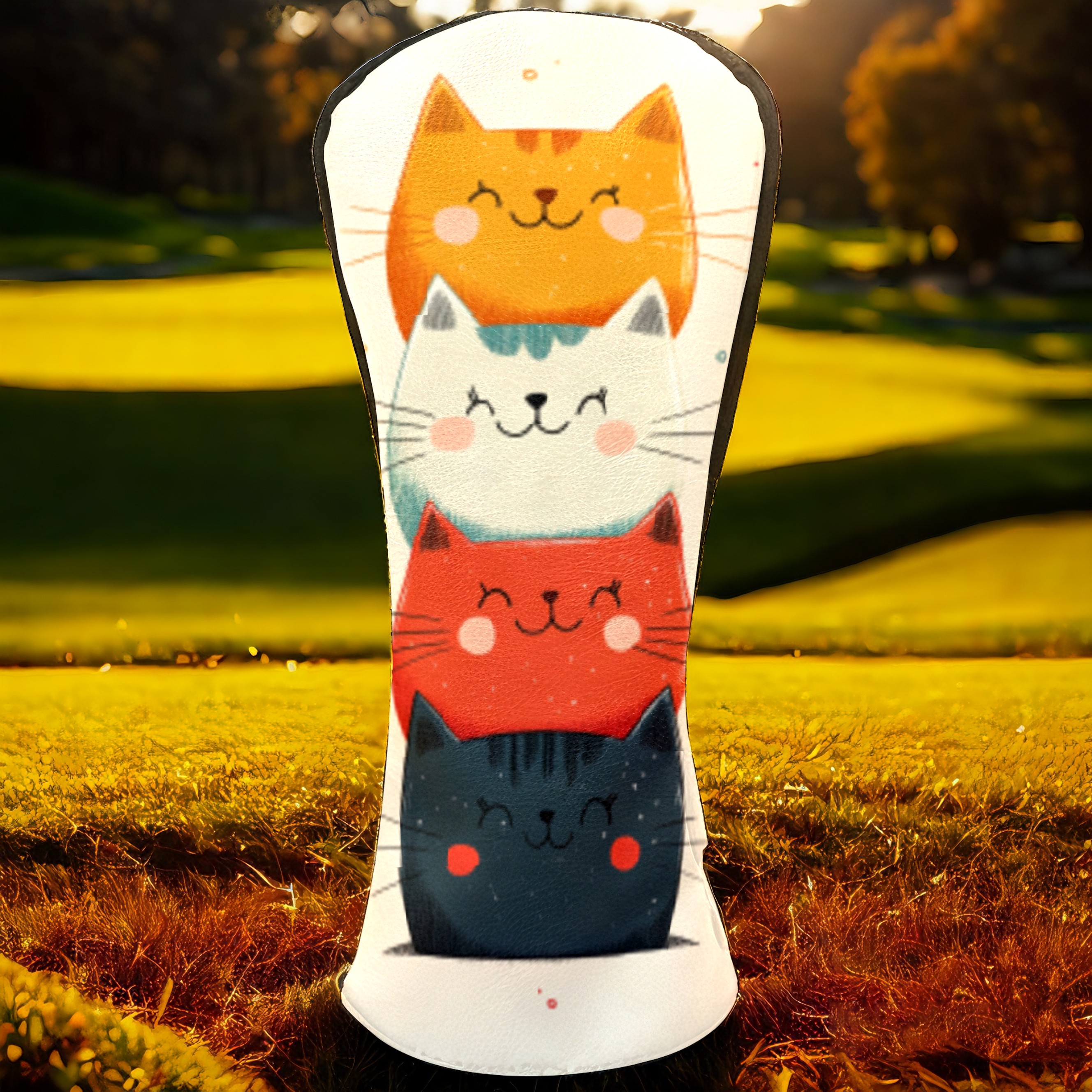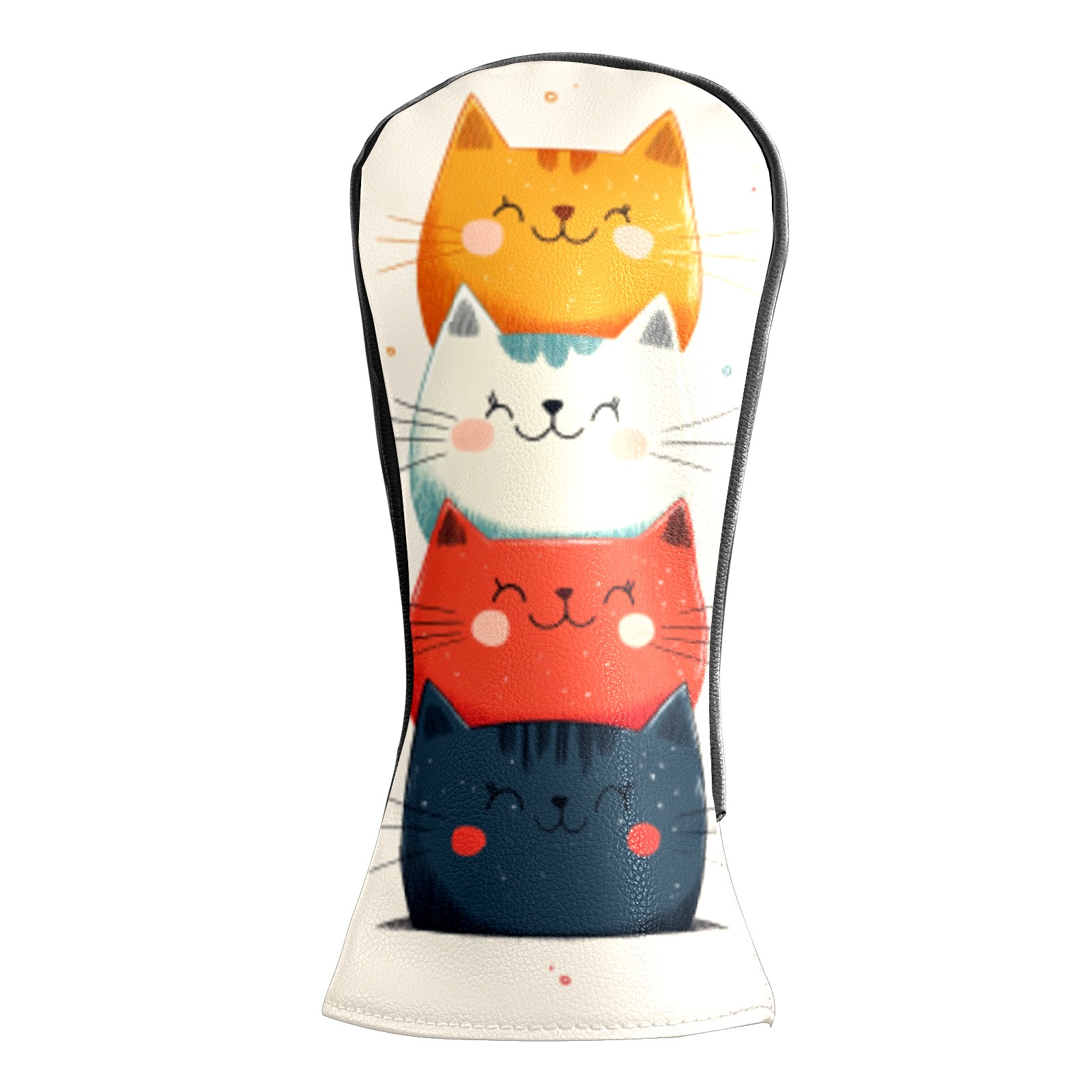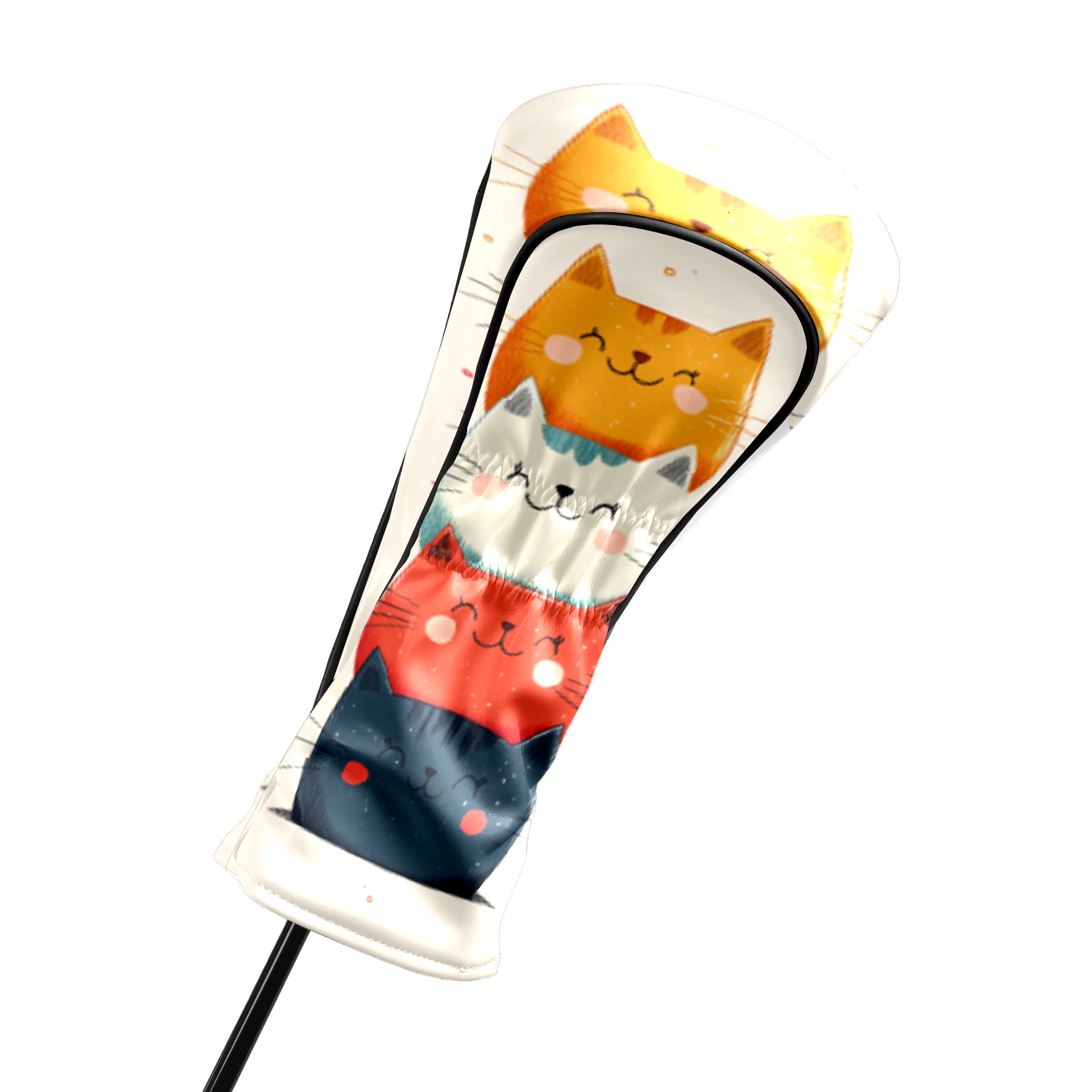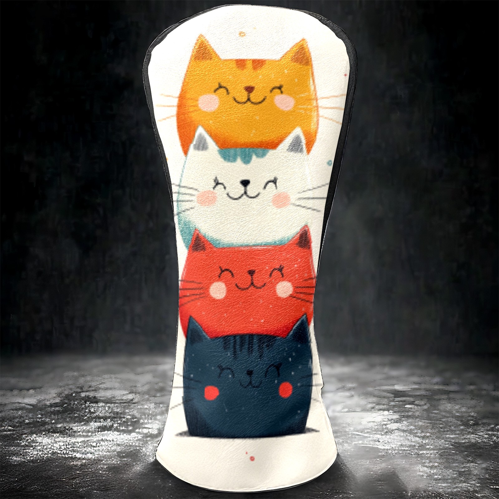 Golf Headcovers Fits Driver Hybrid Fairway 3/5 Wood, Waterproof PU Leather Golf Club Protector, Ideal Sports Accessories & Golfer Gift Cartoon Cat Pattern2