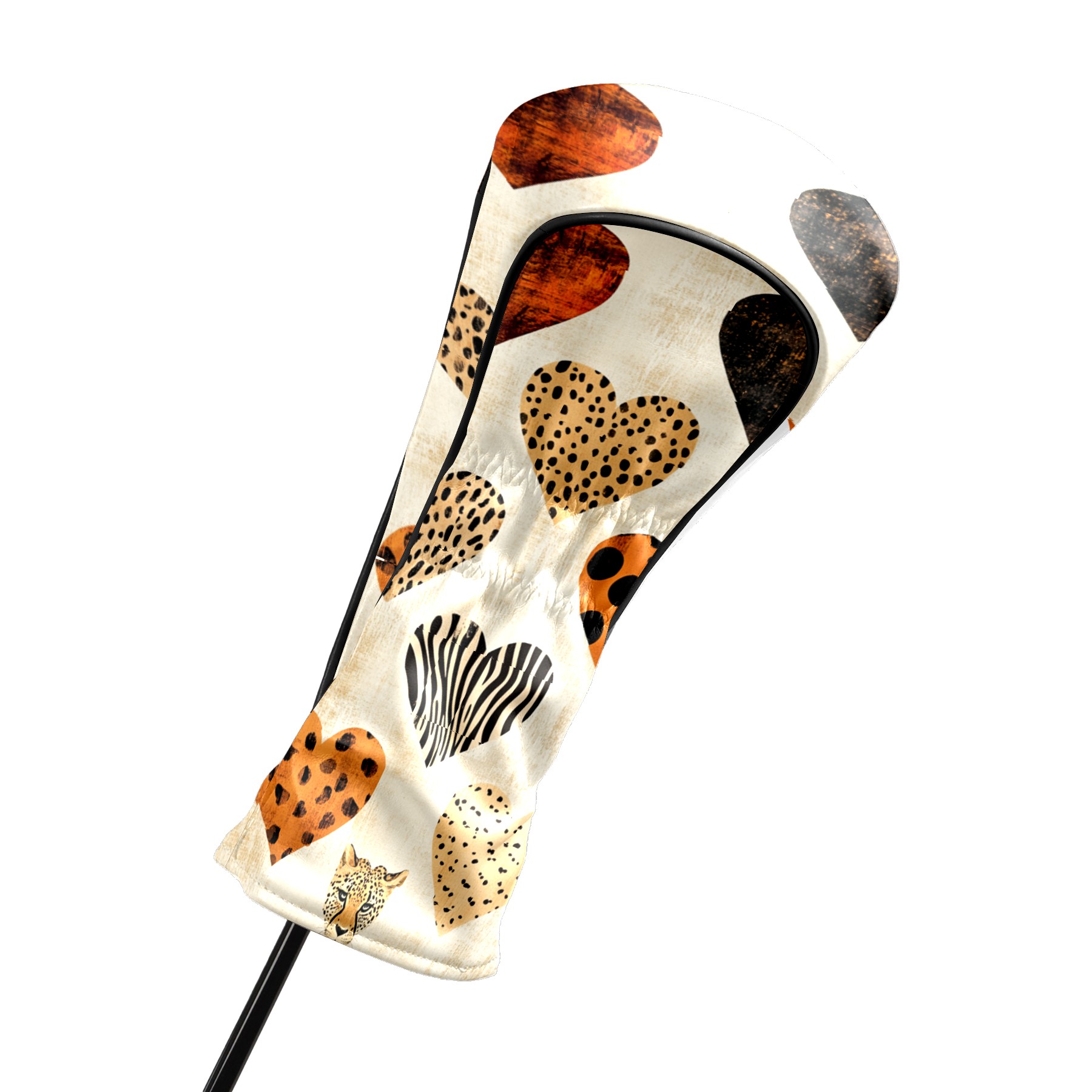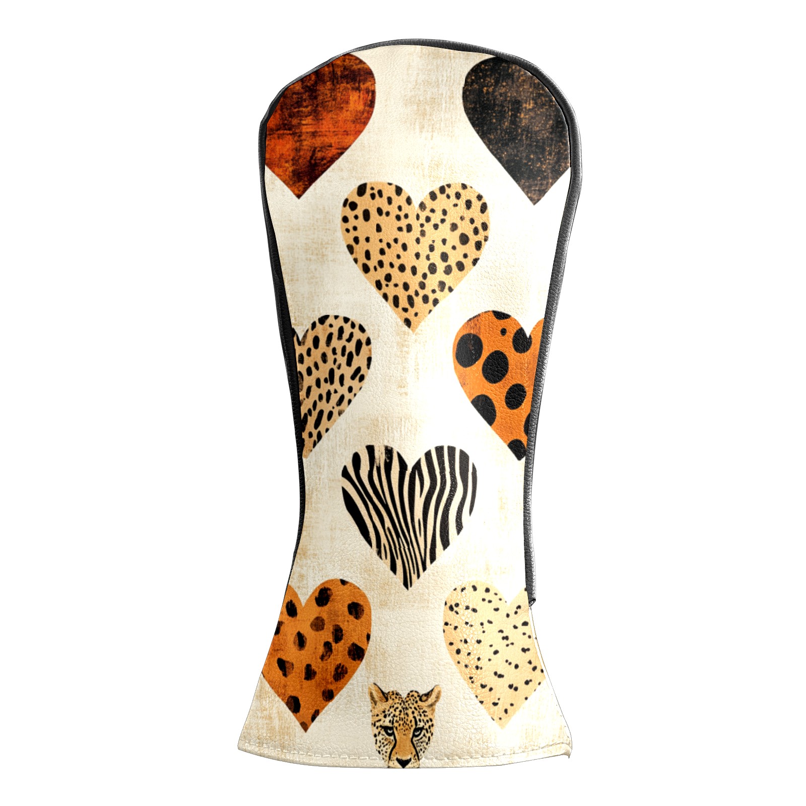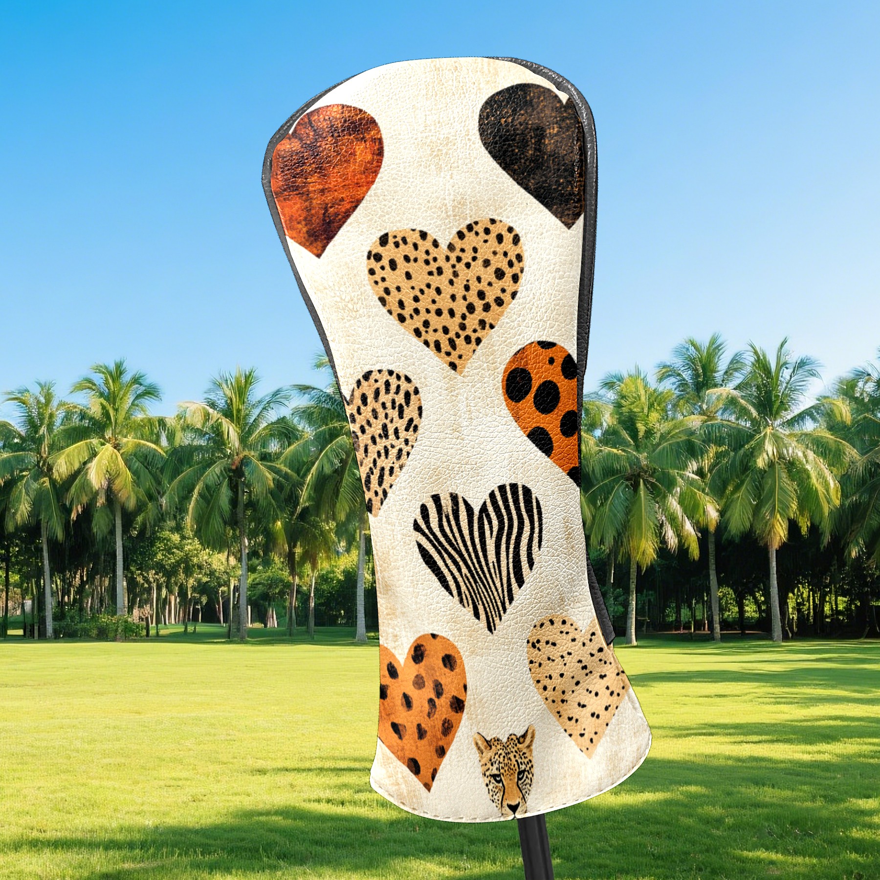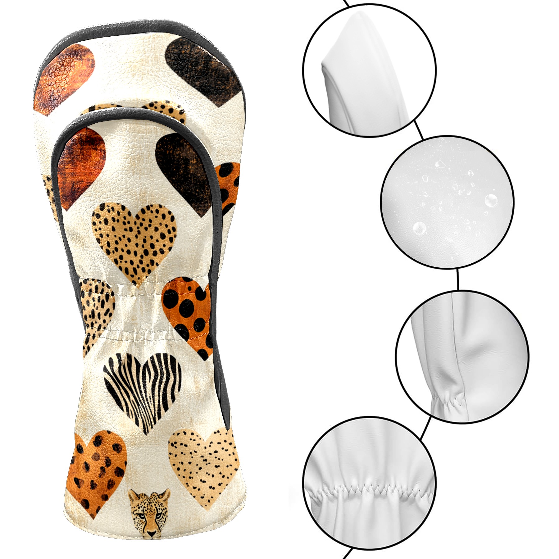 Golf Headcovers Fits Driver Hybrid Fairway 3/5 Wood, Waterproof PU Leather Golf Club Protector, Ideal Sports Accessories & Golfer Gift Brown Heart Pattern2