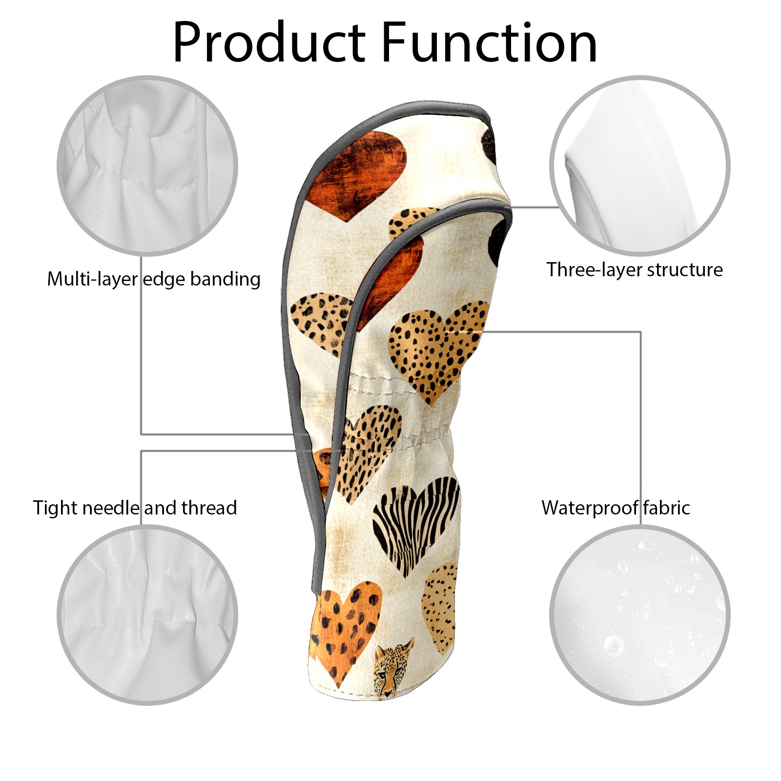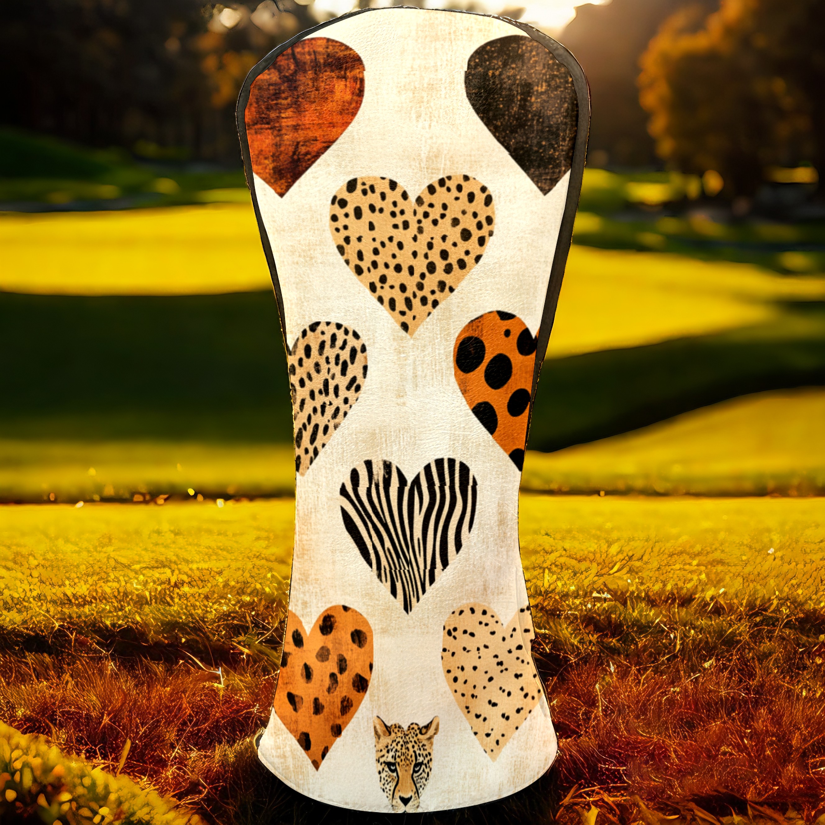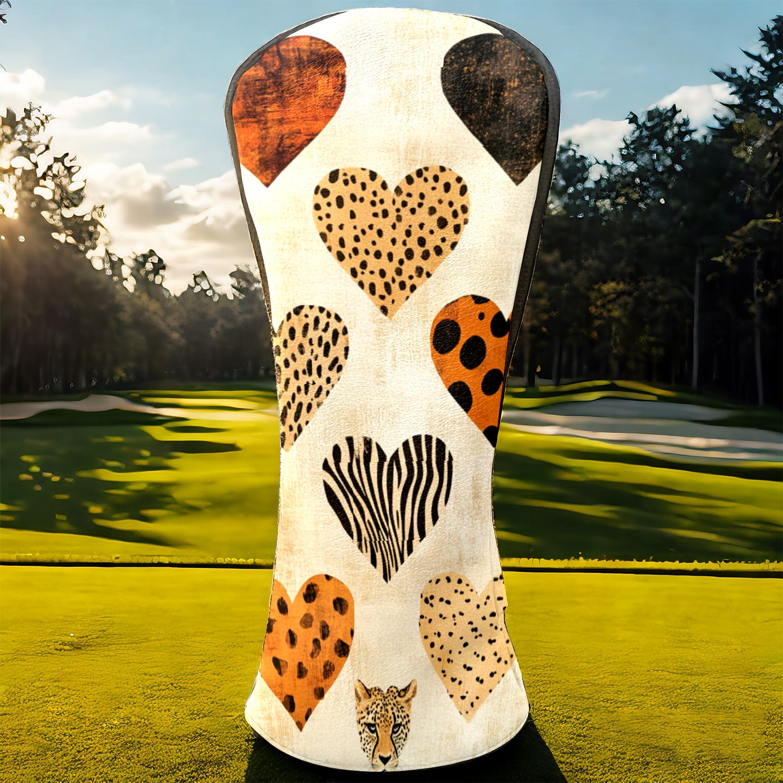 Golf Headcovers Fits Driver Hybrid Fairway 3/5 Wood, Waterproof PU Leather Golf Club Protector, Ideal Sports Accessories & Golfer Gift Brown Heart Pattern2