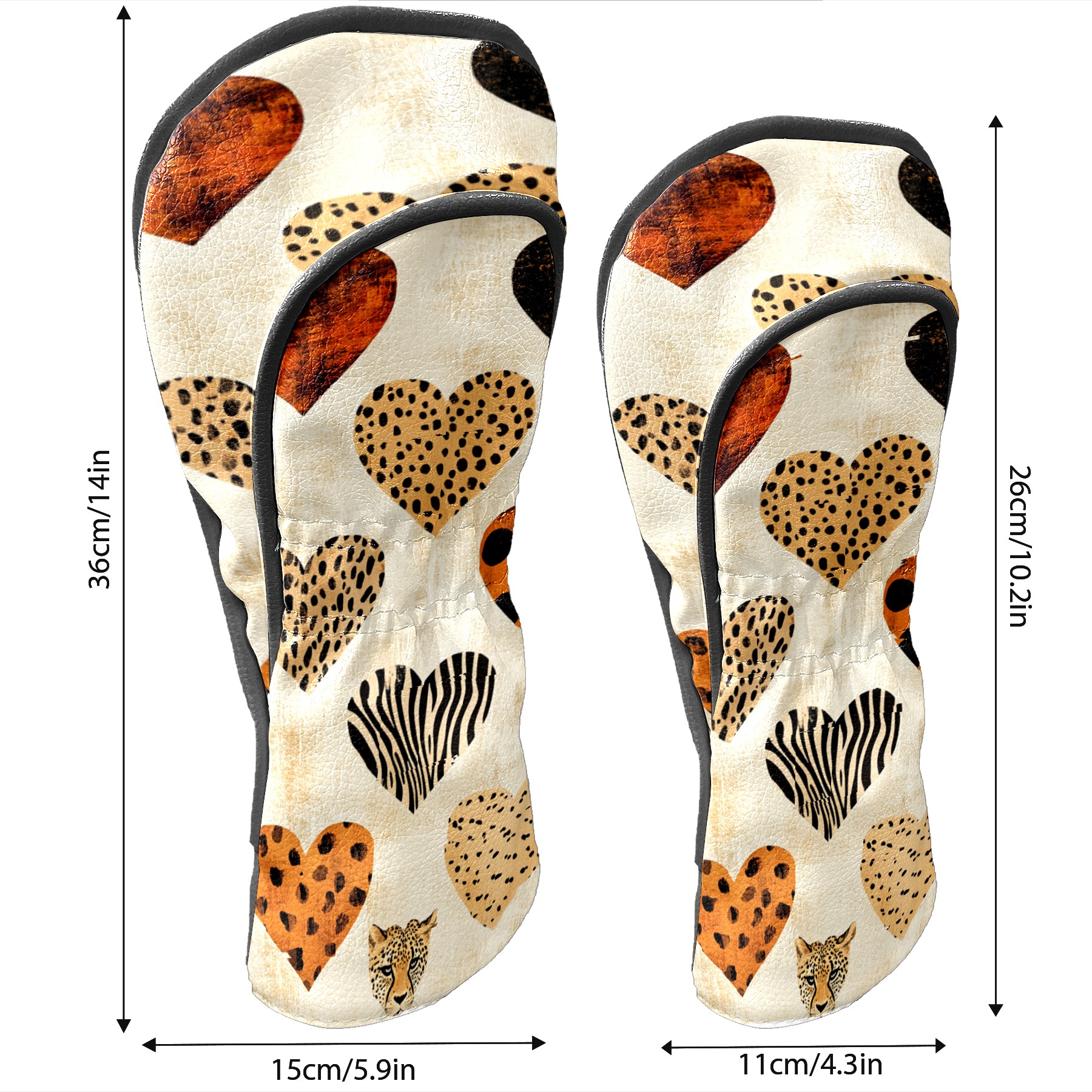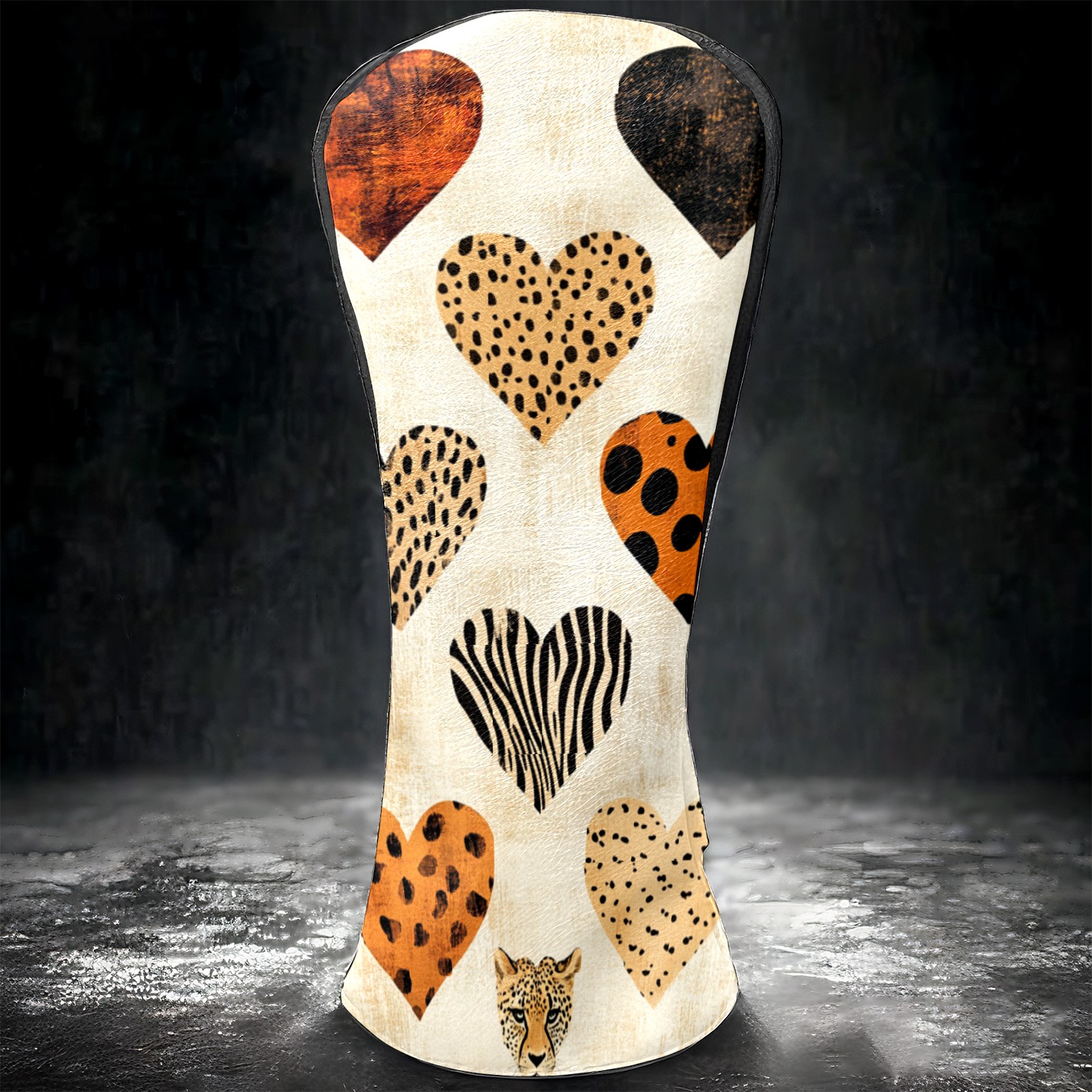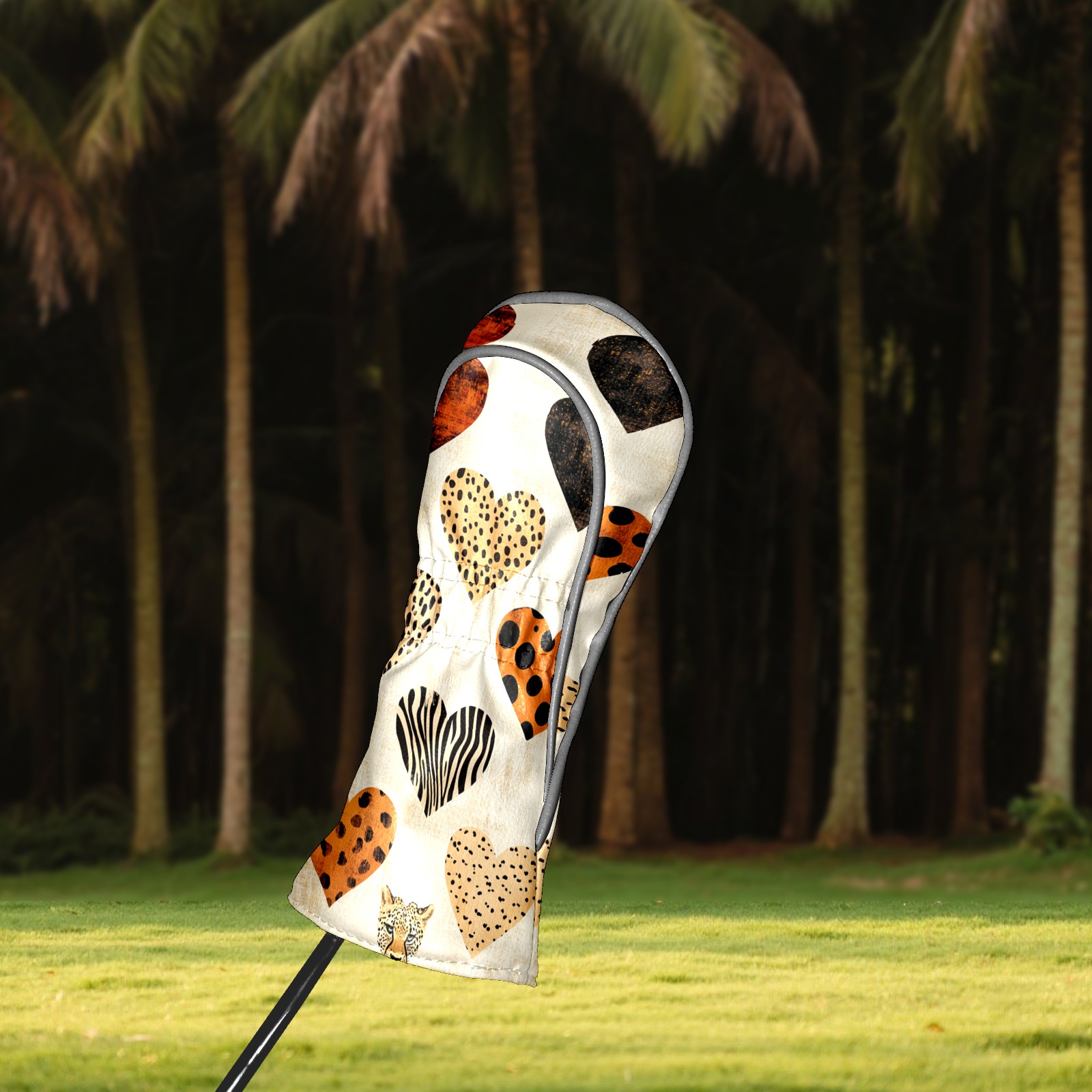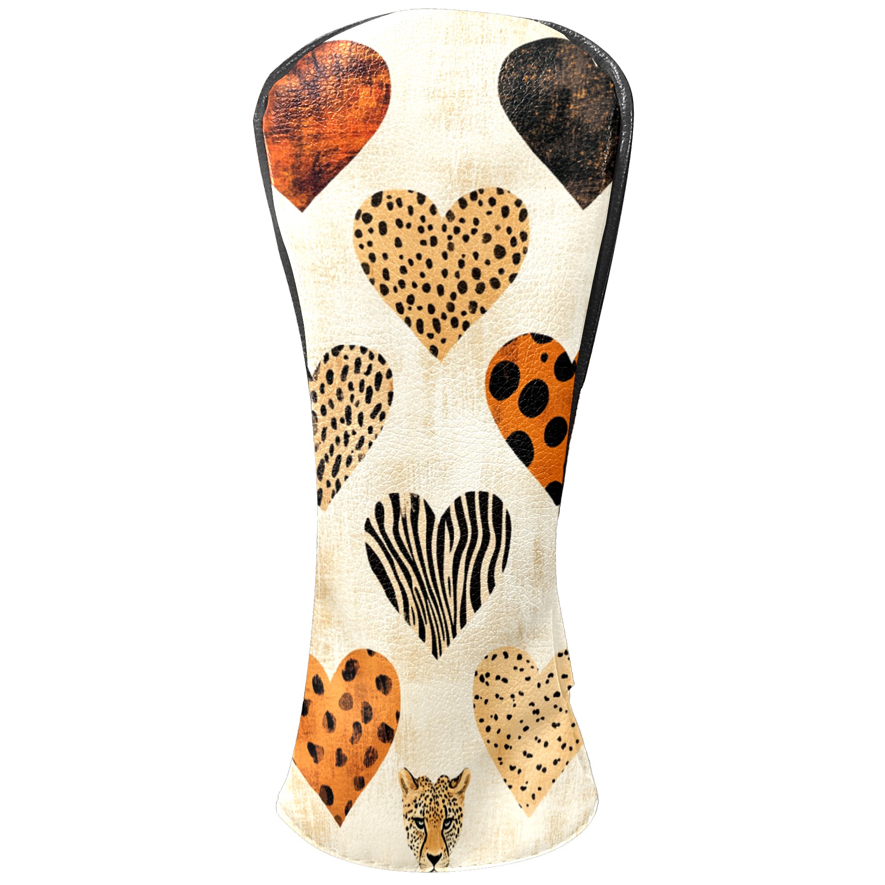 Golf Headcovers Fits Driver Hybrid Fairway 3/5 Wood, Waterproof PU Leather Golf Club Protector, Ideal Sports Accessories & Golfer Gift Brown Heart Pattern2
