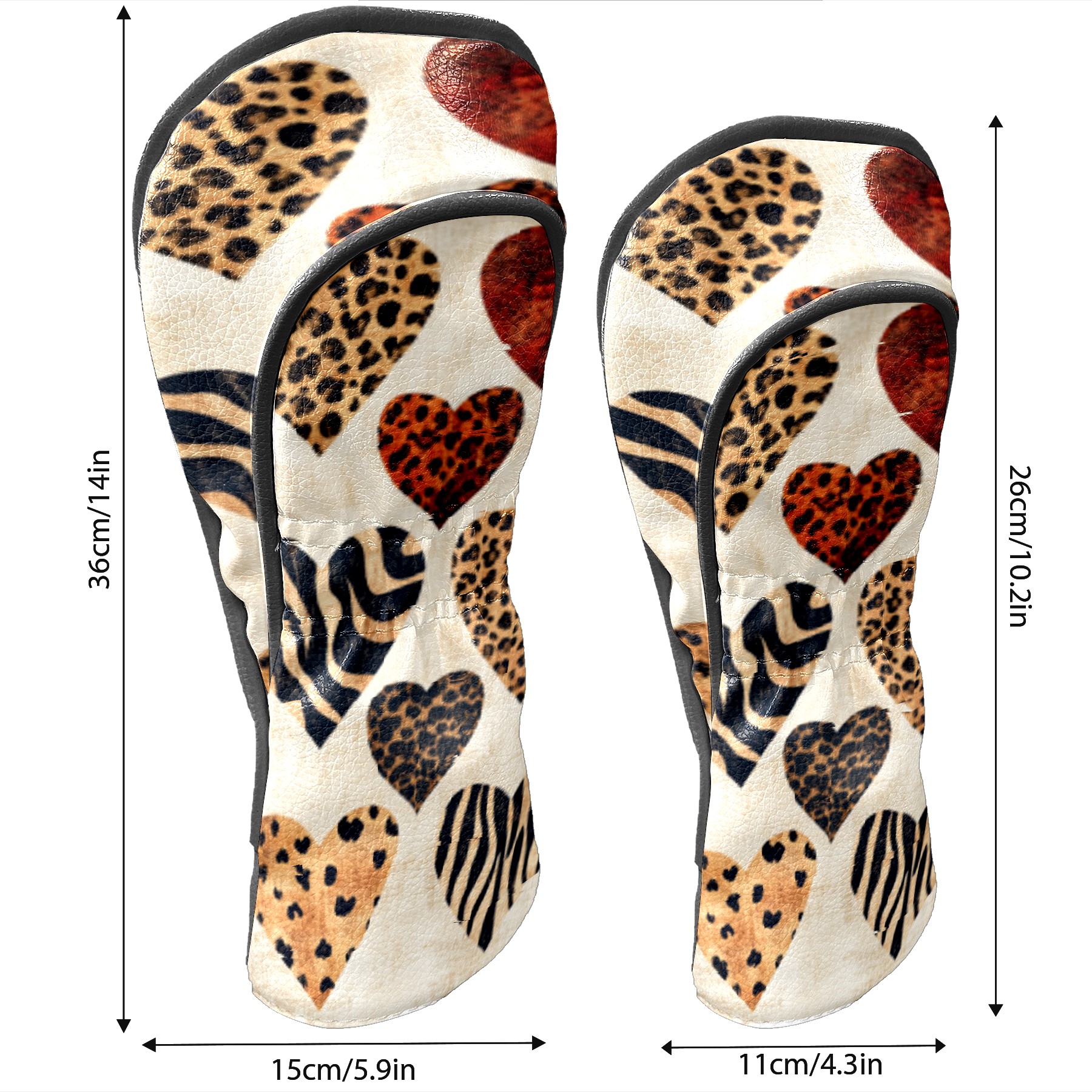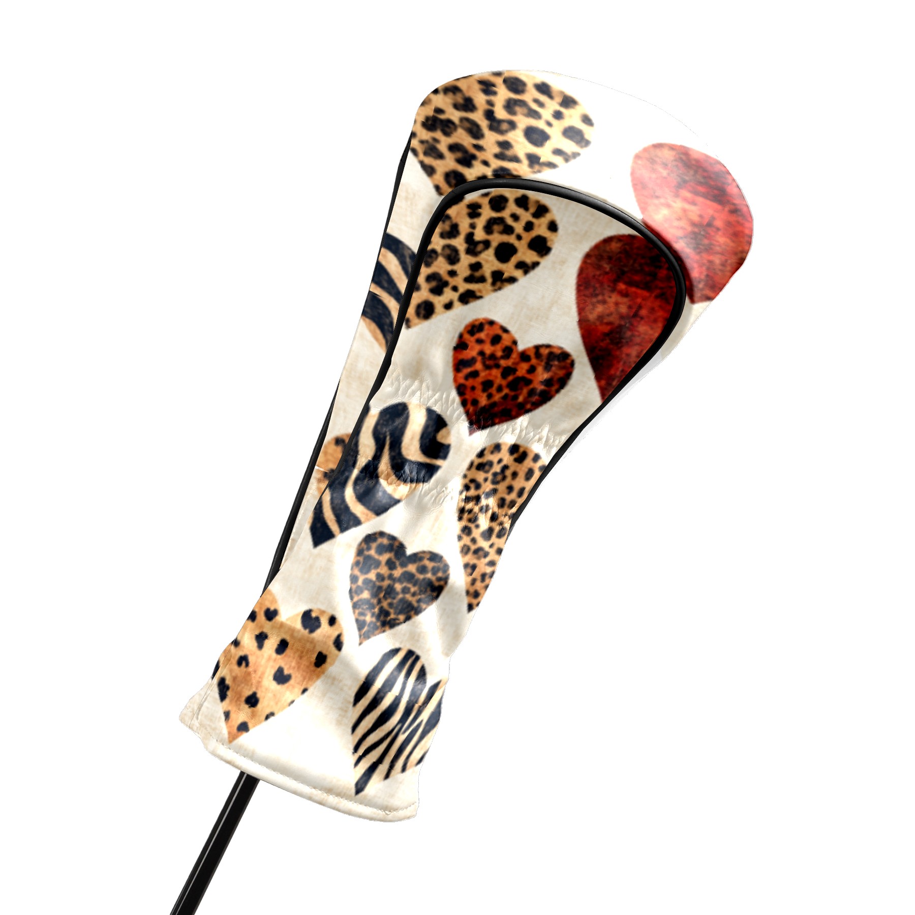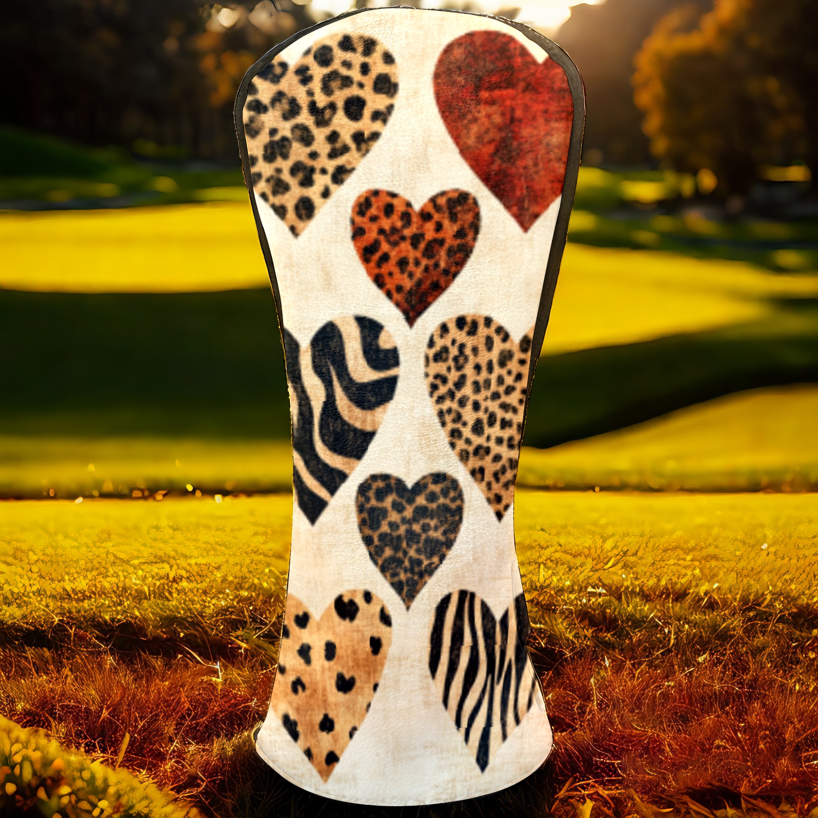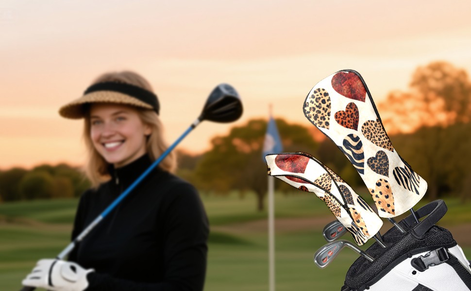 Golf Headcovers Fits Driver Hybrid Fairway 3/5 Wood, Waterproof PU Leather Golf Club Protector, Ideal Sports Accessories & Golfer Gift Brown Heart Pattern4
