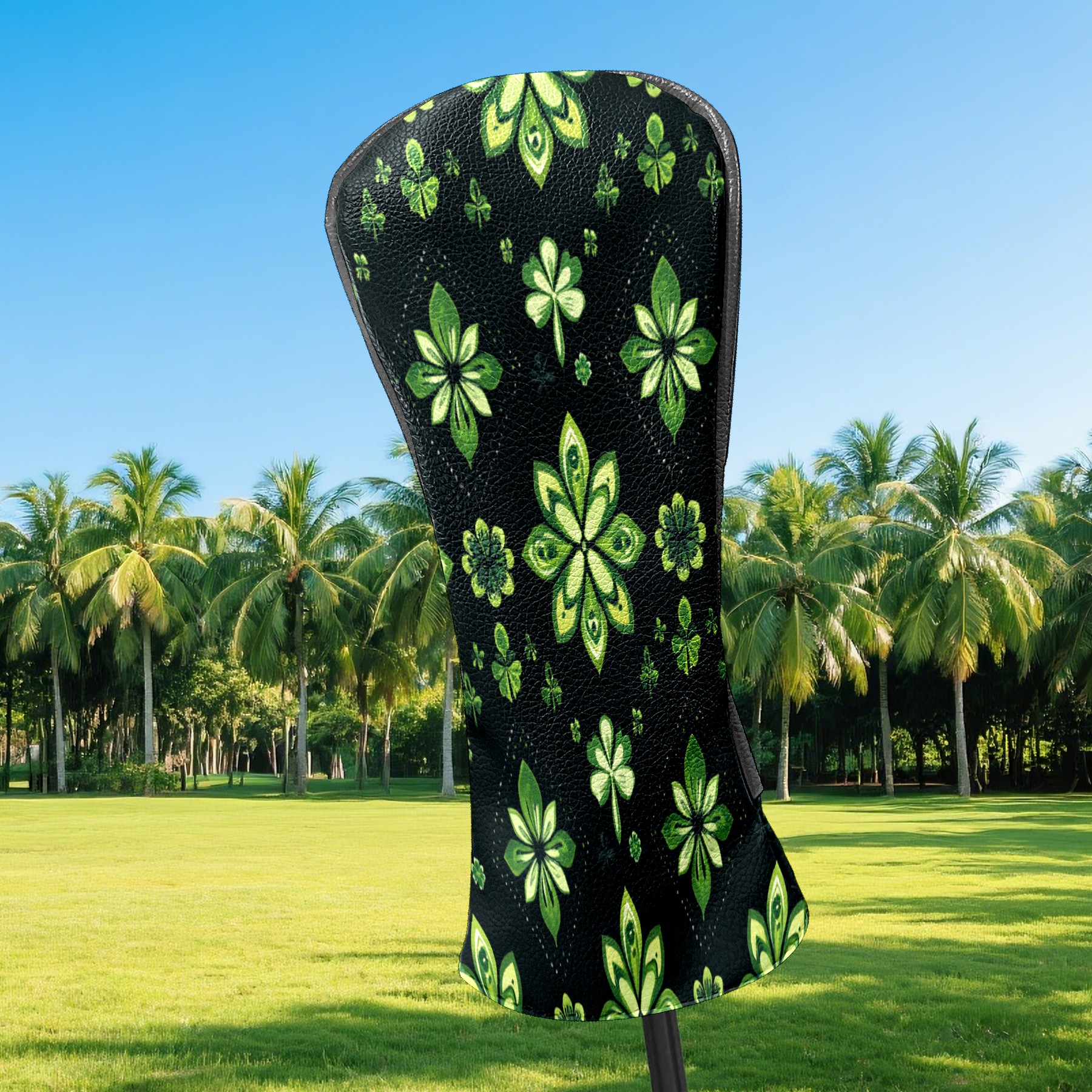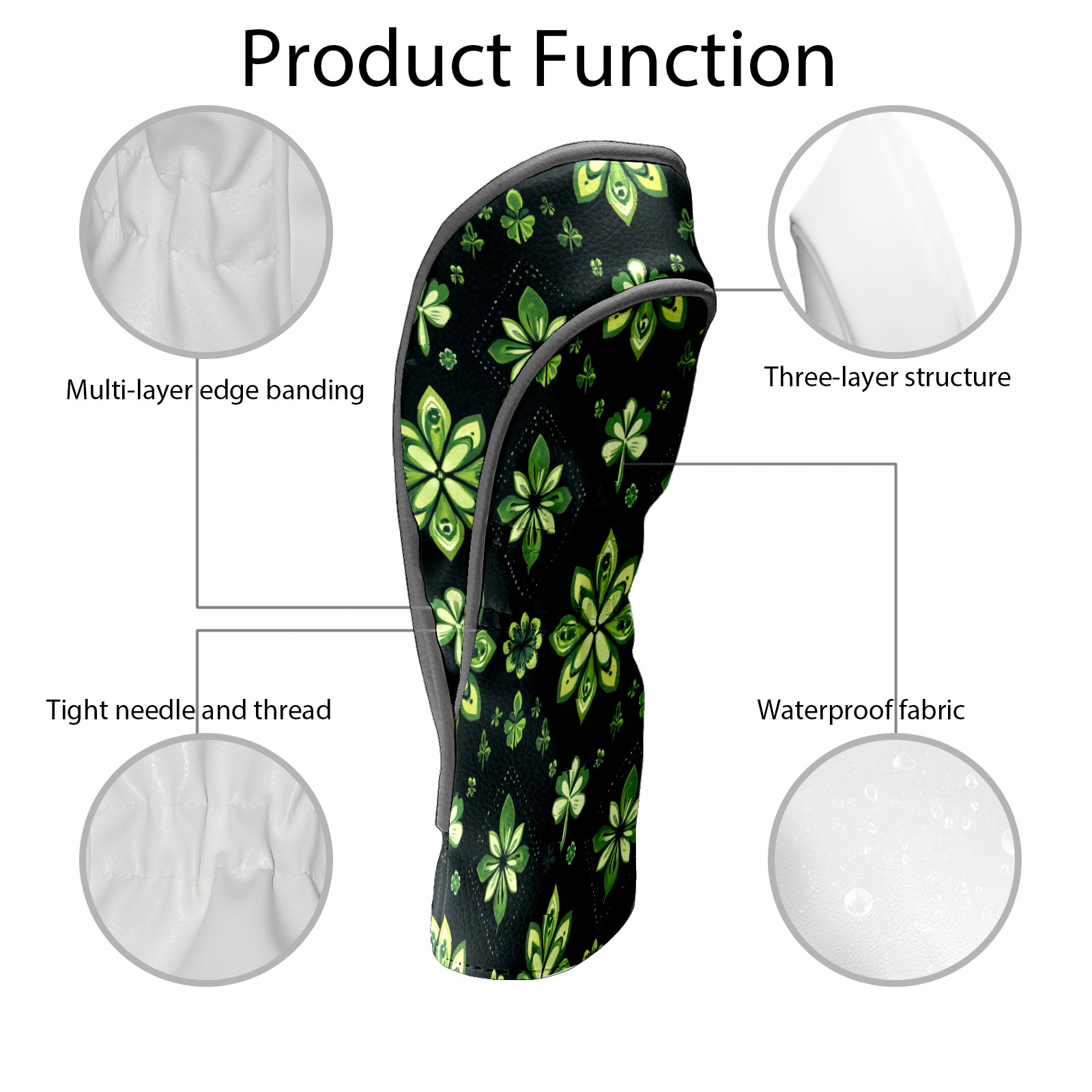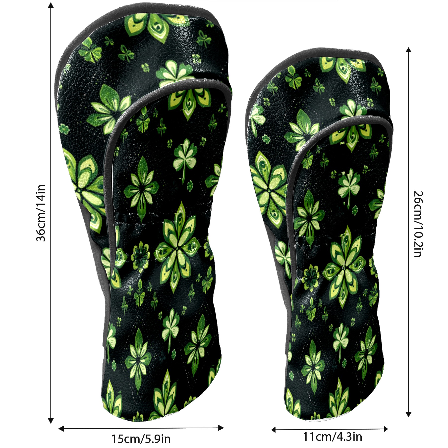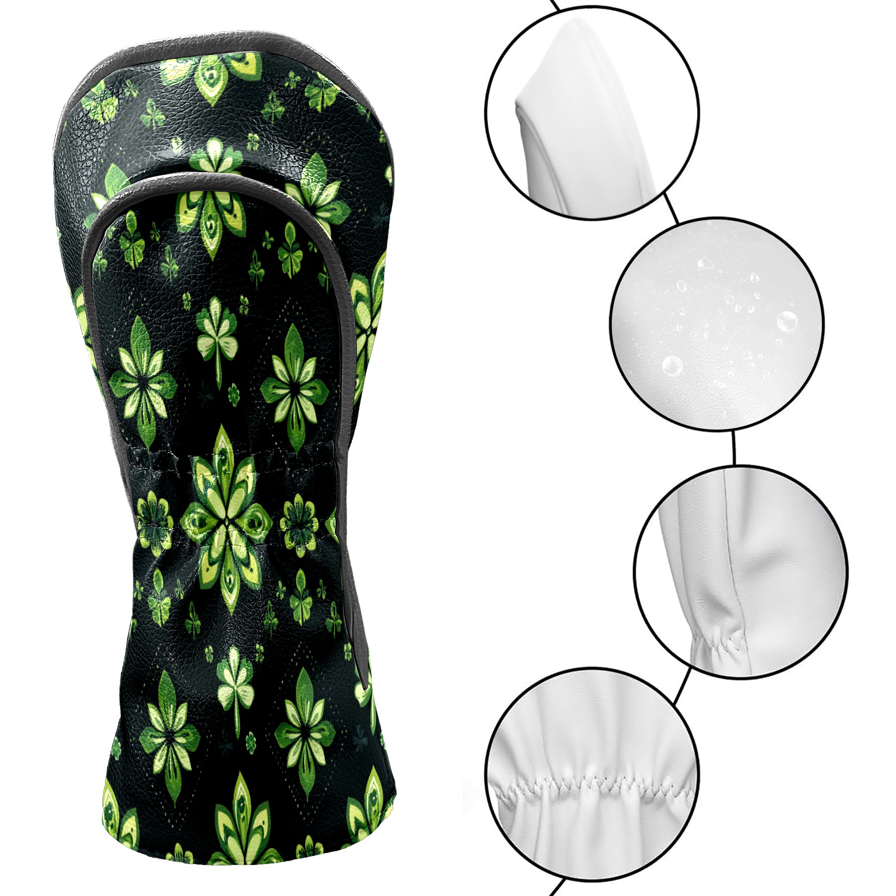 Golf Headcovers Fits Driver Hybrid Fairway 3/5 Wood, Waterproof PU Leather Golf Club Protector, Ideal Sports Accessories & Golfer Gift Green Clover Pattern