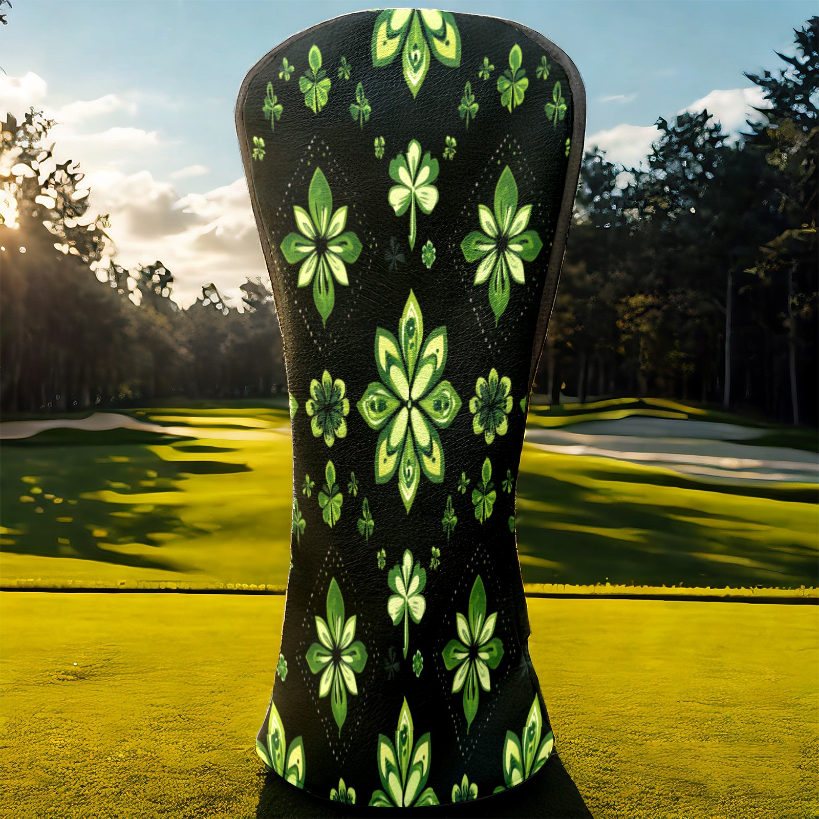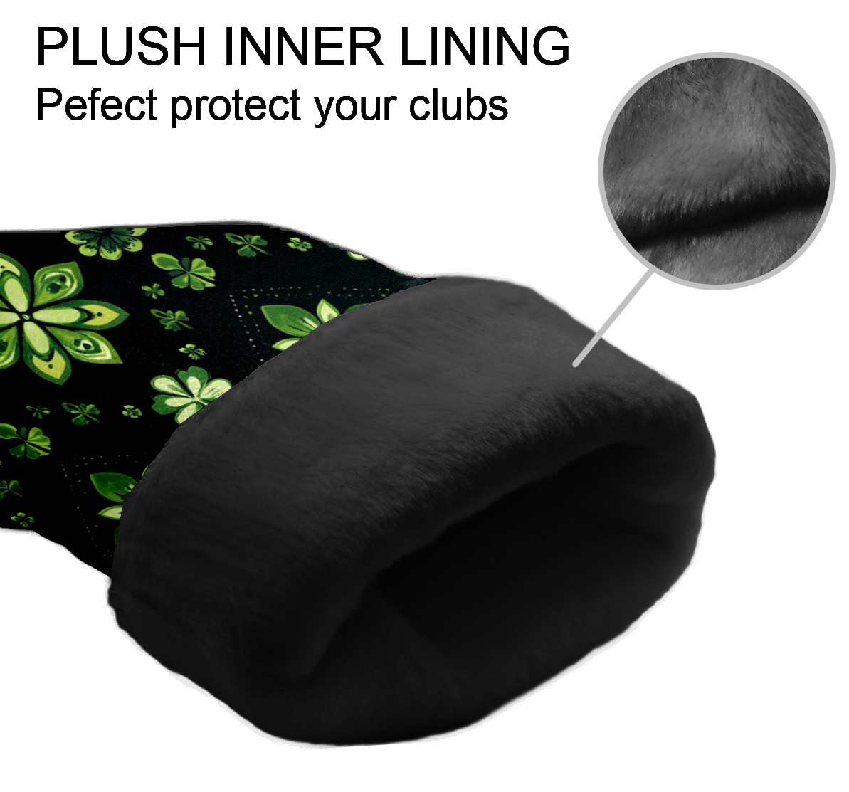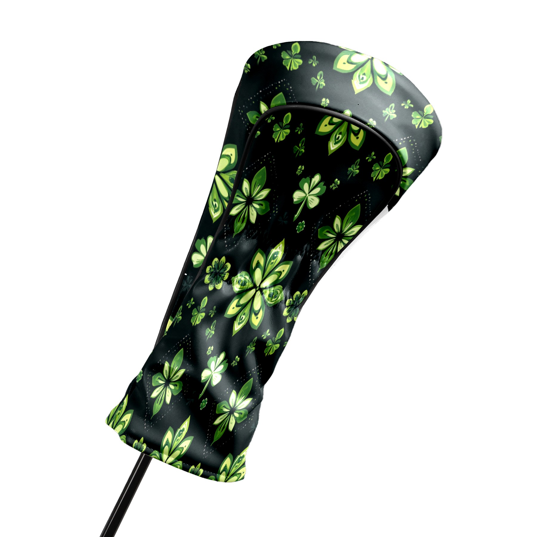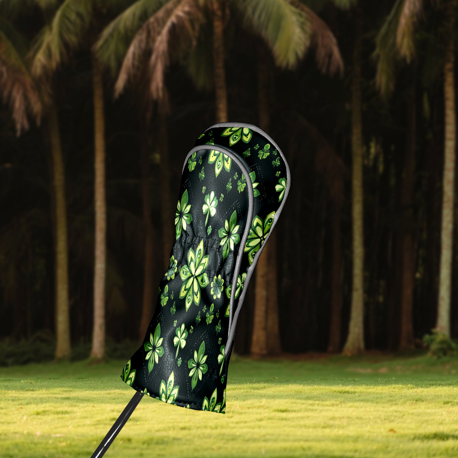 Golf Headcovers Fits Driver Hybrid Fairway 3/5 Wood, Waterproof PU Leather Golf Club Protector, Ideal Sports Accessories & Golfer Gift Green Clover Pattern