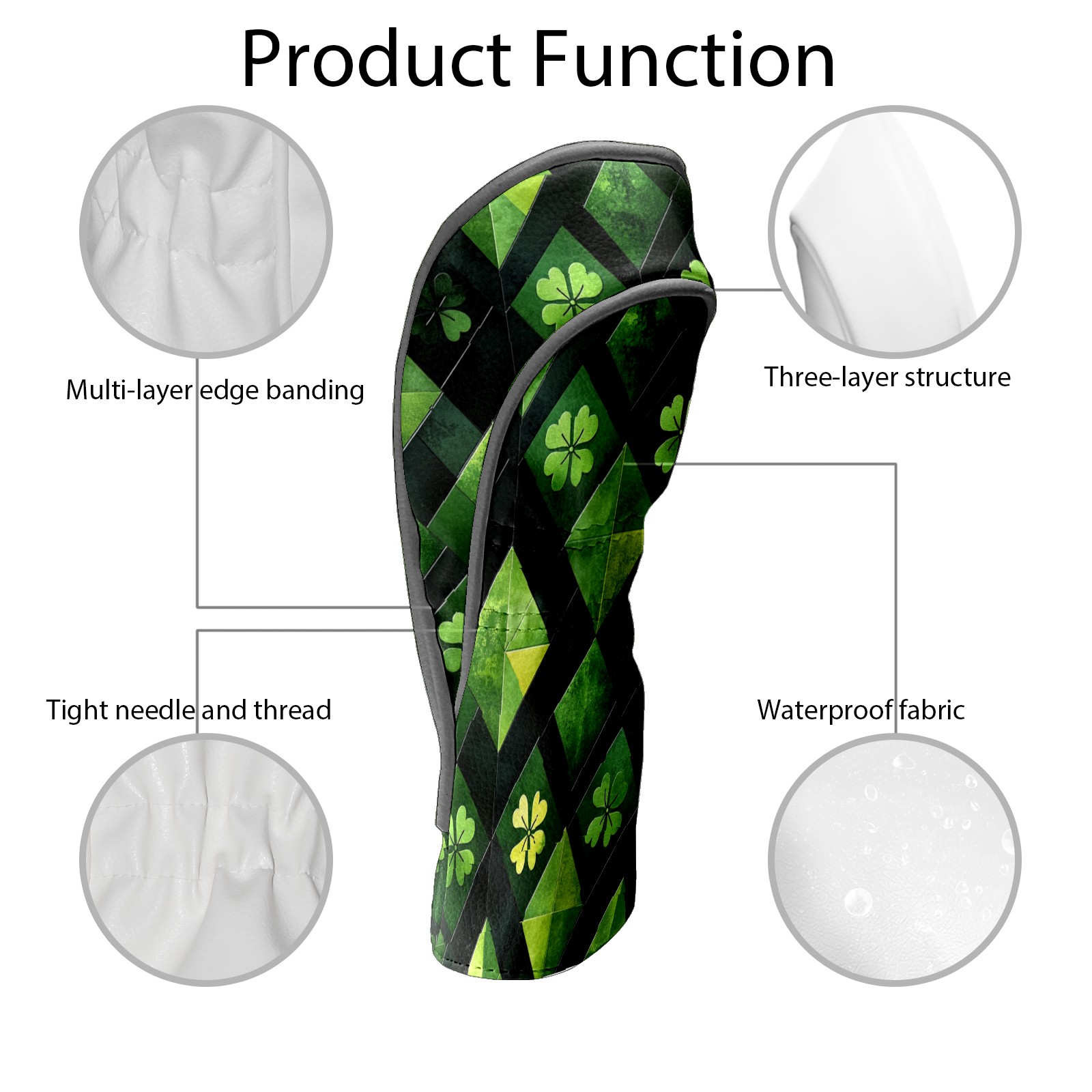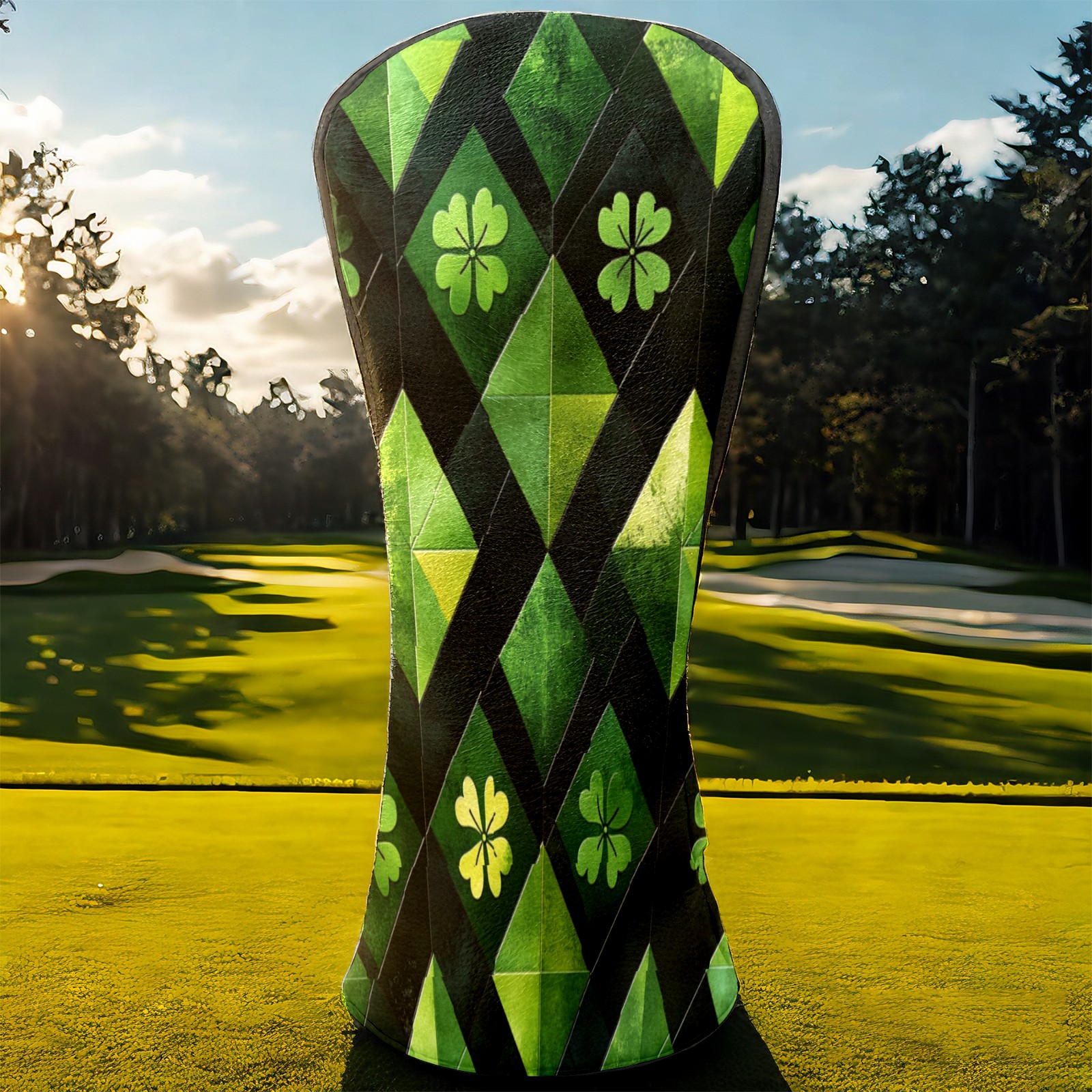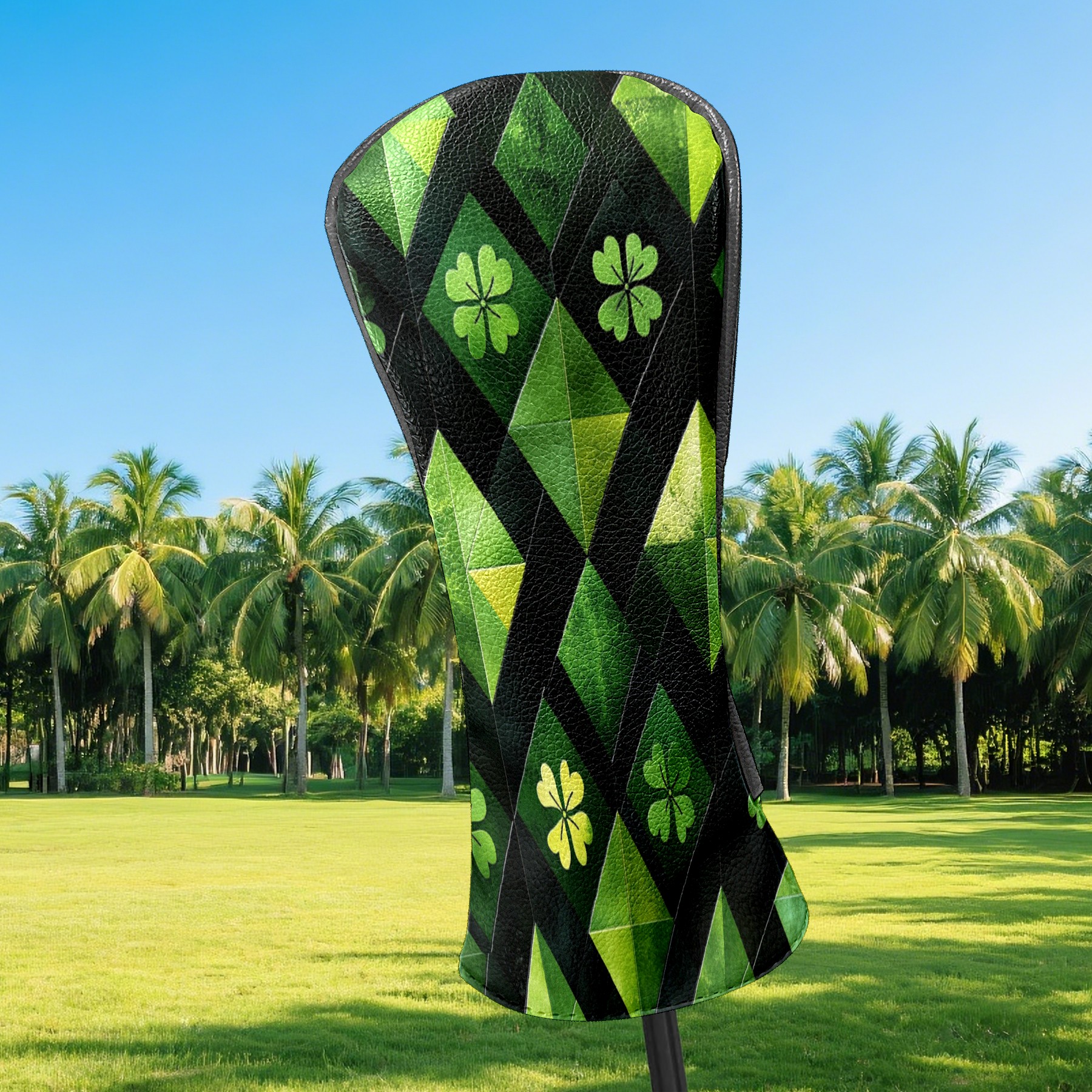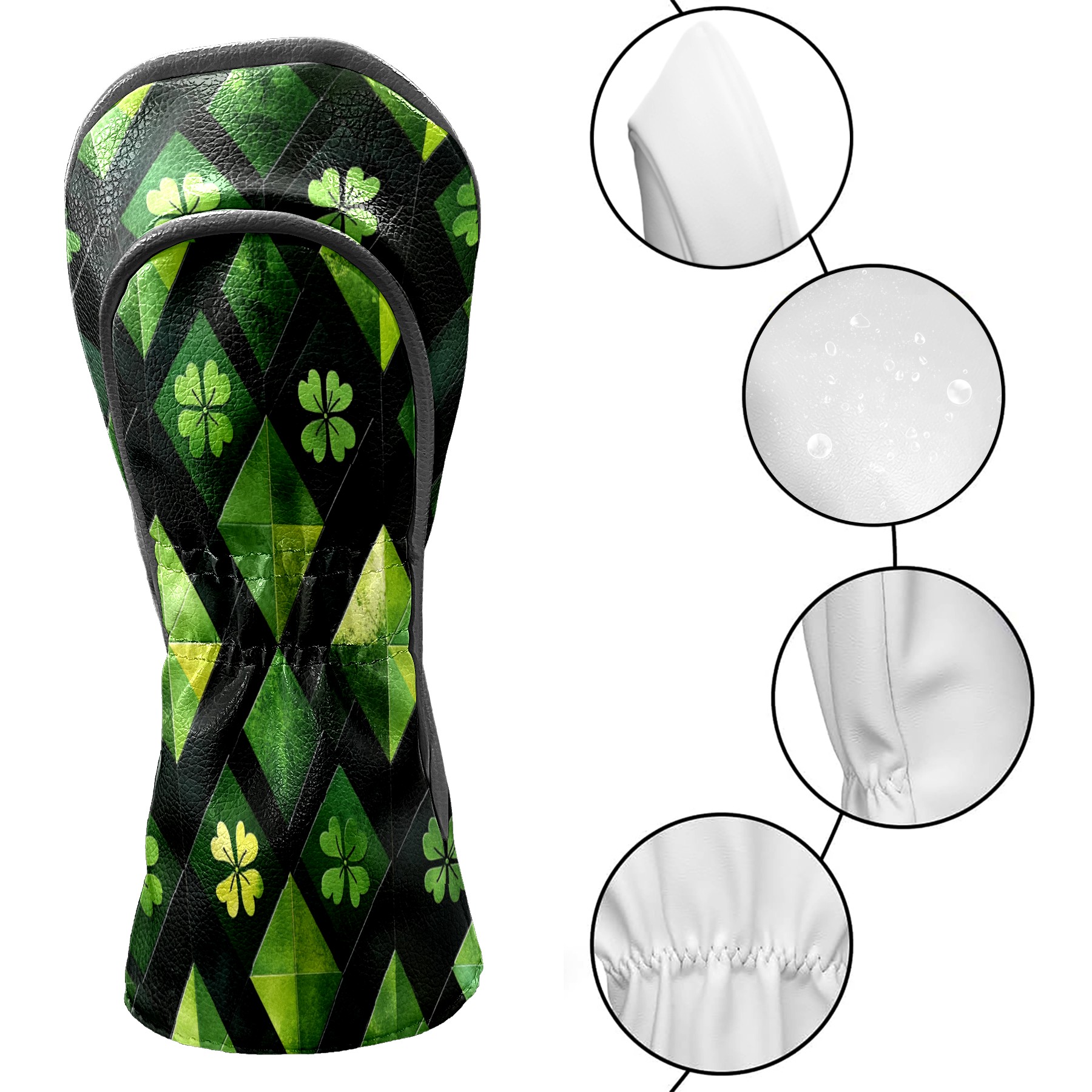 Golf Headcovers Fits Driver Hybrid Fairway 3/5 Wood, Waterproof PU Leather Golf Club Protector, Ideal Sports Accessories & Golfer Gift Green Clover Pattern2