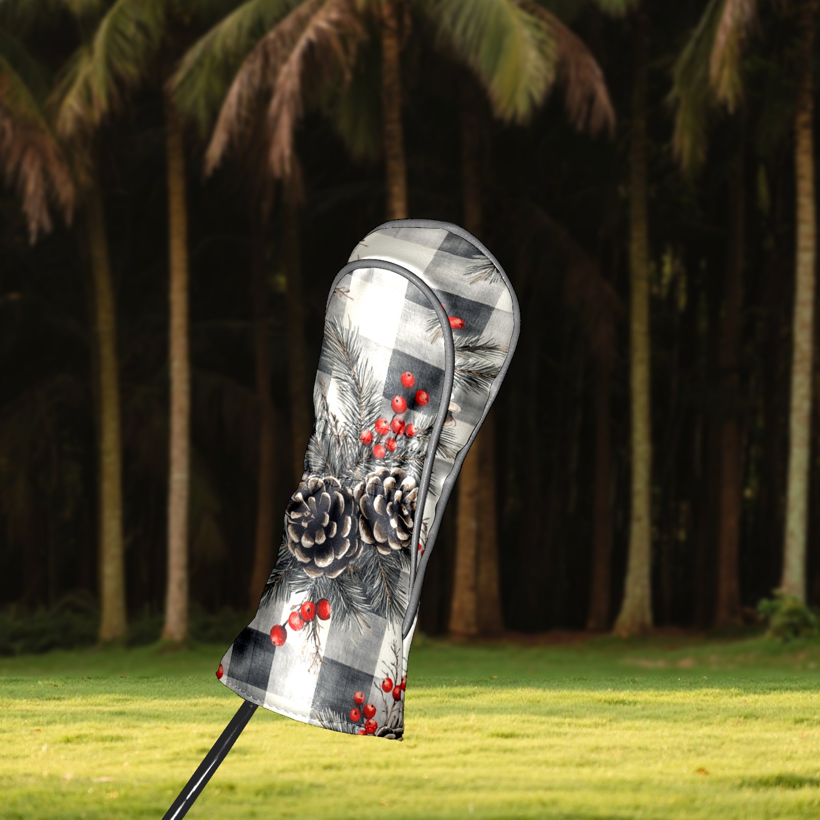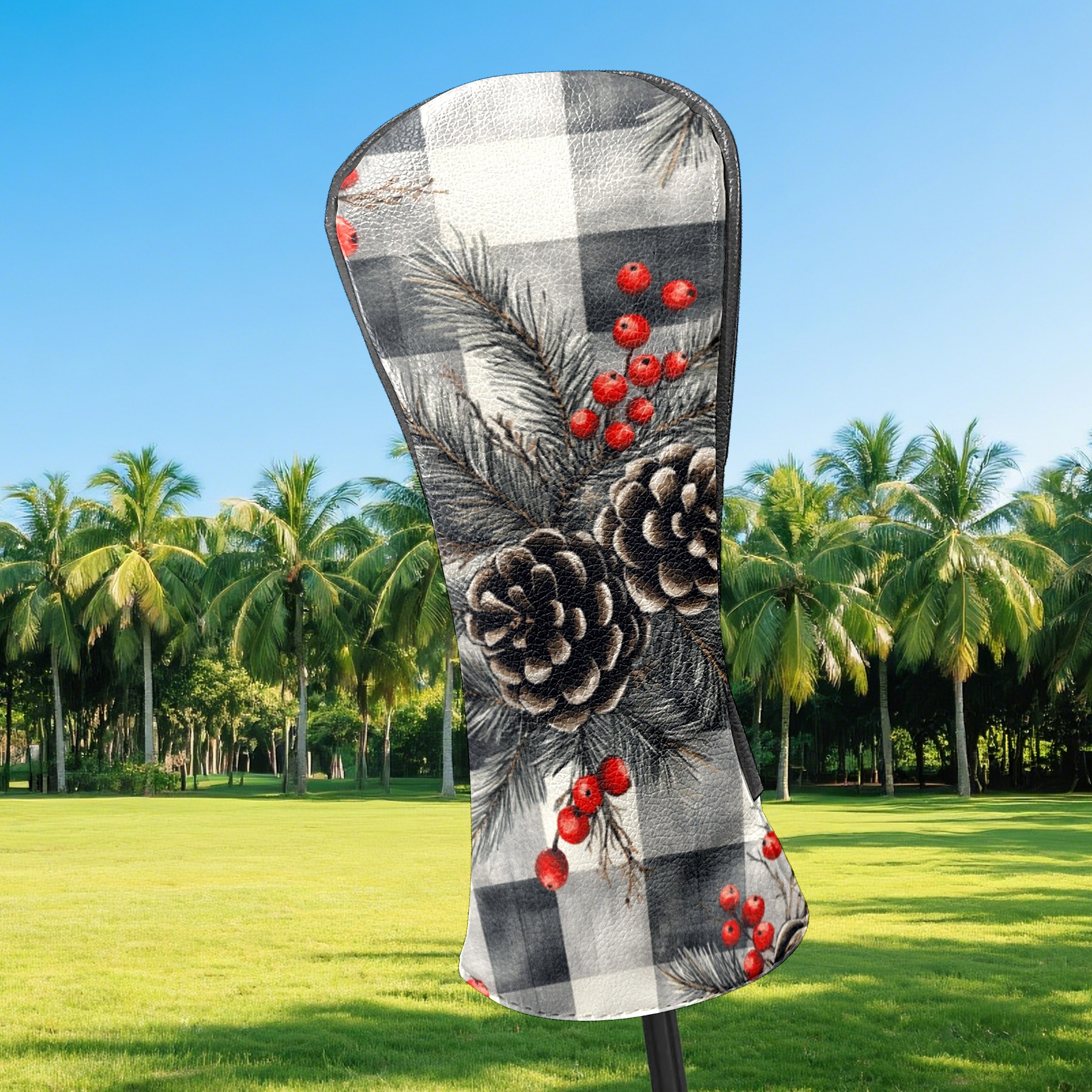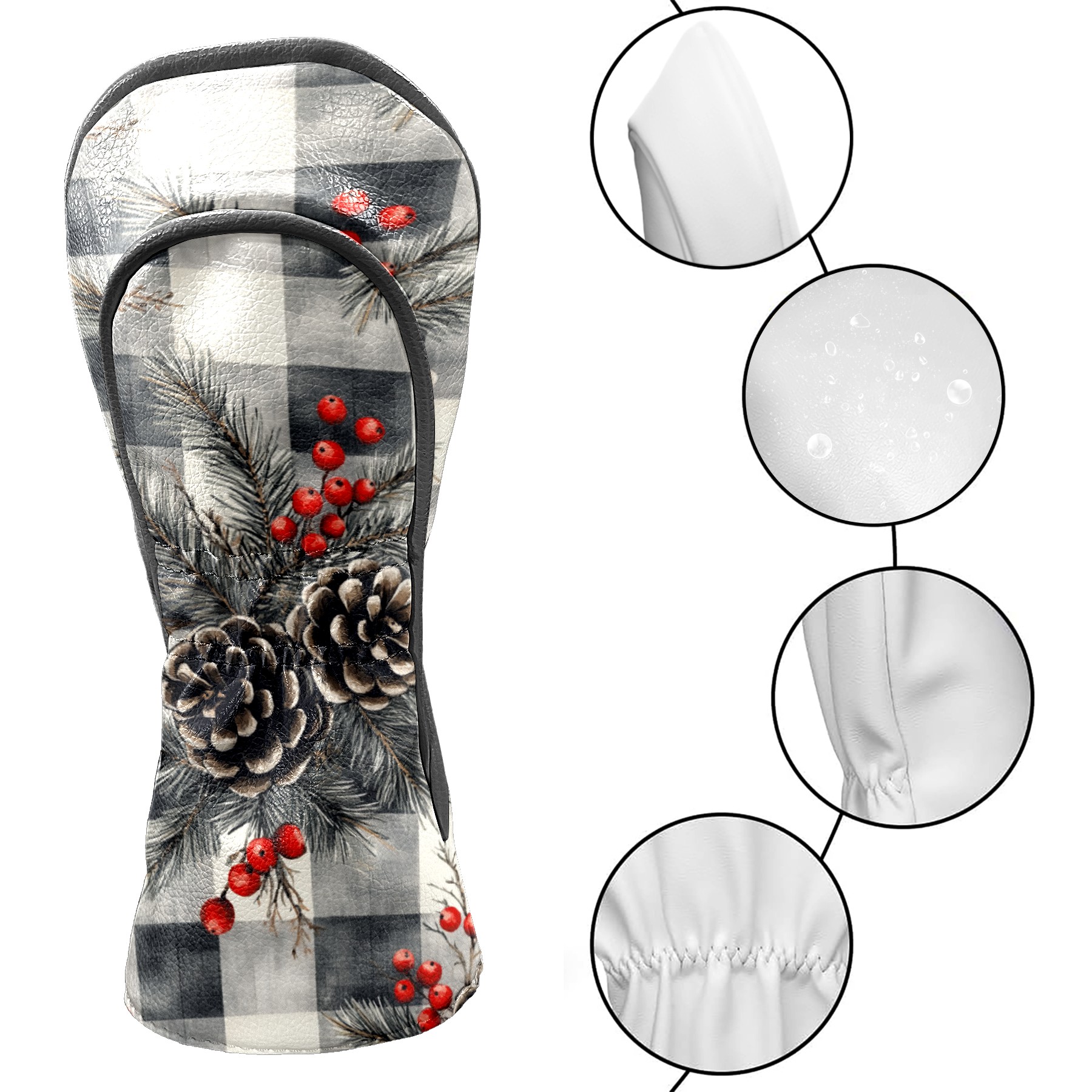 Golf Headcovers Fits Driver Hybrid Fairway 3/5 Wood, Waterproof PU Leather Golf Club Protector, Ideal Sports Accessories & Golfer Gift Gray Pine Cone Pattern