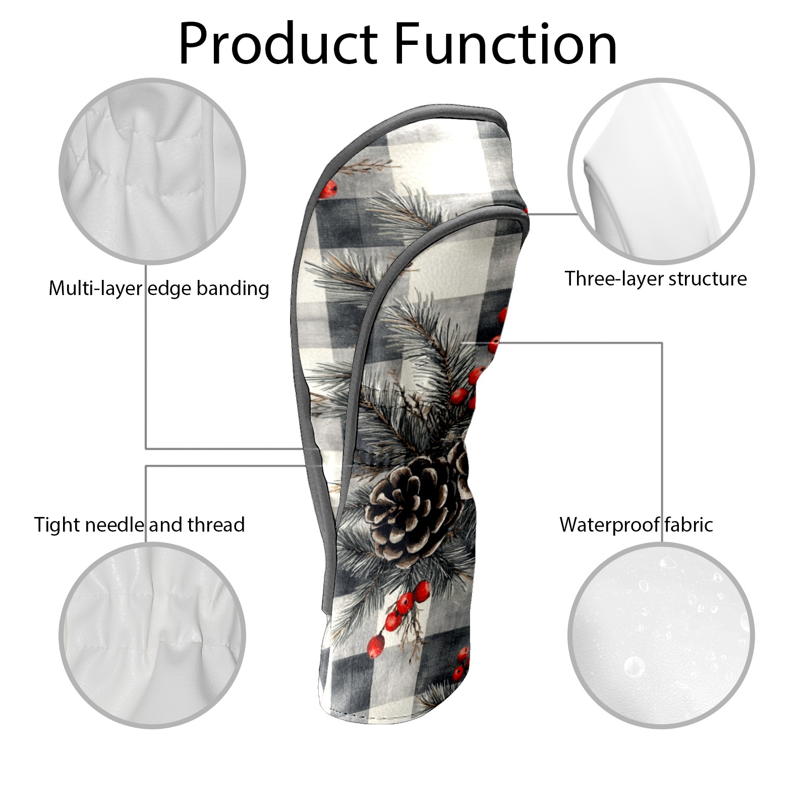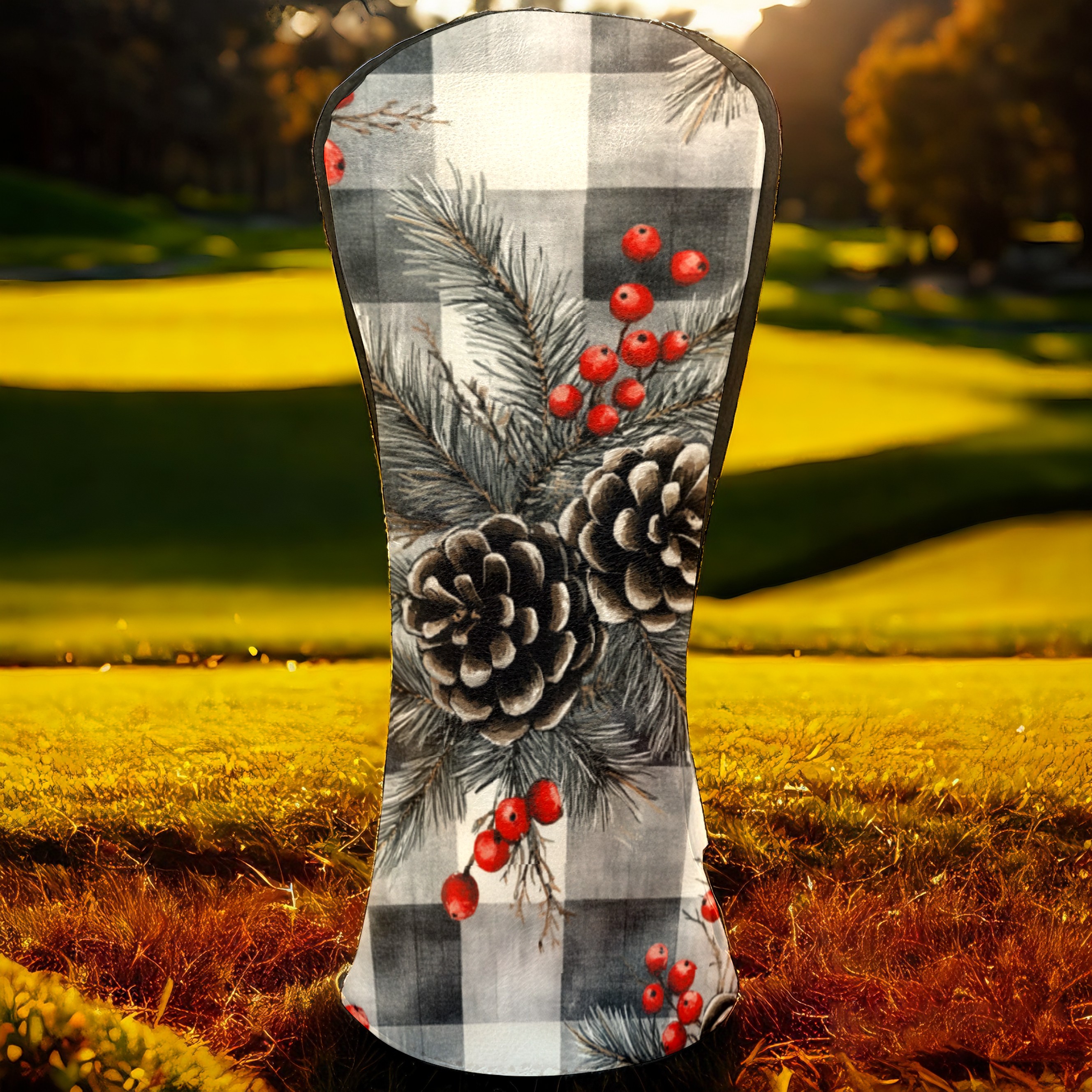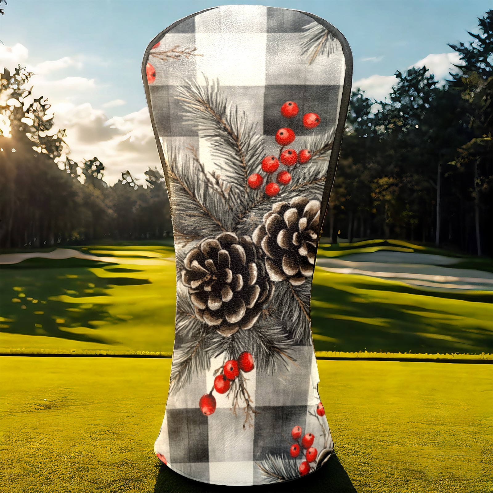 Golf Headcovers Fits Driver Hybrid Fairway 3/5 Wood, Waterproof PU Leather Golf Club Protector, Ideal Sports Accessories & Golfer Gift Gray Pine Cone Pattern