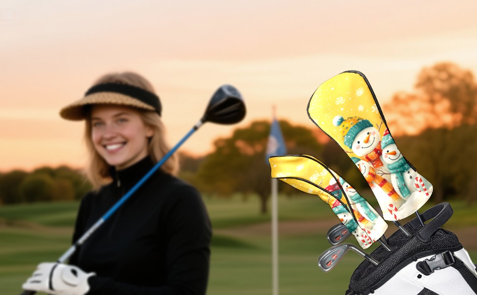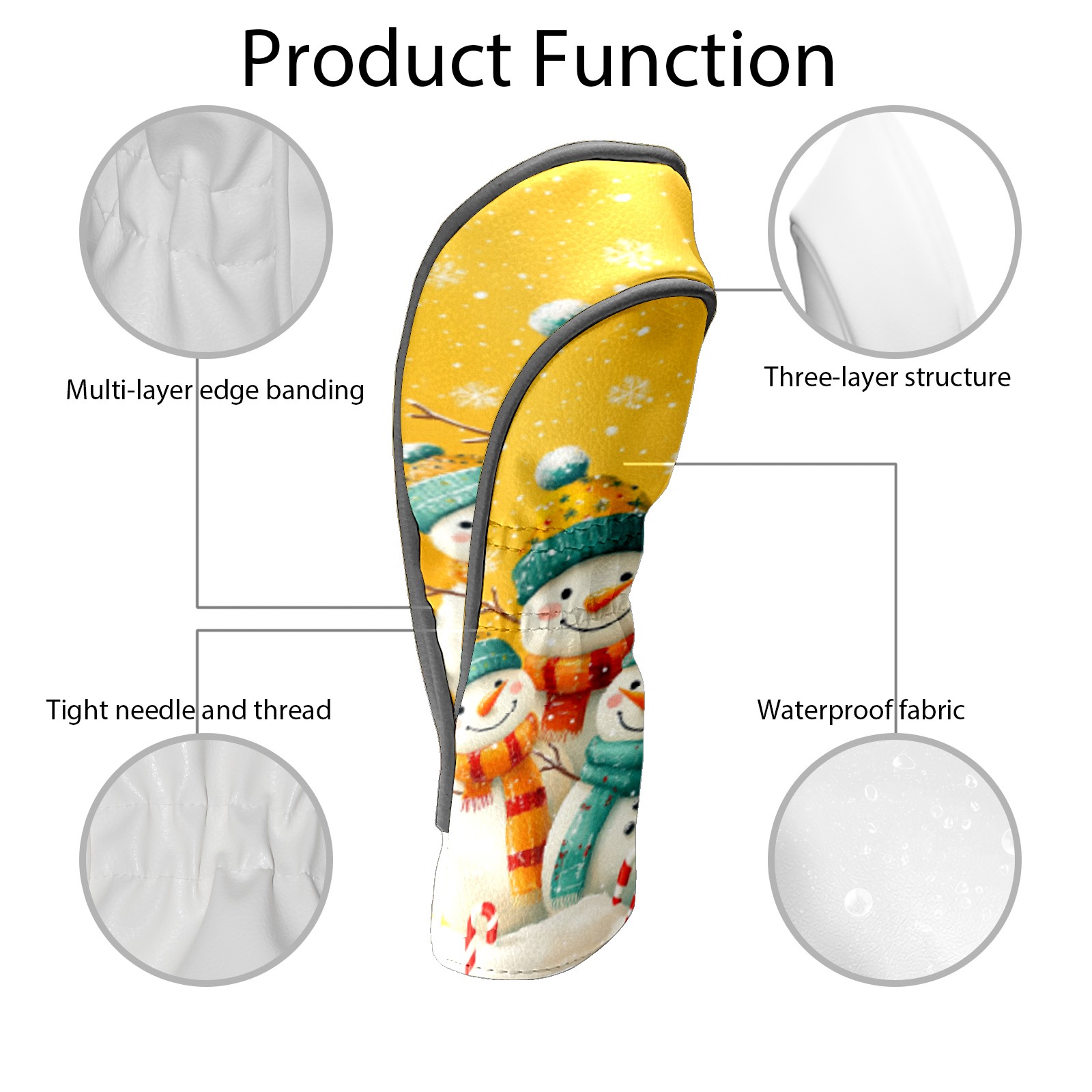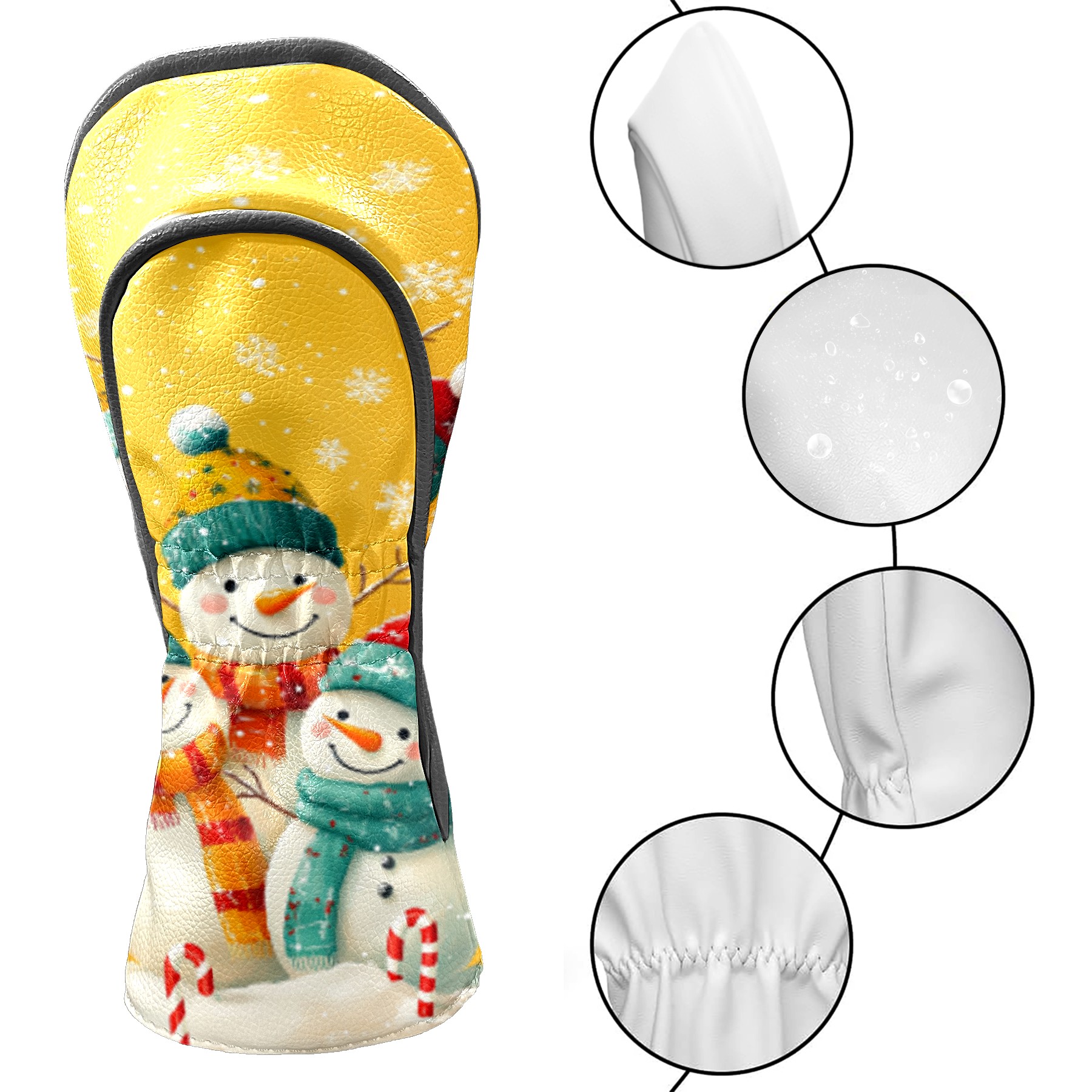 Golf Headcovers Fits Driver Hybrid Fairway 3/5 Wood, Waterproof PU Leather Golf Club Protector, Ideal Sports Accessories & Golfer Gift Cute Snowman Pattern1